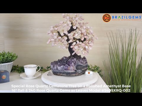 What makes this tree Special? Its polished Amethyst cluster base has smoothly polished edges and features crystals with a deeper purple color and clarity. Also, its Rose Quartz gemstone leaves have a richer pink color making it even more beautiful.
