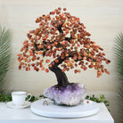 Carnelian Bonsai Gemstone Tree, Amethyst base, 20” Tall