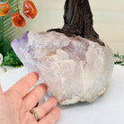 At approximately 20" tall to the top of its bark style branches this gemstone tree is both big and a design statement that will impact any room in your home or office. The amethyst clusters used as bases for this size of our gemstone trees are substantial gemstones on their own.