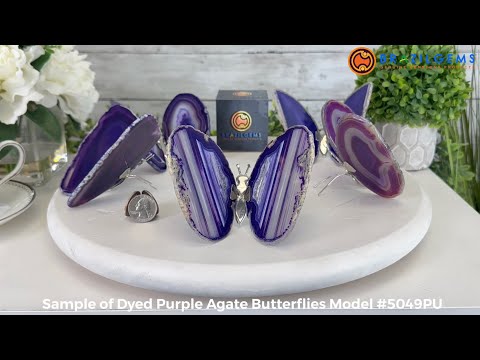 Discover vibrant Small Purple Agate "Butterfly Wings" from Brazil Gems®, approximately 4" in length, with a brilliantly dyed purple hue. Mounted on a sleek silver colored metal body, this delicate piece is perfect for gifting to a loved one.