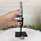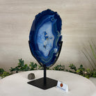 Brazilian Blue Agate Slice on a Metal Stand, 11" Tall #5055-0168