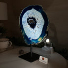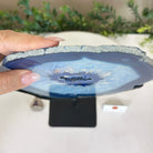Brazilian Blue Agate Slice on a Metal Stand, 11" Tall #5055-0170