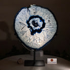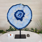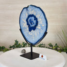 Brazilian Blue Agate Slice on a Metal Stand, 11.5" Tall #5055-0177