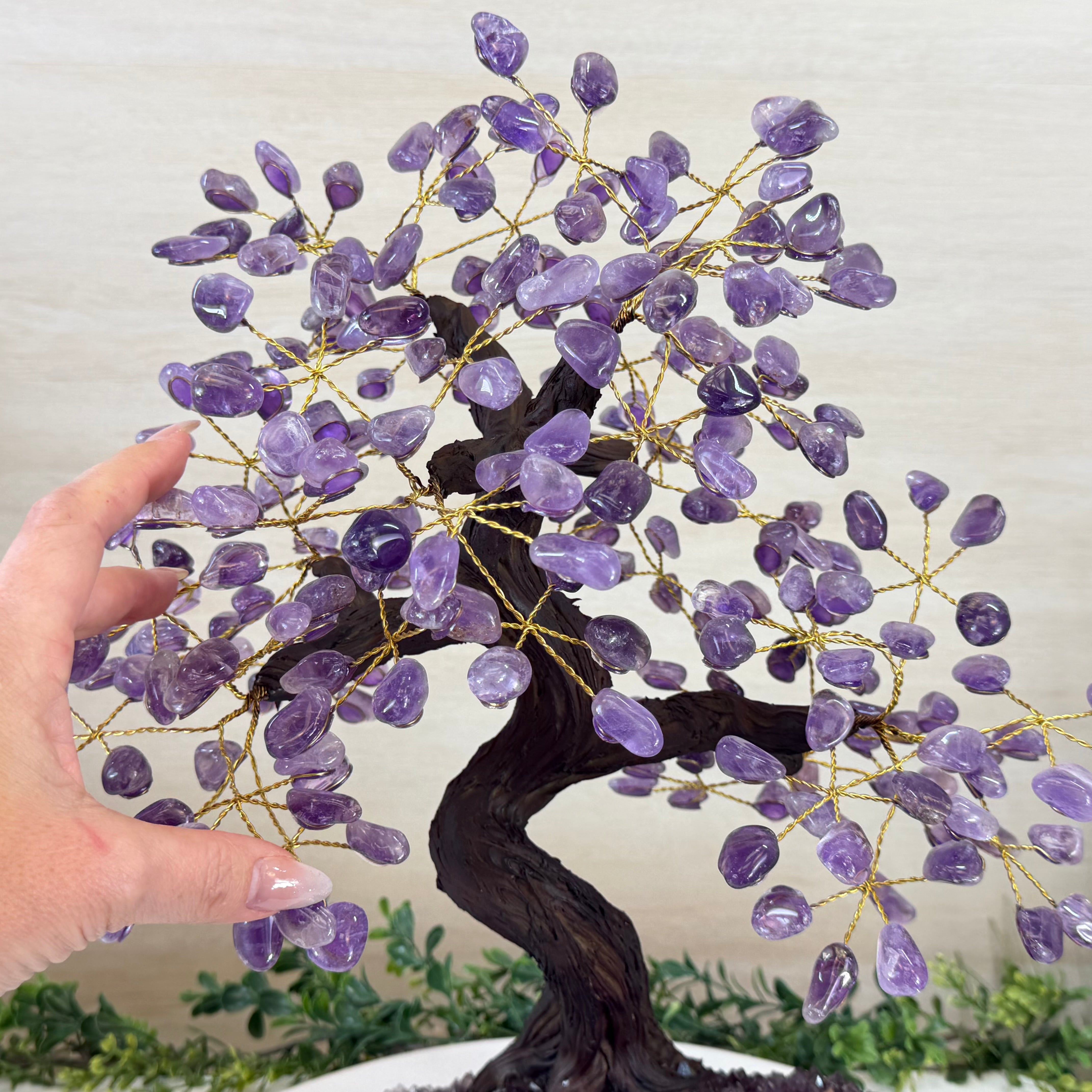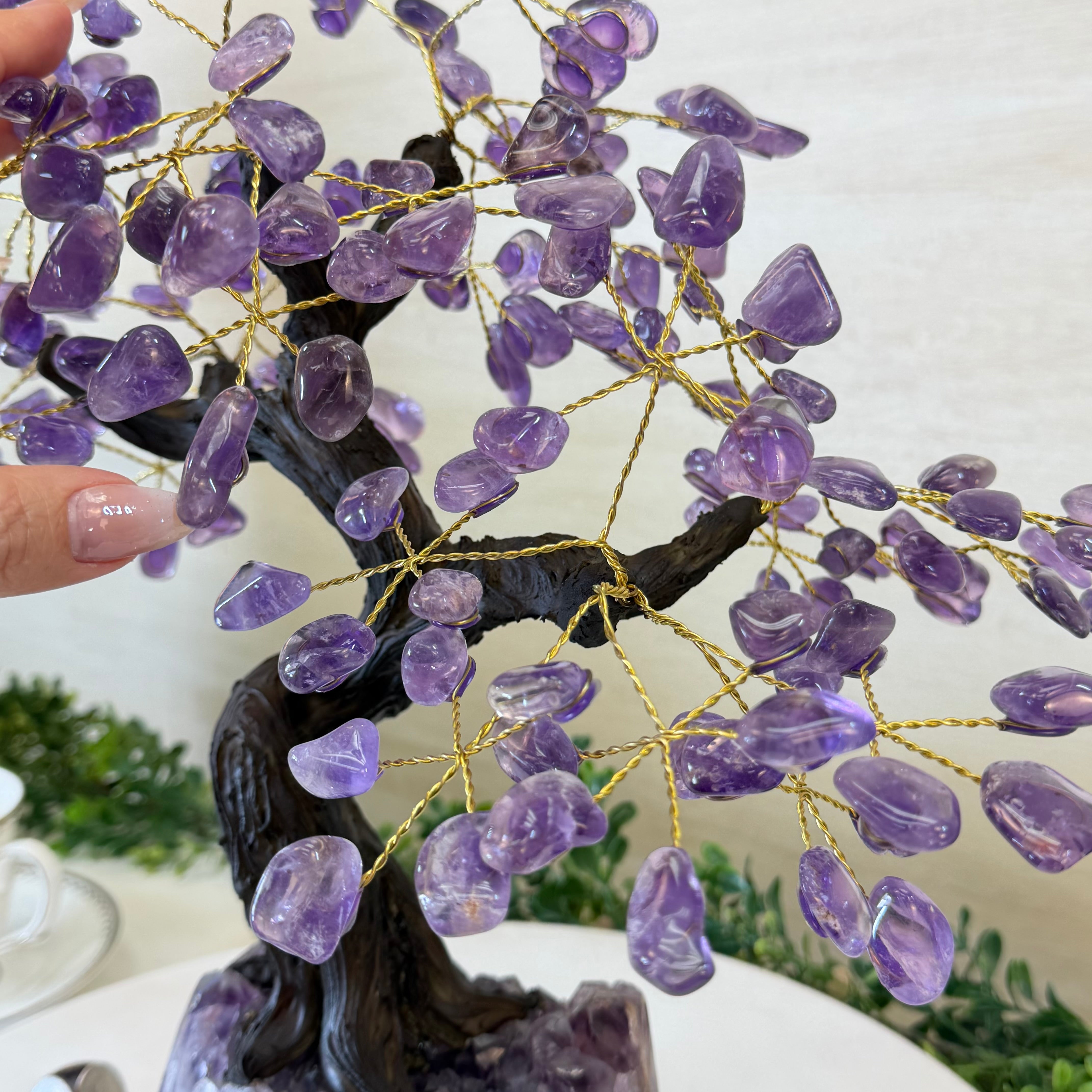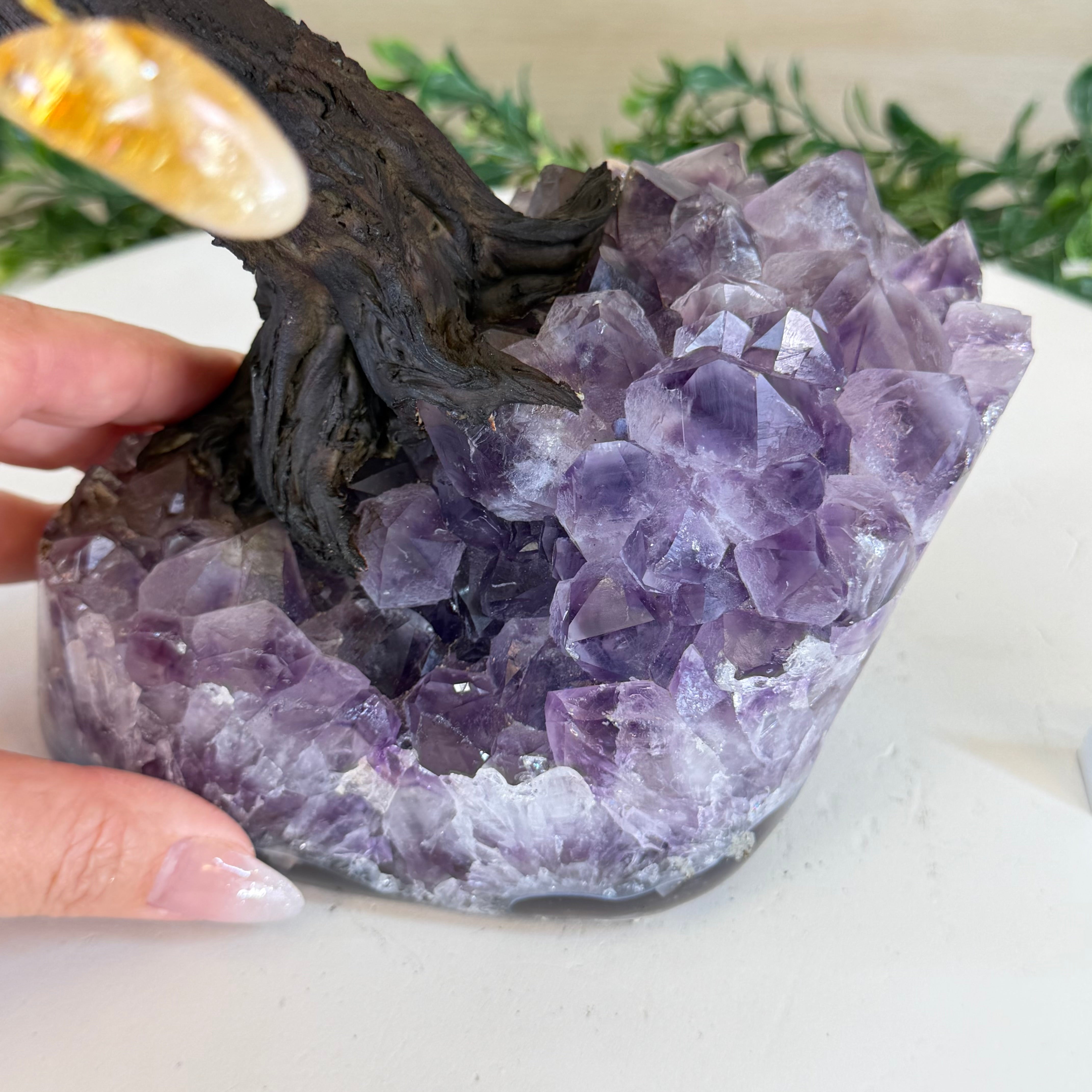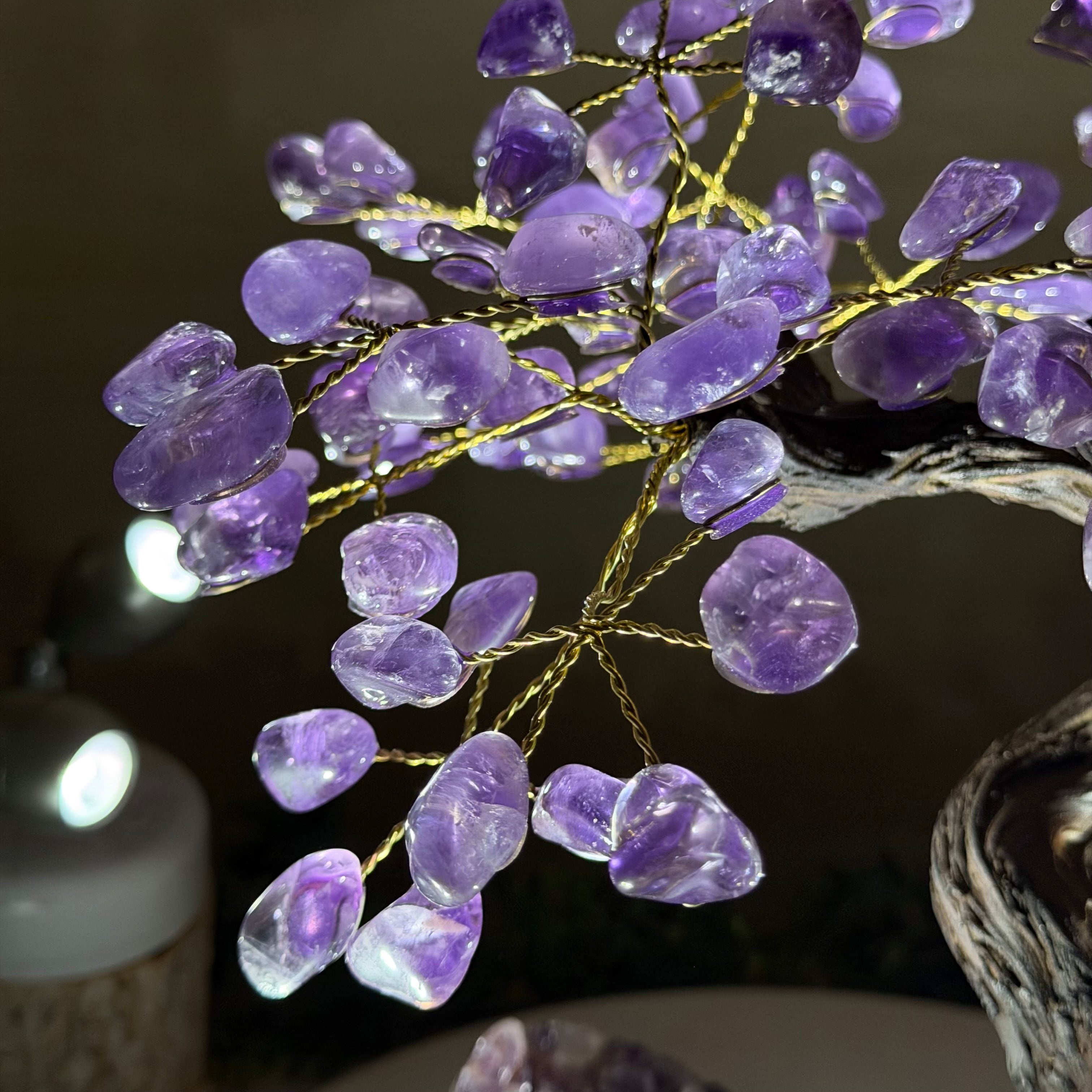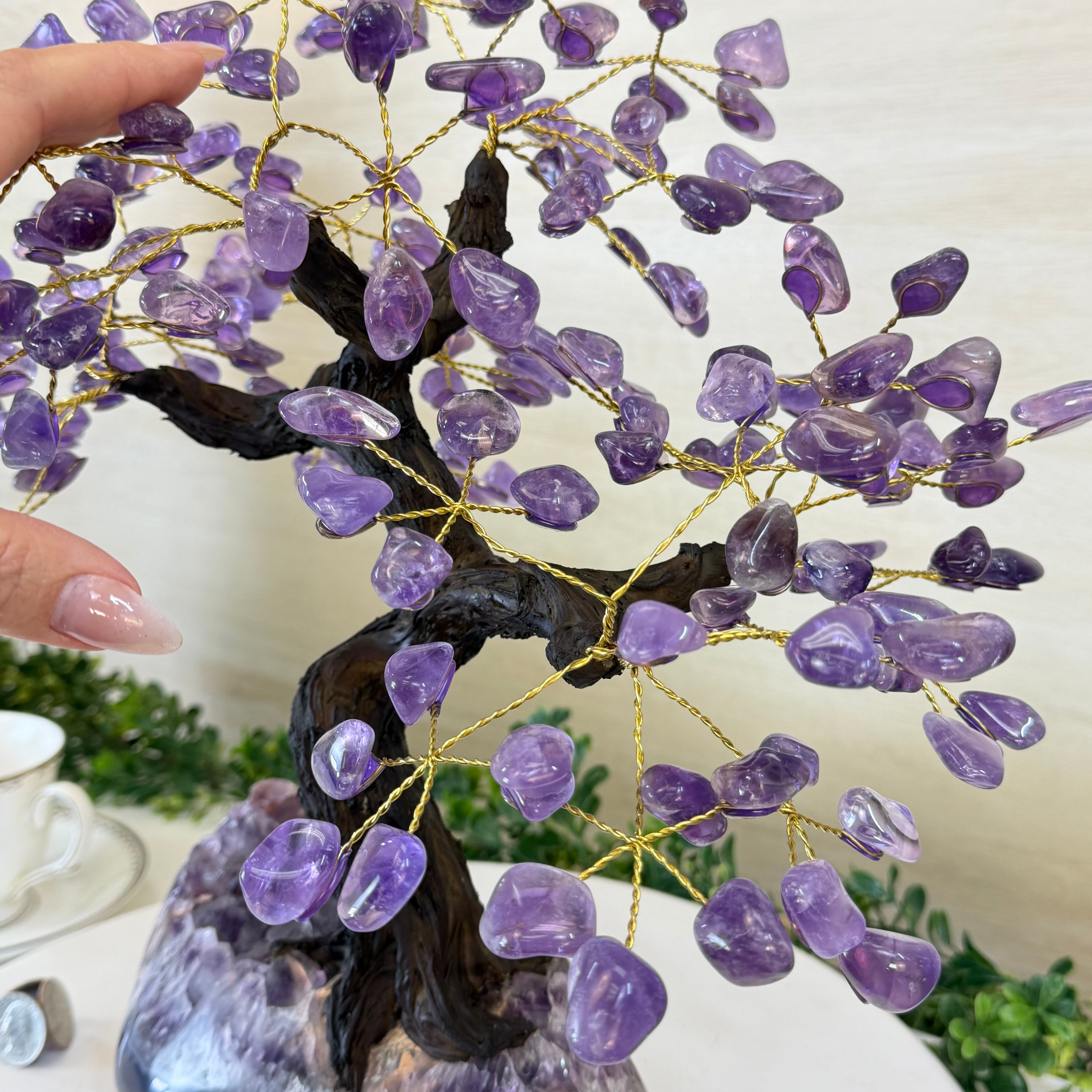 17" Tall Bonsai Amethyst Gemstone Tree, Amethyst base, 240 Gems #5405AMTH-005