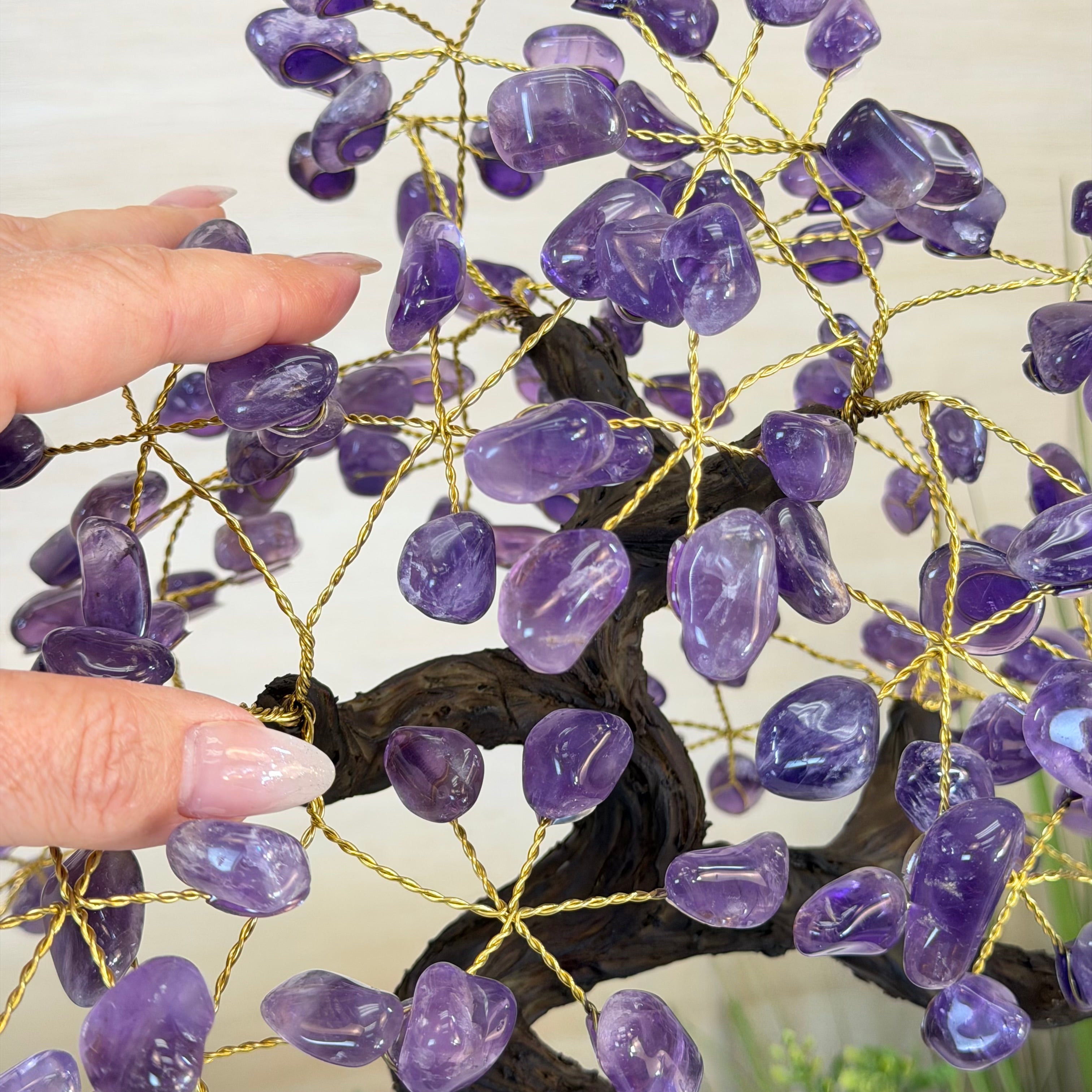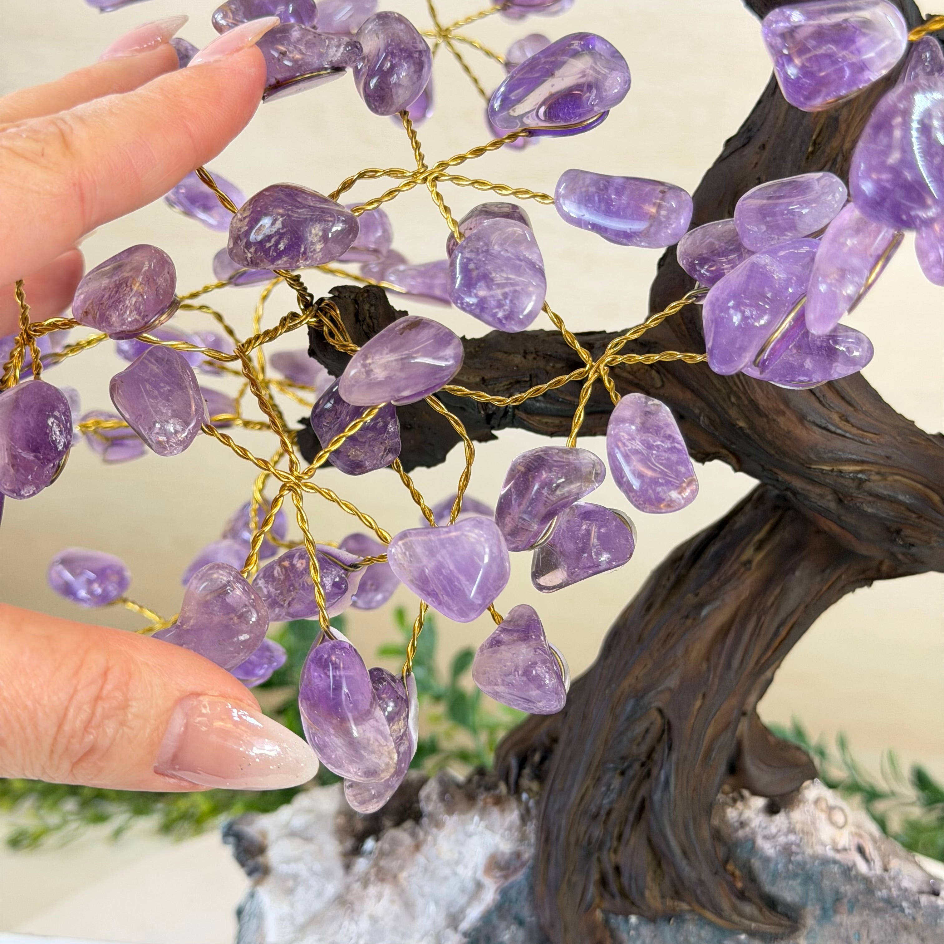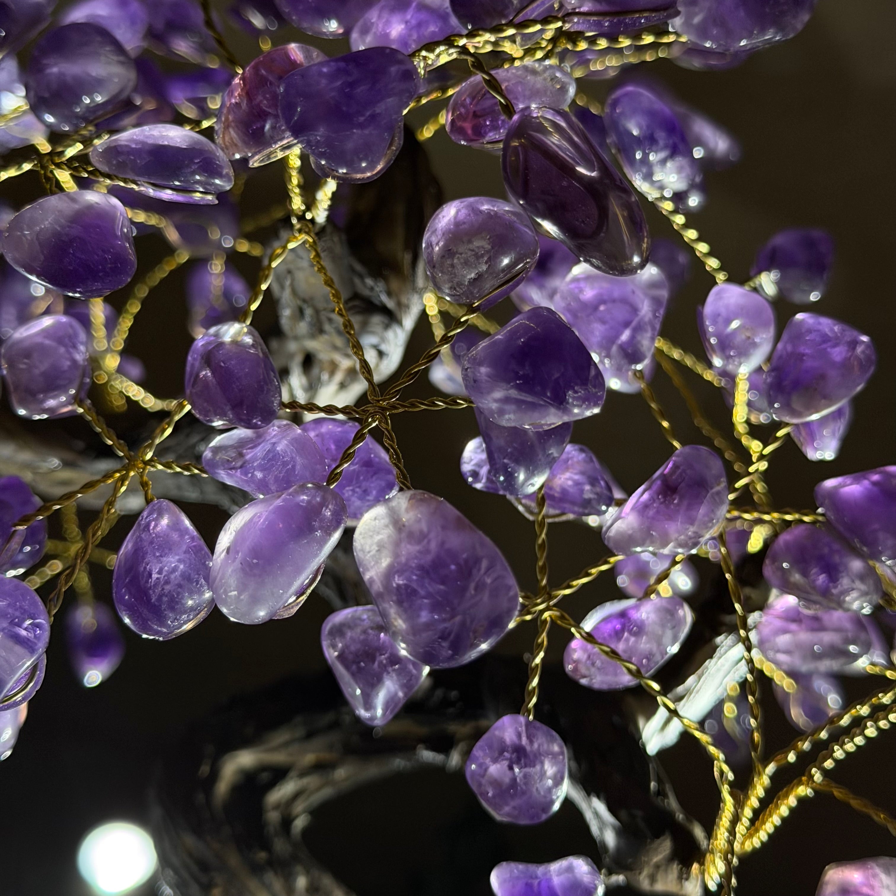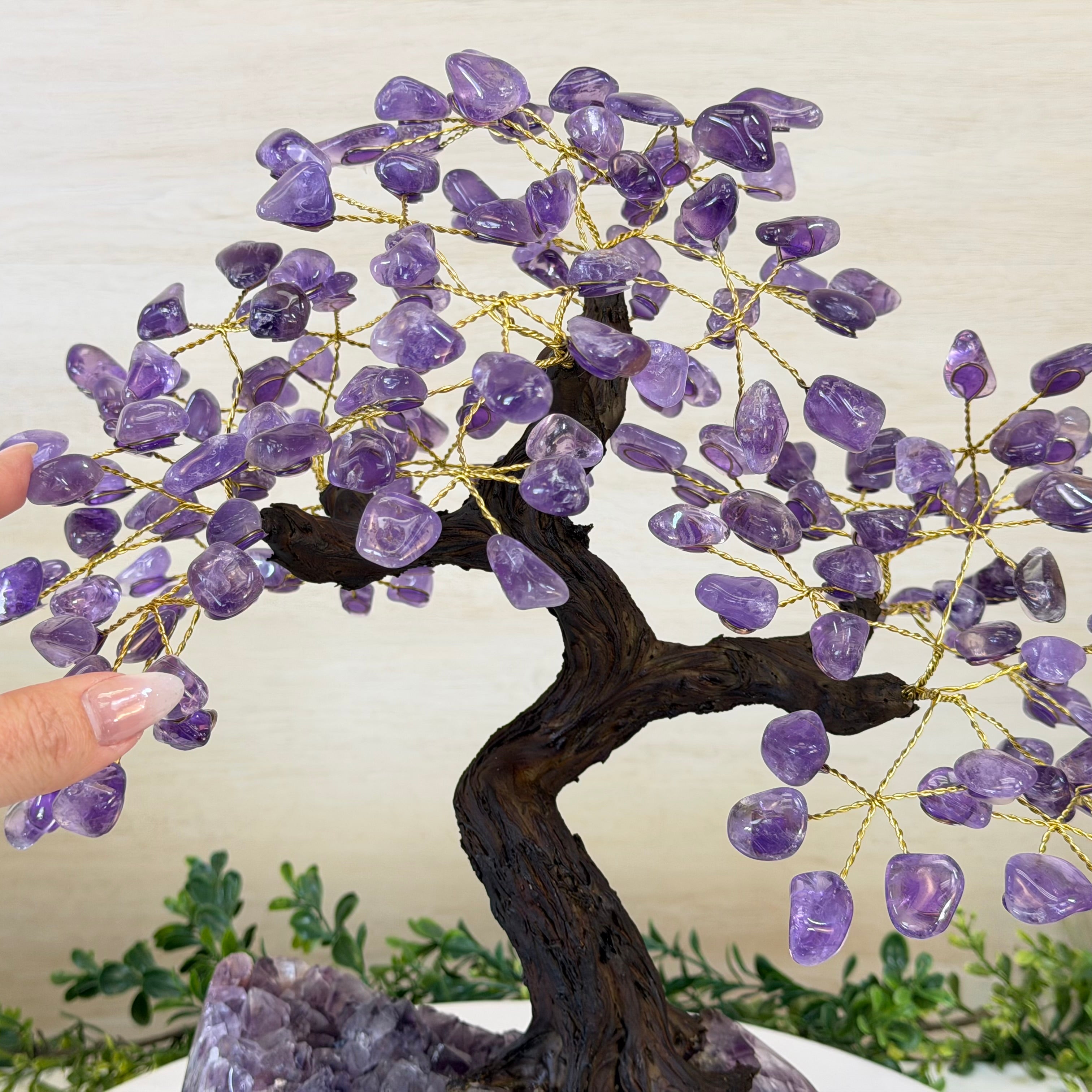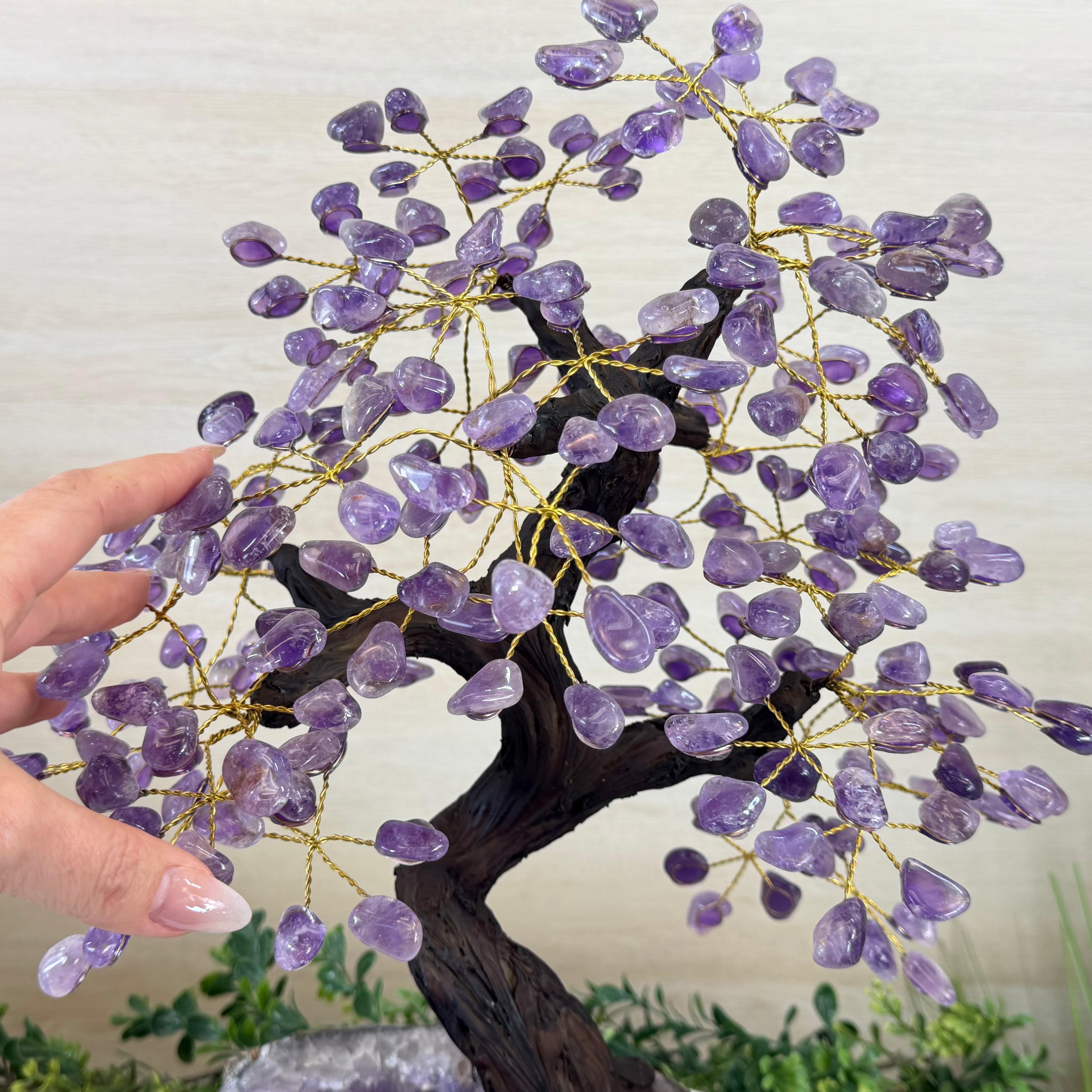 17" Tall Bonsai Amethyst Gemstone Tree, Amethyst base, 240 Gems #5405AMTH-005