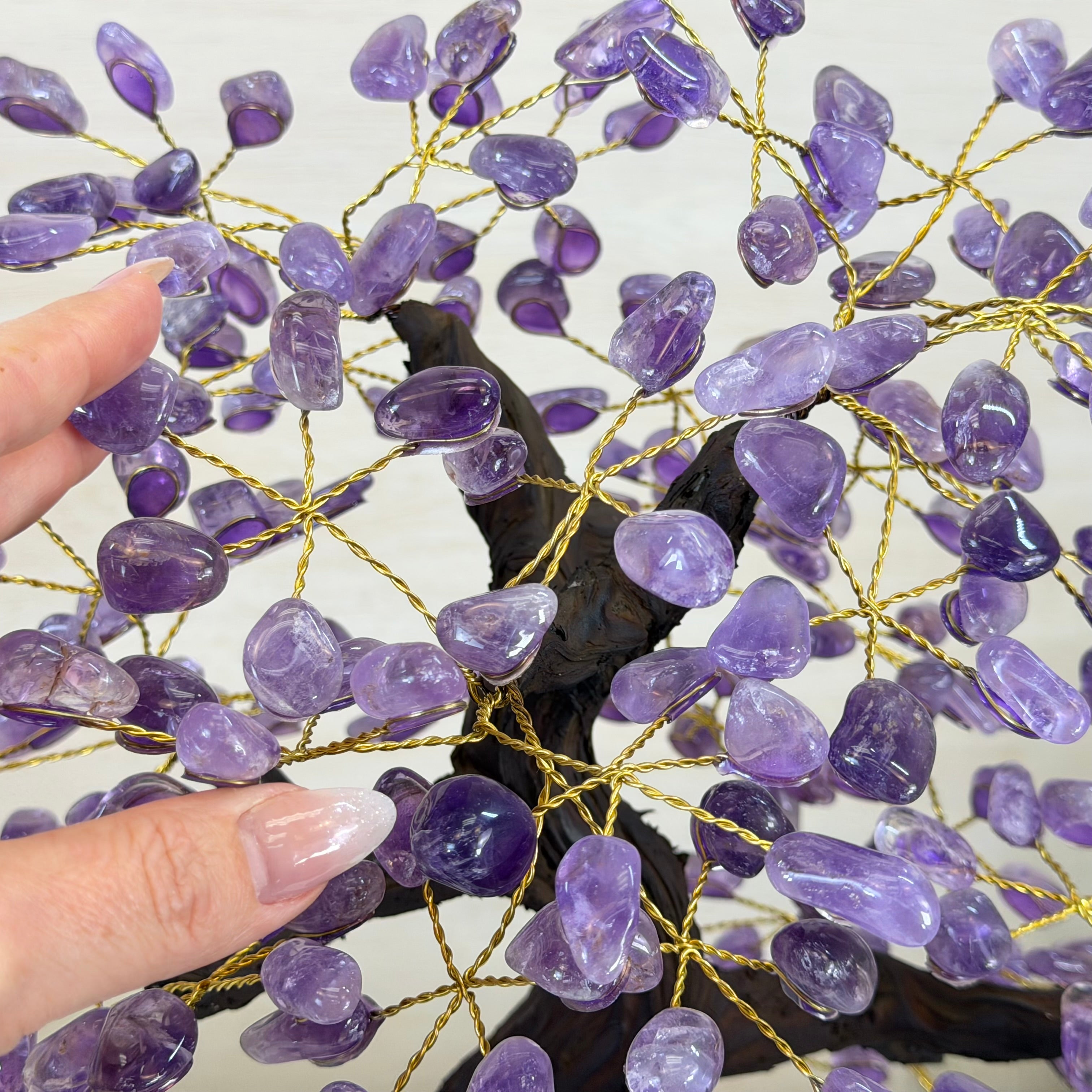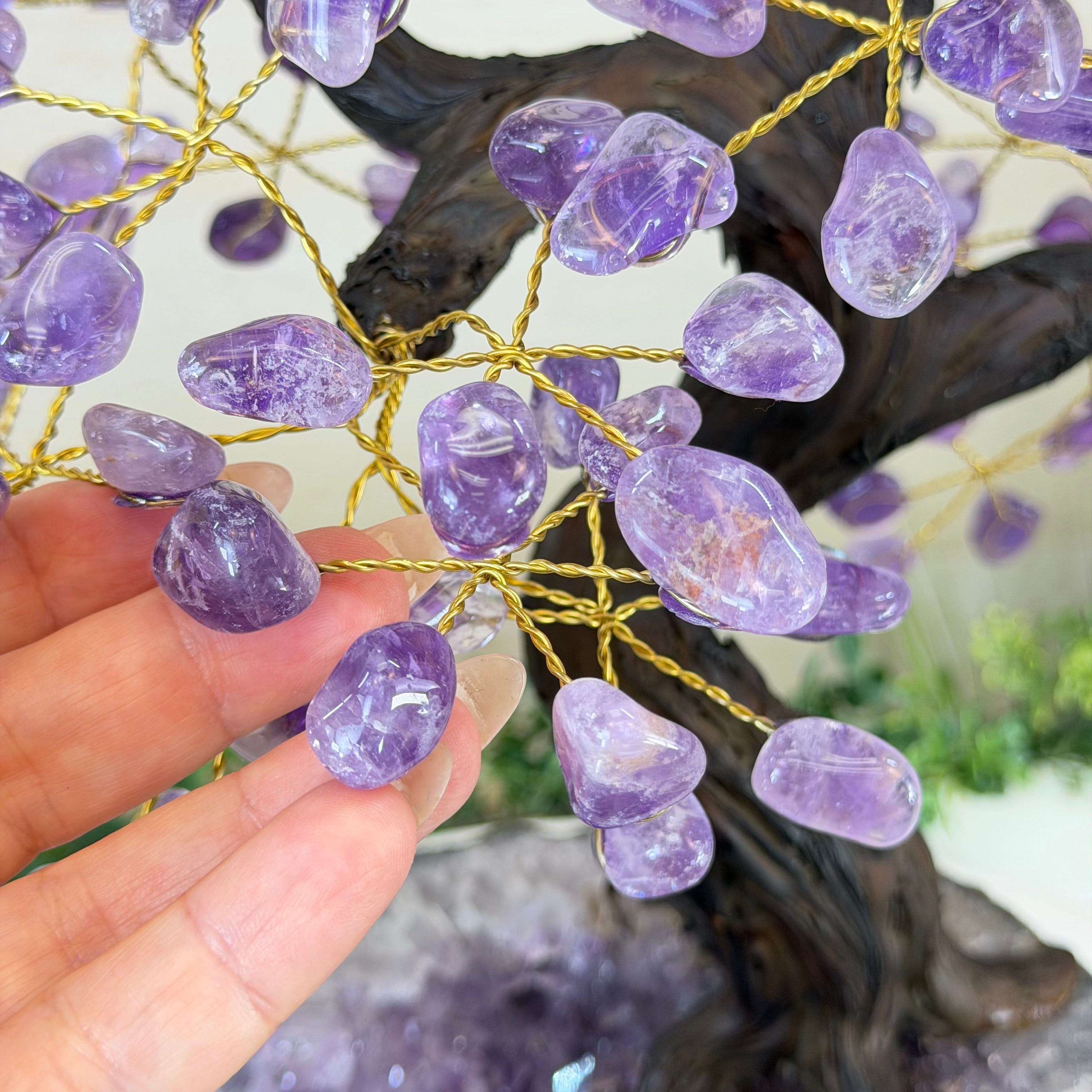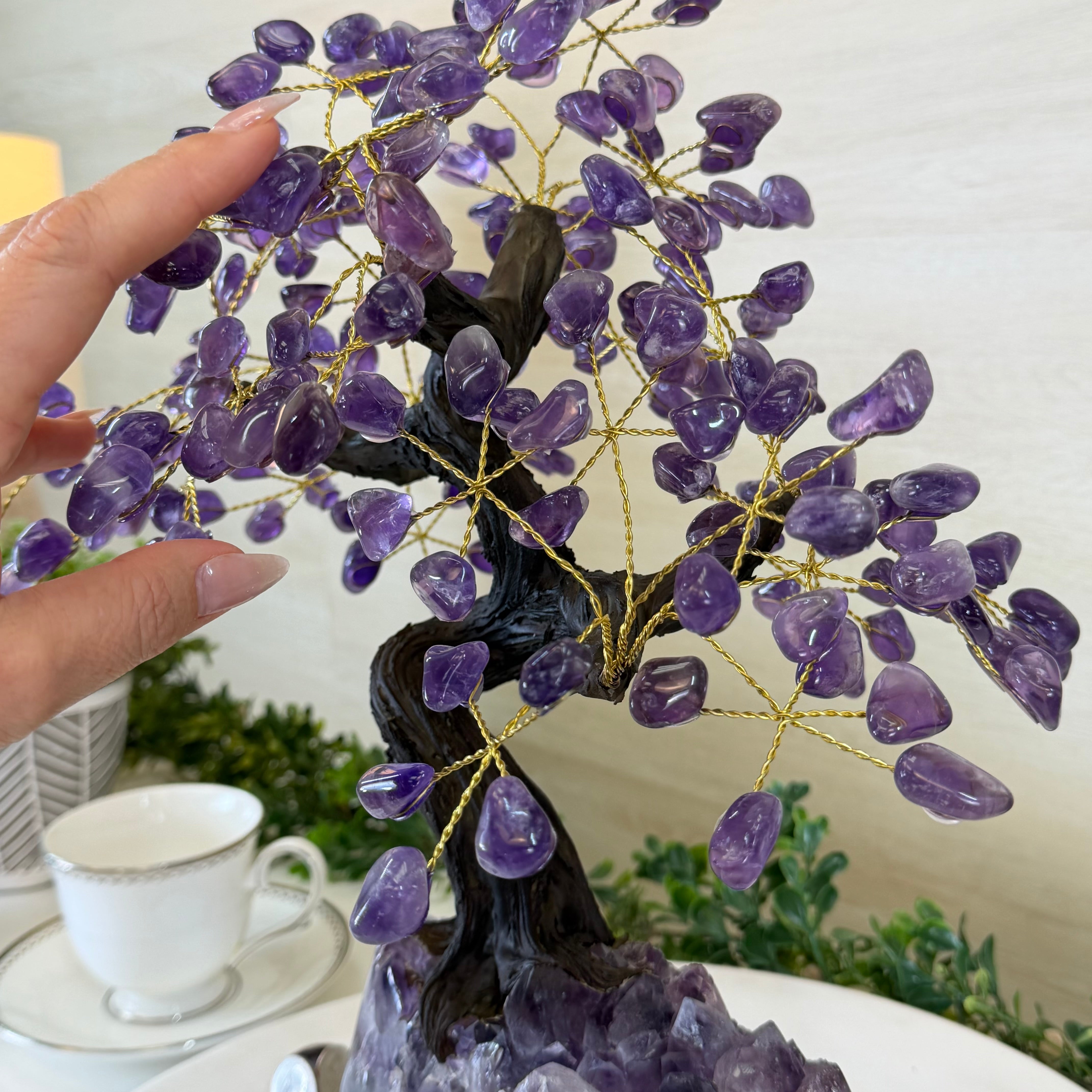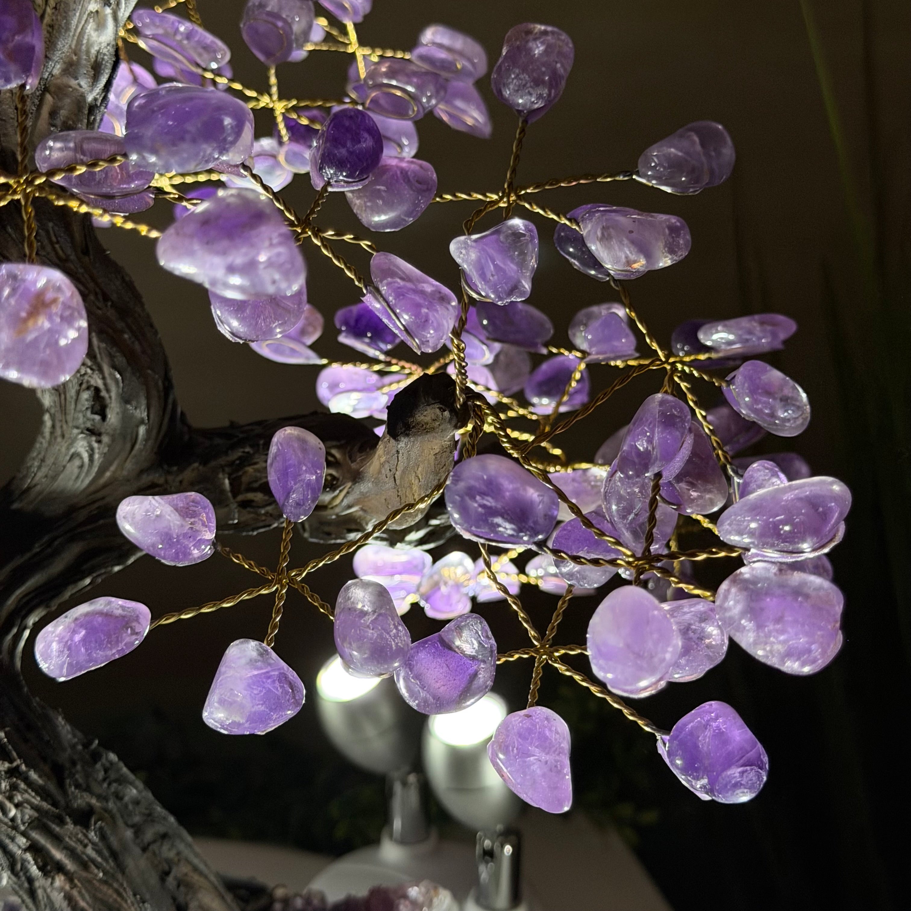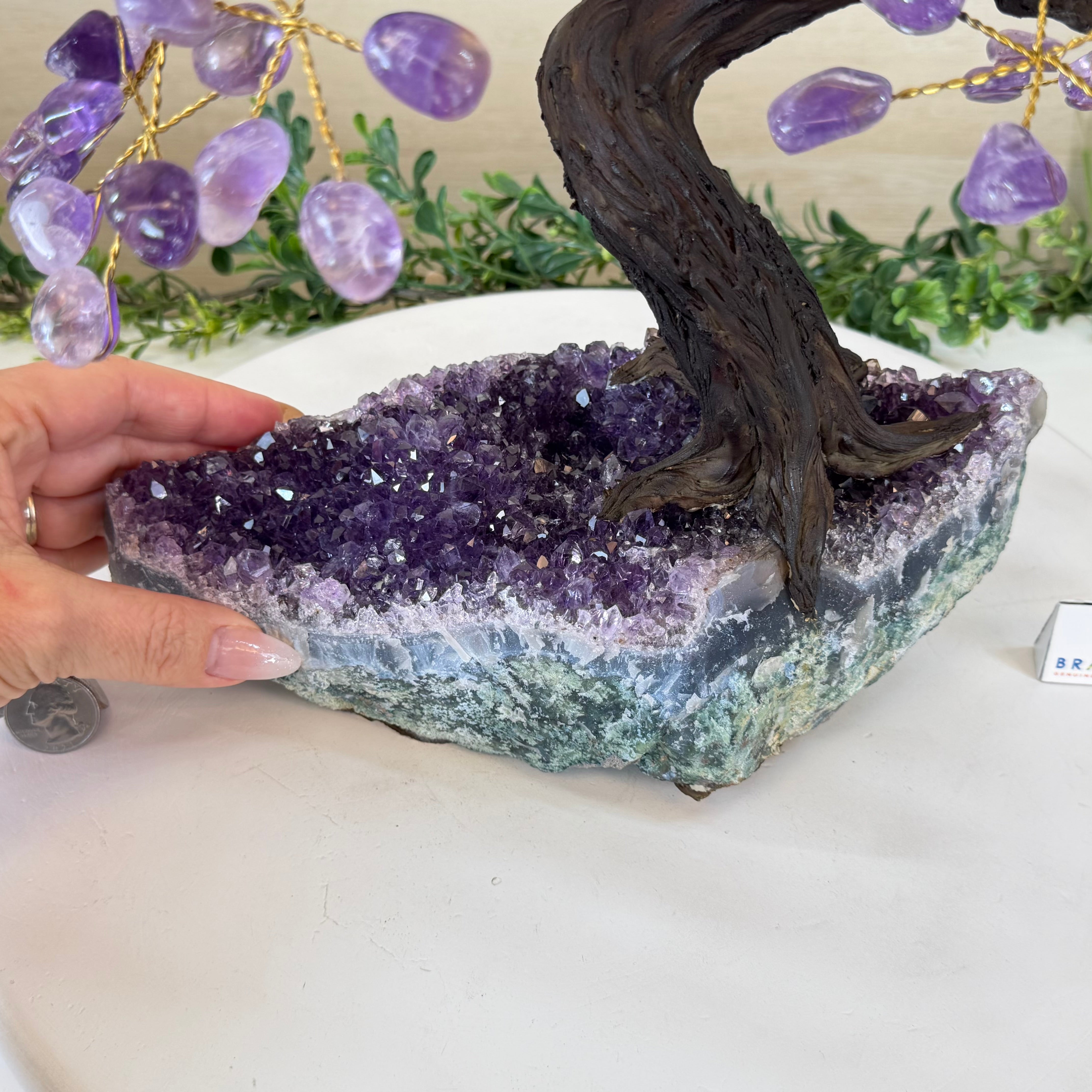 17" Tall Bonsai Amethyst Gemstone Tree, Amethyst base, 240 Gems #5405AMTH-005