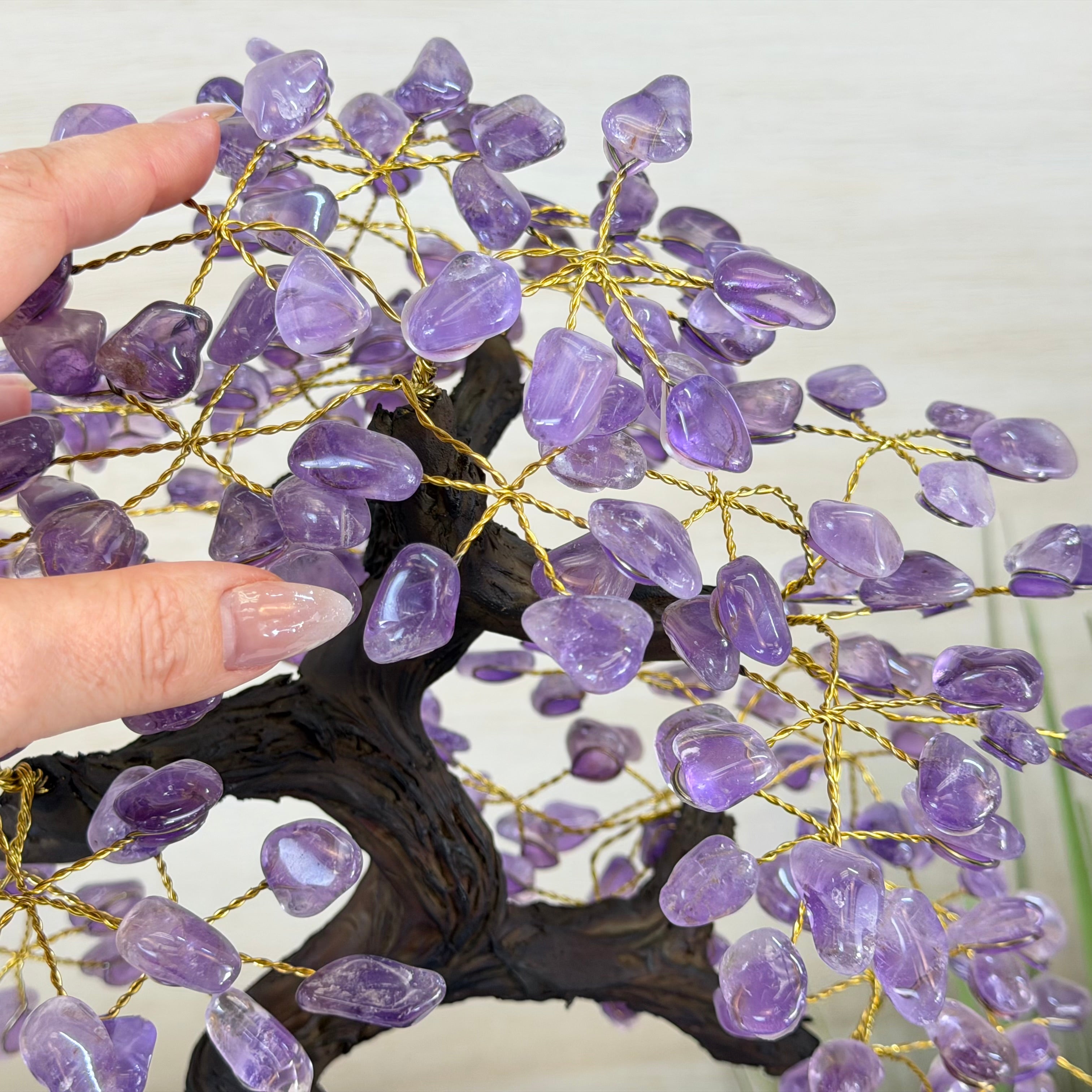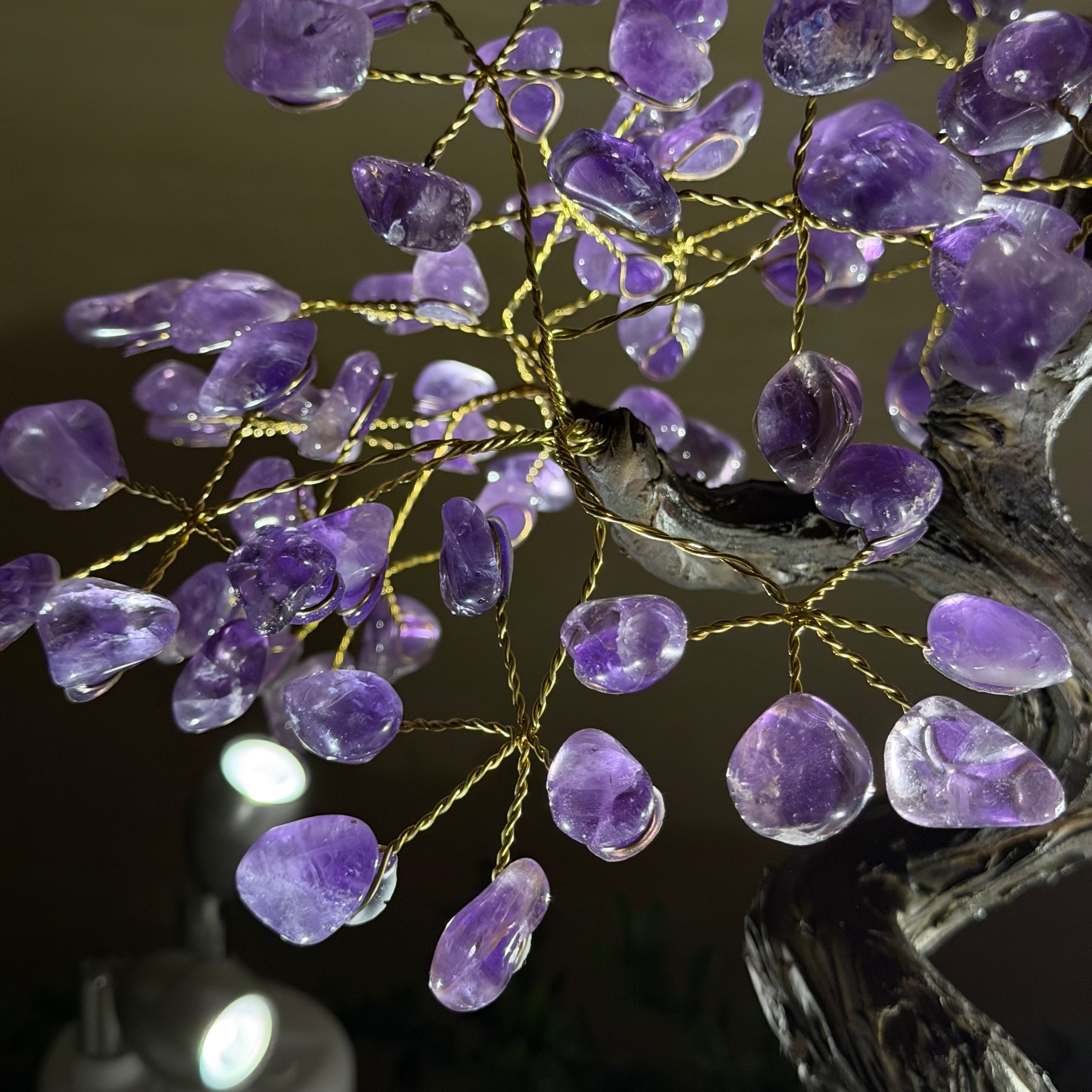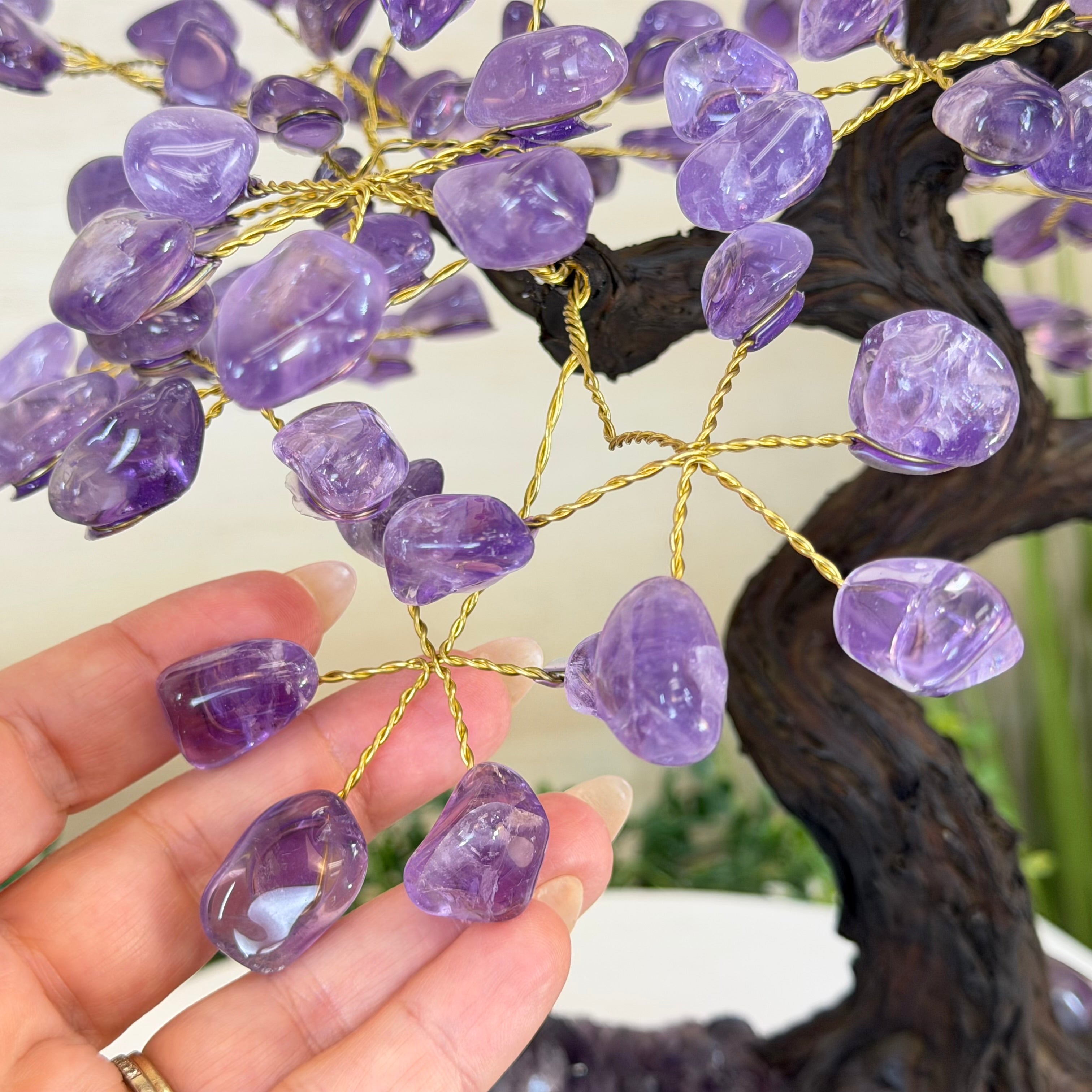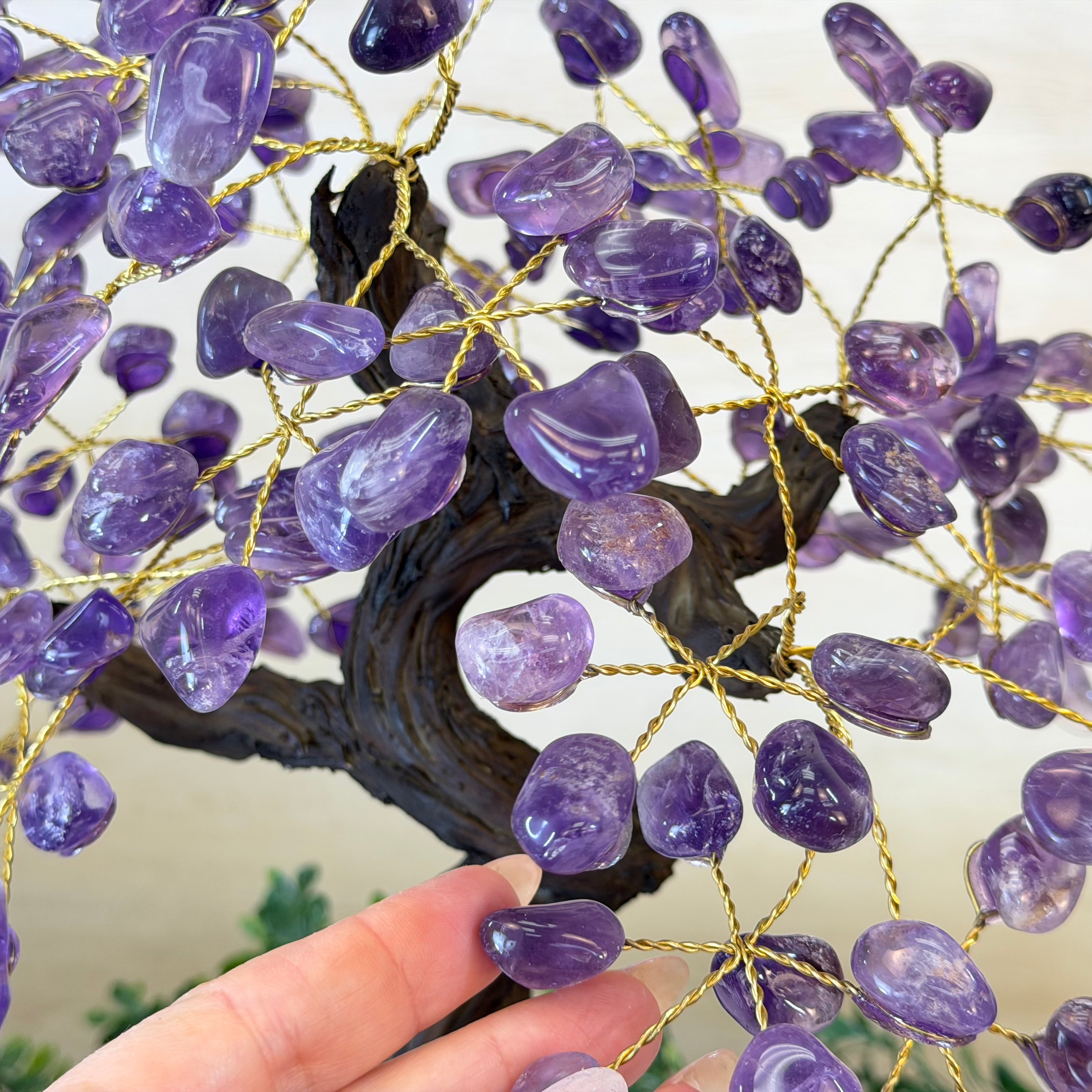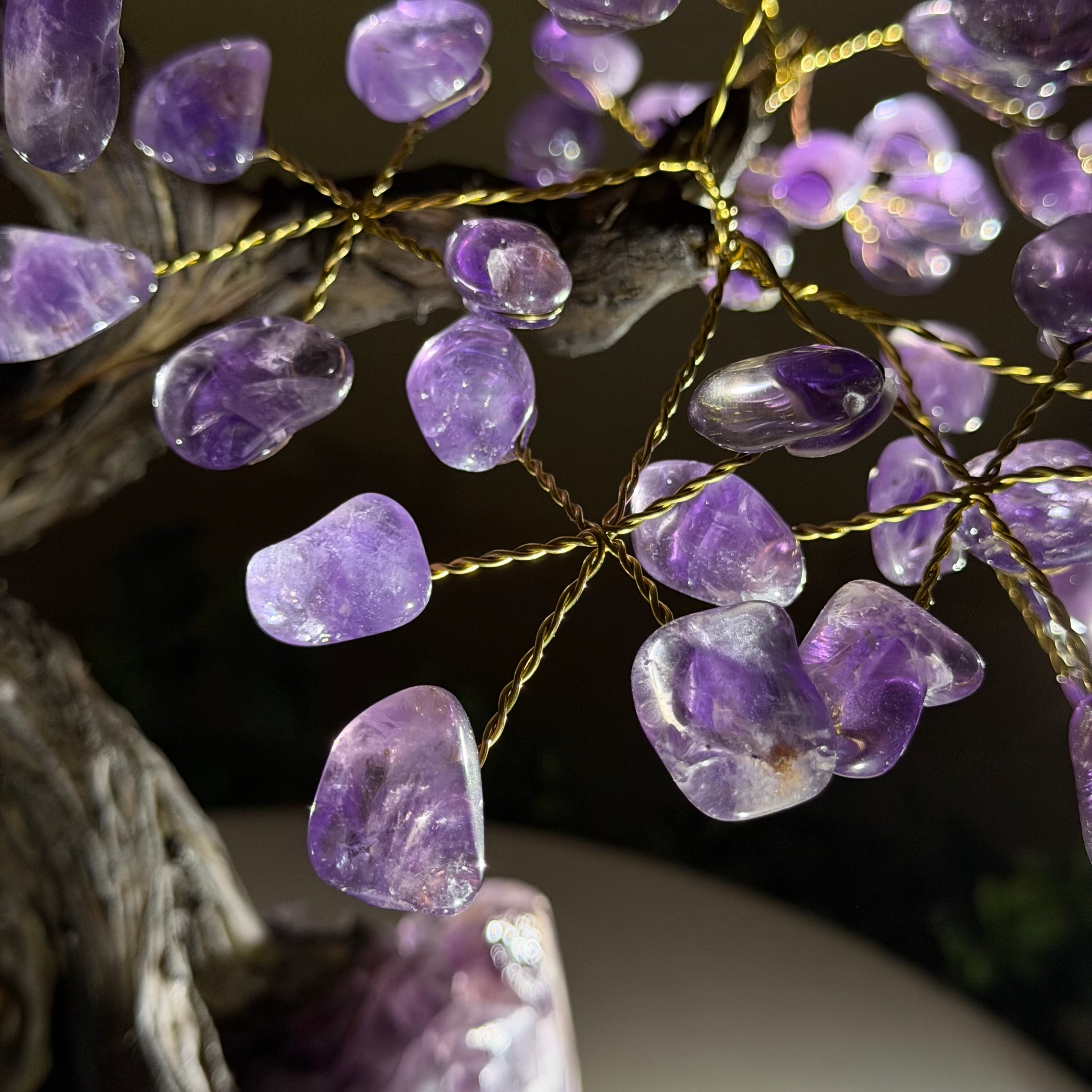 17" Tall Bonsai Amethyst Gemstone Tree, Amethyst base, 240 Gems #5405AMTH-005