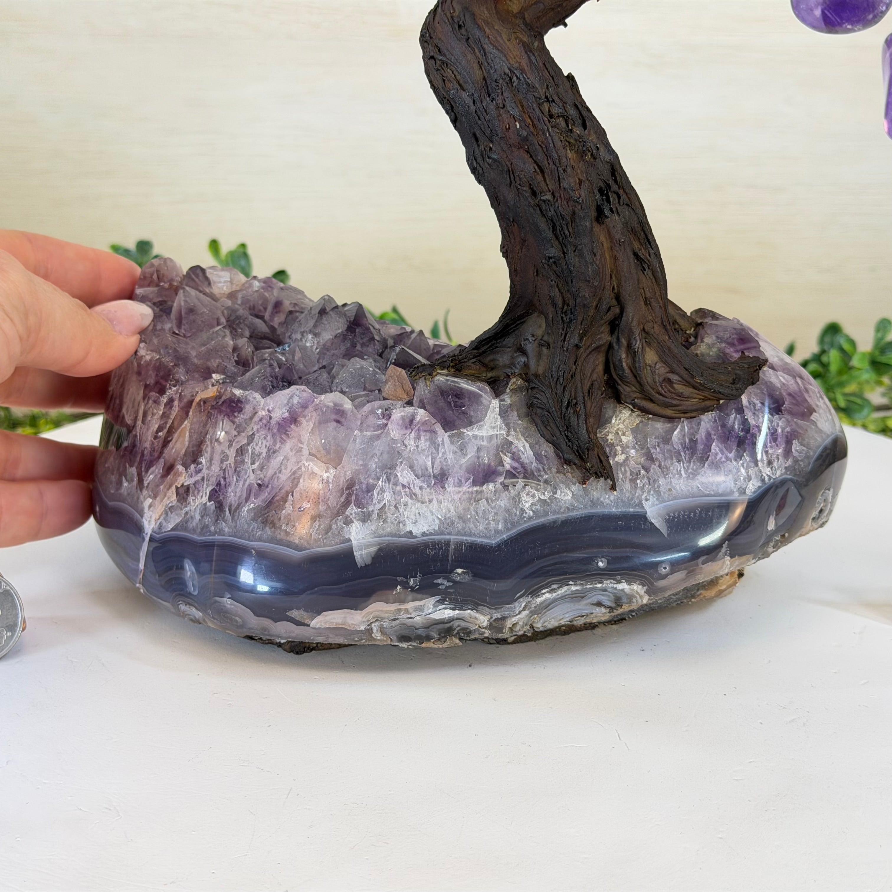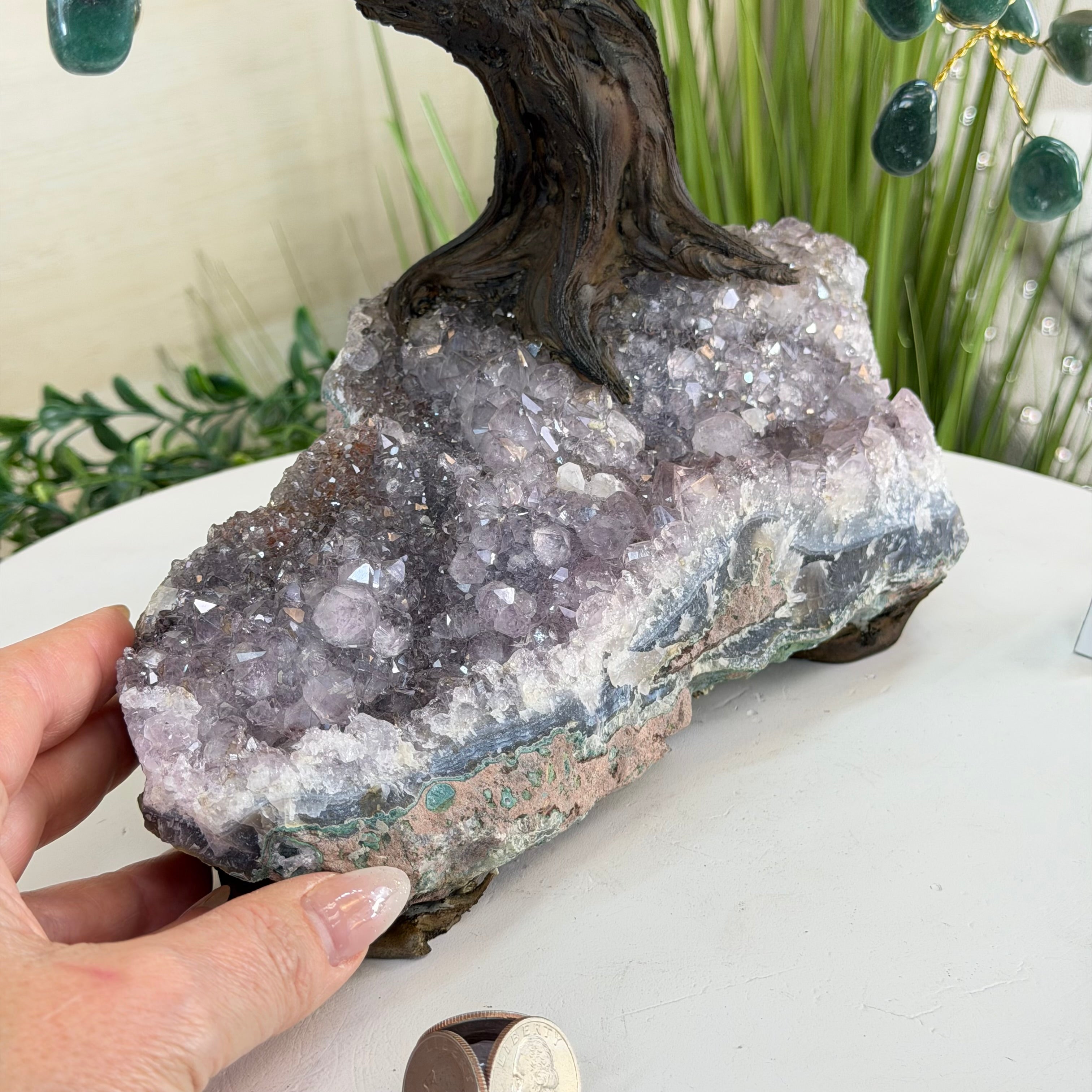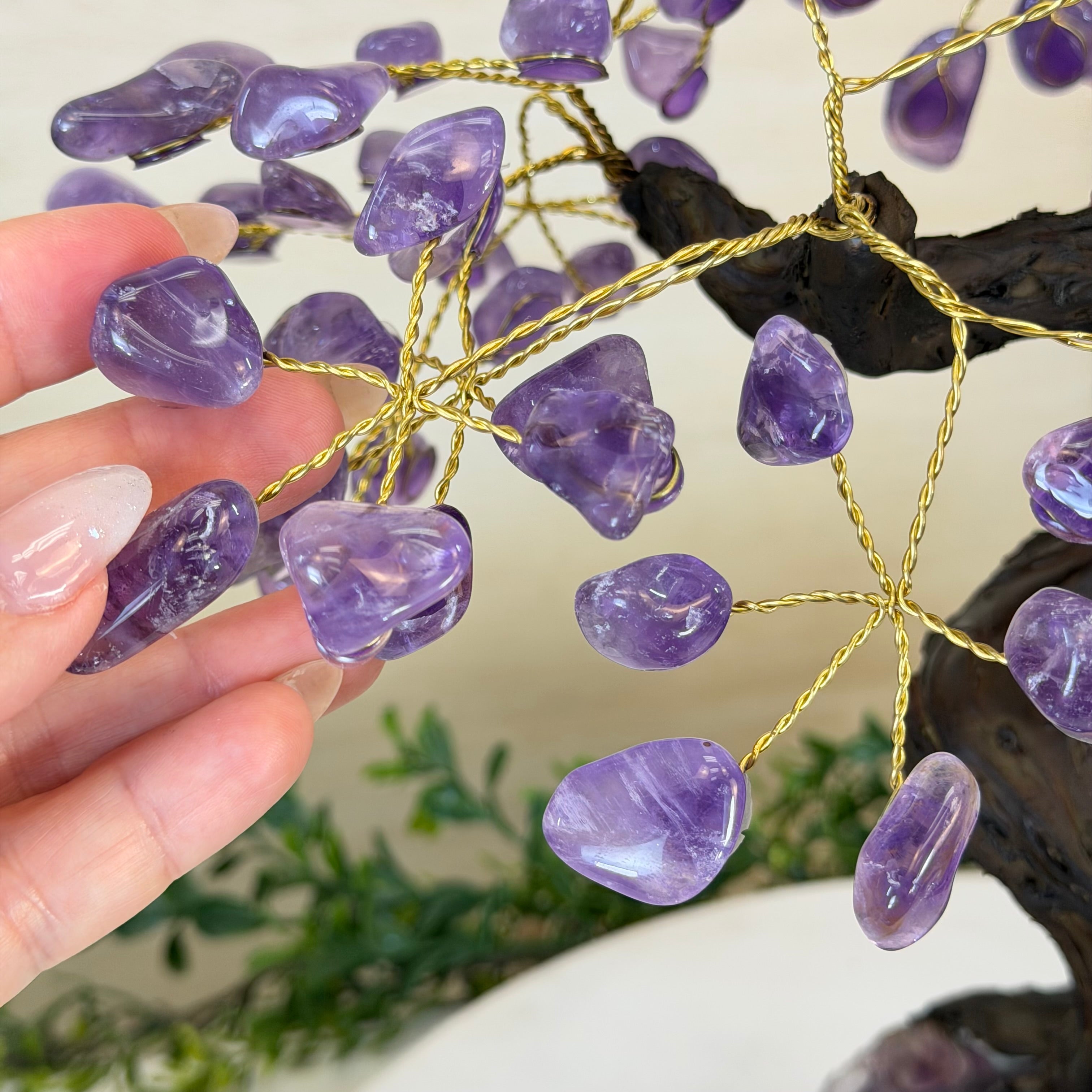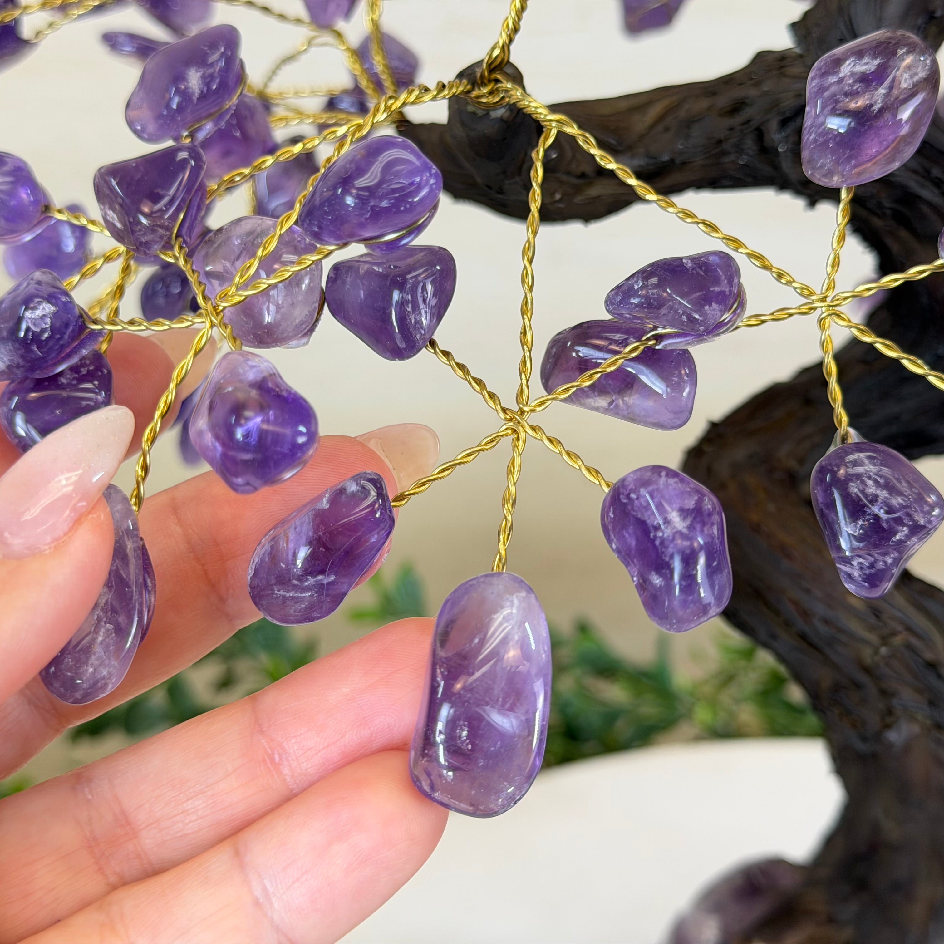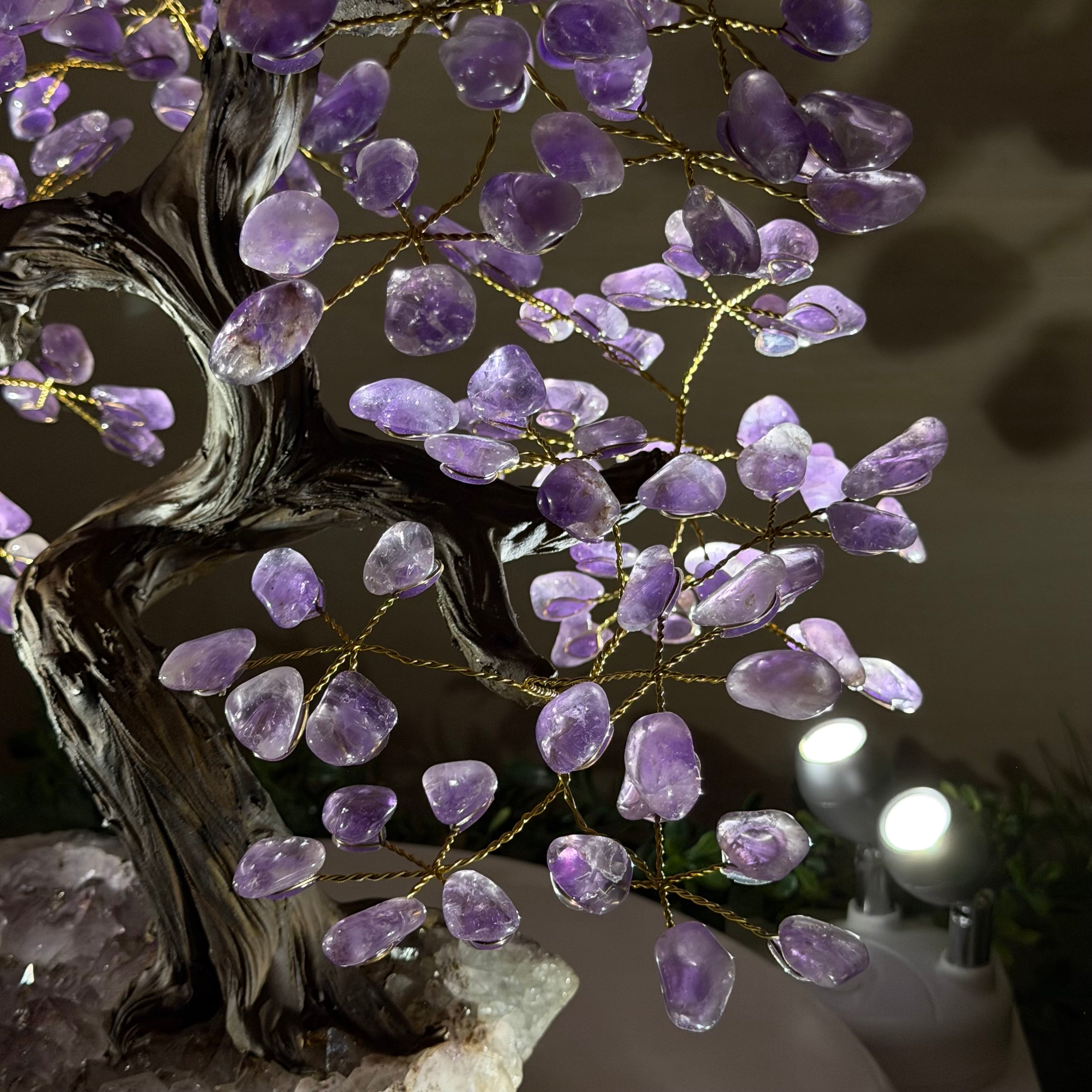 17" Tall Bonsai Amethyst Gemstone Tree, Amethyst base, 240 Gems #5405AMTH-005