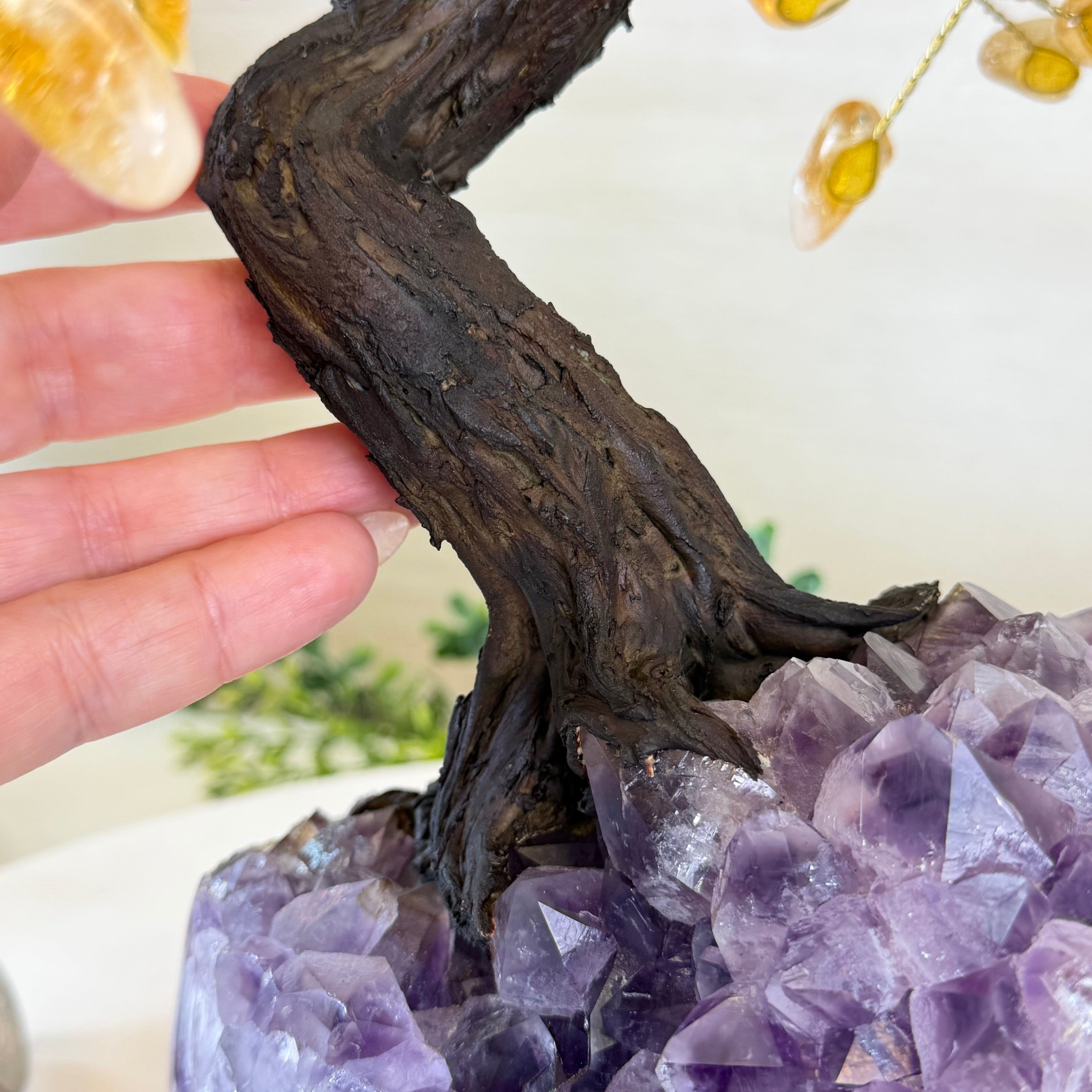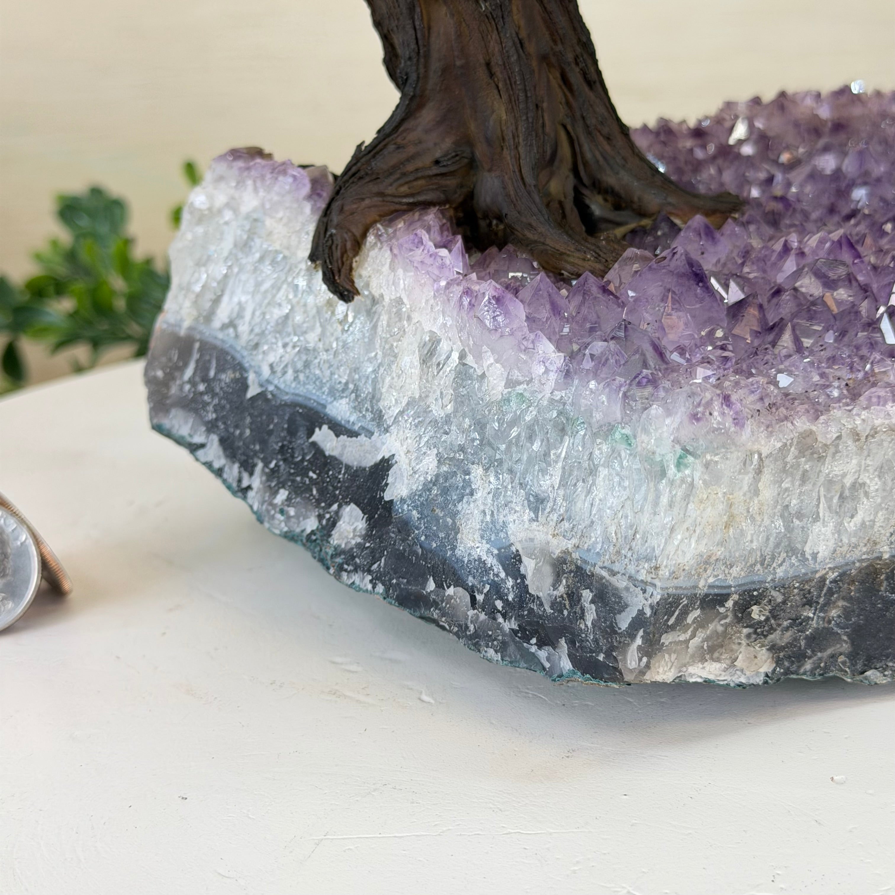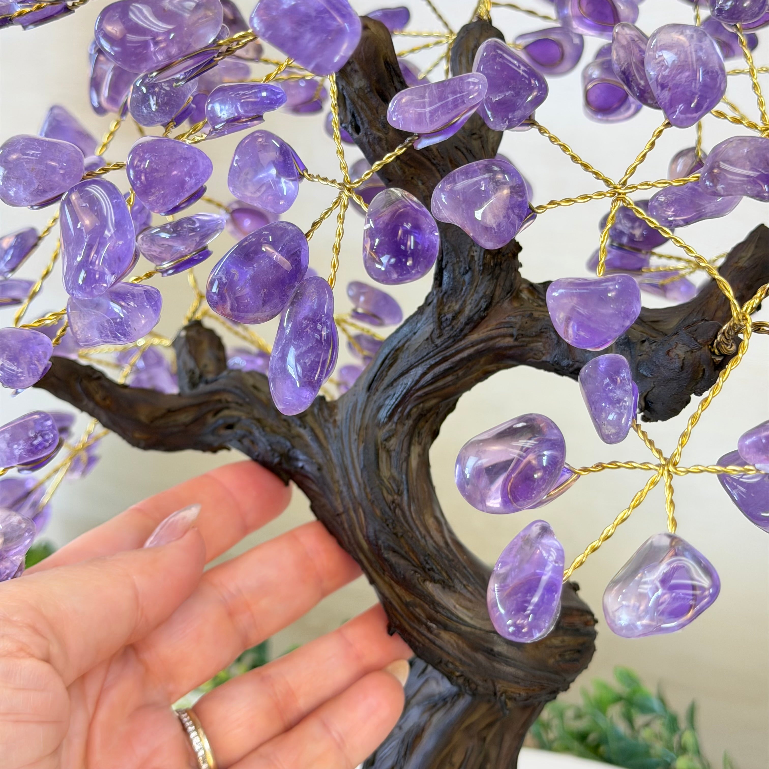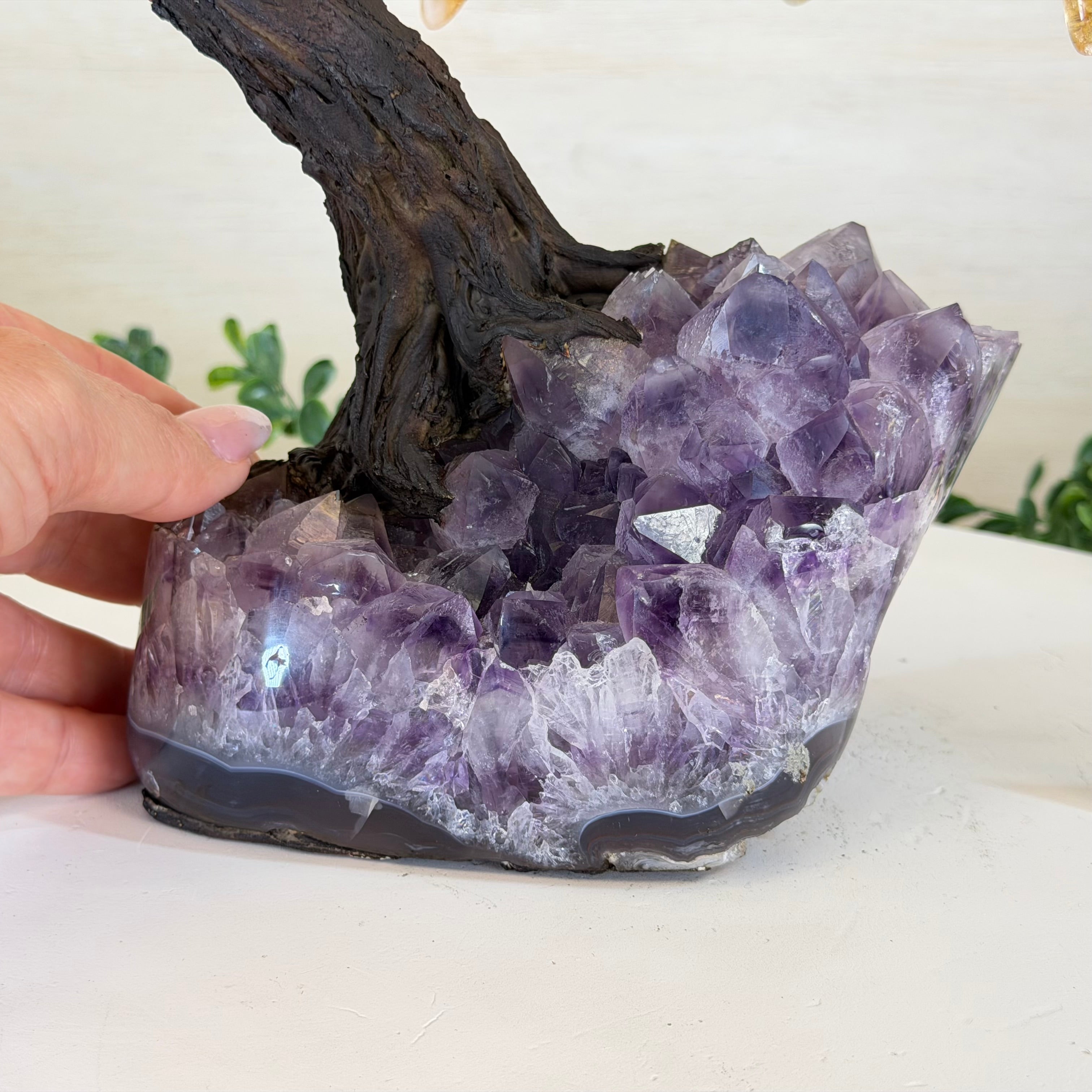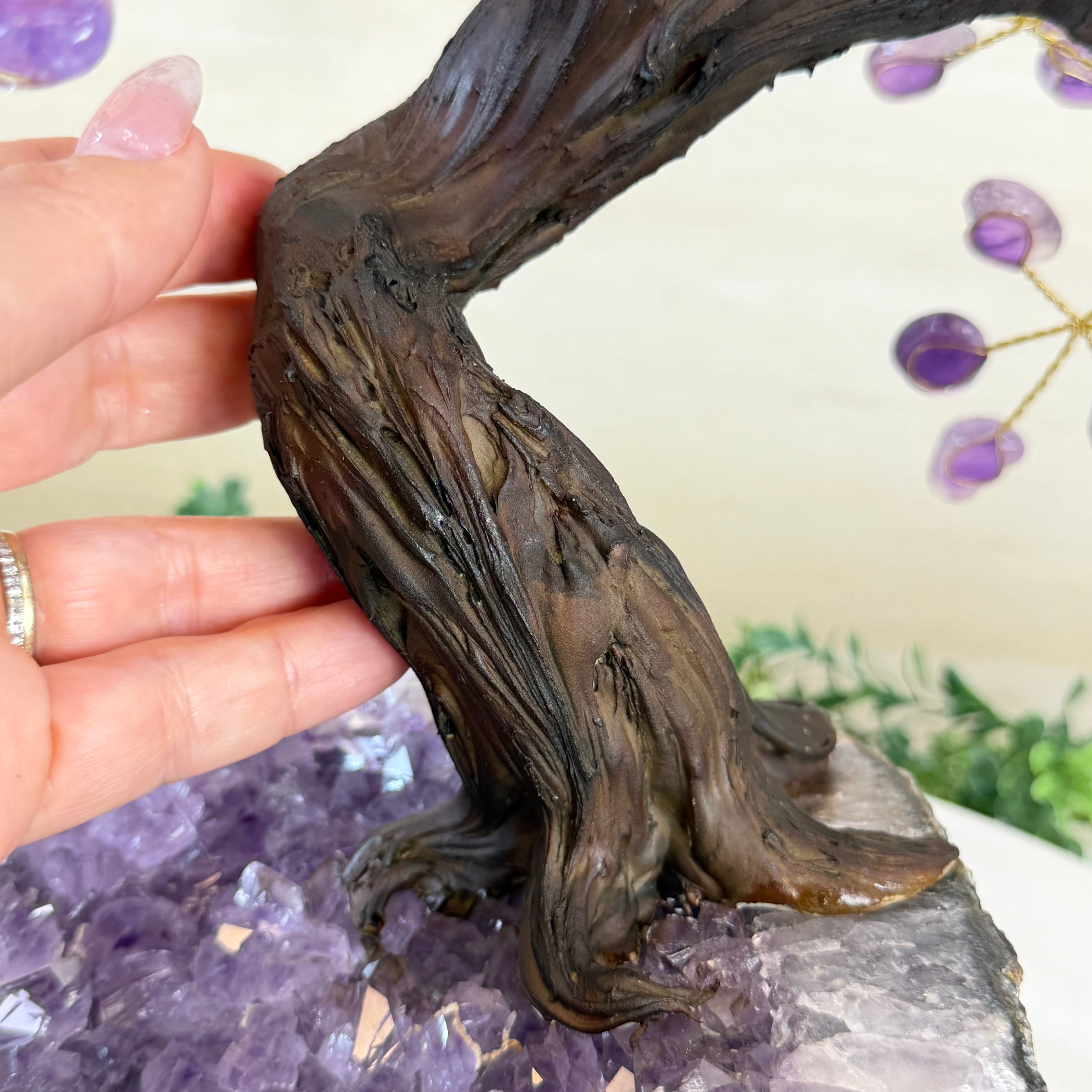 17" Tall Bonsai Amethyst Gemstone Tree, Amethyst base, 240 Gems #5405AMTH-005