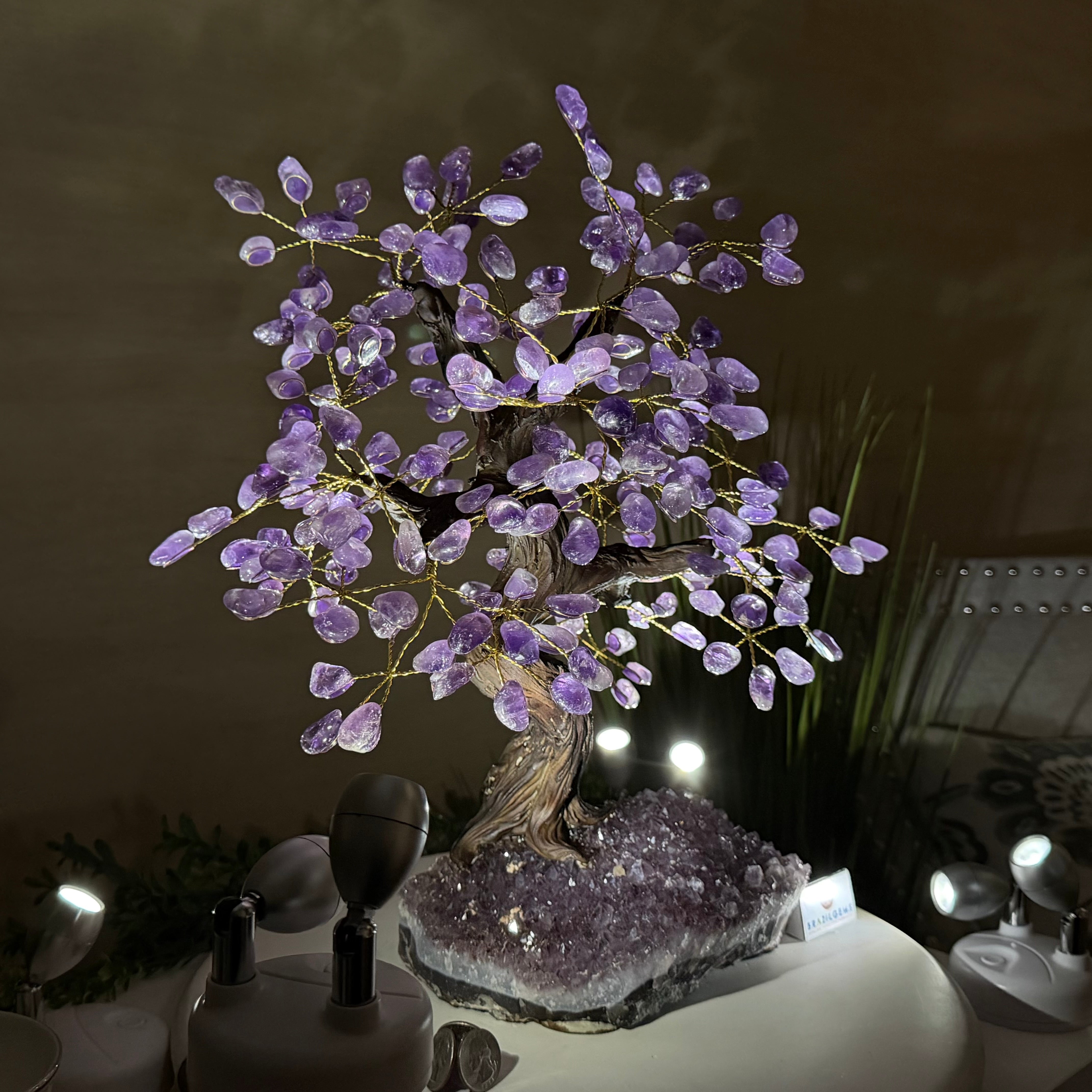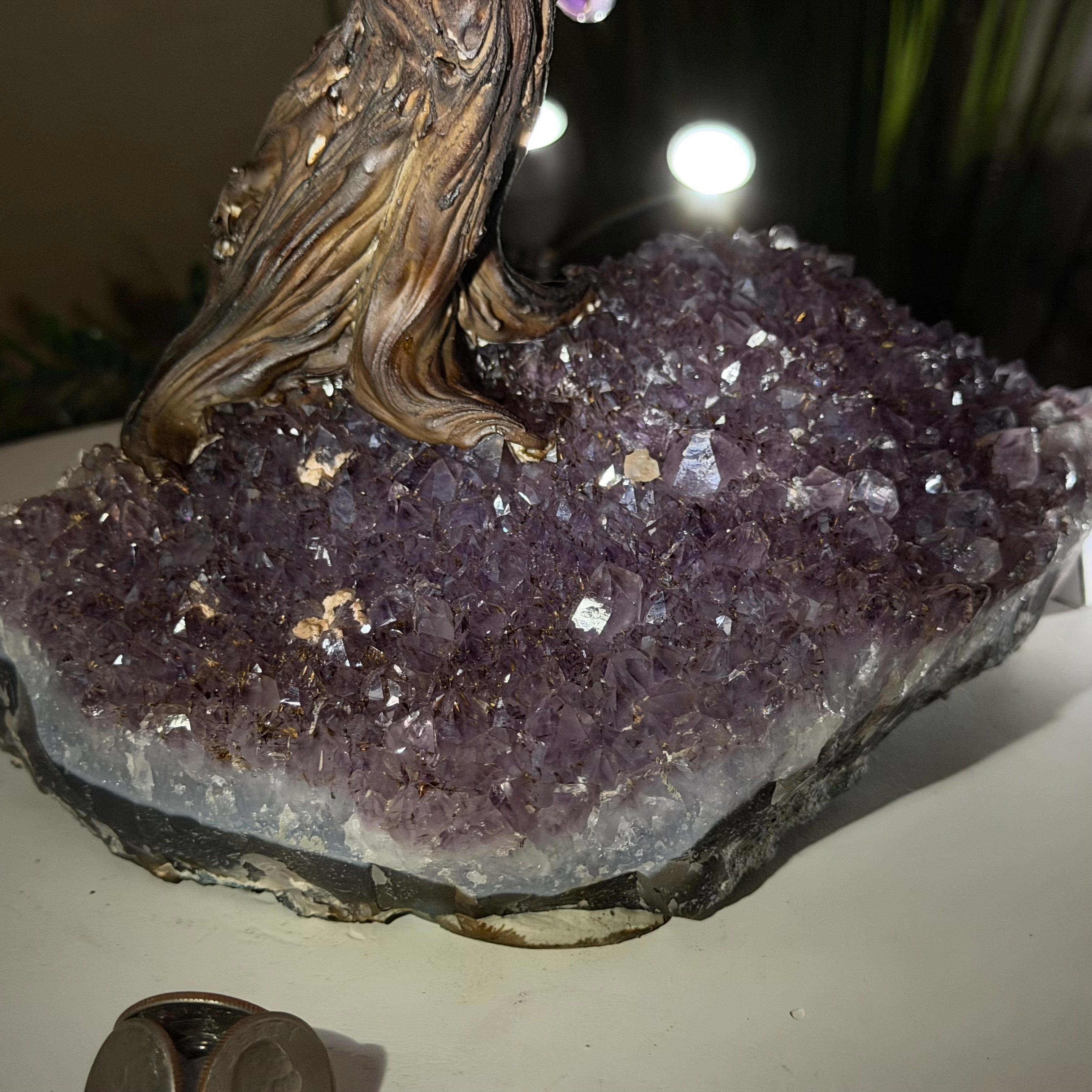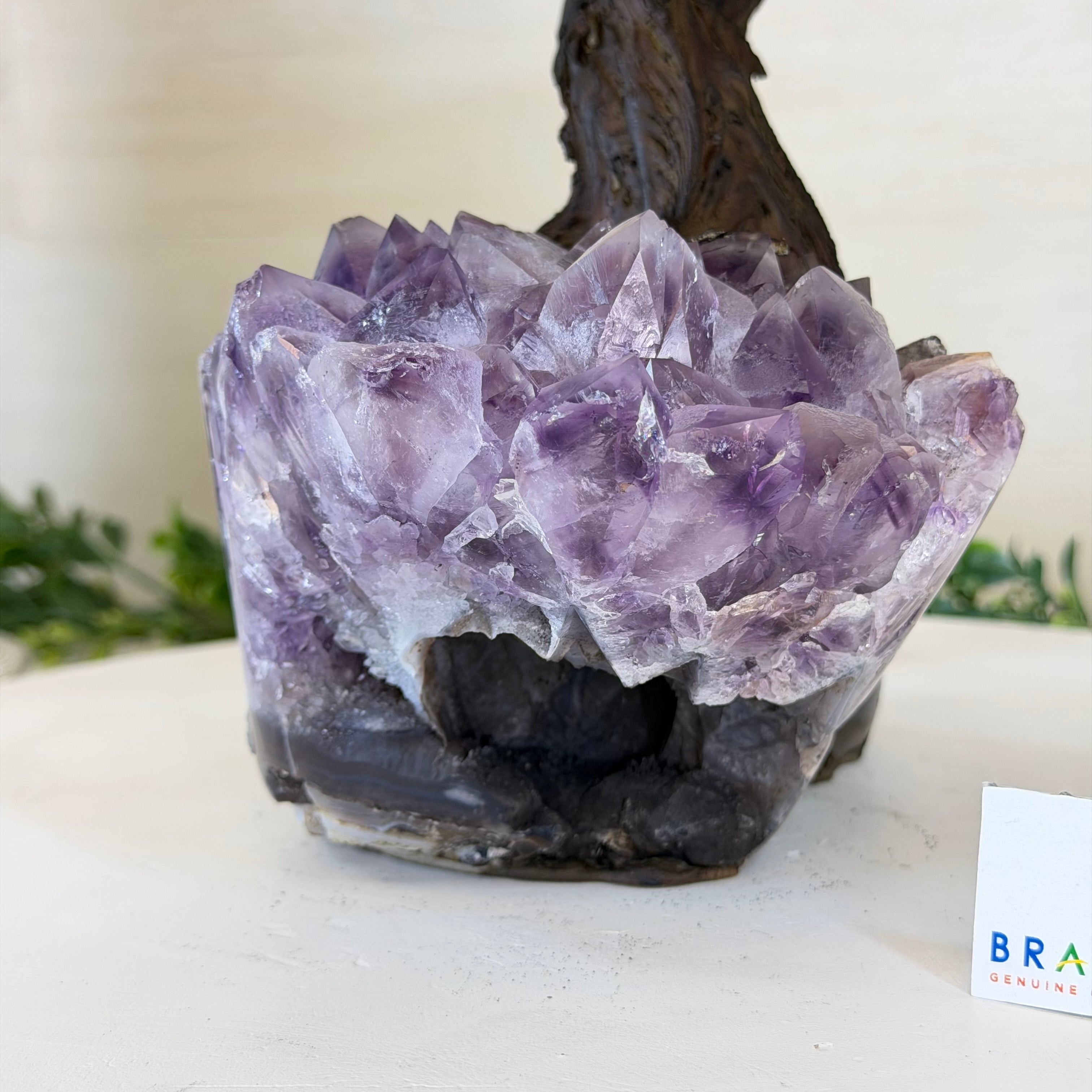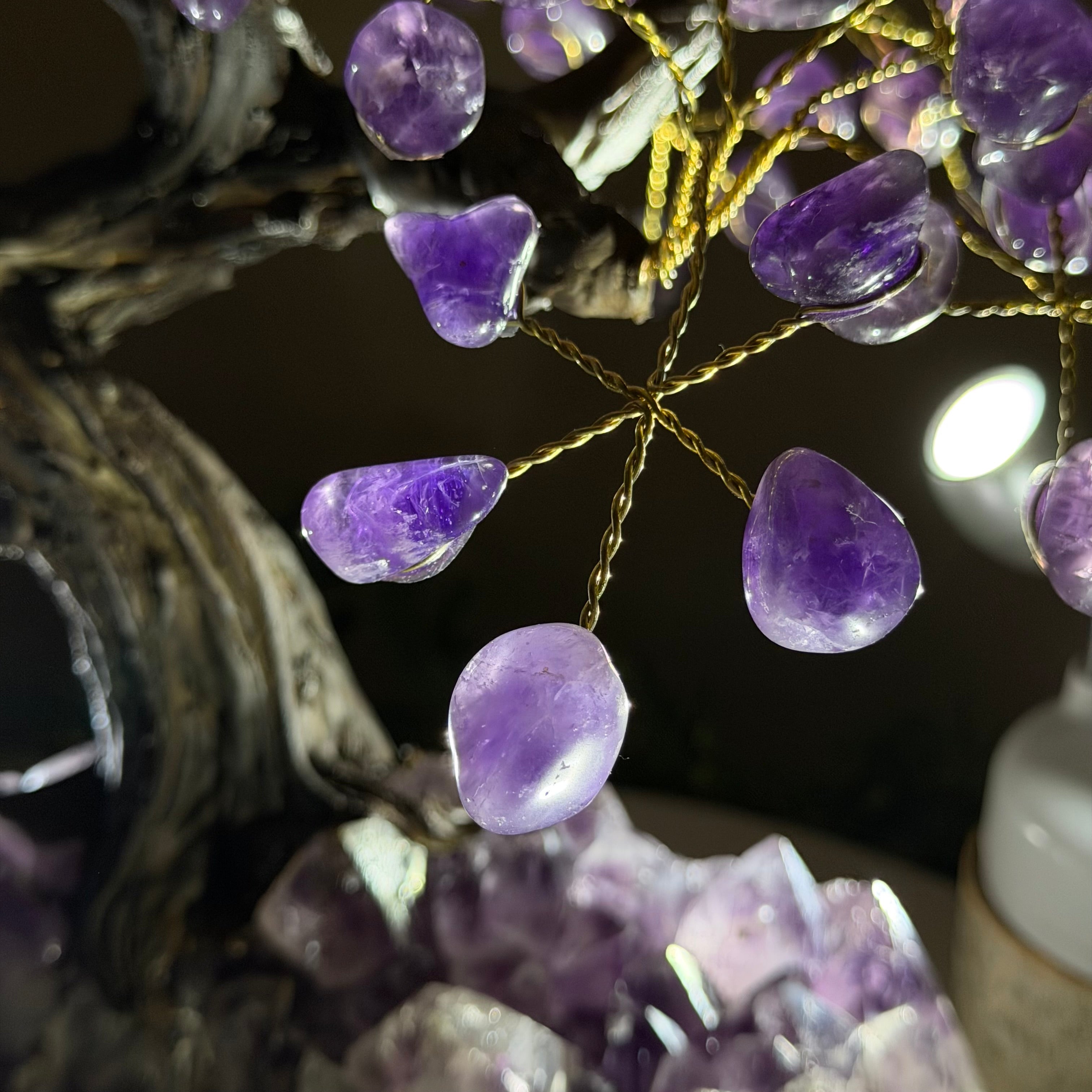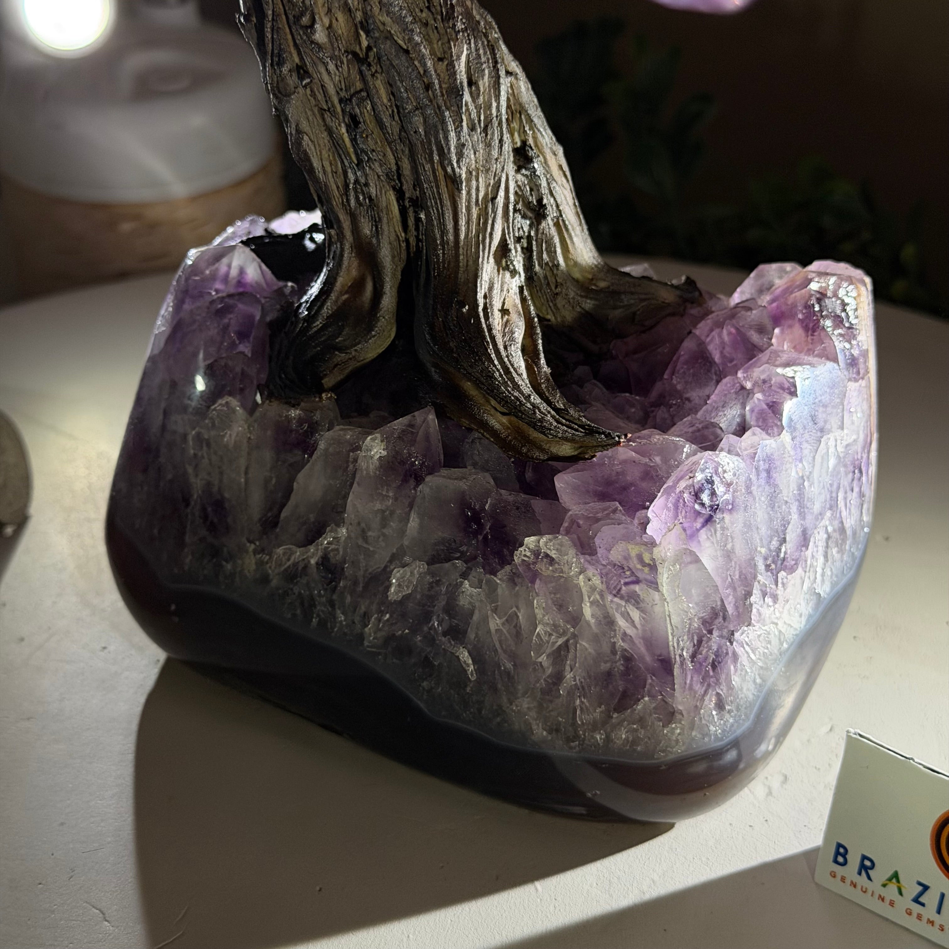 17" Tall Bonsai Amethyst Gemstone Tree, Amethyst base, 240 Gems #5405AMTH-005