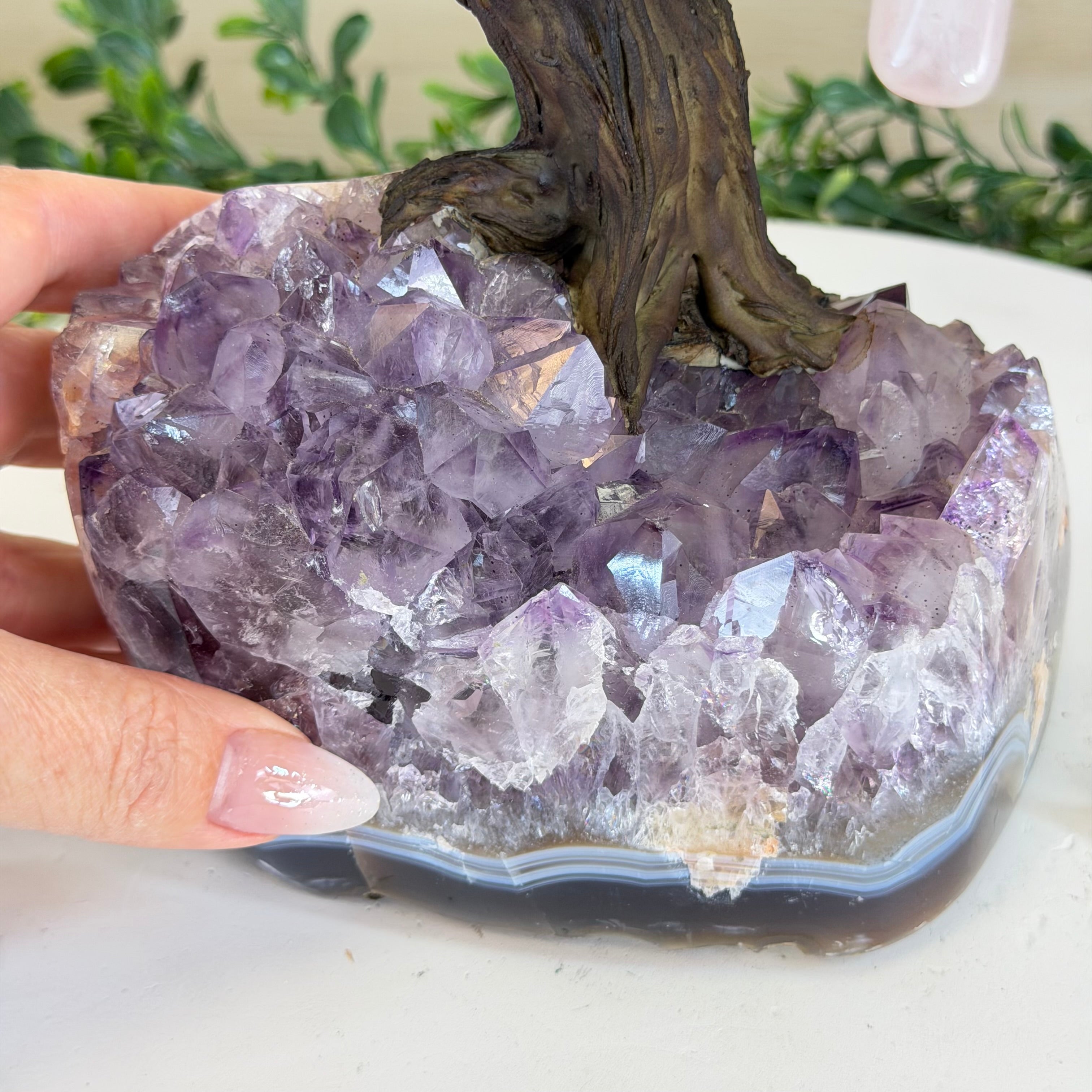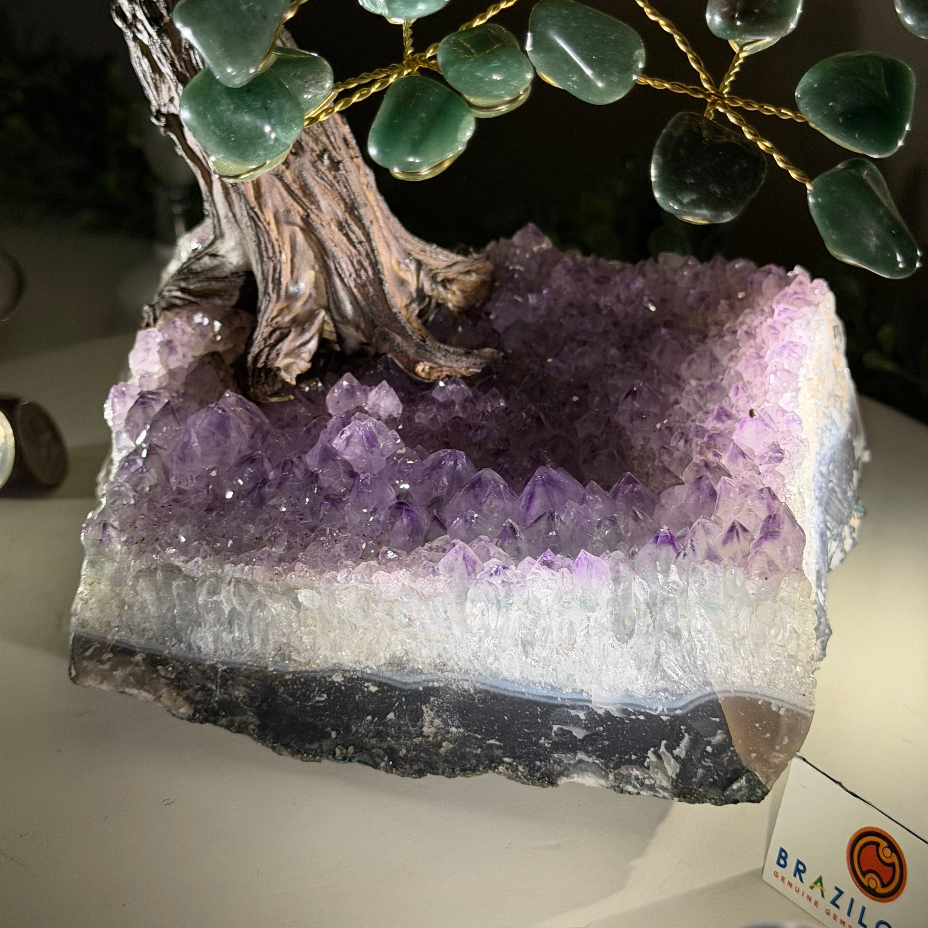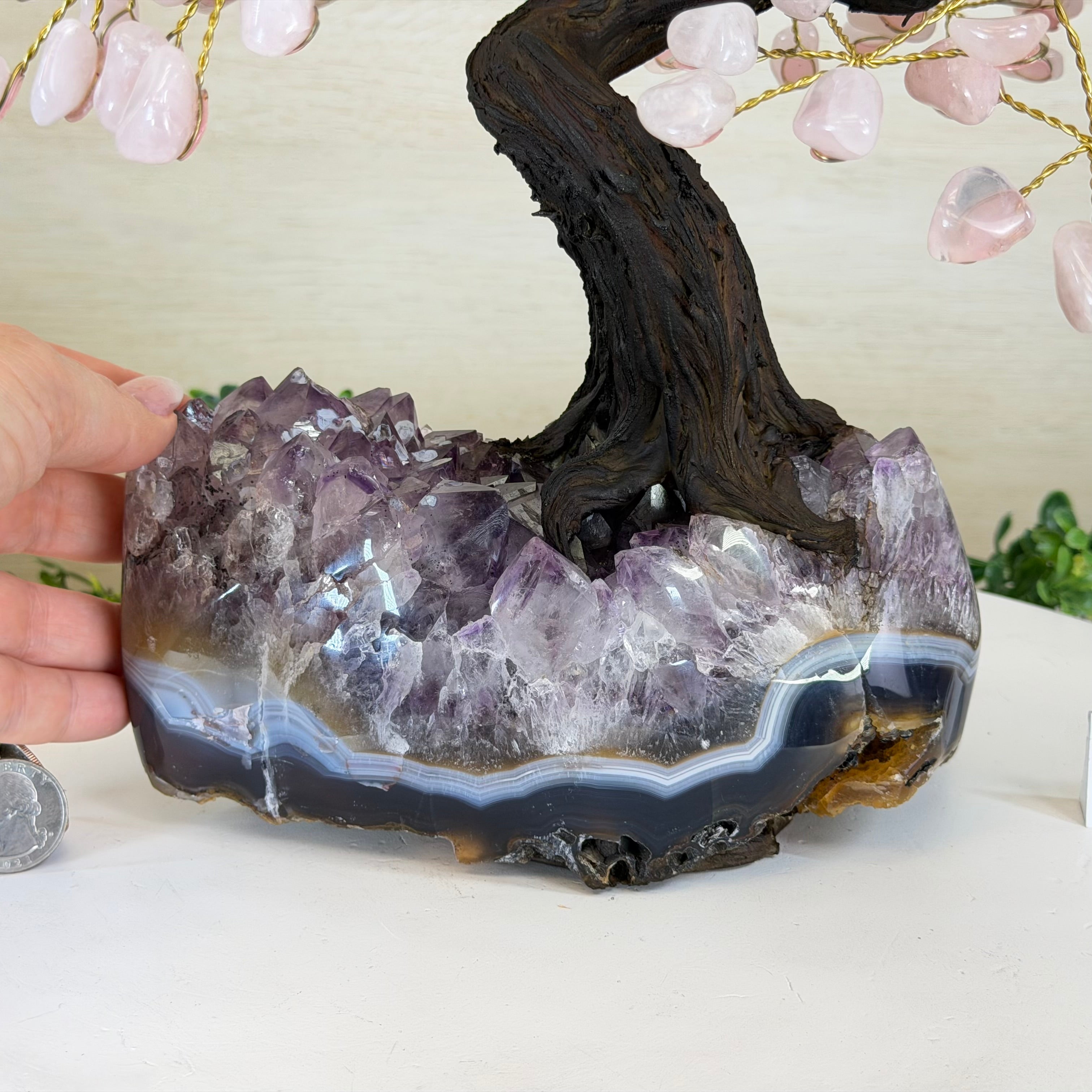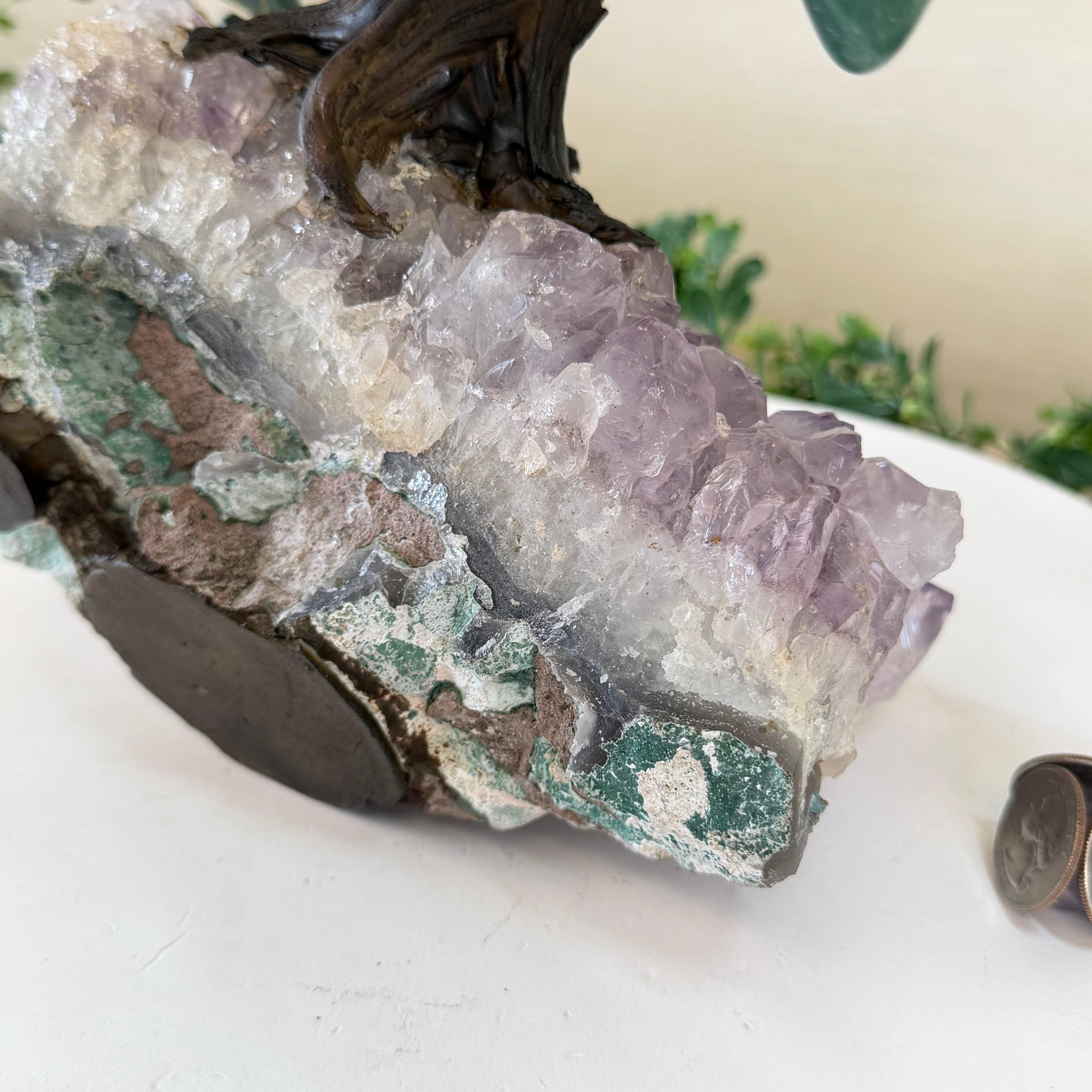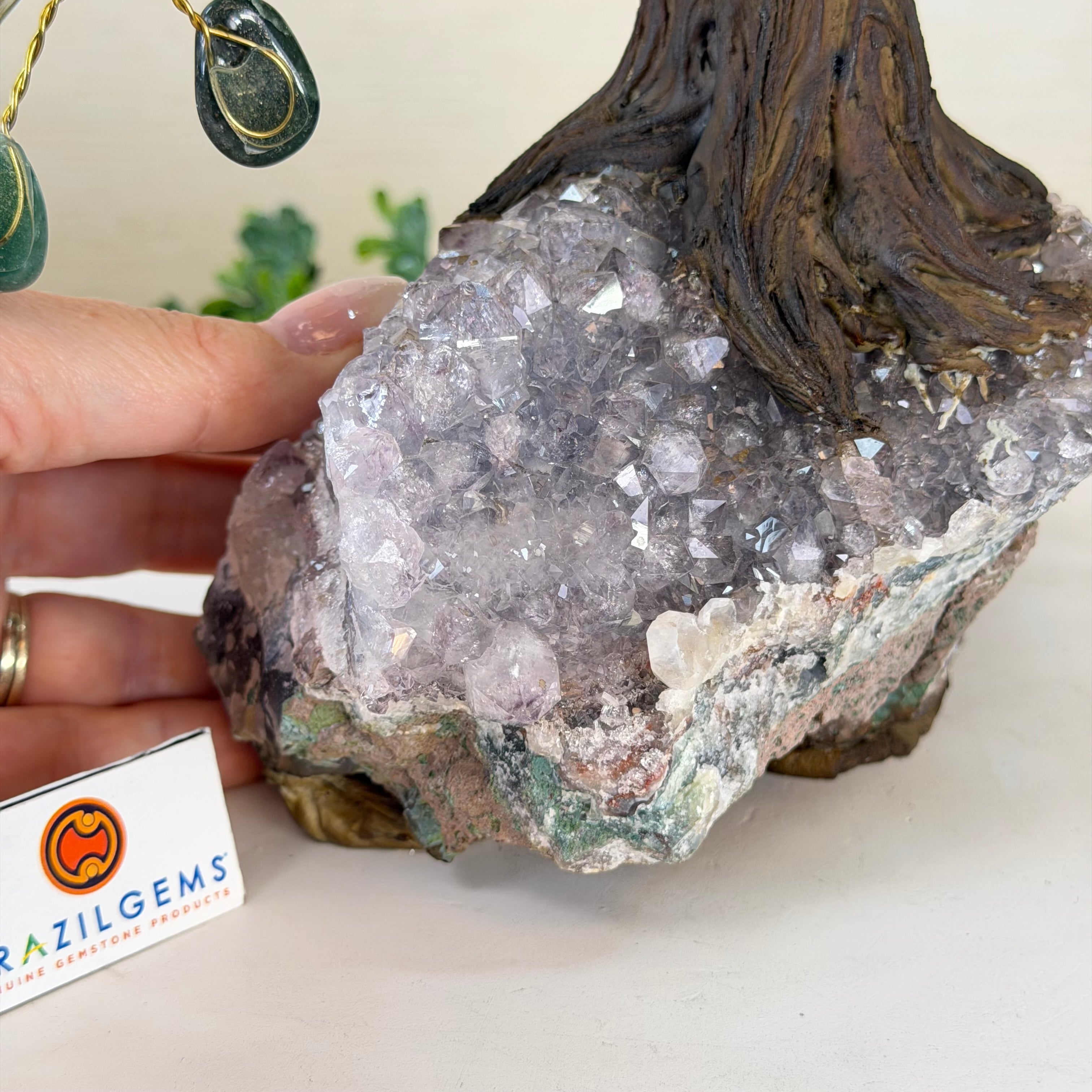 17" Tall Bonsai Amethyst Gemstone Tree, Amethyst base, 240 Gems #5405AMTH-005