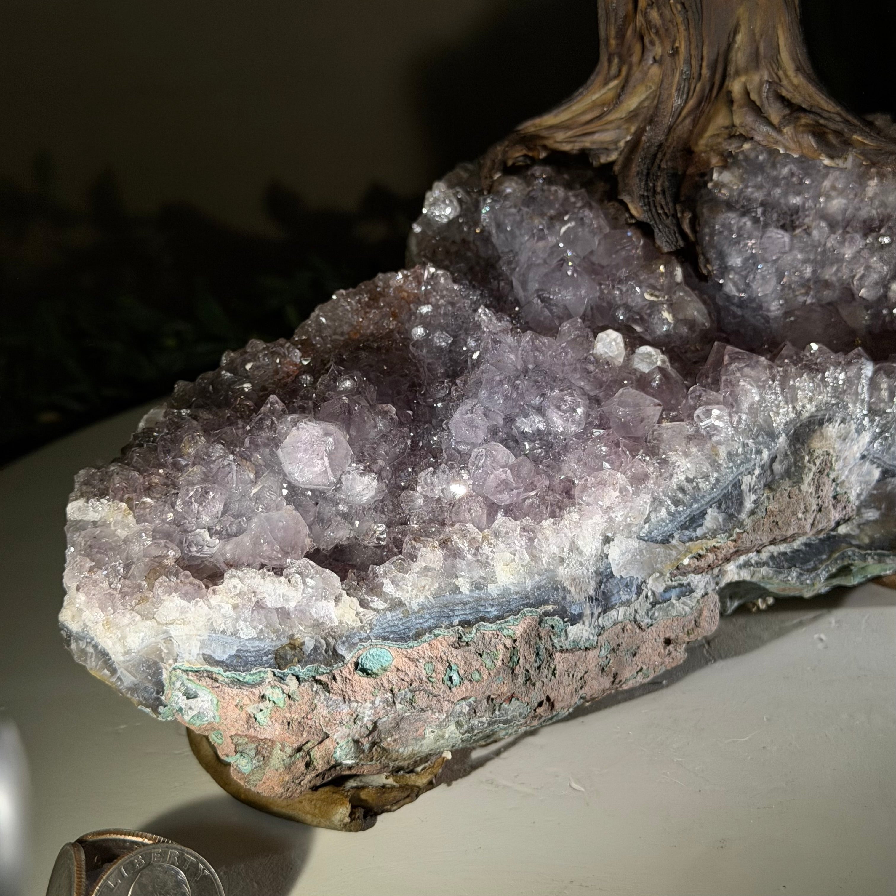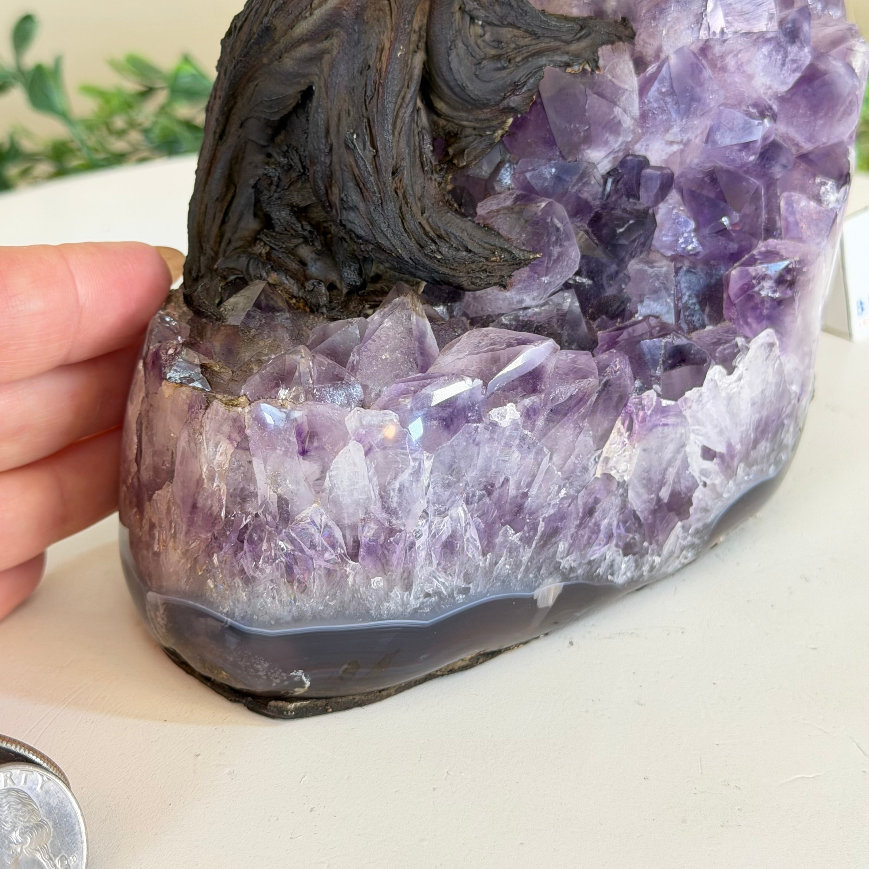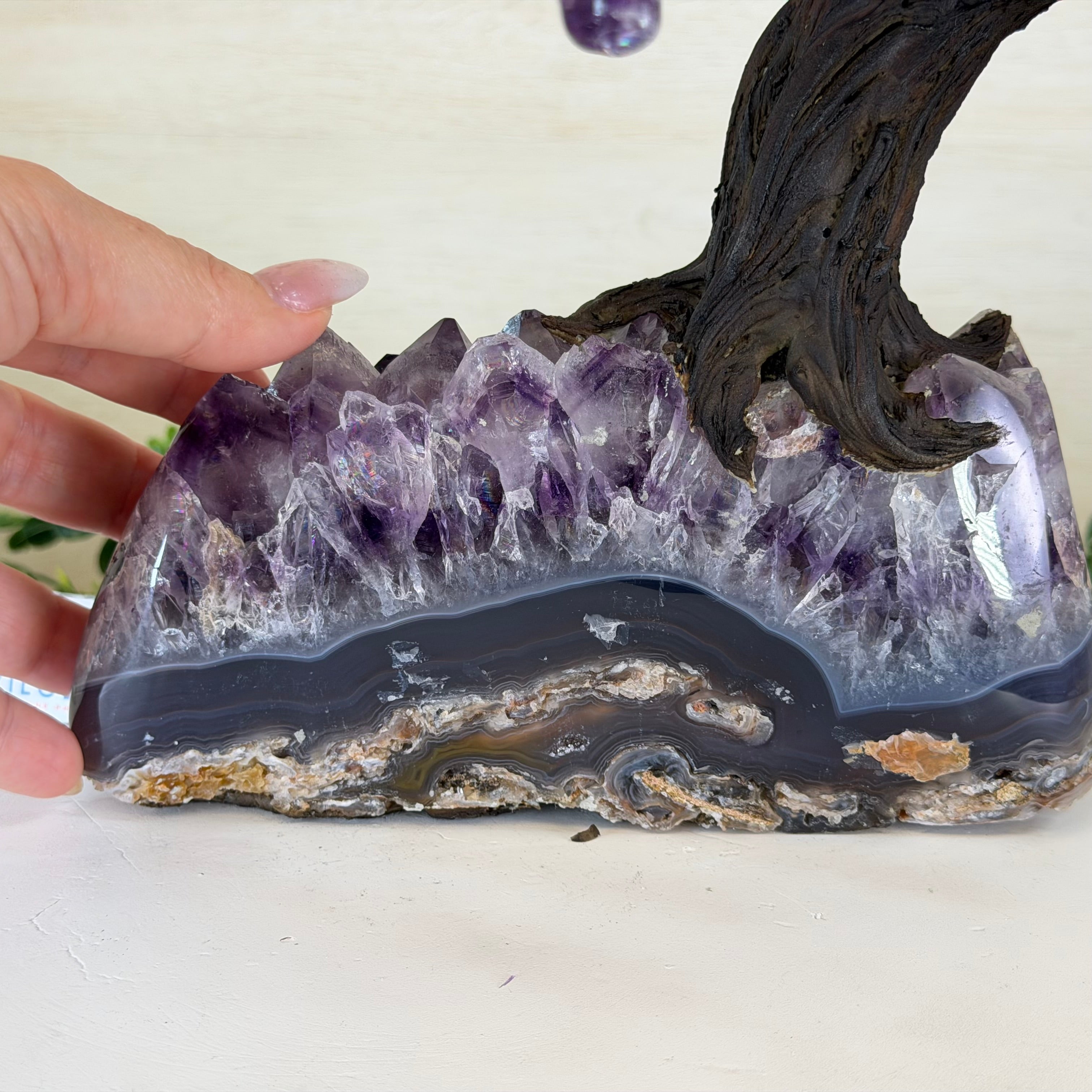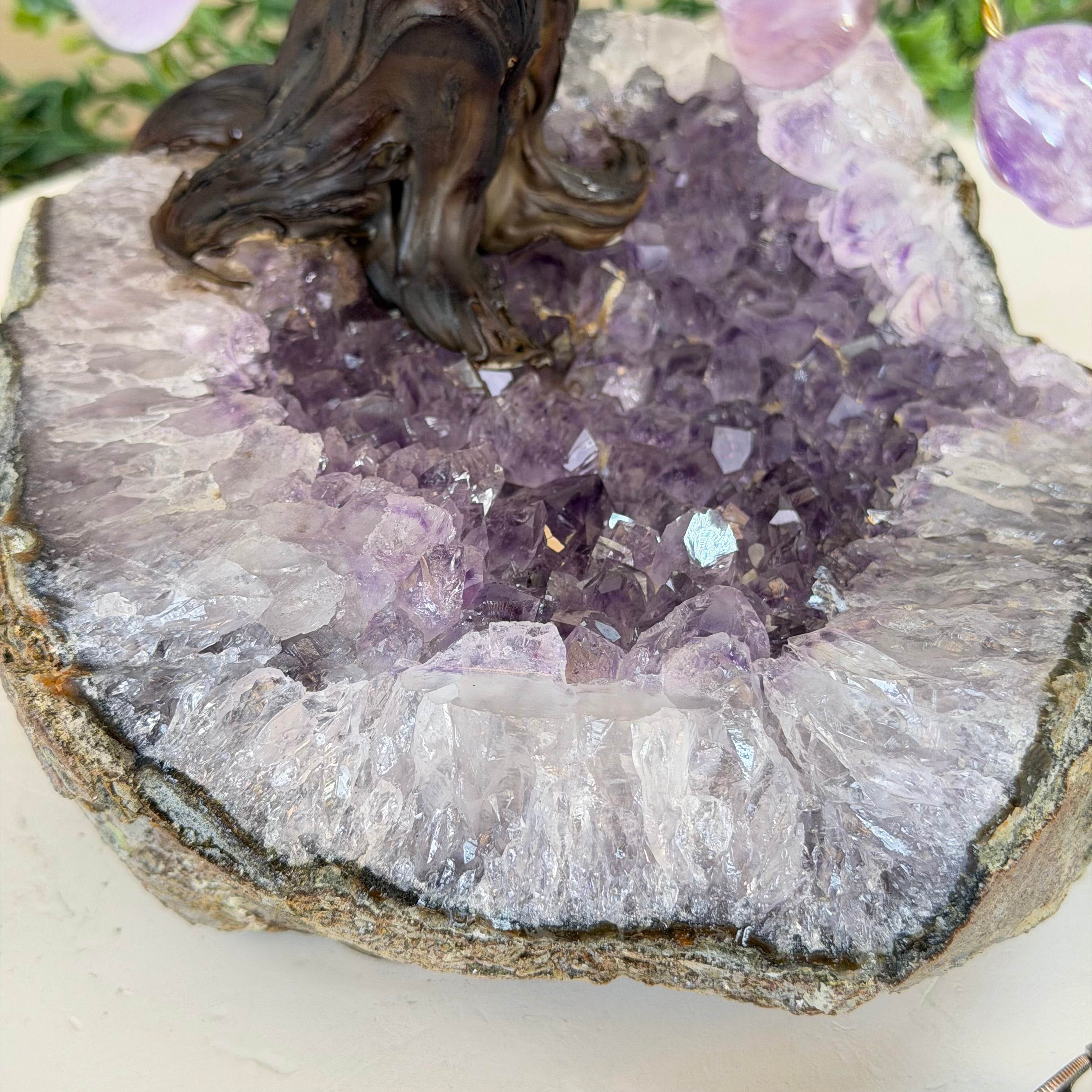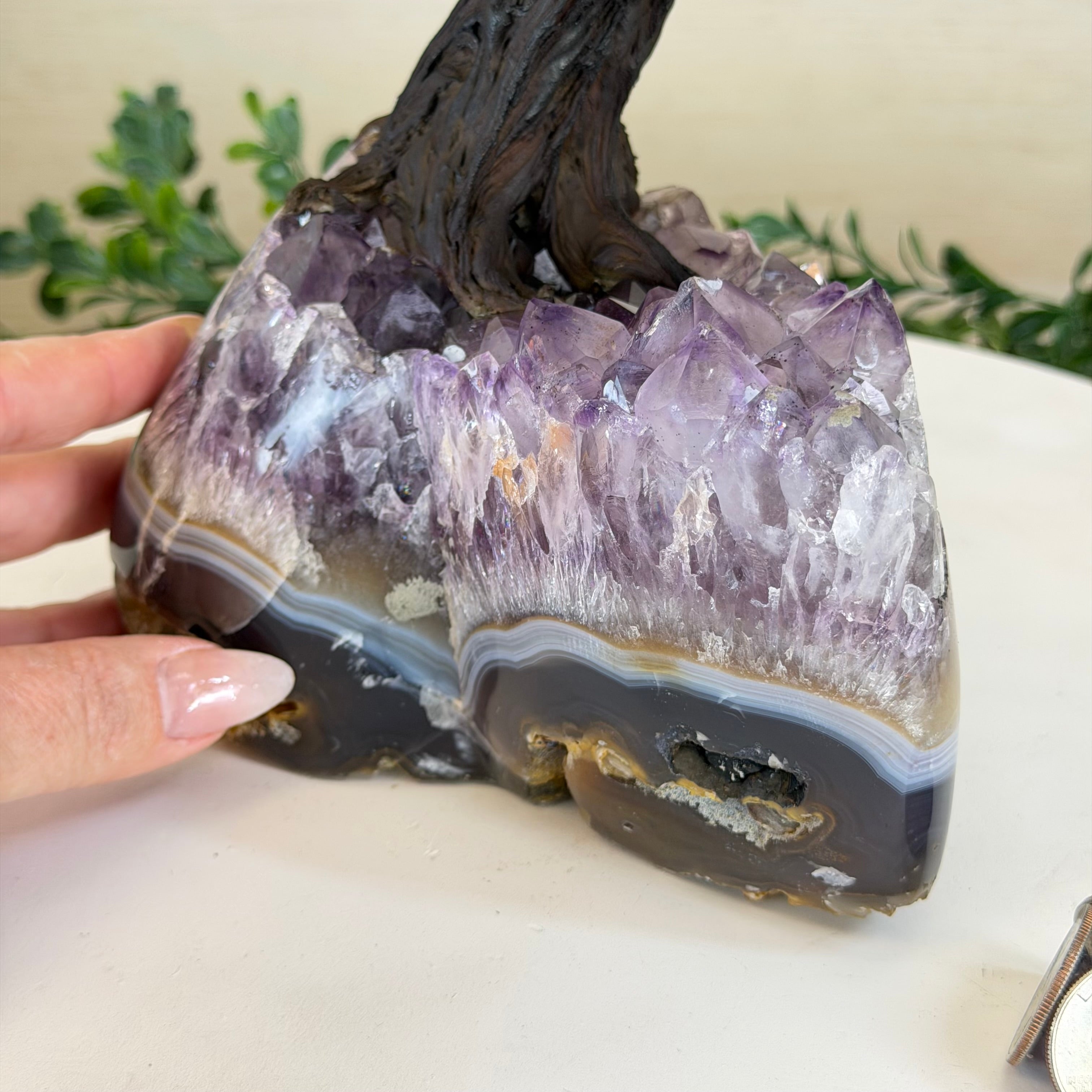 17" Tall Bonsai Amethyst Gemstone Tree, Amethyst base, 240 Gems #5405AMTH-005