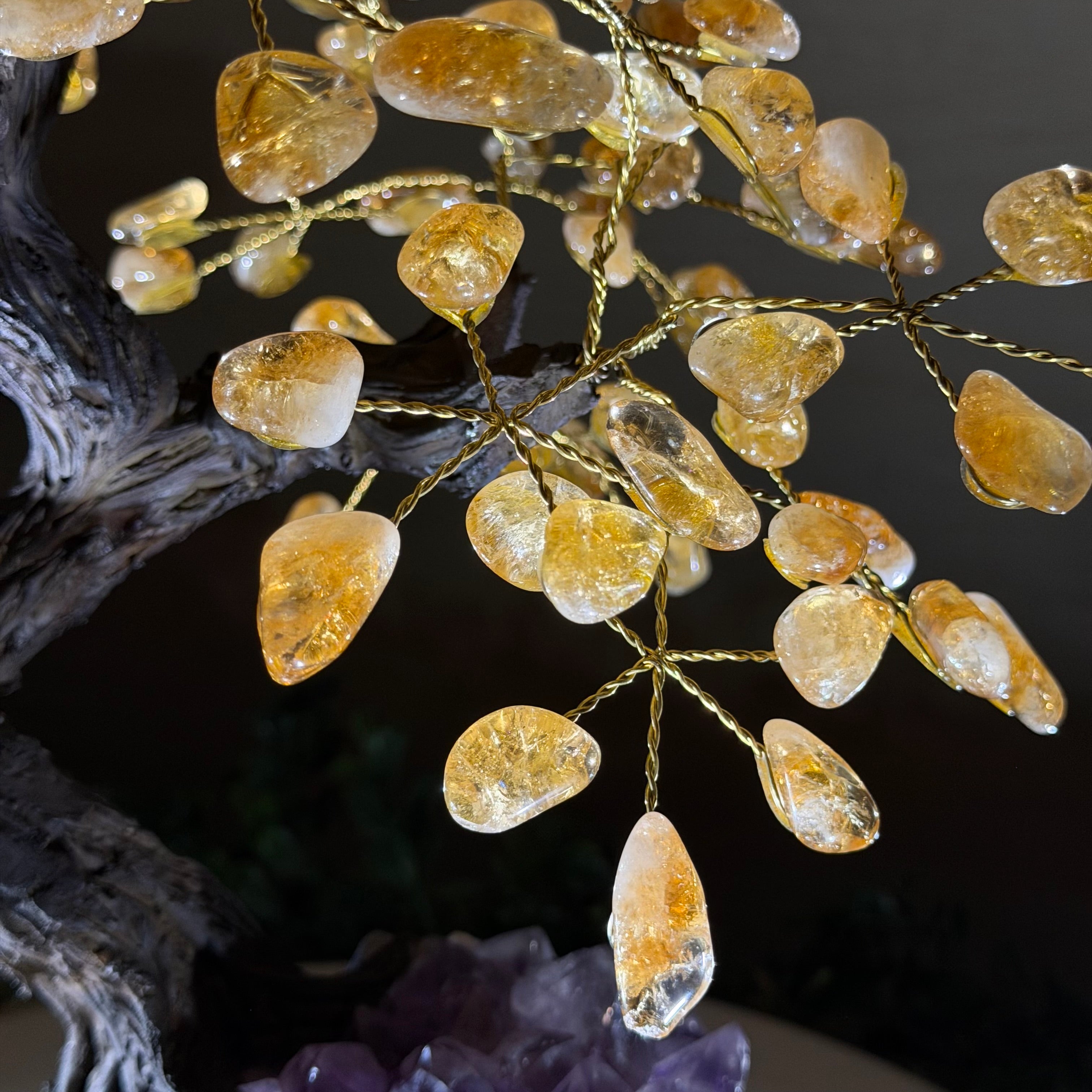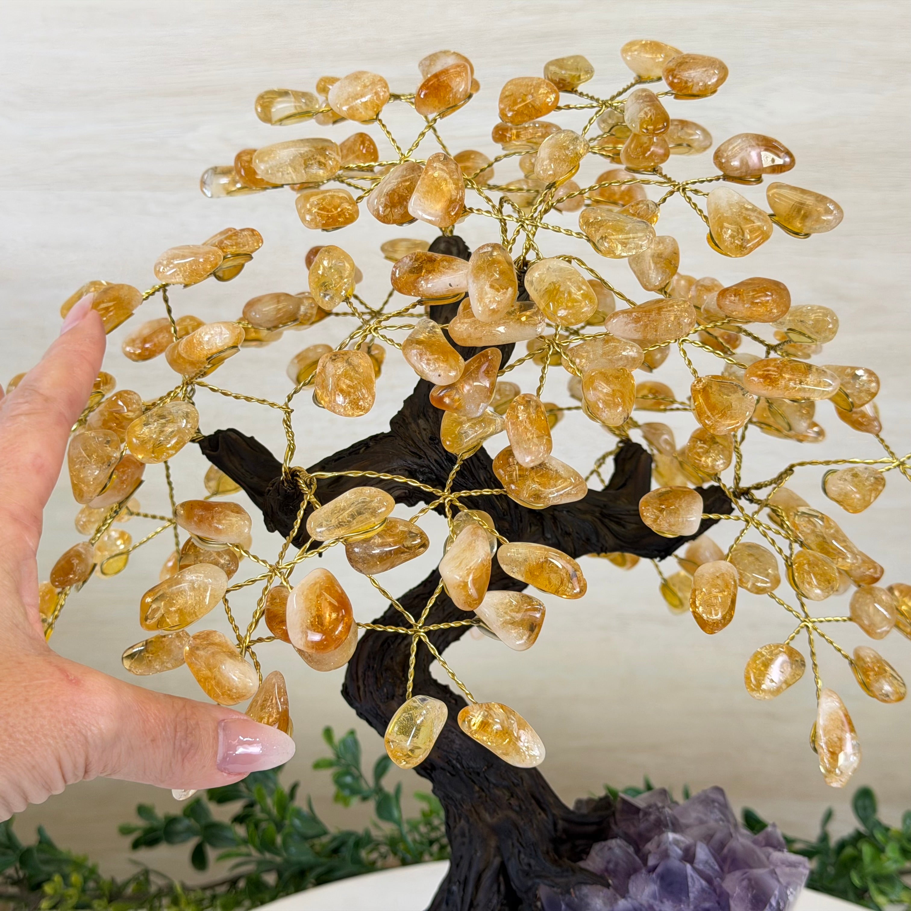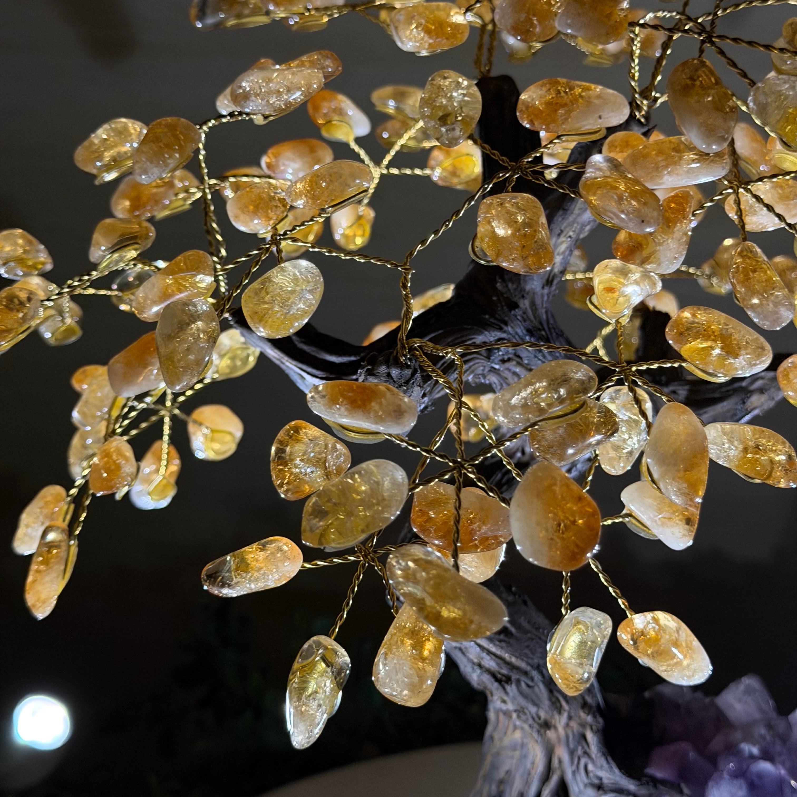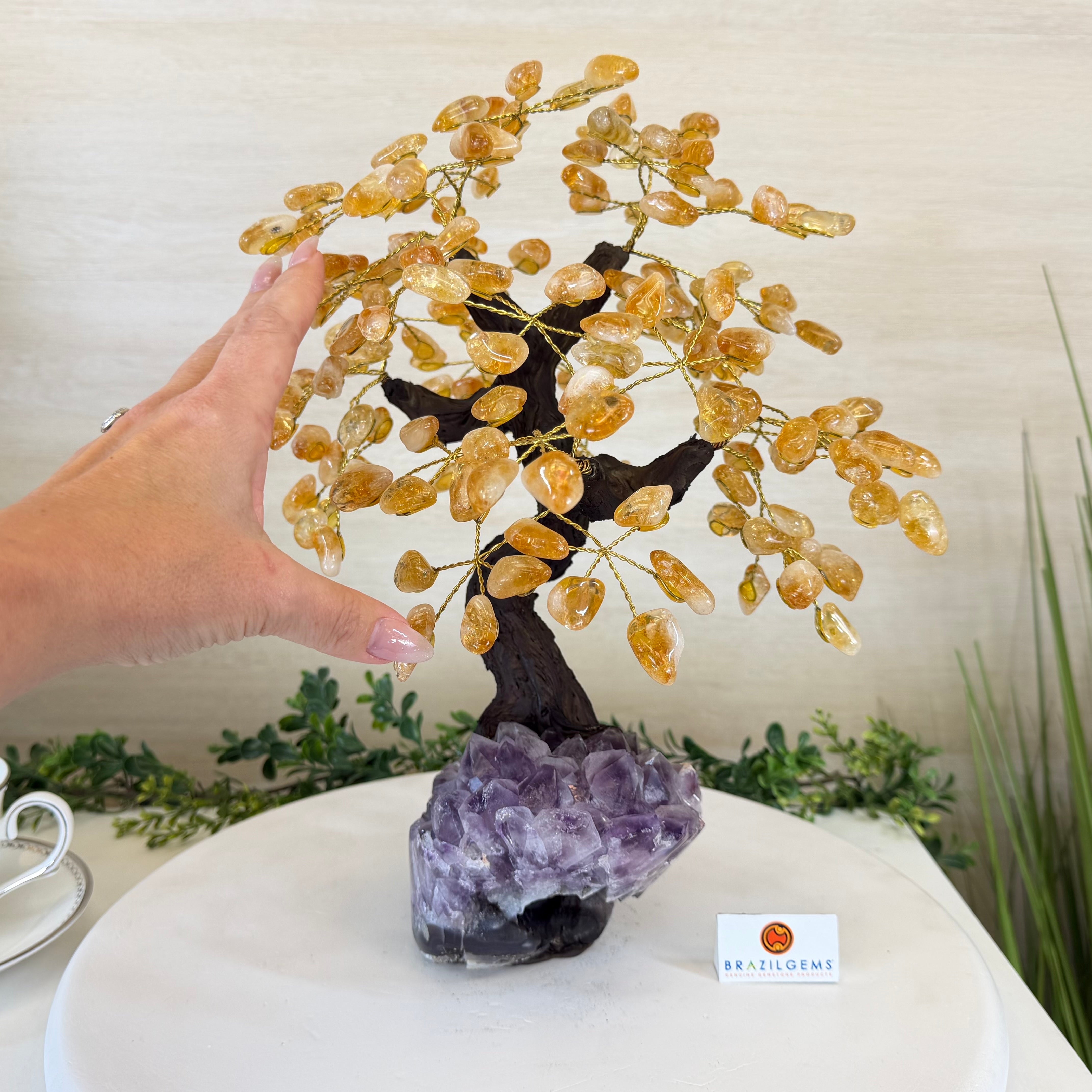 14" Tall Special Citrine Gemstone Tree, Amethyst base, 180 Gems #5404XCI-001