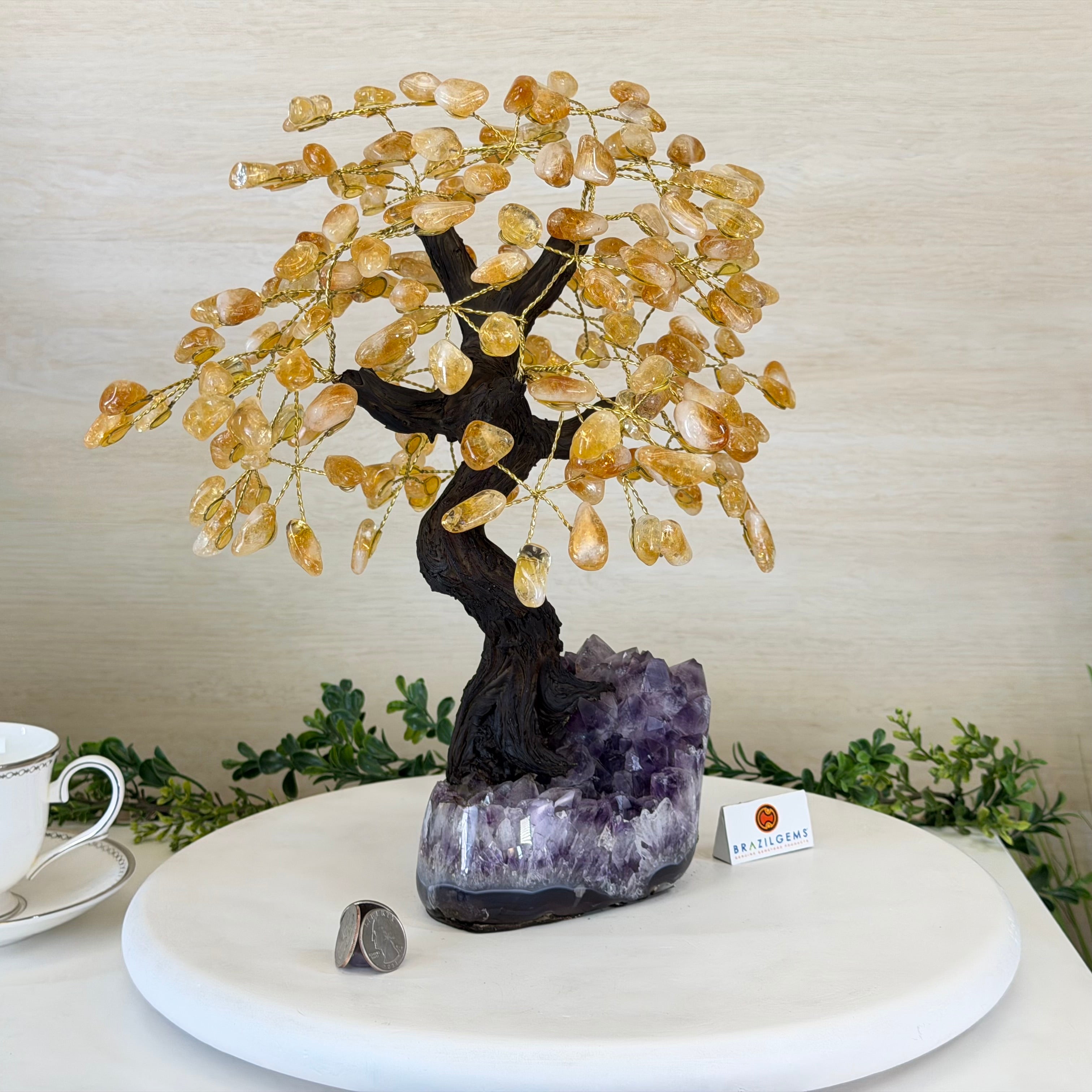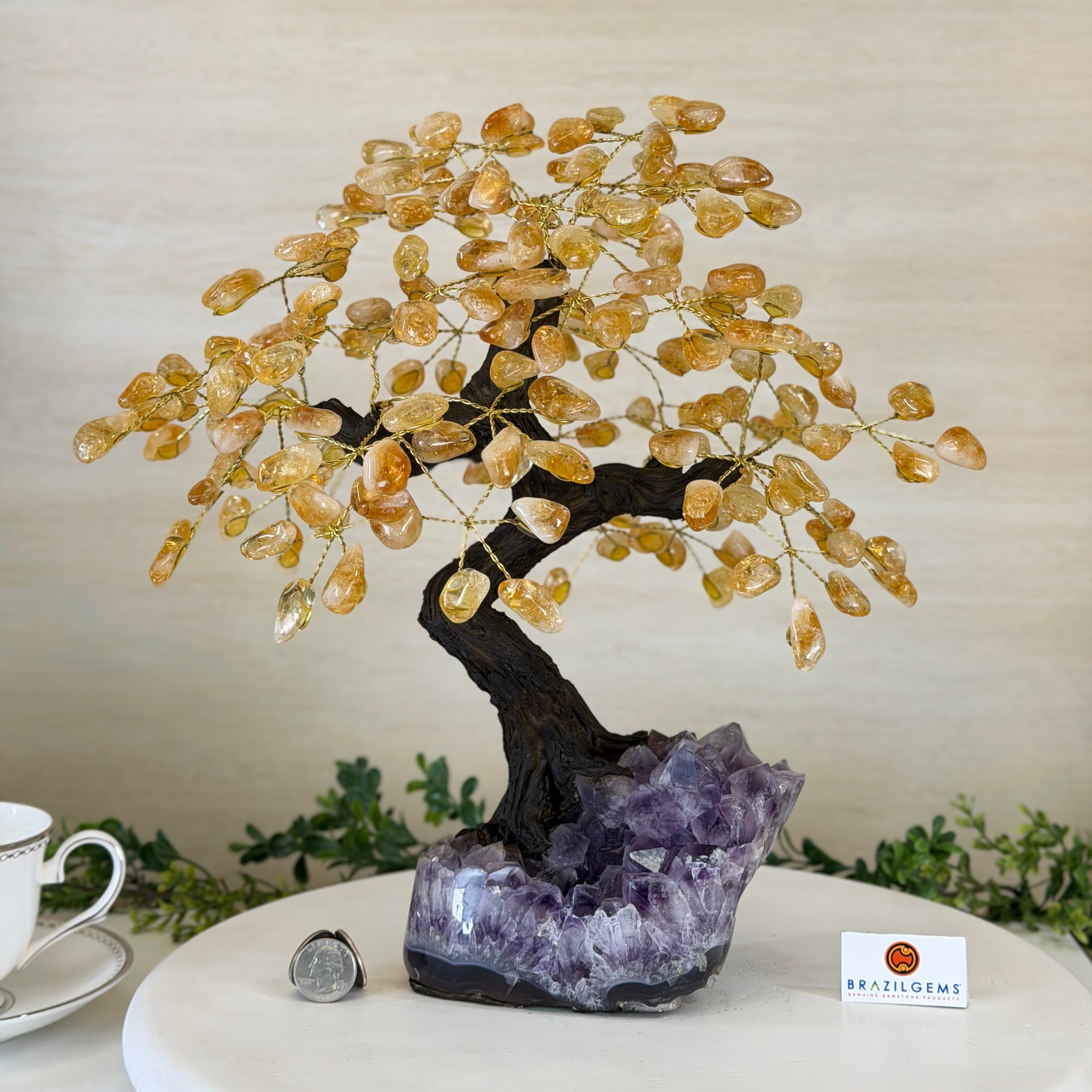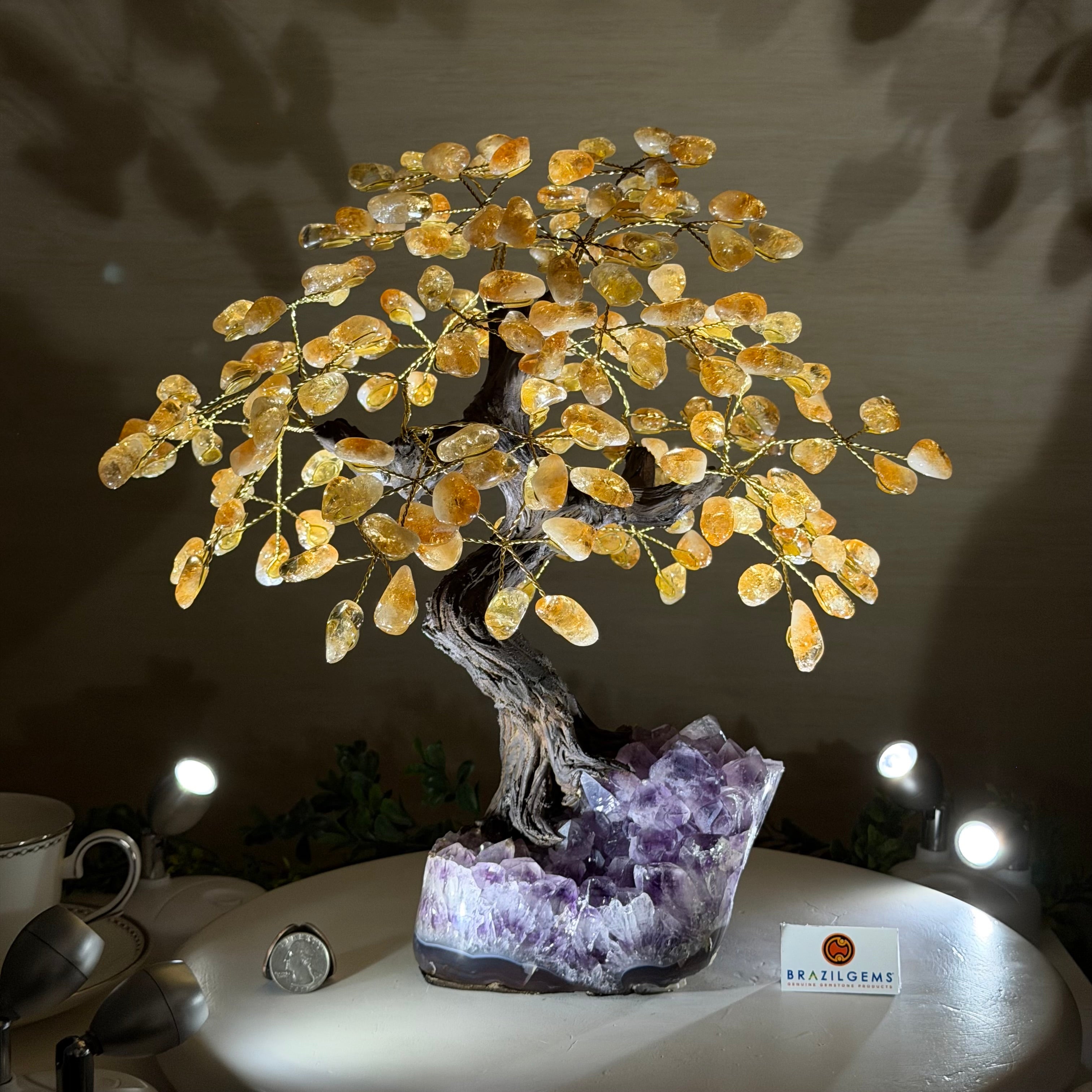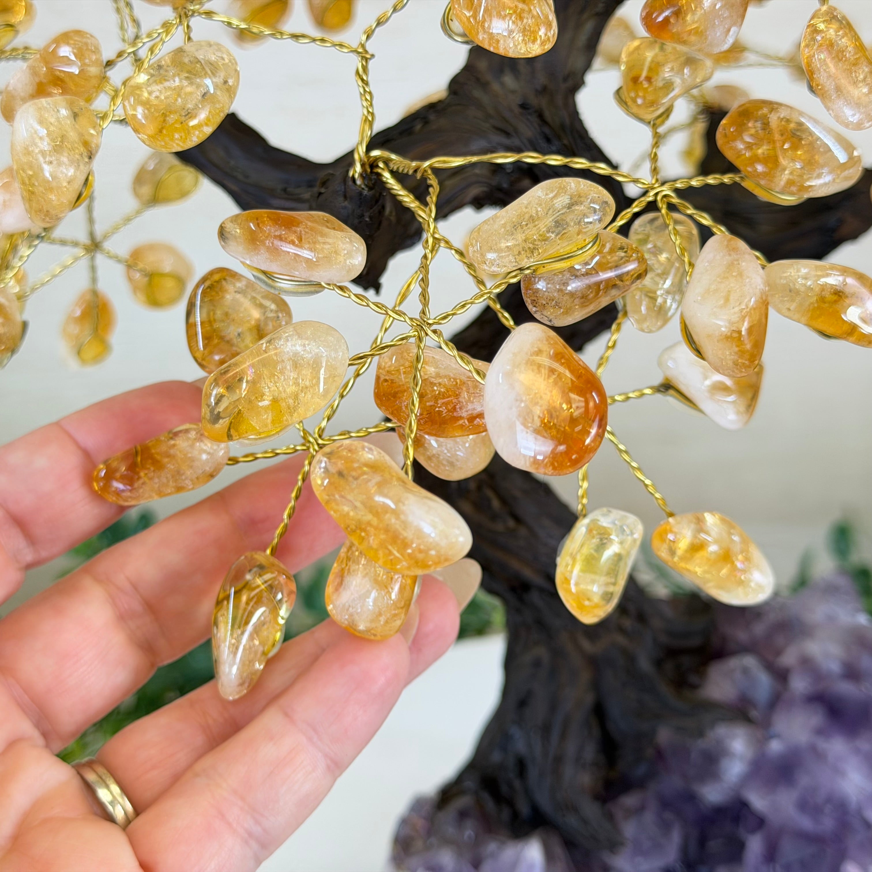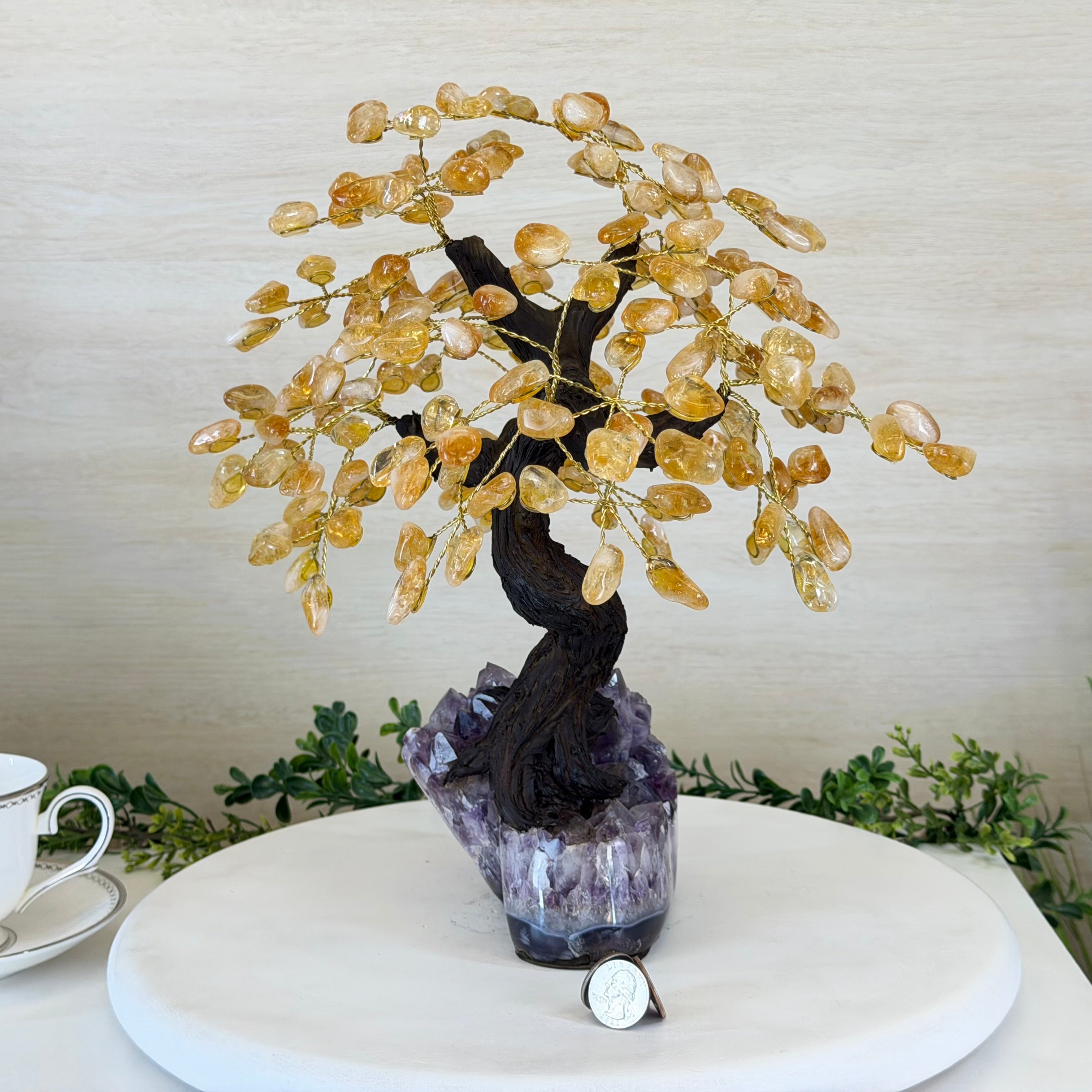 14" Tall Special Citrine Gemstone Tree, Amethyst base, 180 Gems #5404XCI-001