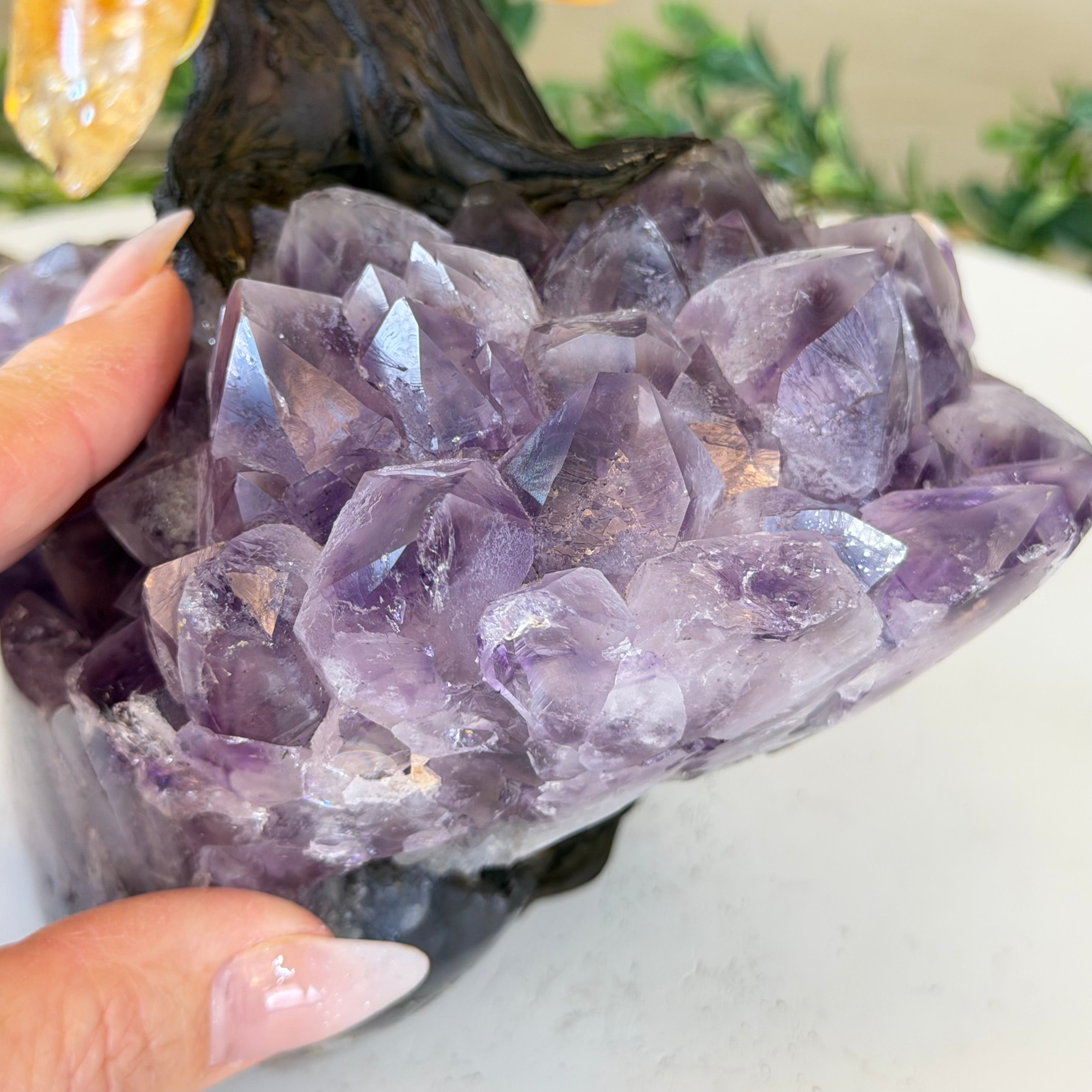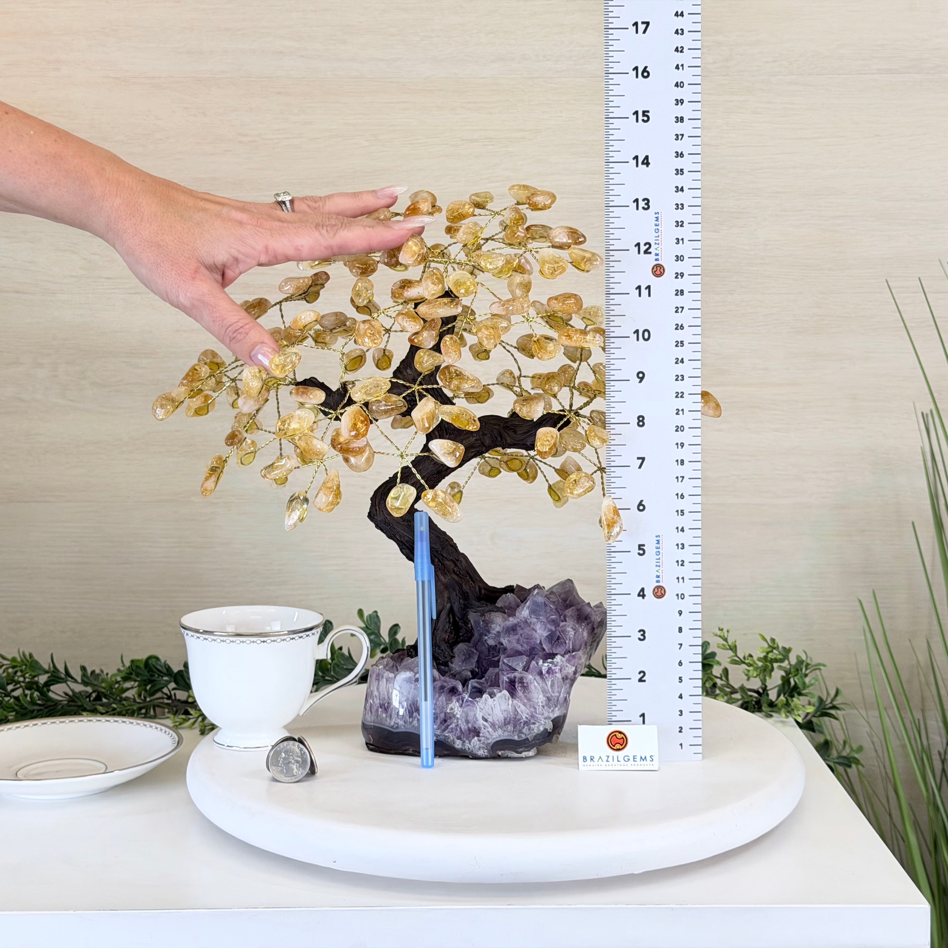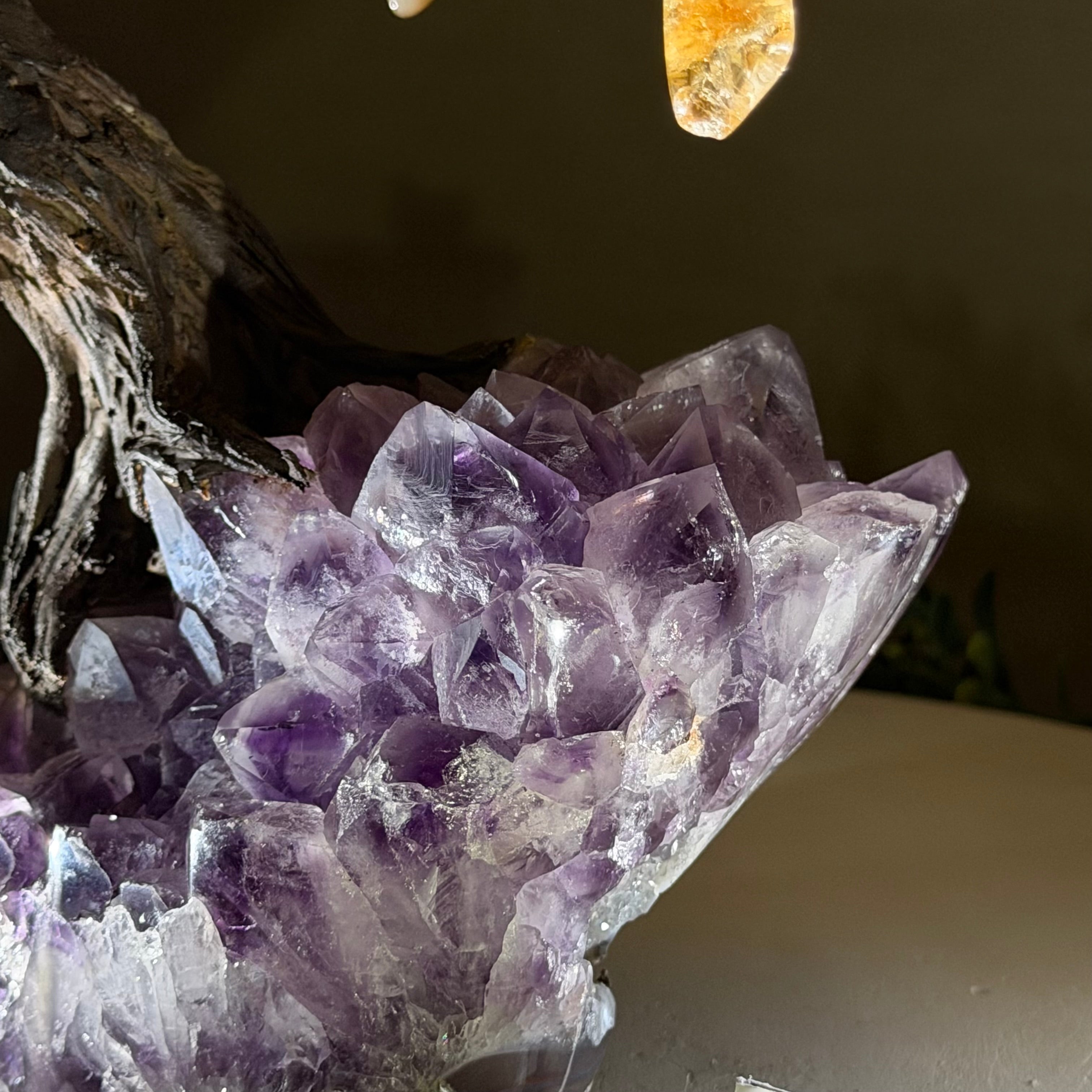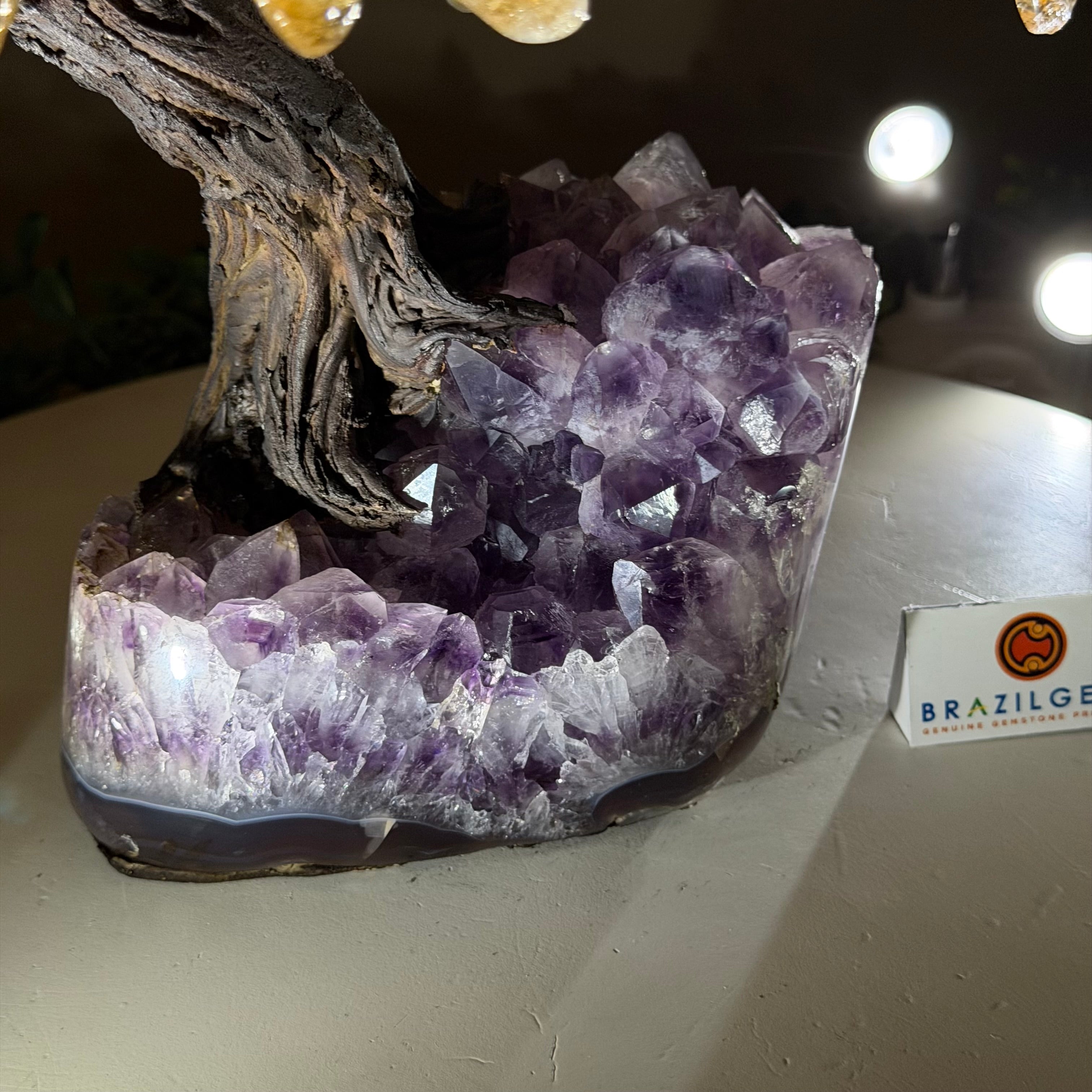 14" Tall Special Citrine Gemstone Tree, Amethyst base, 180 Gems #5404XCI-001