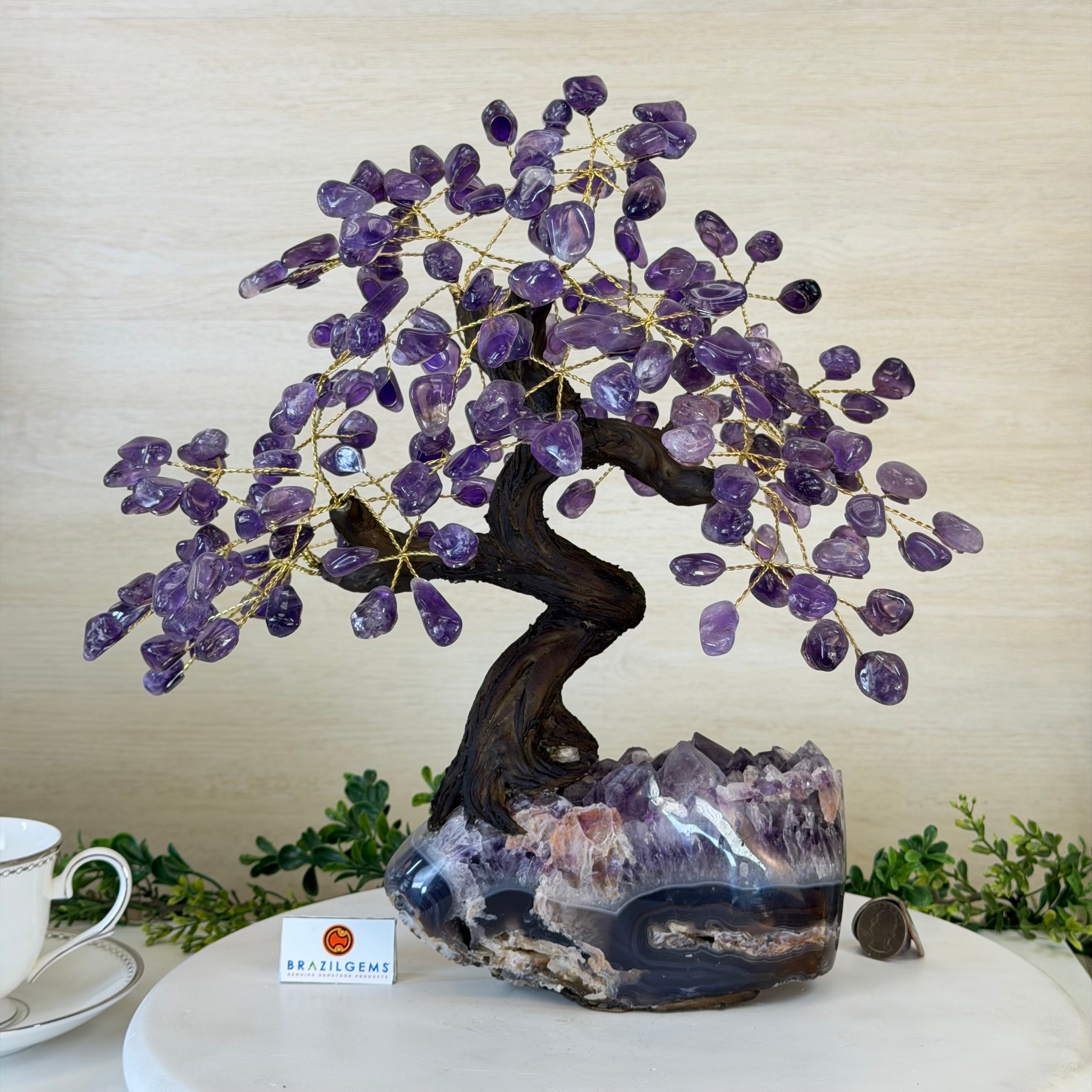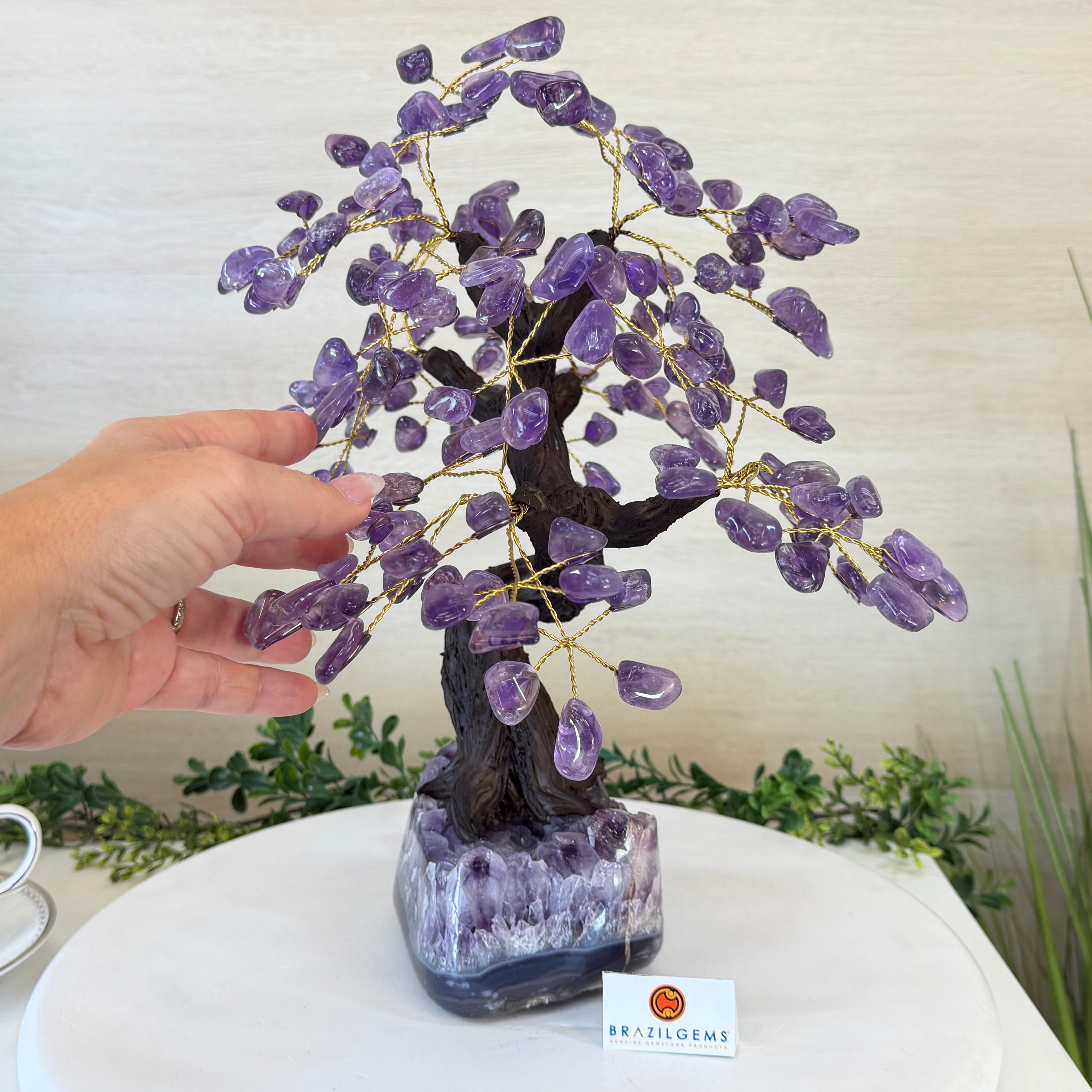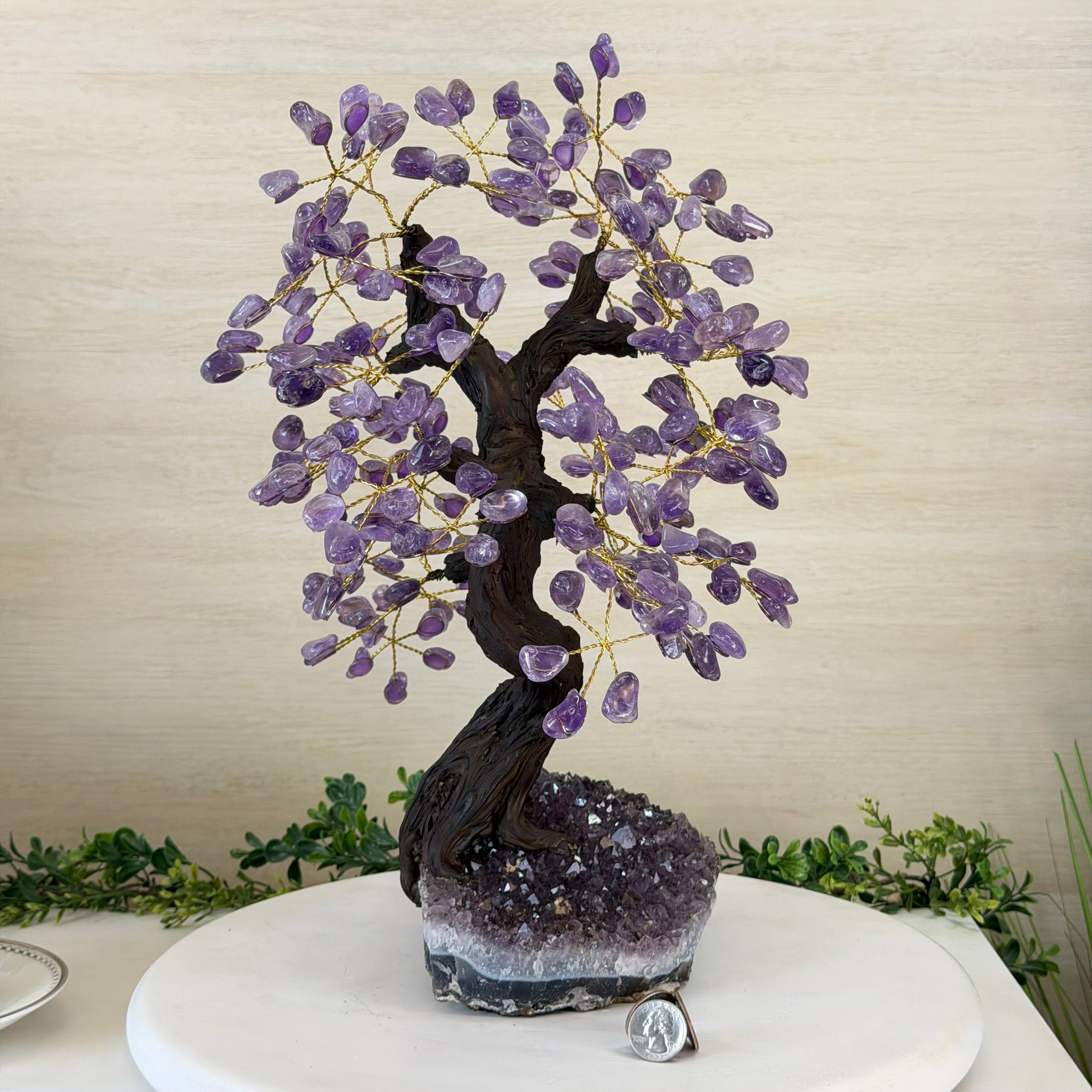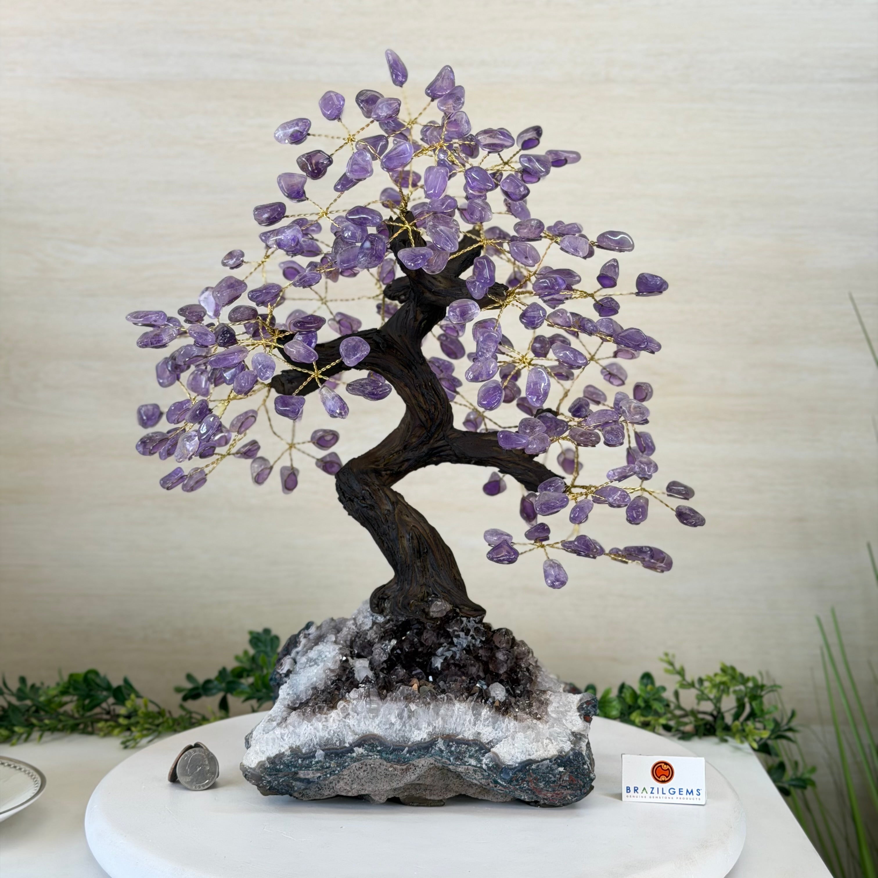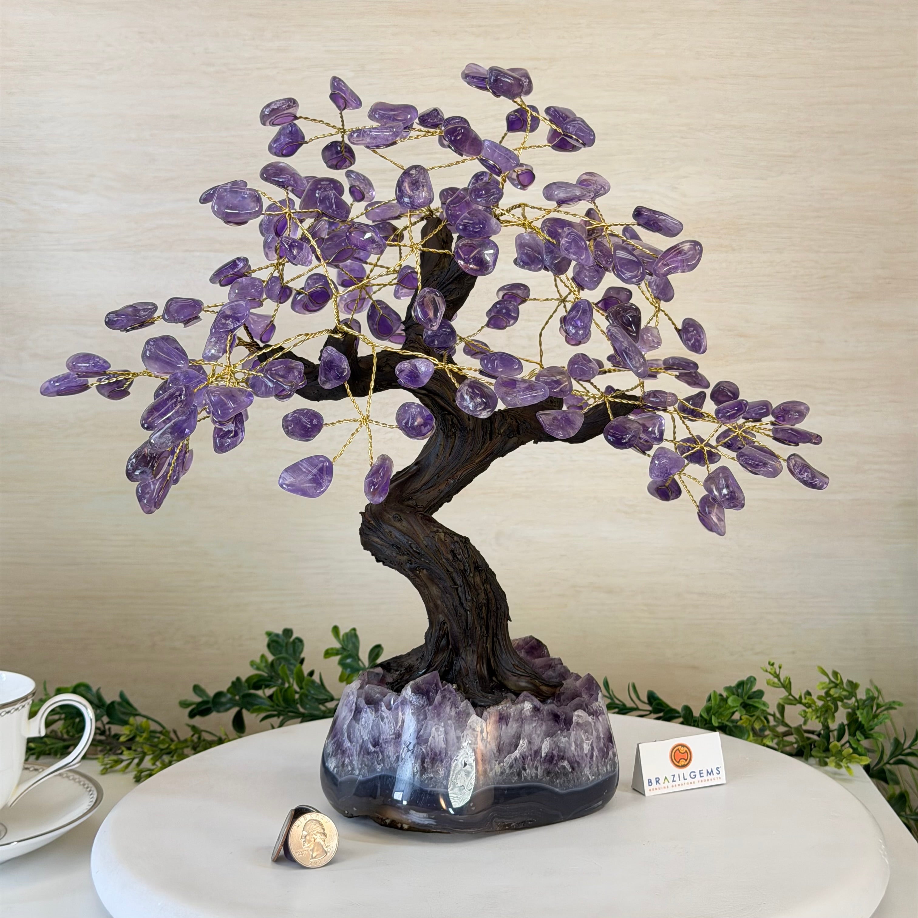 17" Tall Bonsai Amethyst Gemstone Tree, Amethyst base, 240 Gems #5405AMTH-001