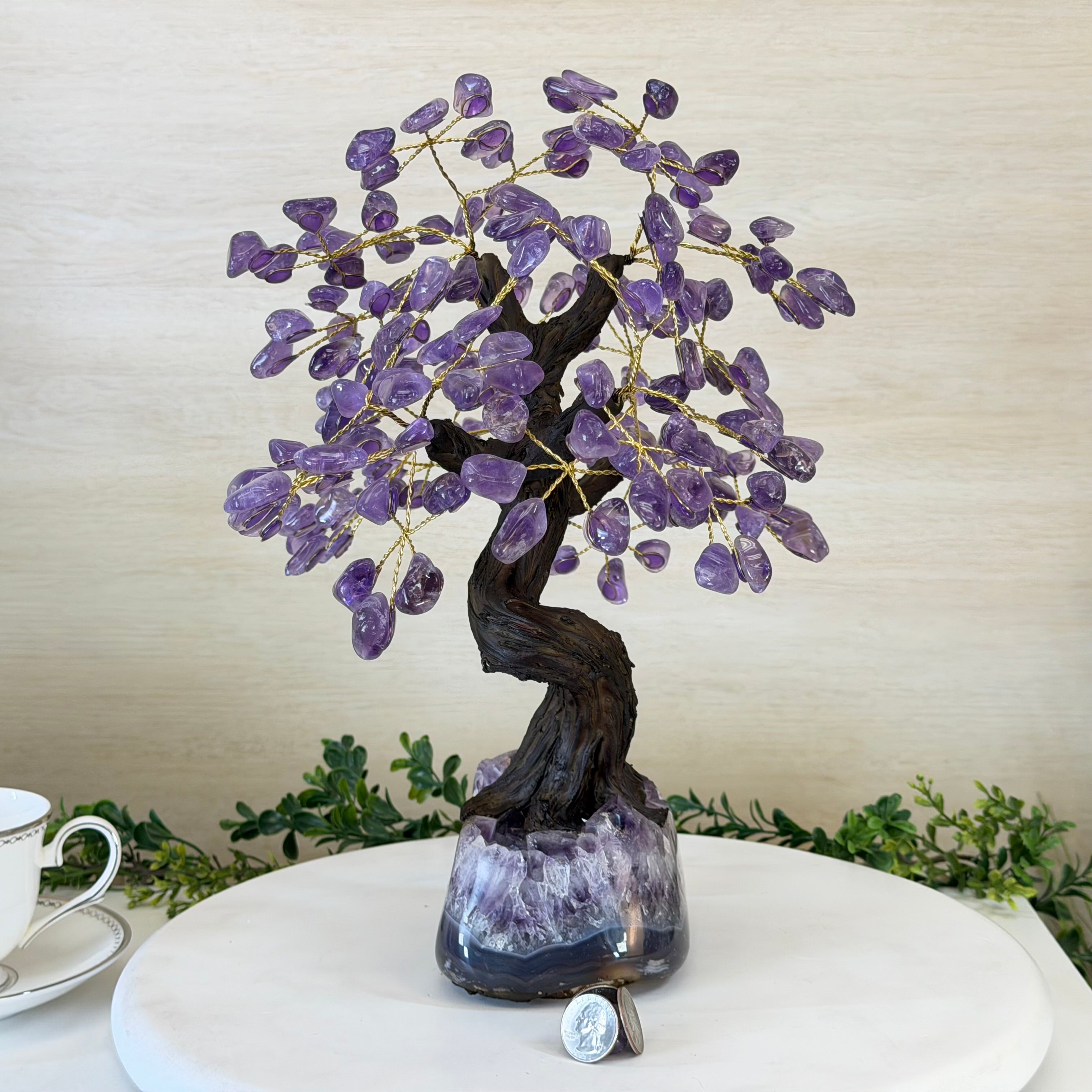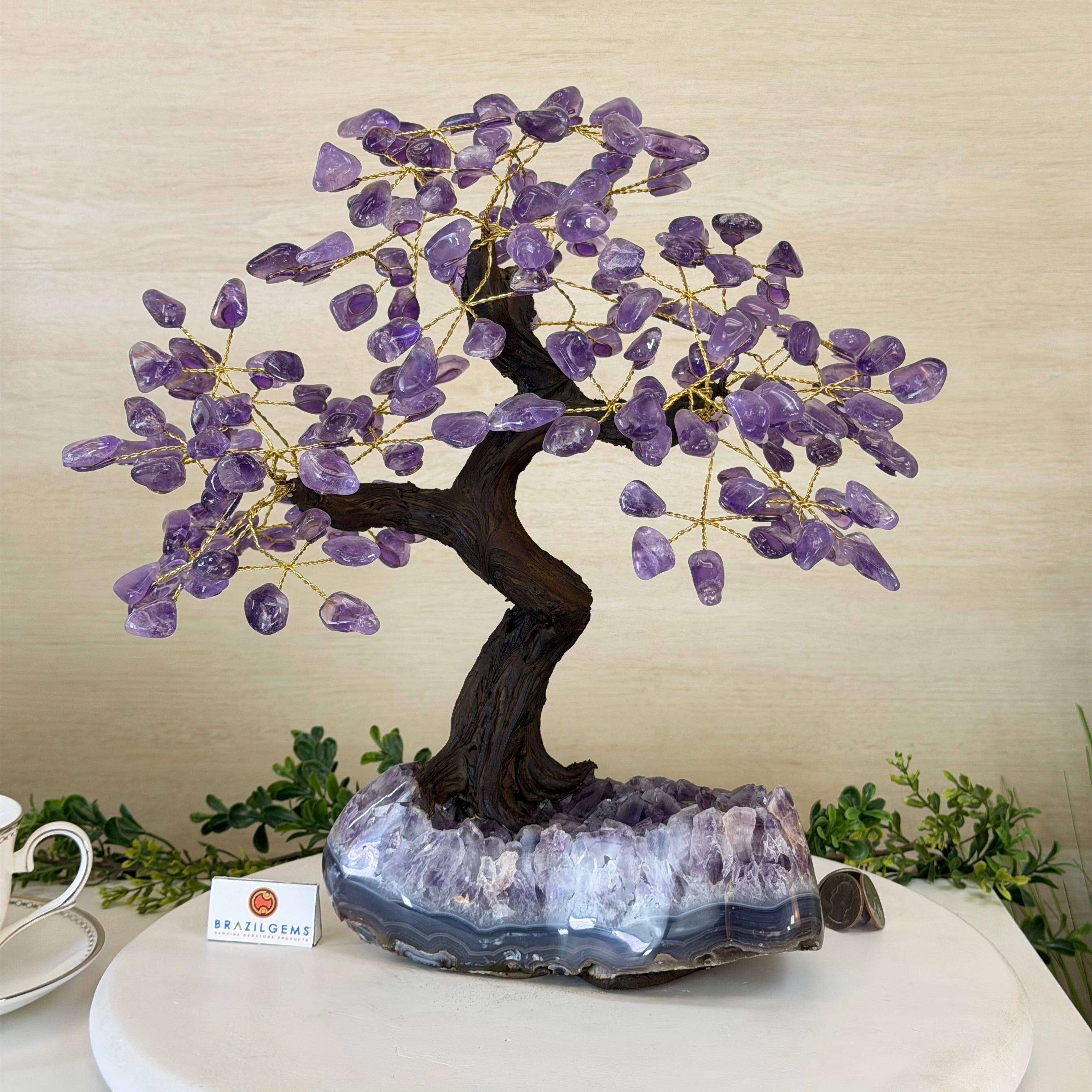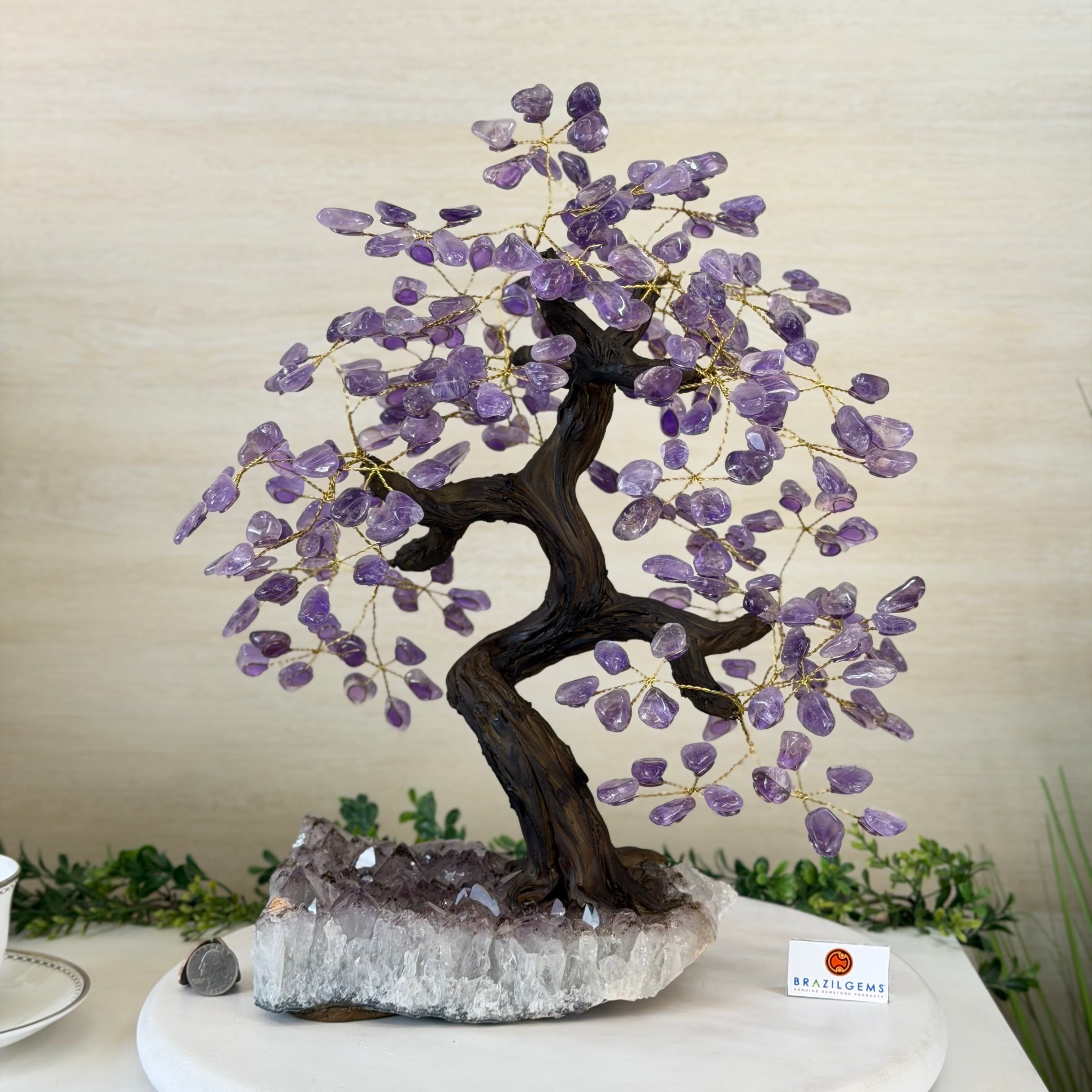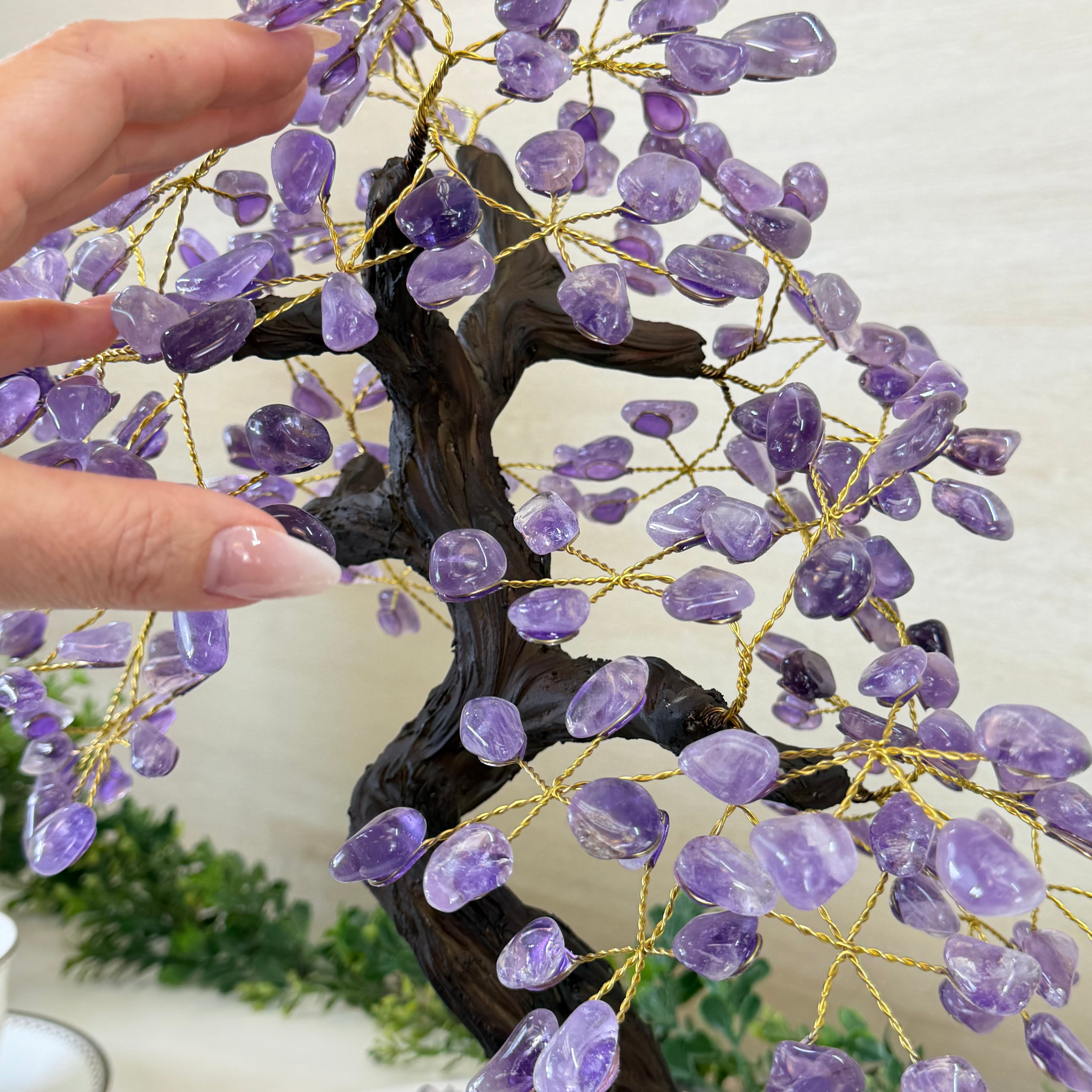 17" Tall Bonsai Amethyst Gemstone Tree, Amethyst base, 240 Gems #5405AMTH-001