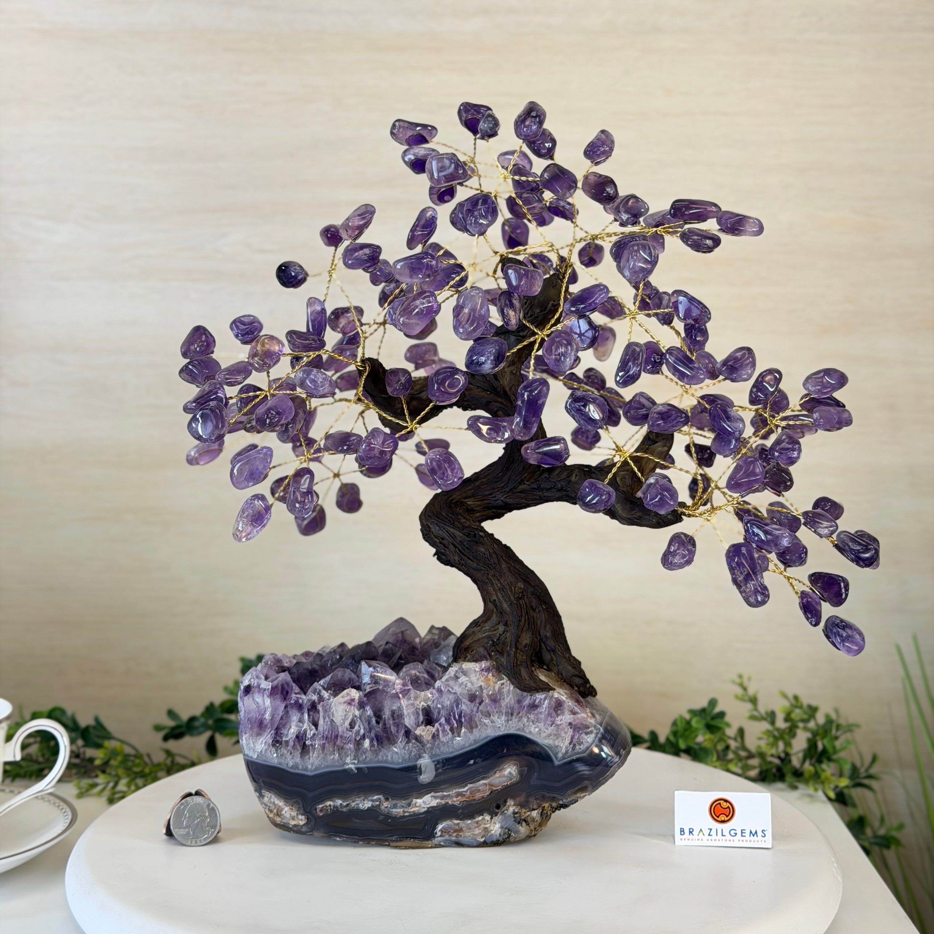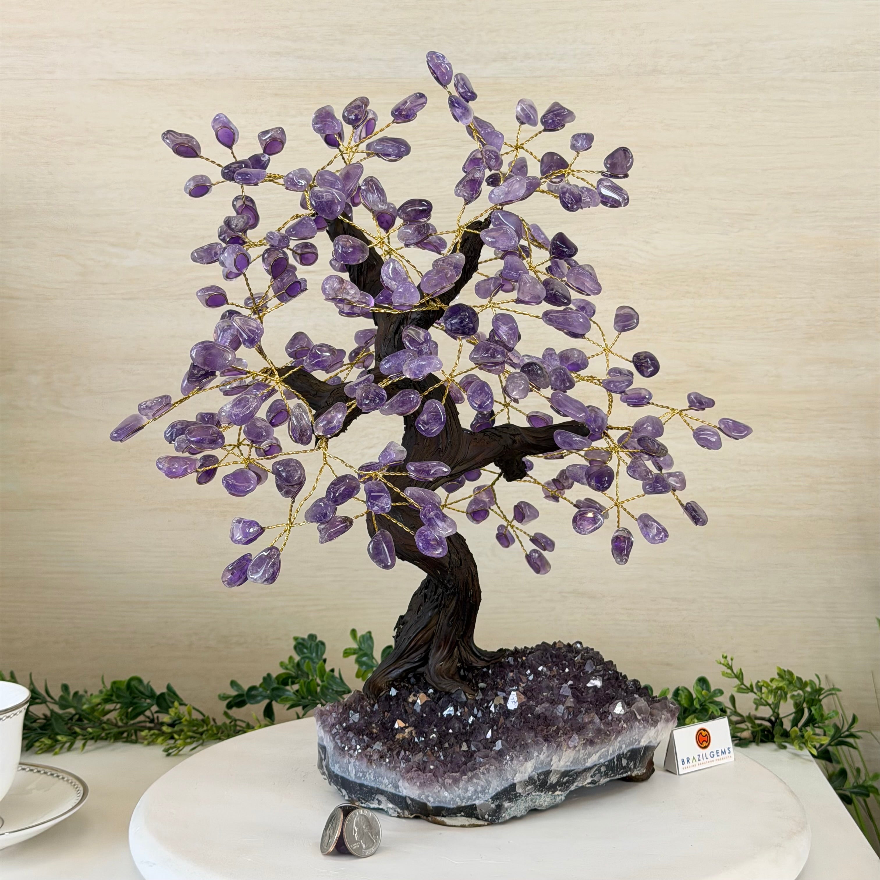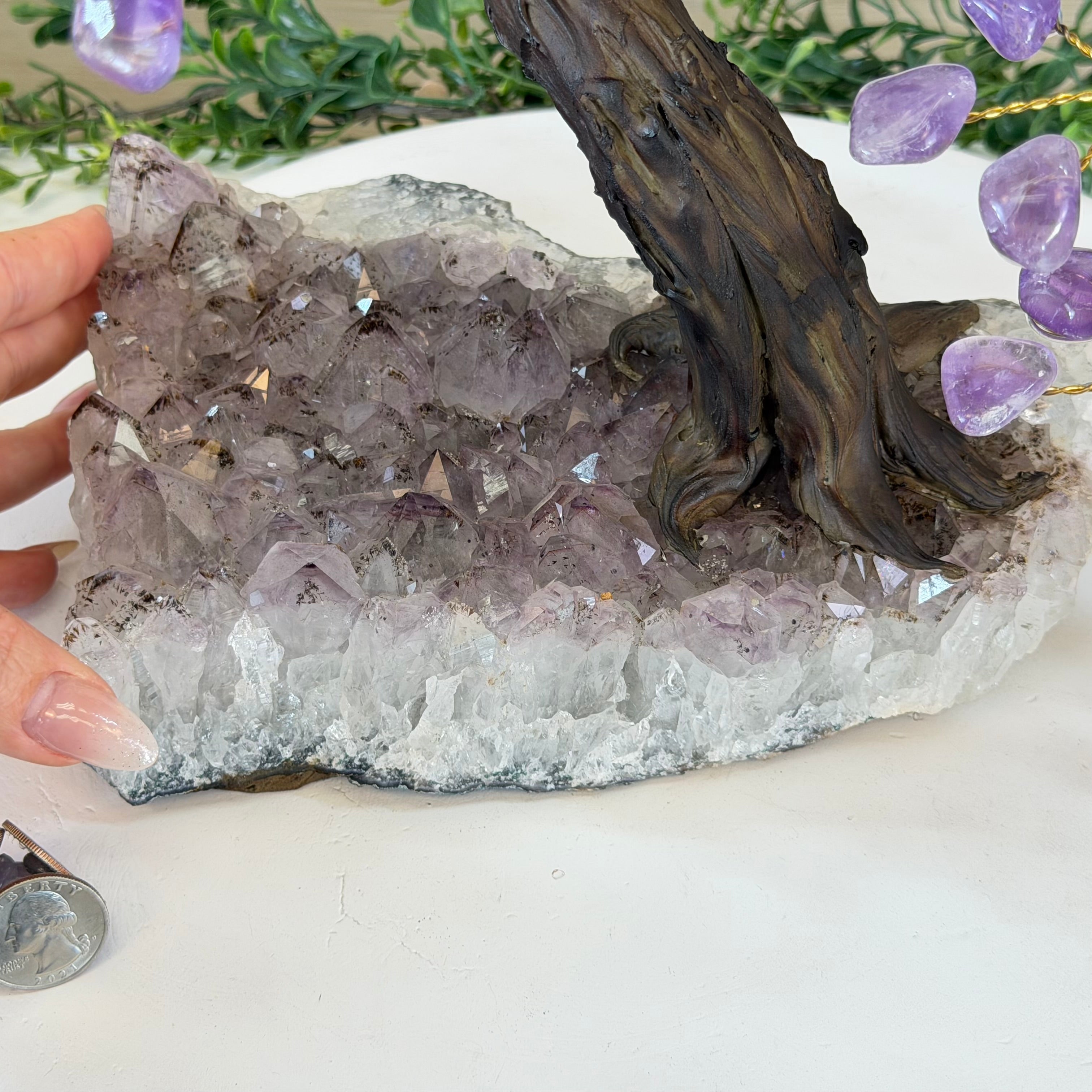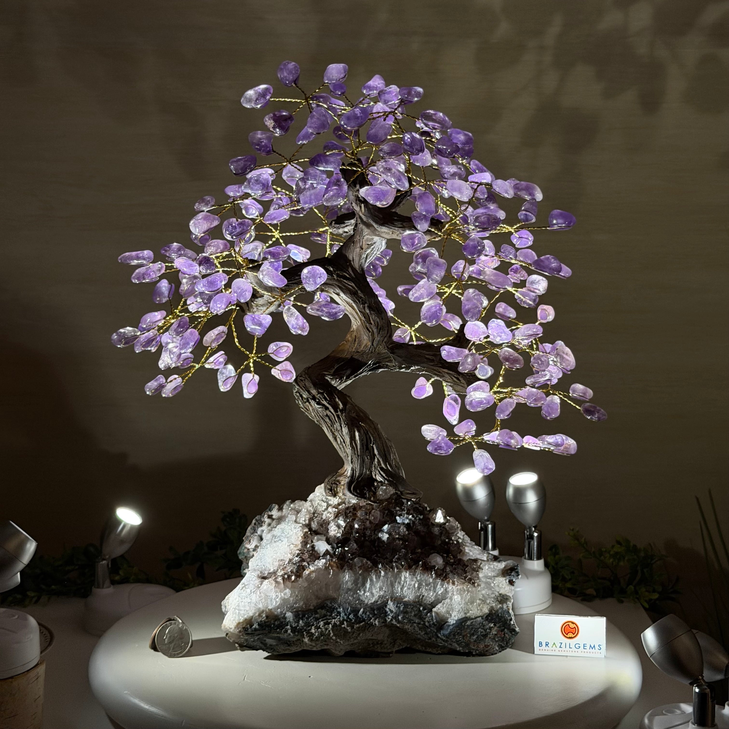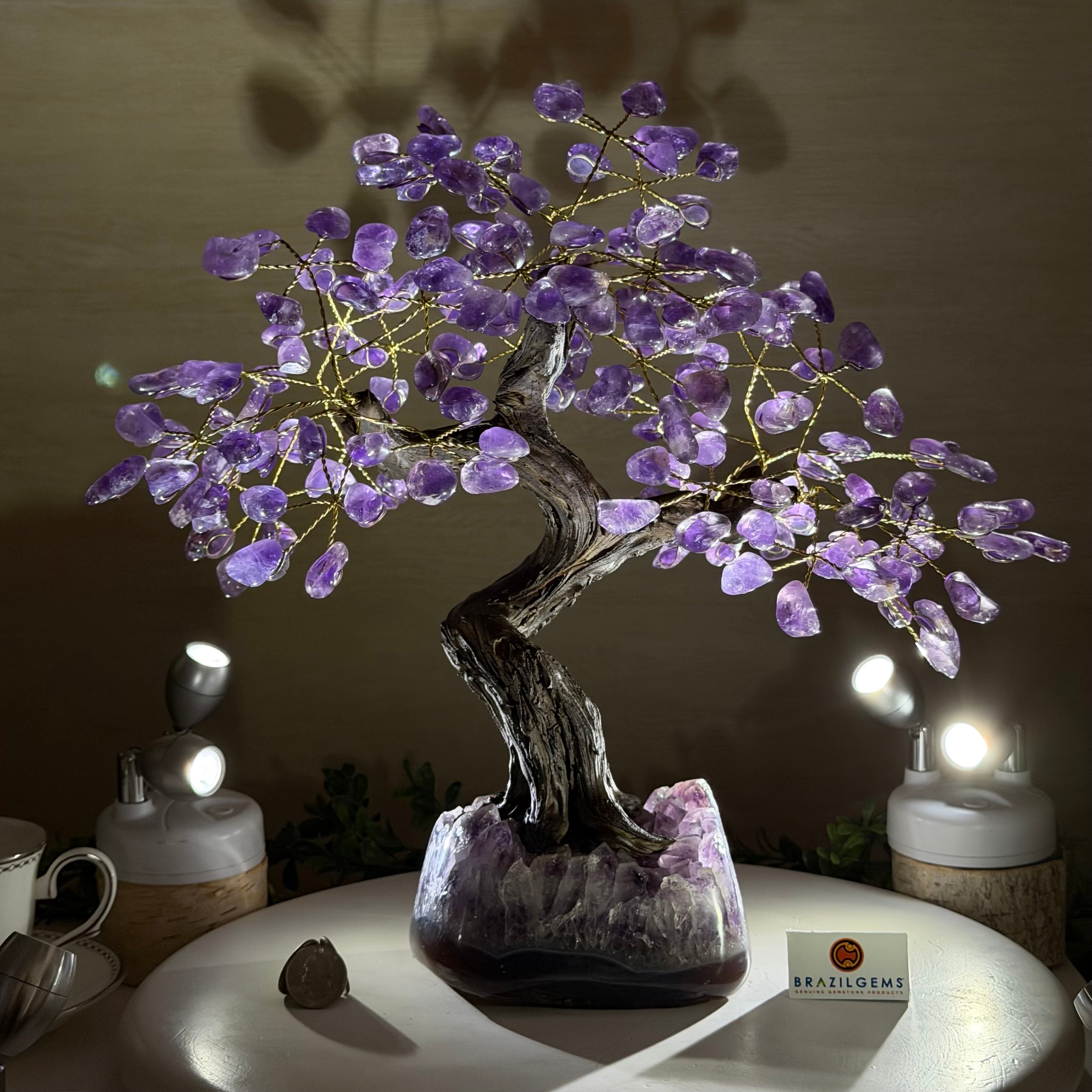 17" Tall Bonsai Amethyst Gemstone Tree, Amethyst base, 240 Gems #5405AMTH-001