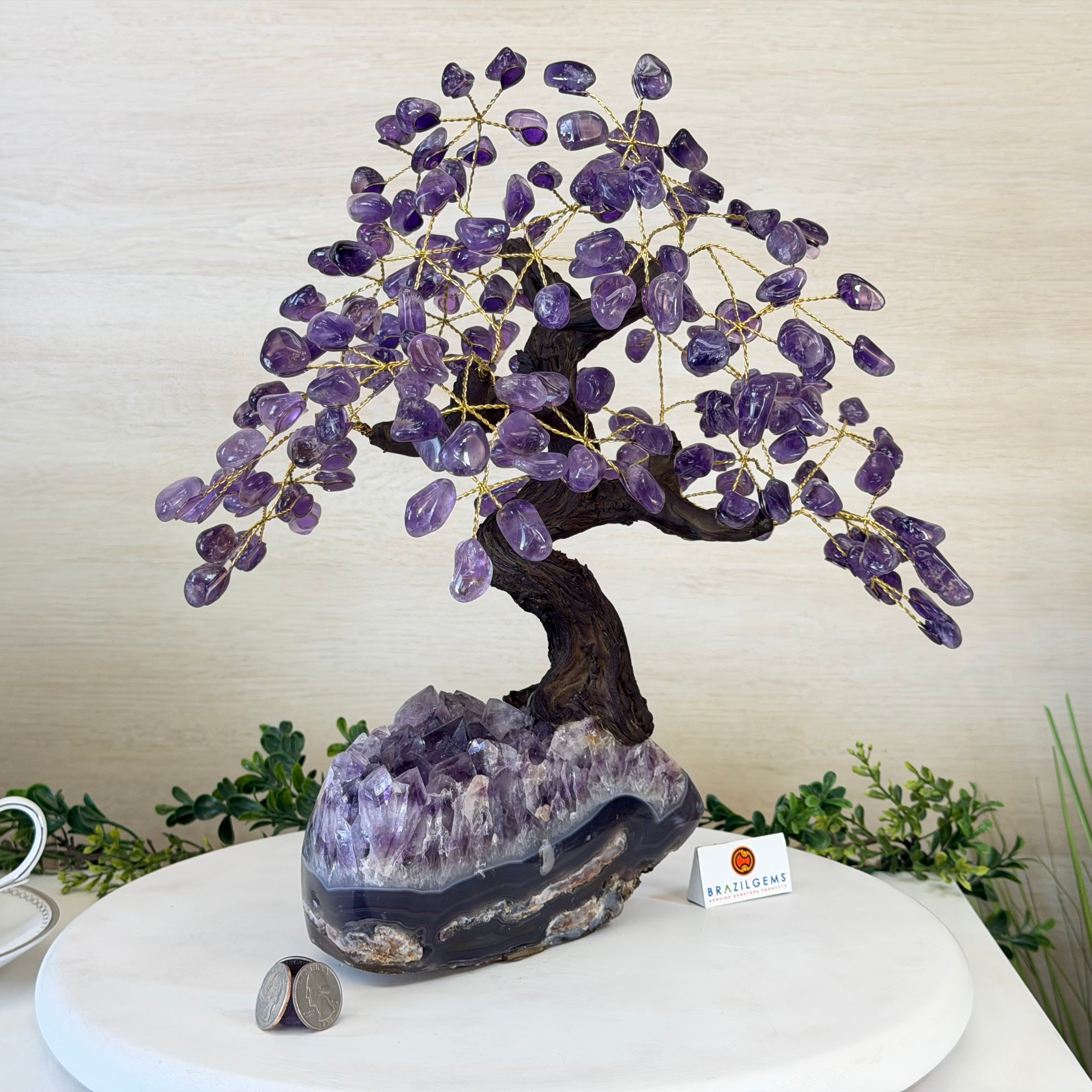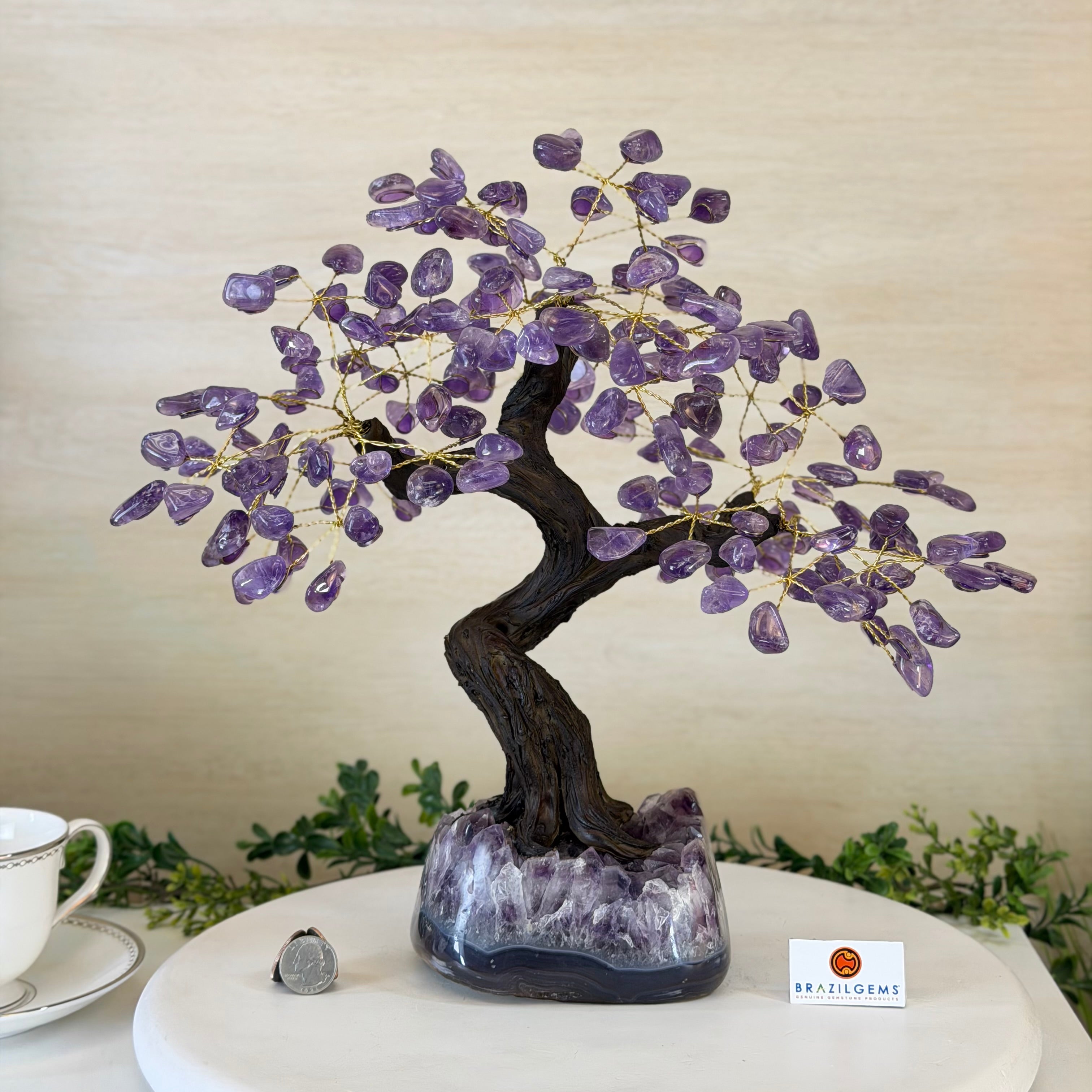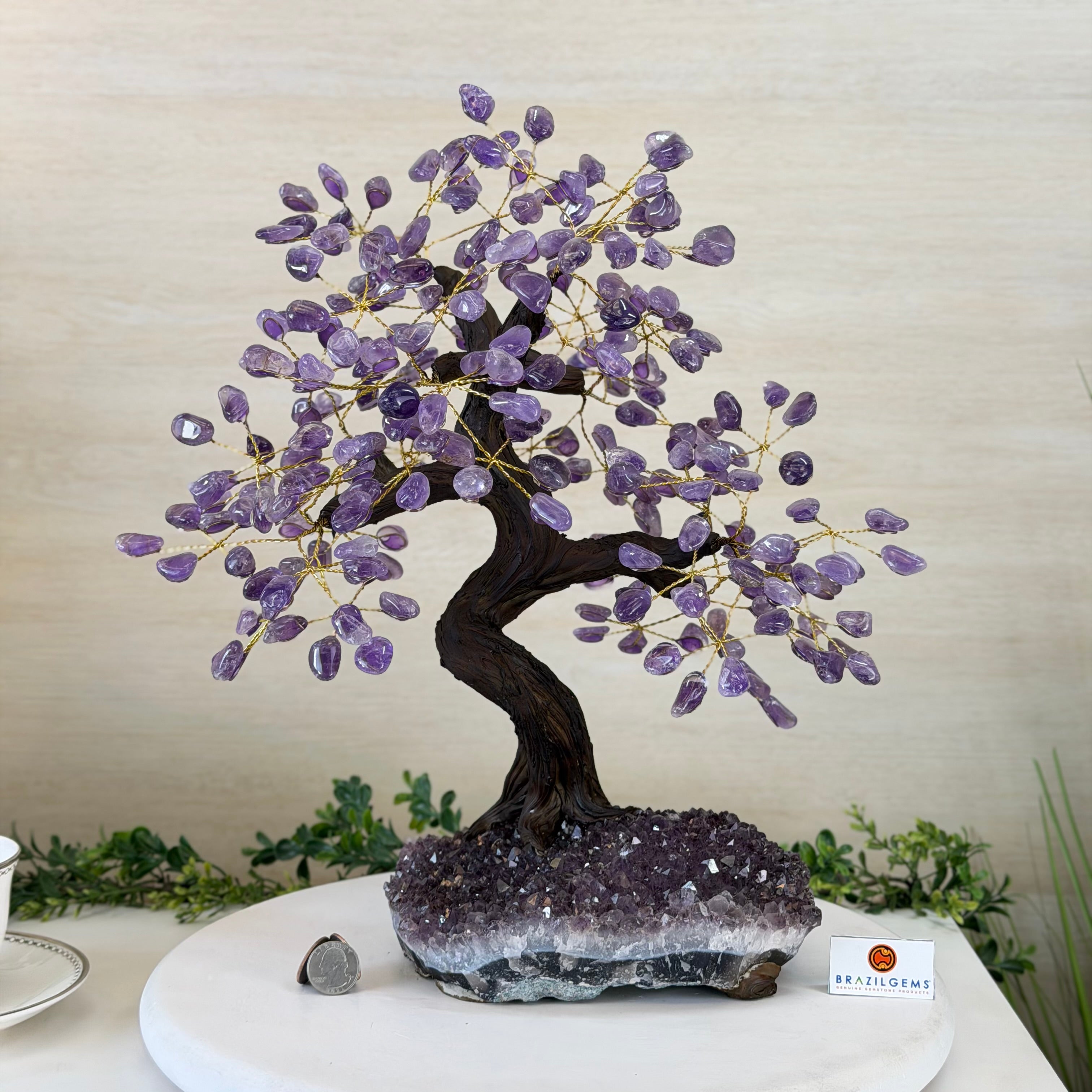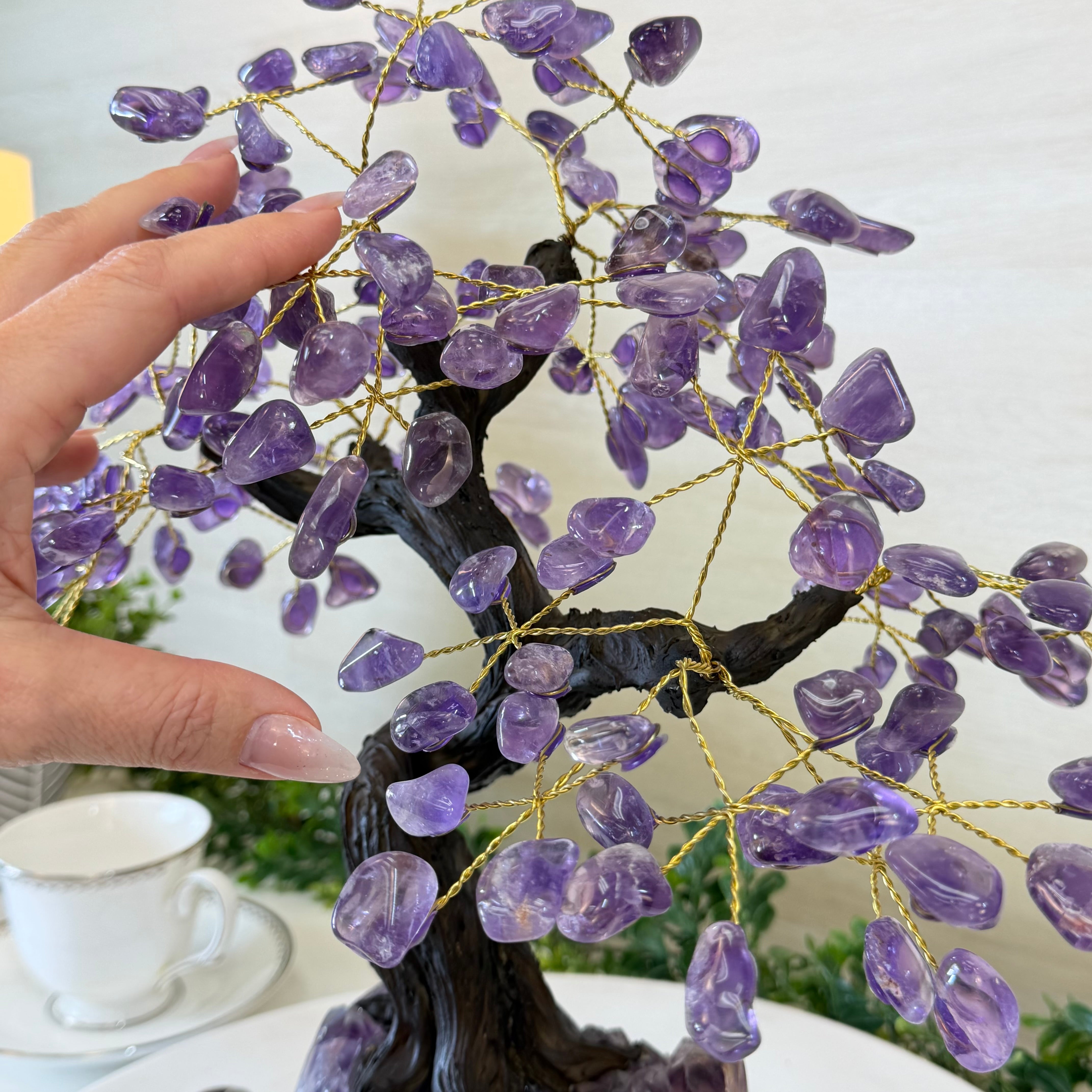 17" Tall Bonsai Amethyst Gemstone Tree, Amethyst base, 240 Gems #5405AMTH-001