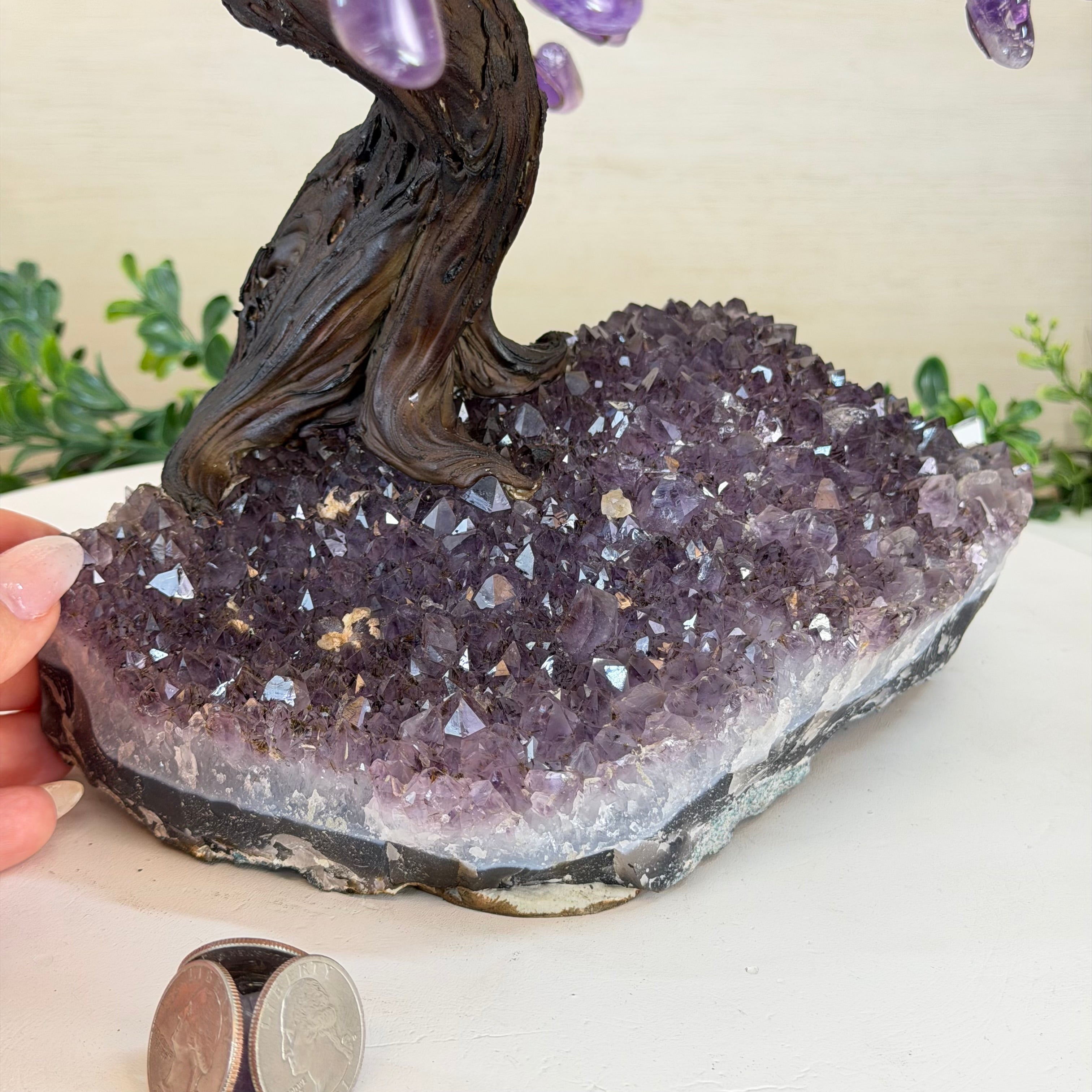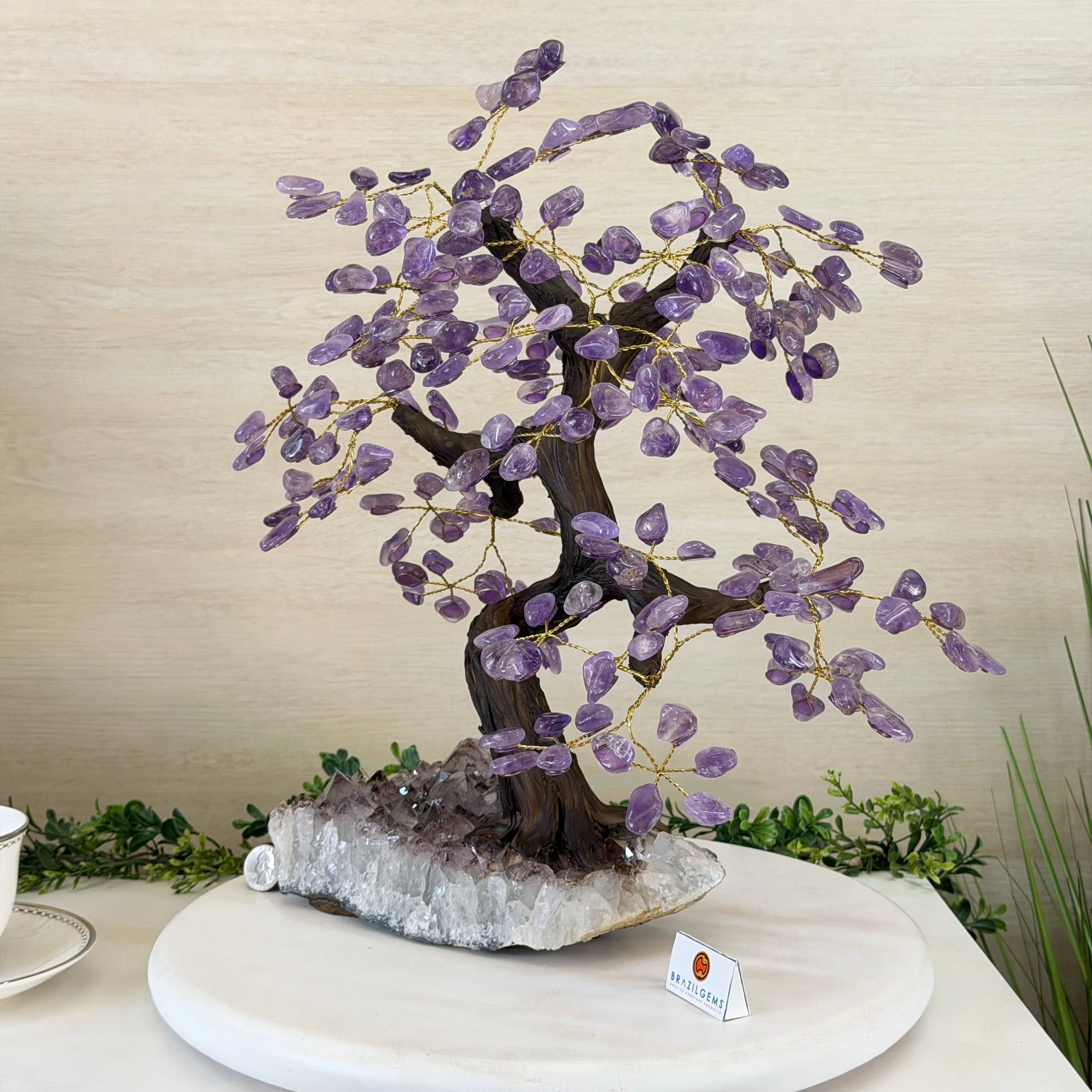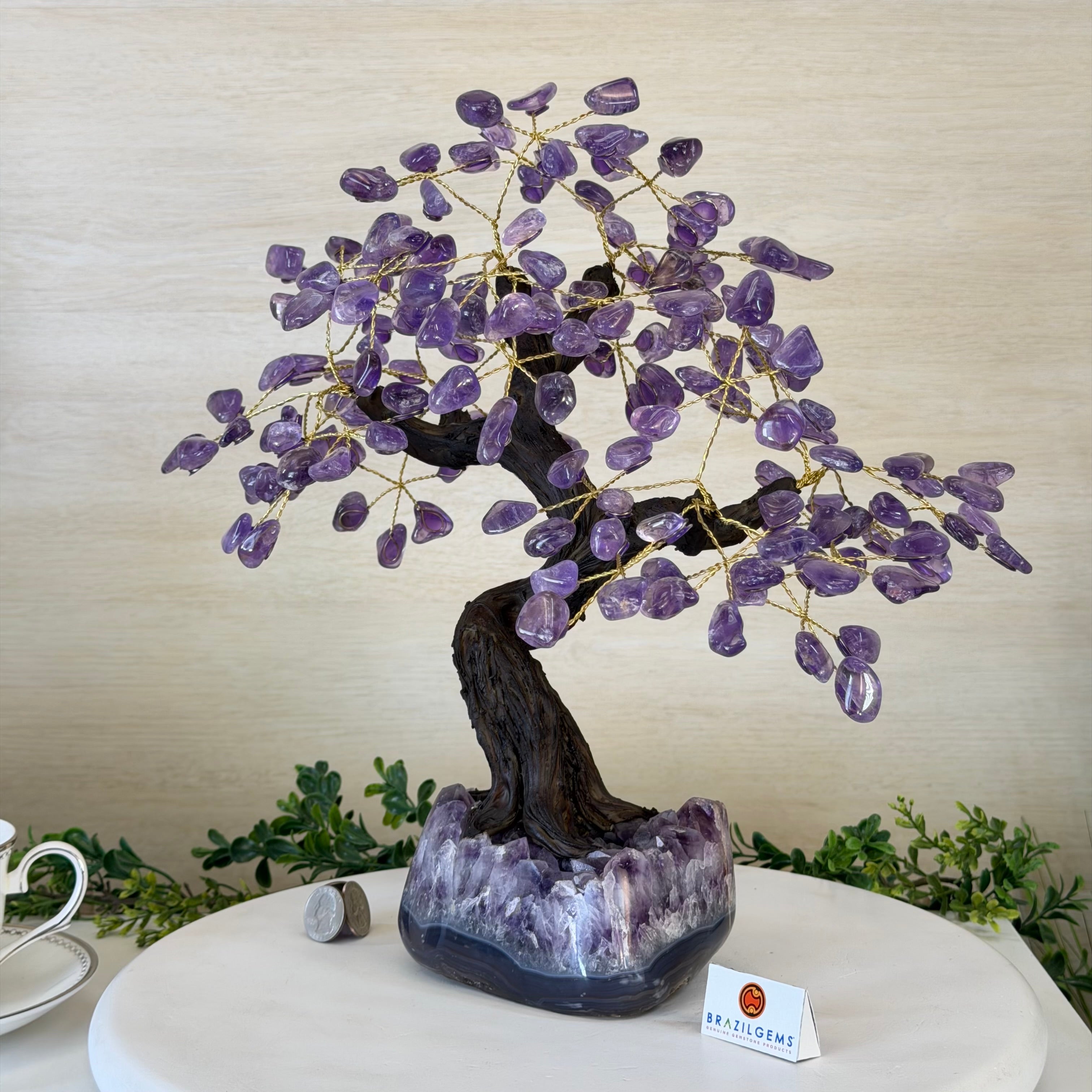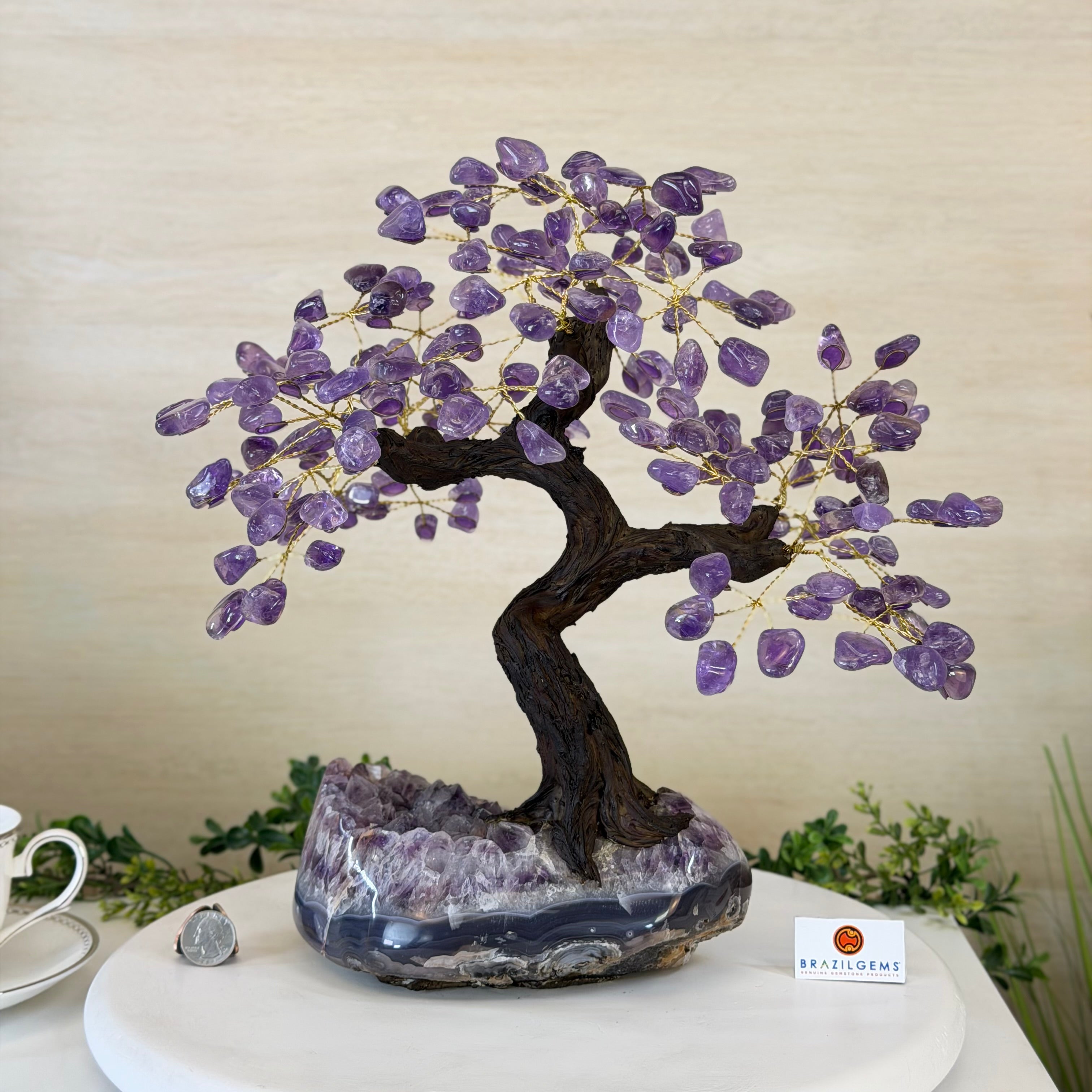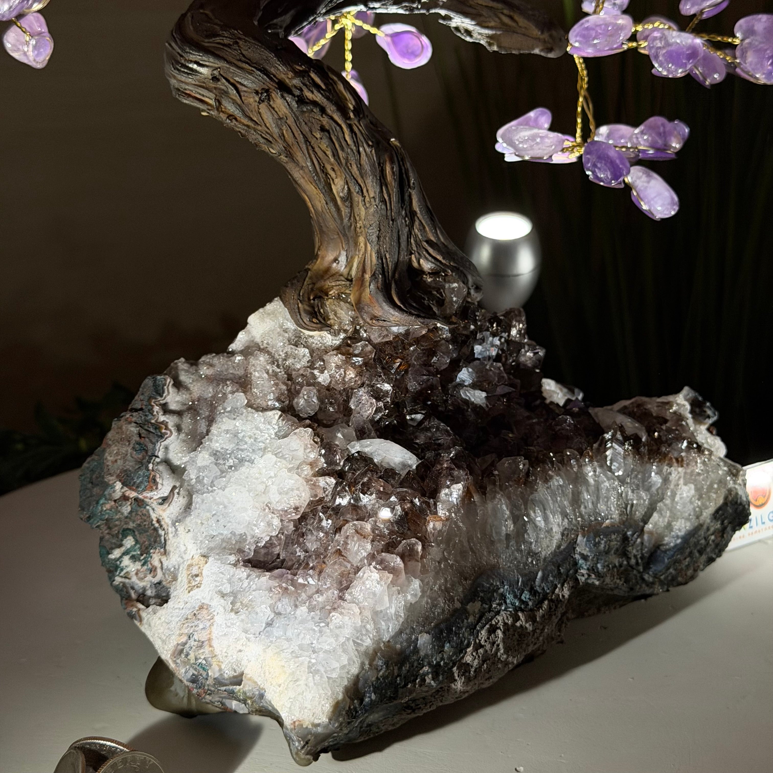 17" Tall Bonsai Amethyst Gemstone Tree, Amethyst base, 240 Gems #5405AMTH-001