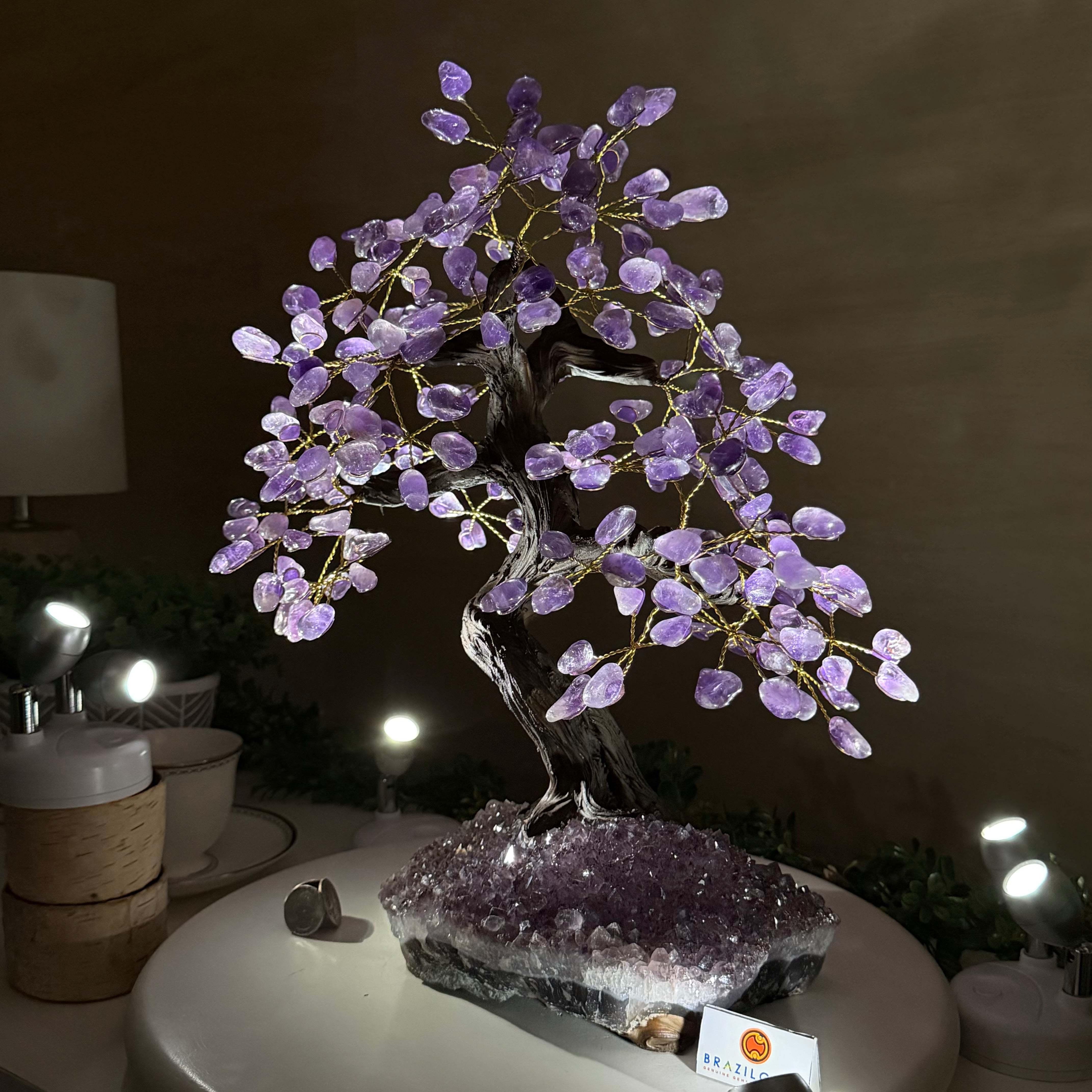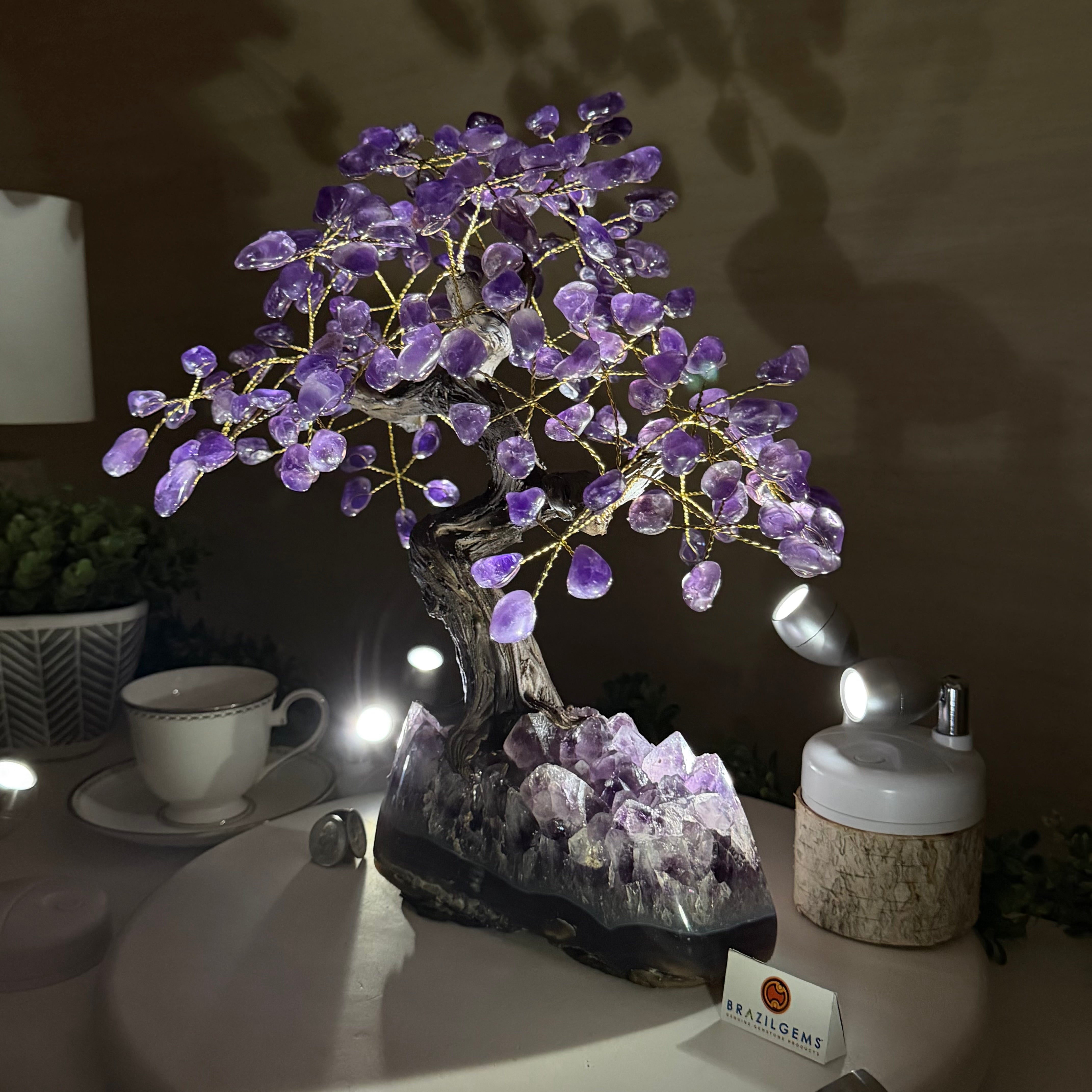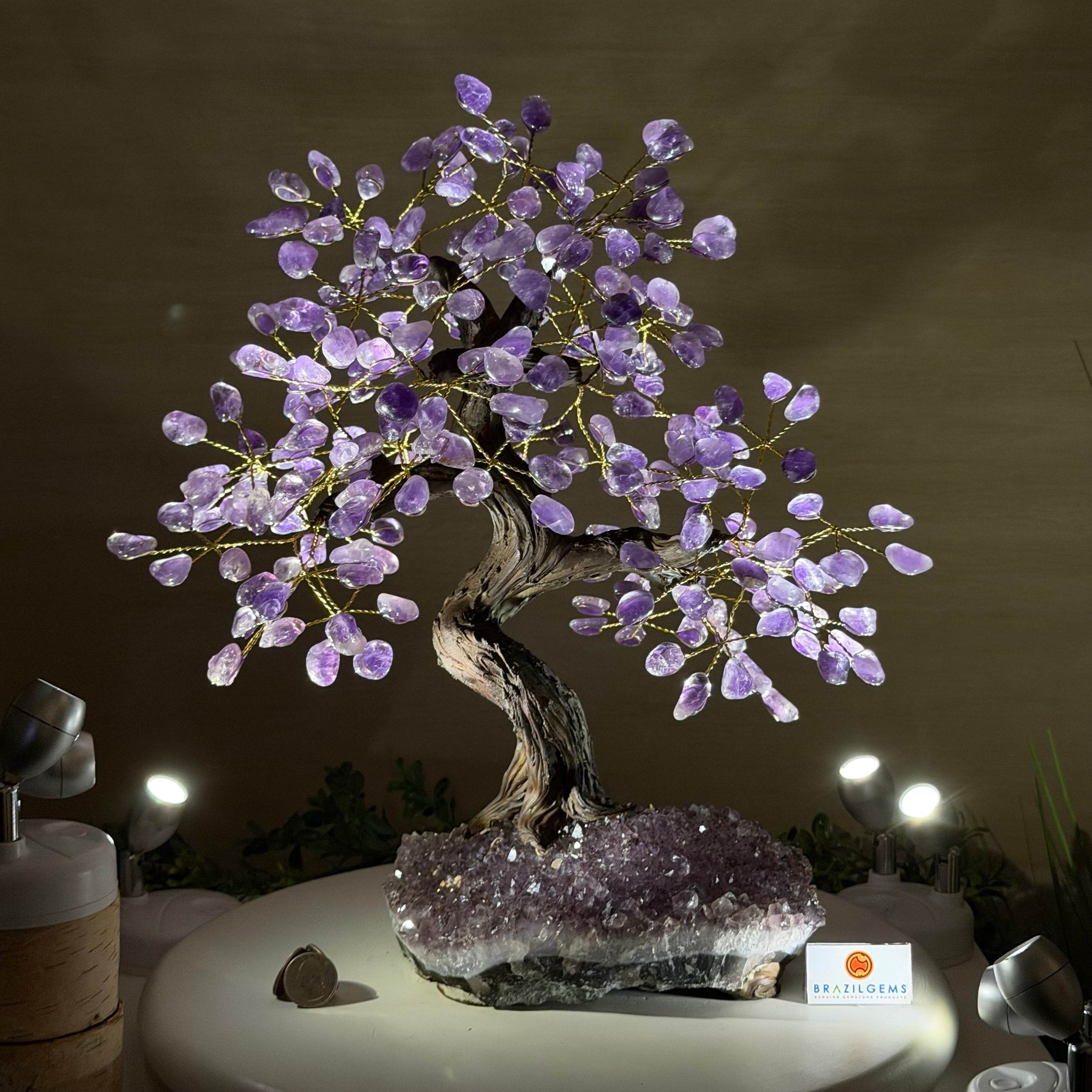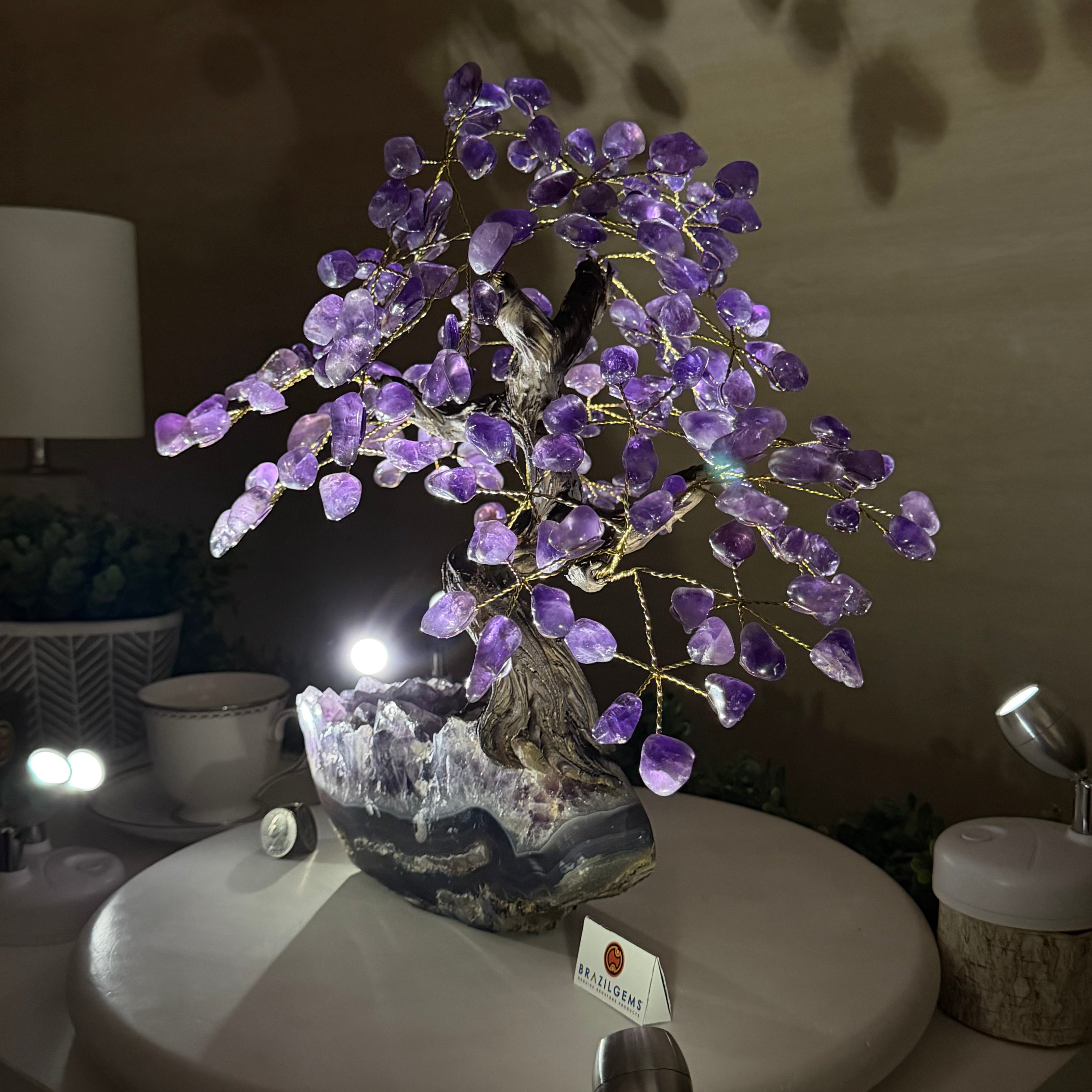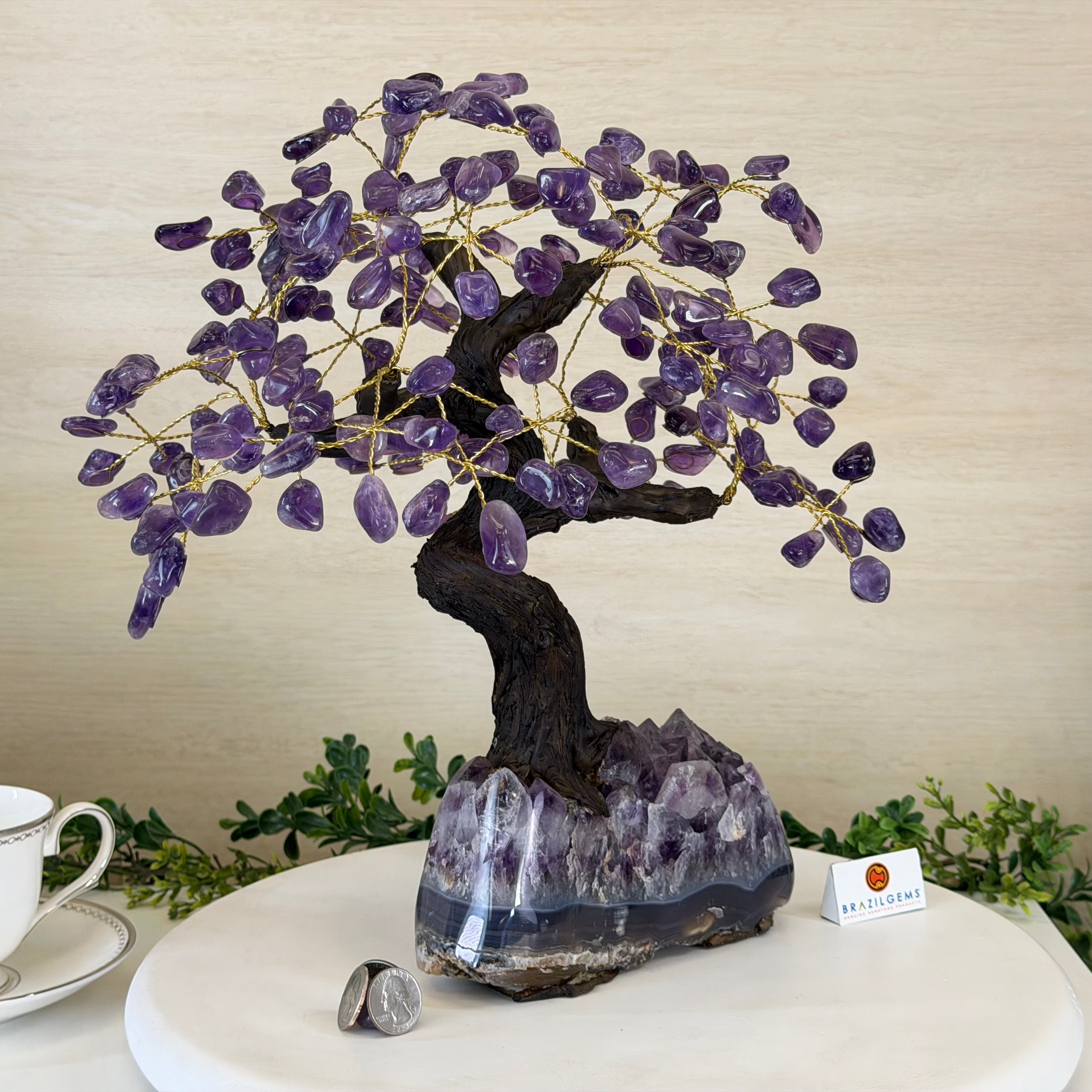 17" Tall Bonsai Amethyst Gemstone Tree, Amethyst base, 240 Gems #5405AMTH-001