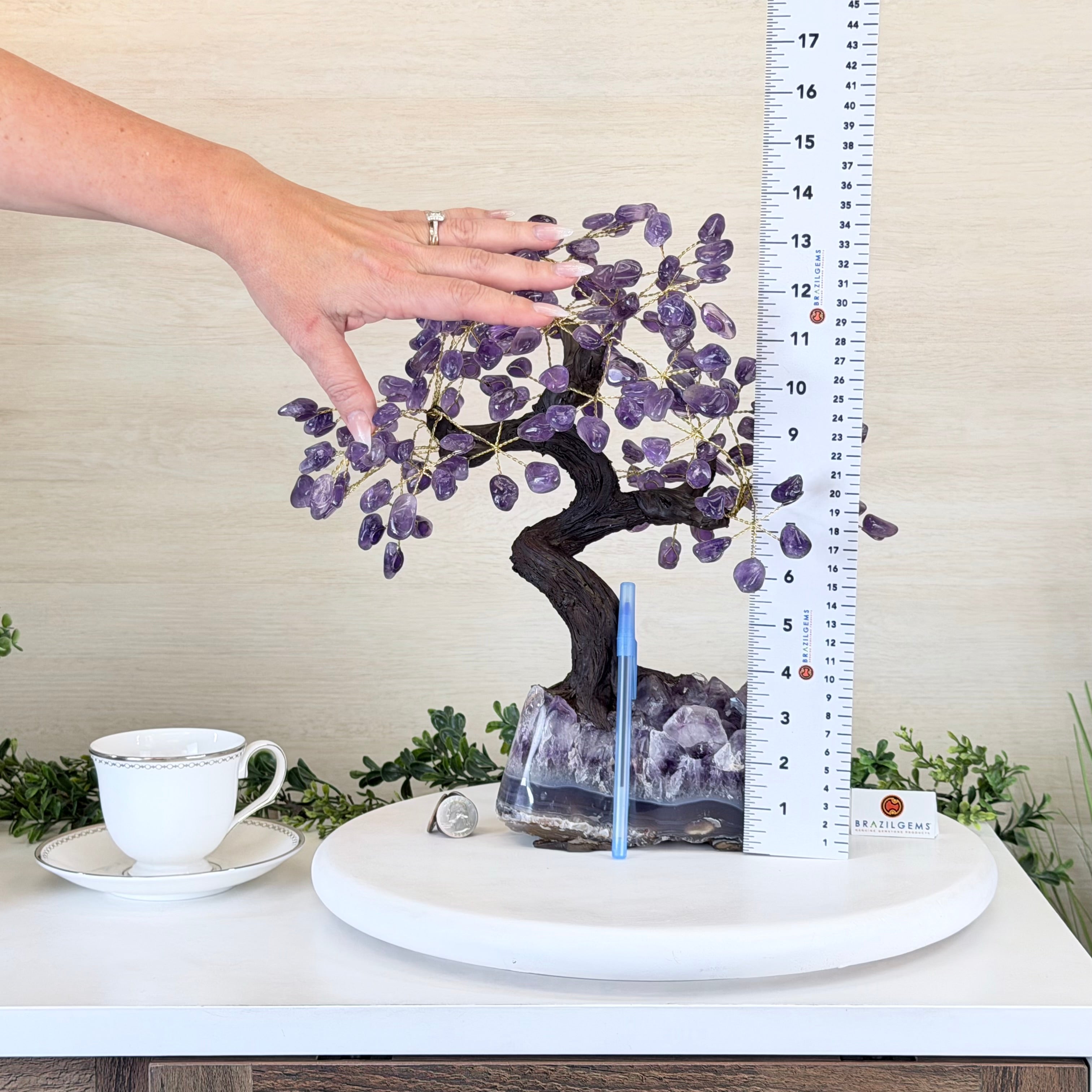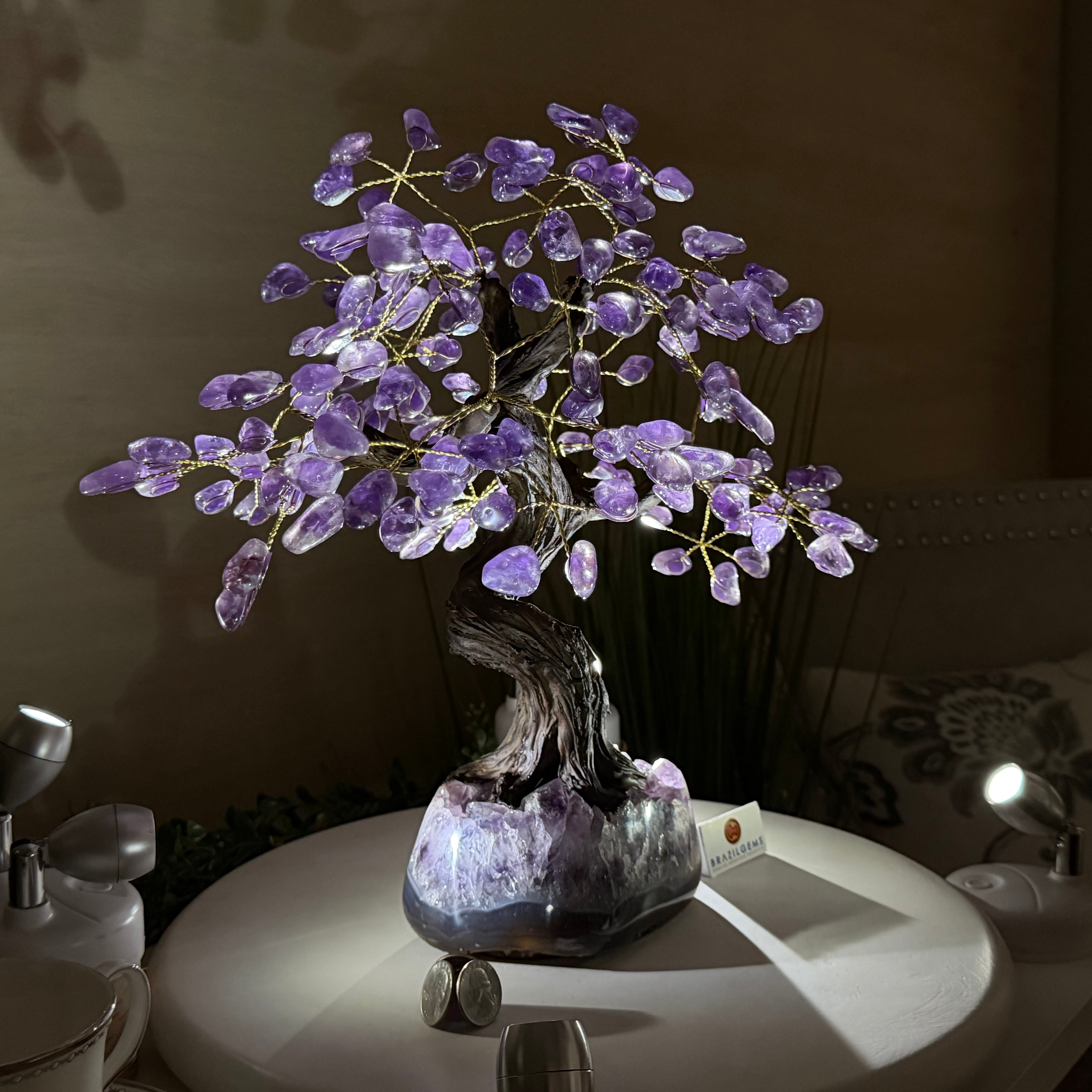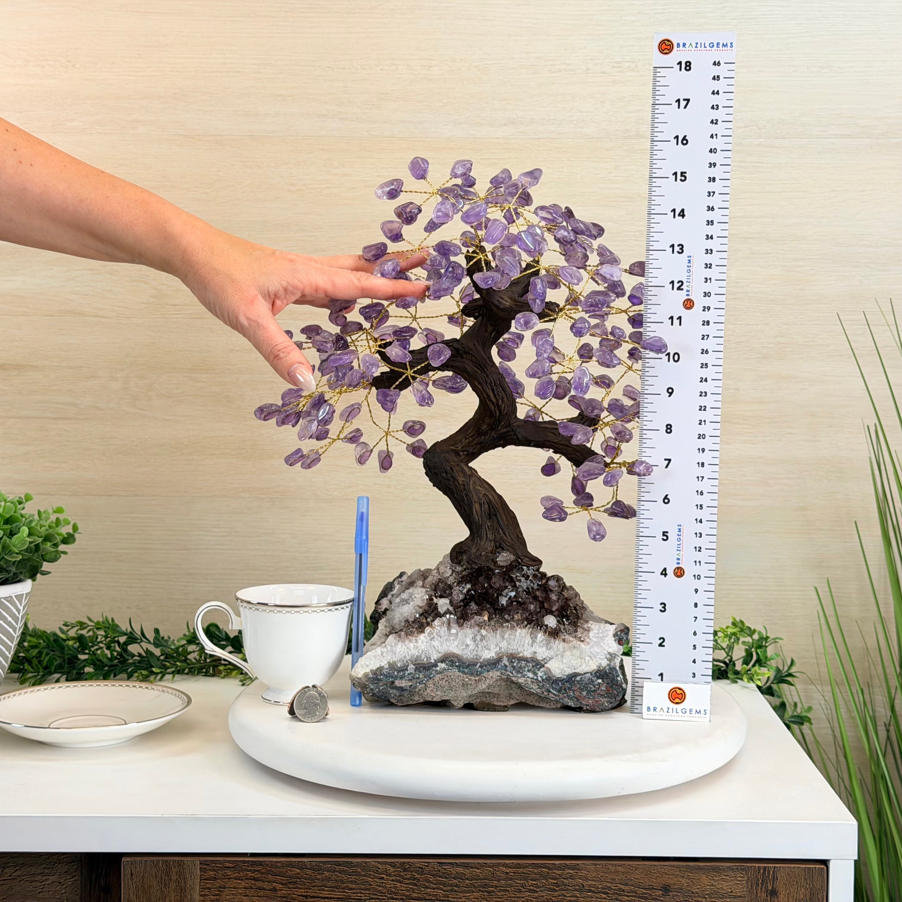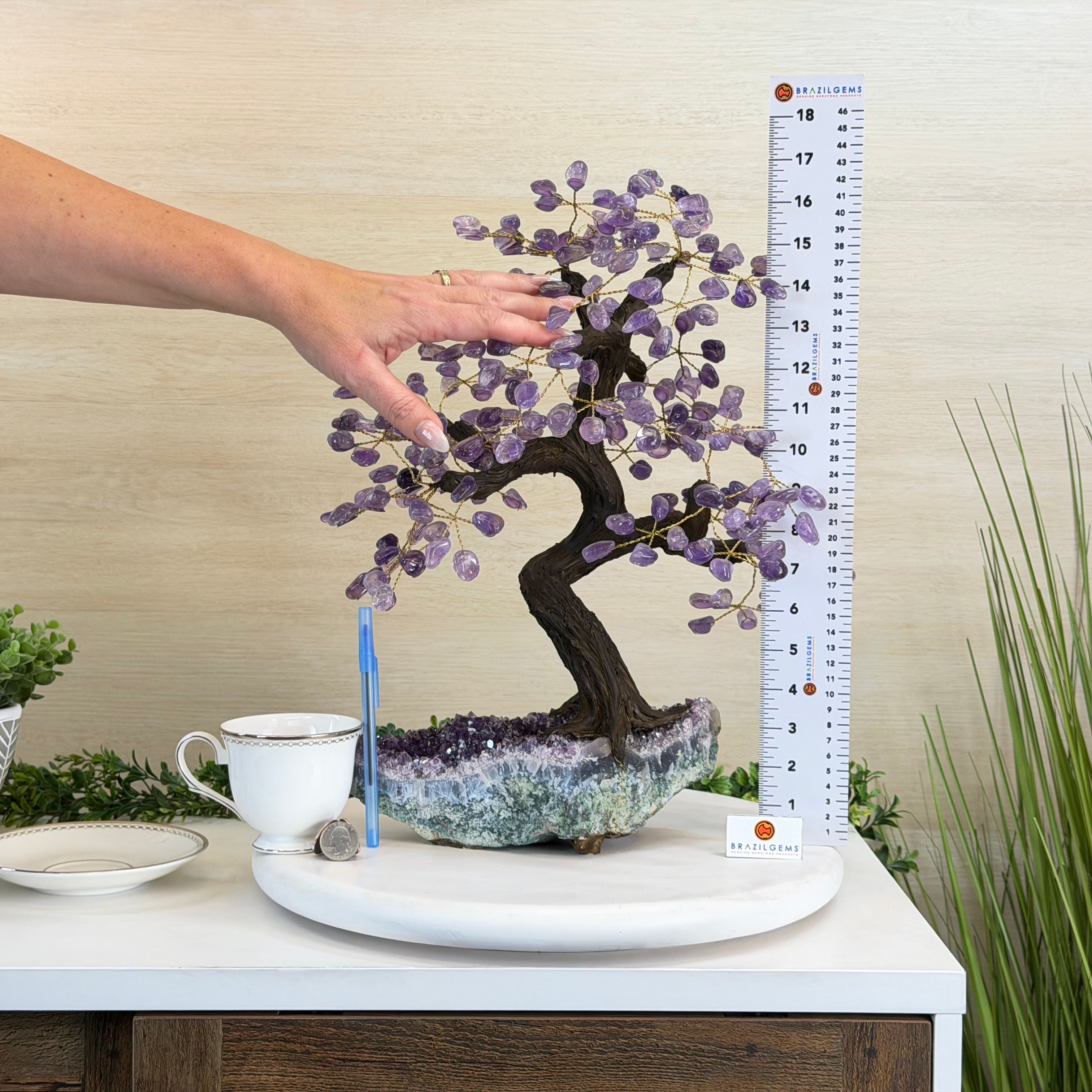 17" Tall Bonsai Amethyst Gemstone Tree, Amethyst base, 240 Gems #5405AMTH-001