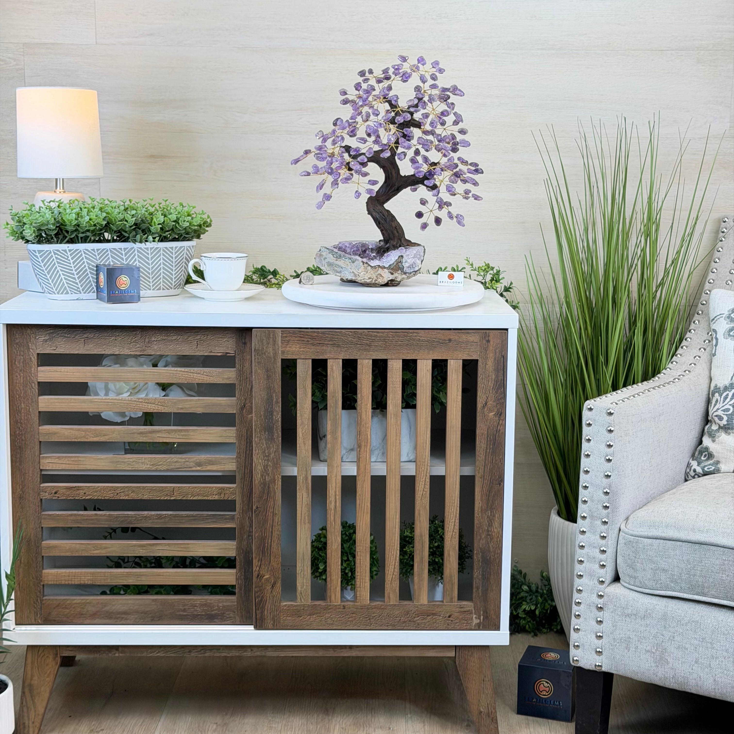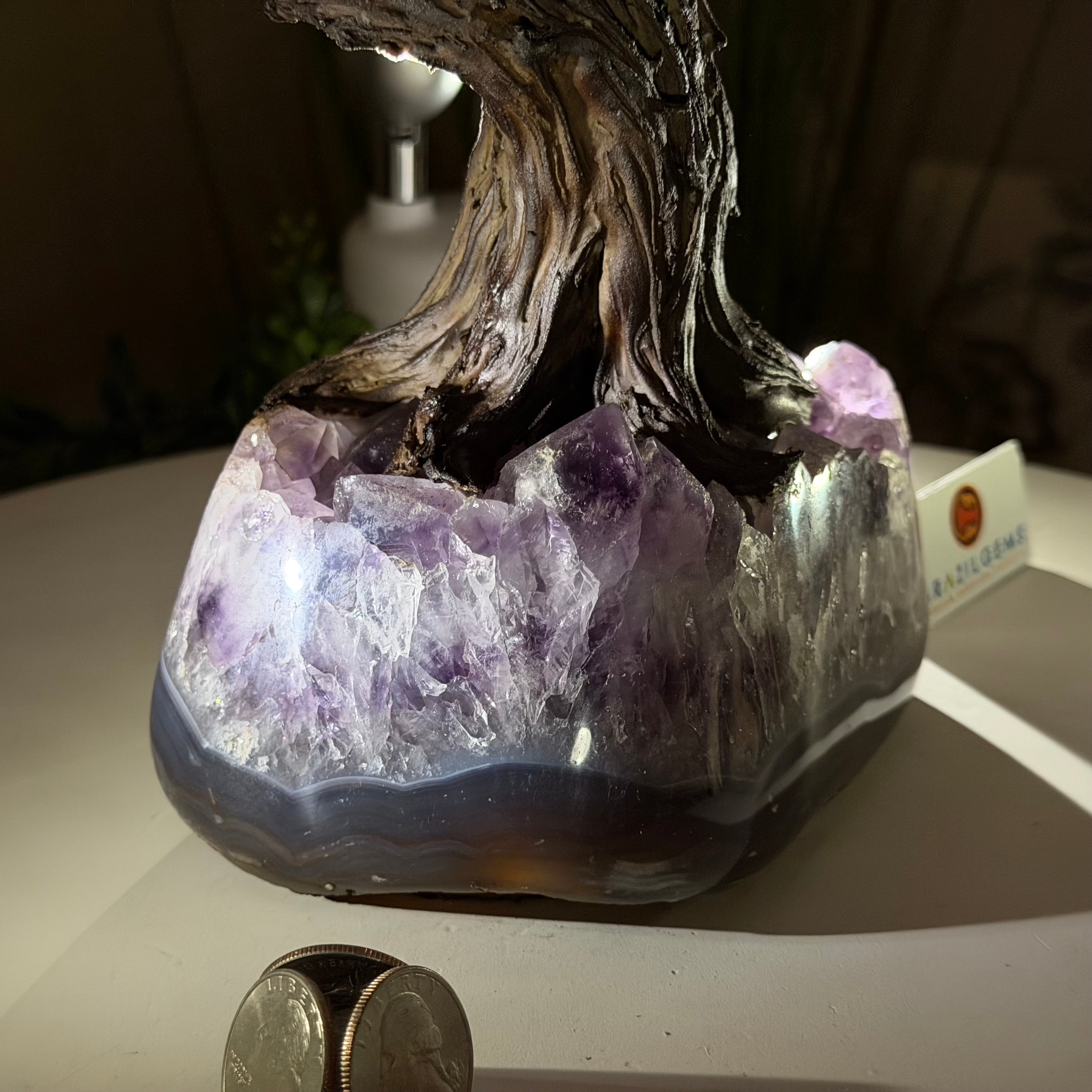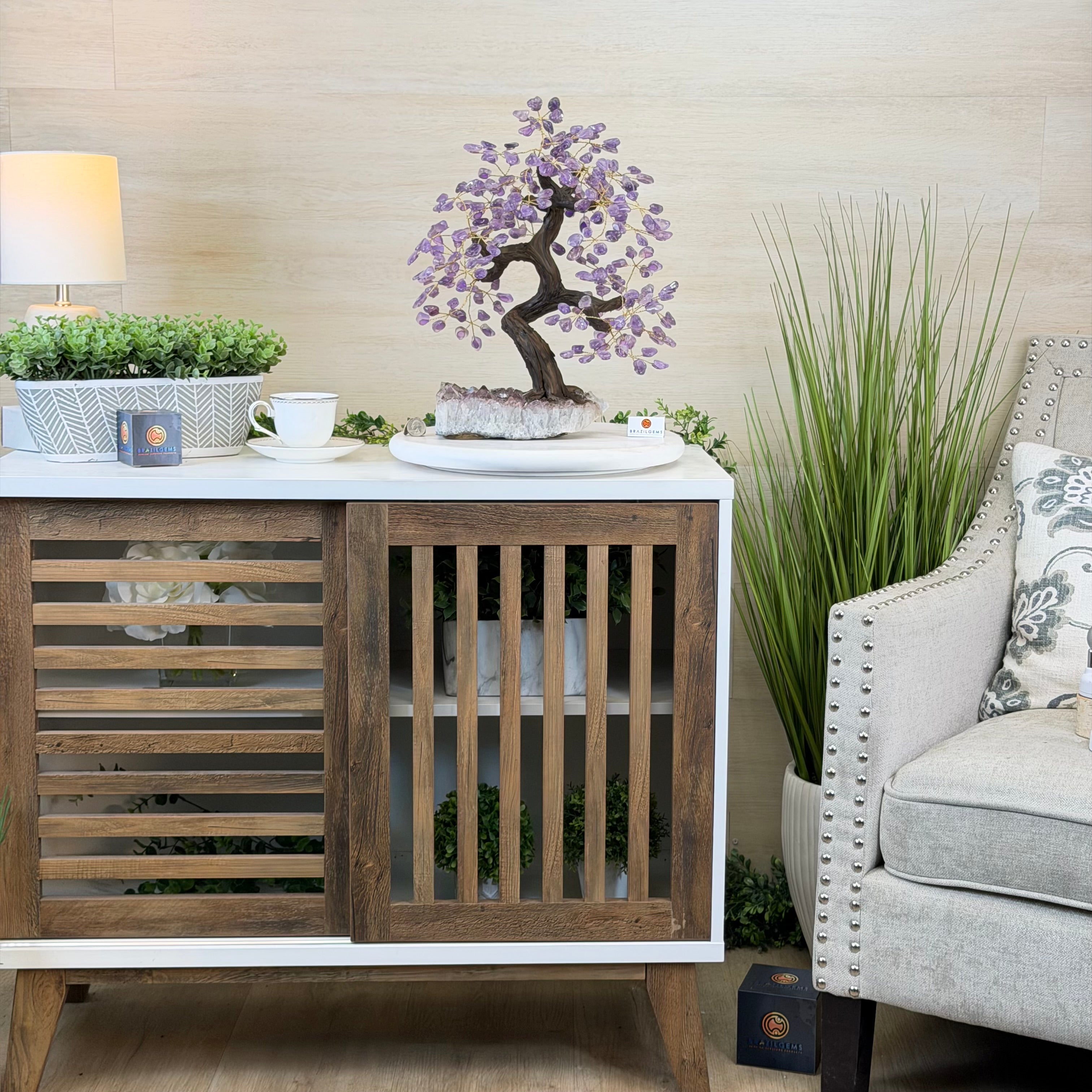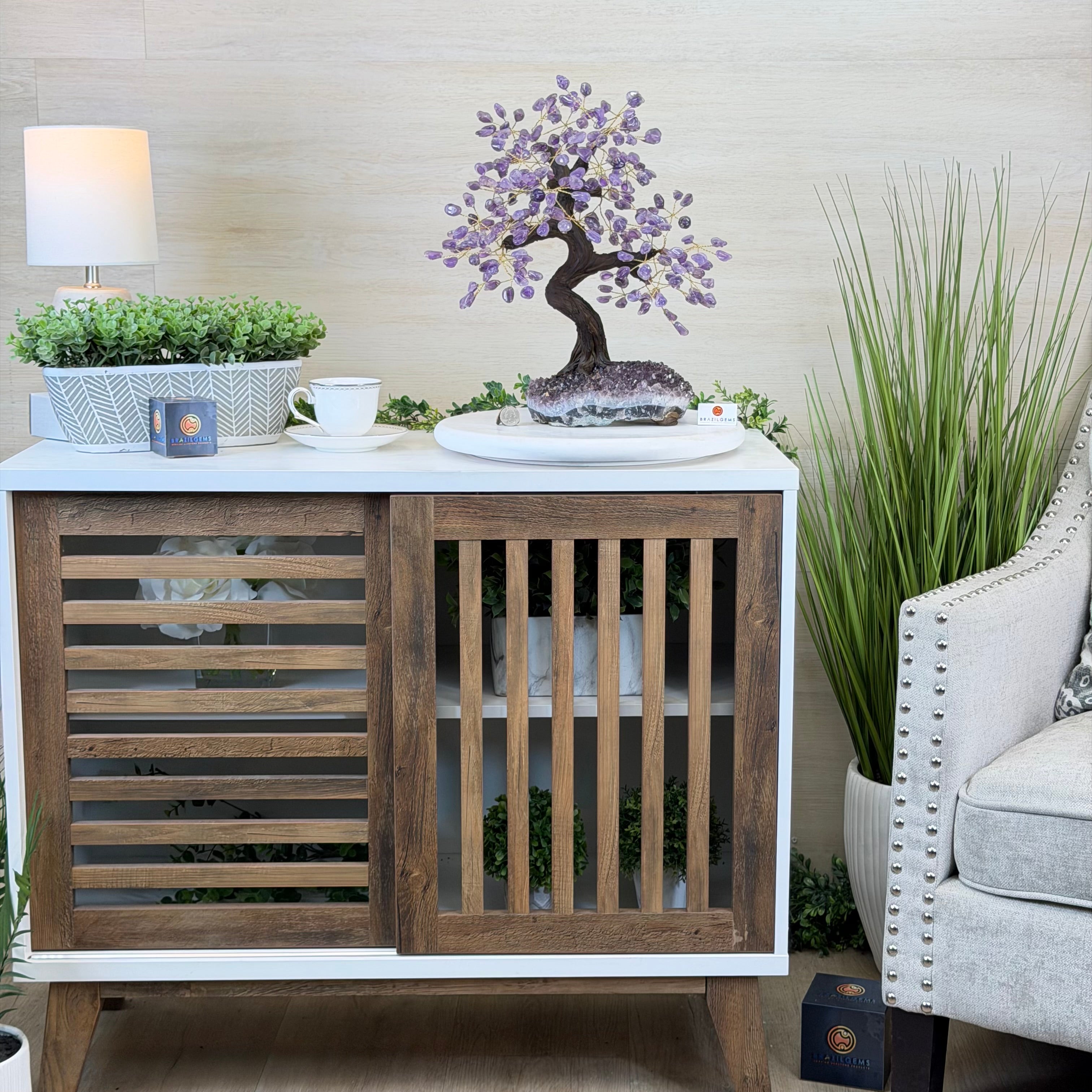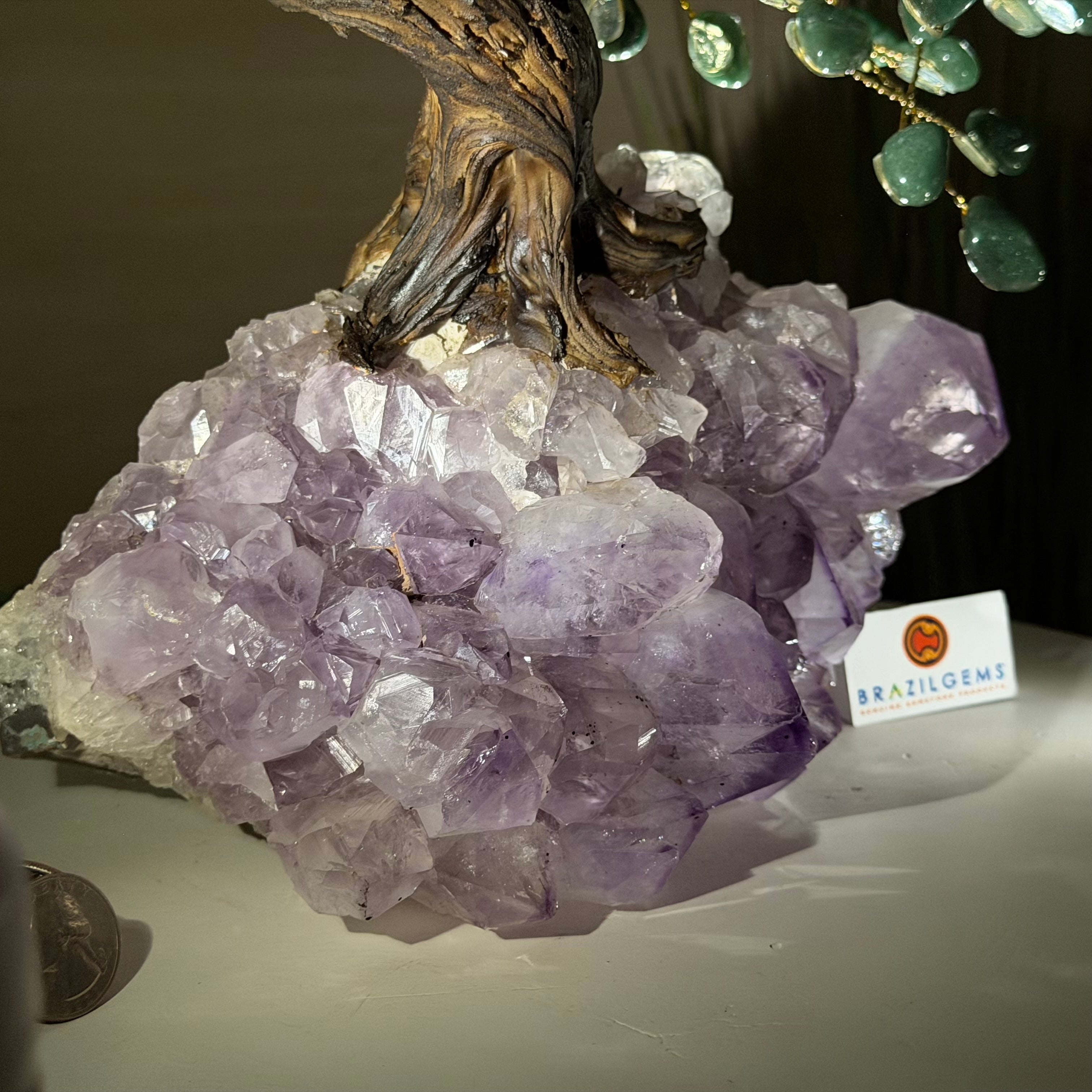 17" Tall Bonsai Amethyst Gemstone Tree, Amethyst base, 240 Gems #5405AMTH-001