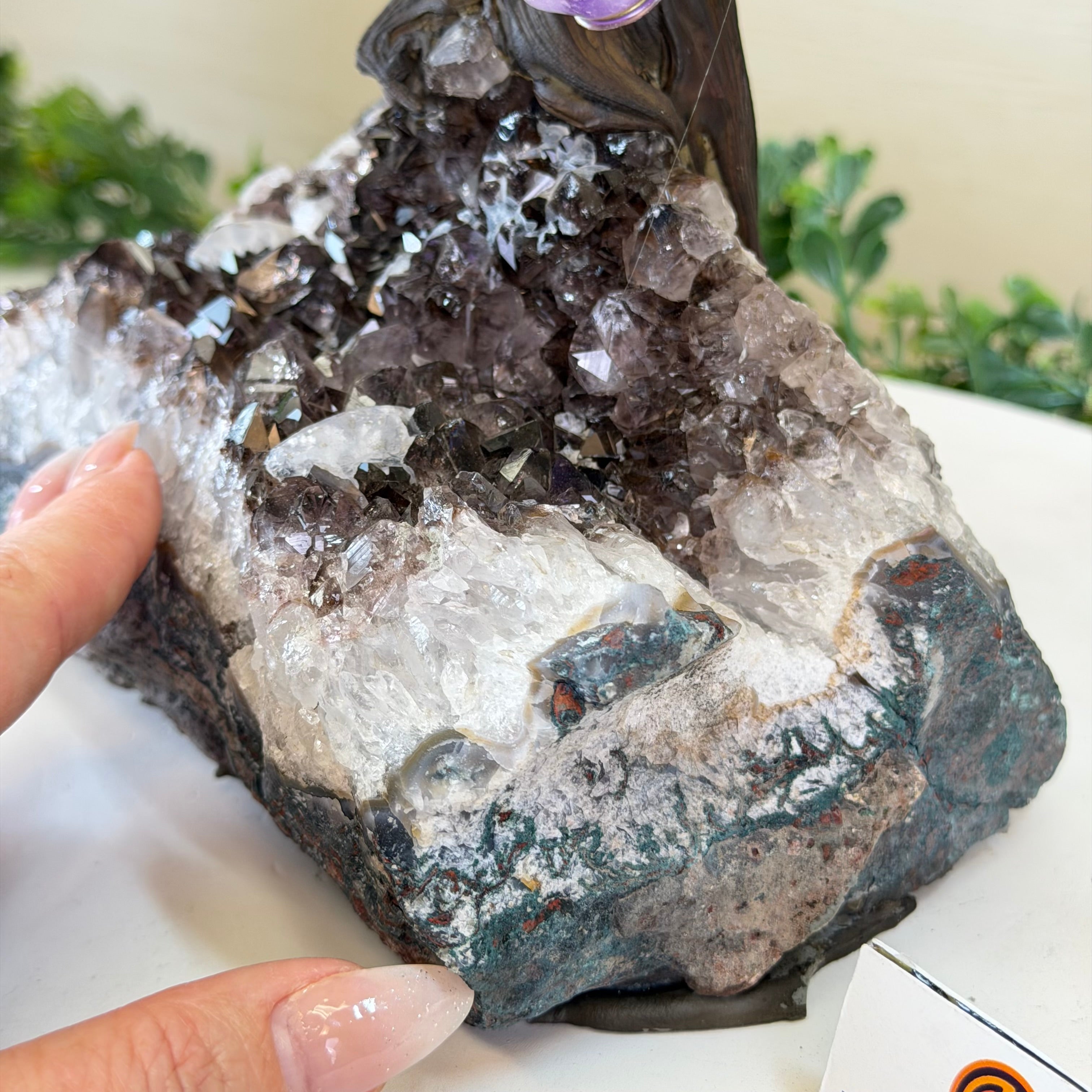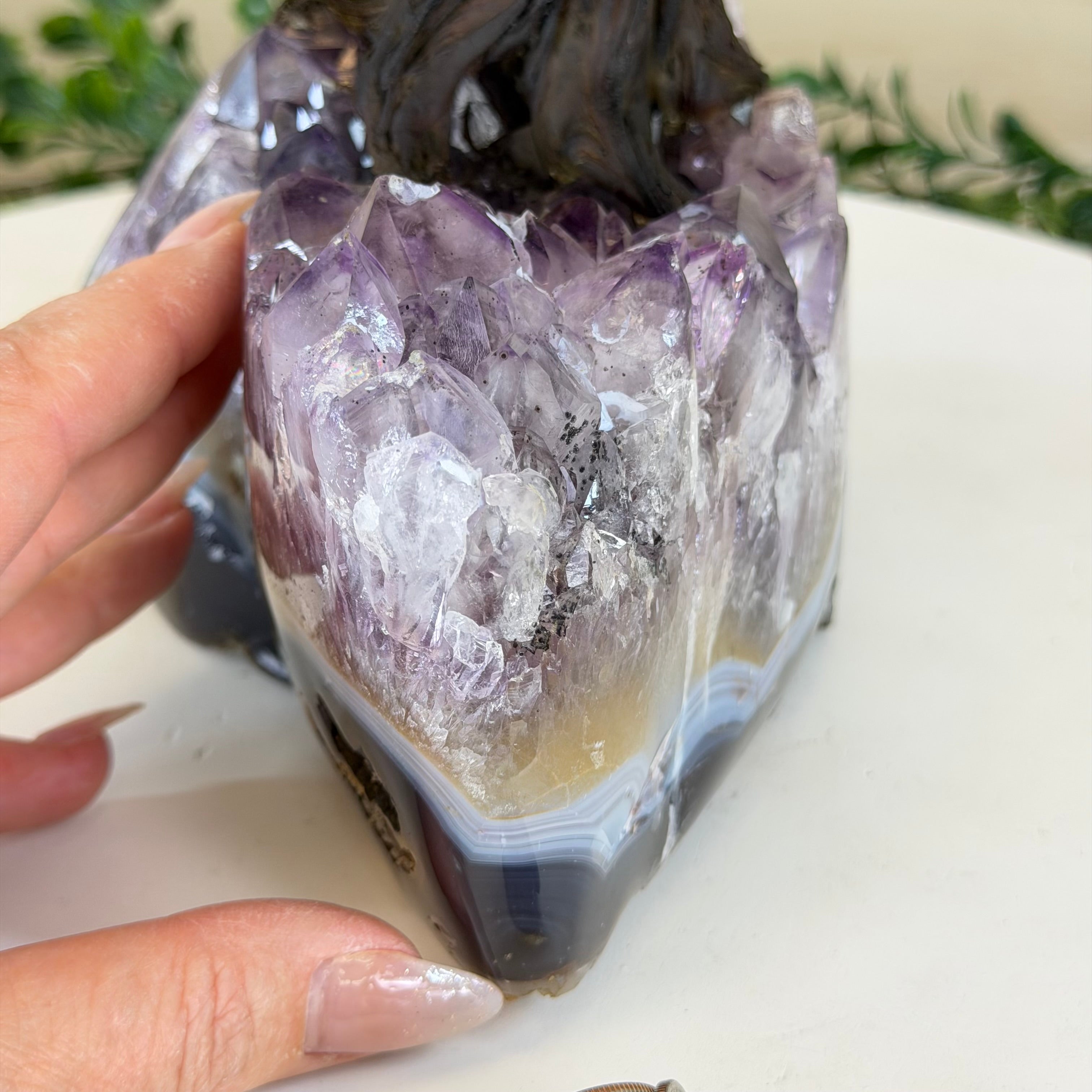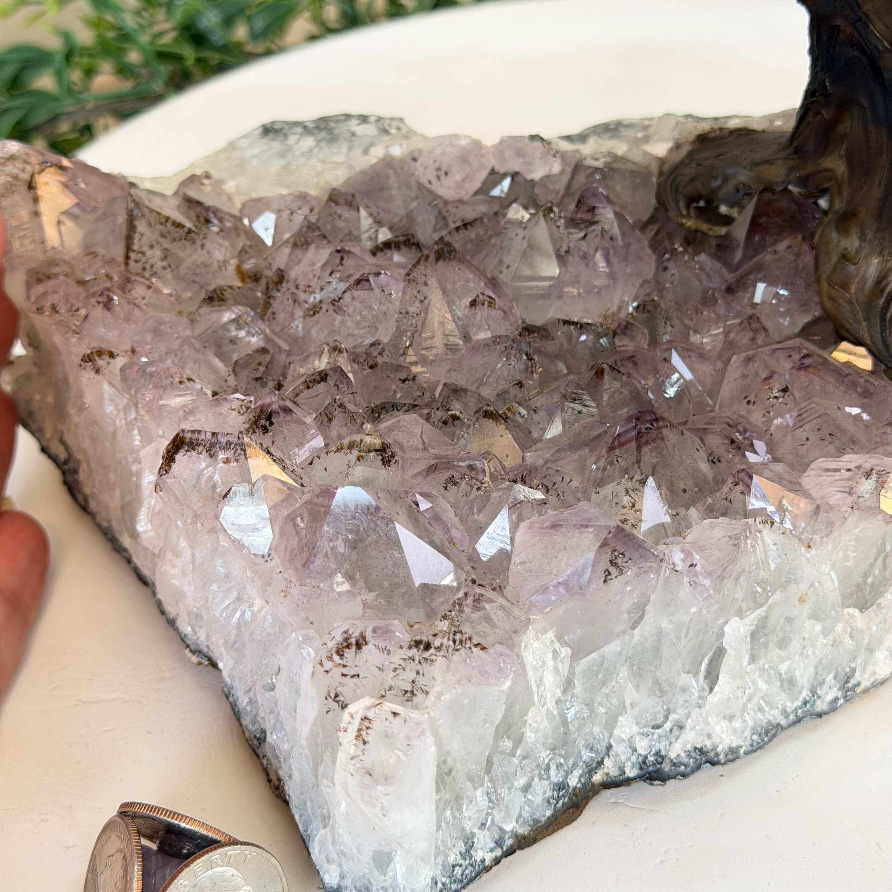 14" Tall Special Clear Quartz Gemstone Tree, Amethyst base, 180 Gems #5404XCQ-001