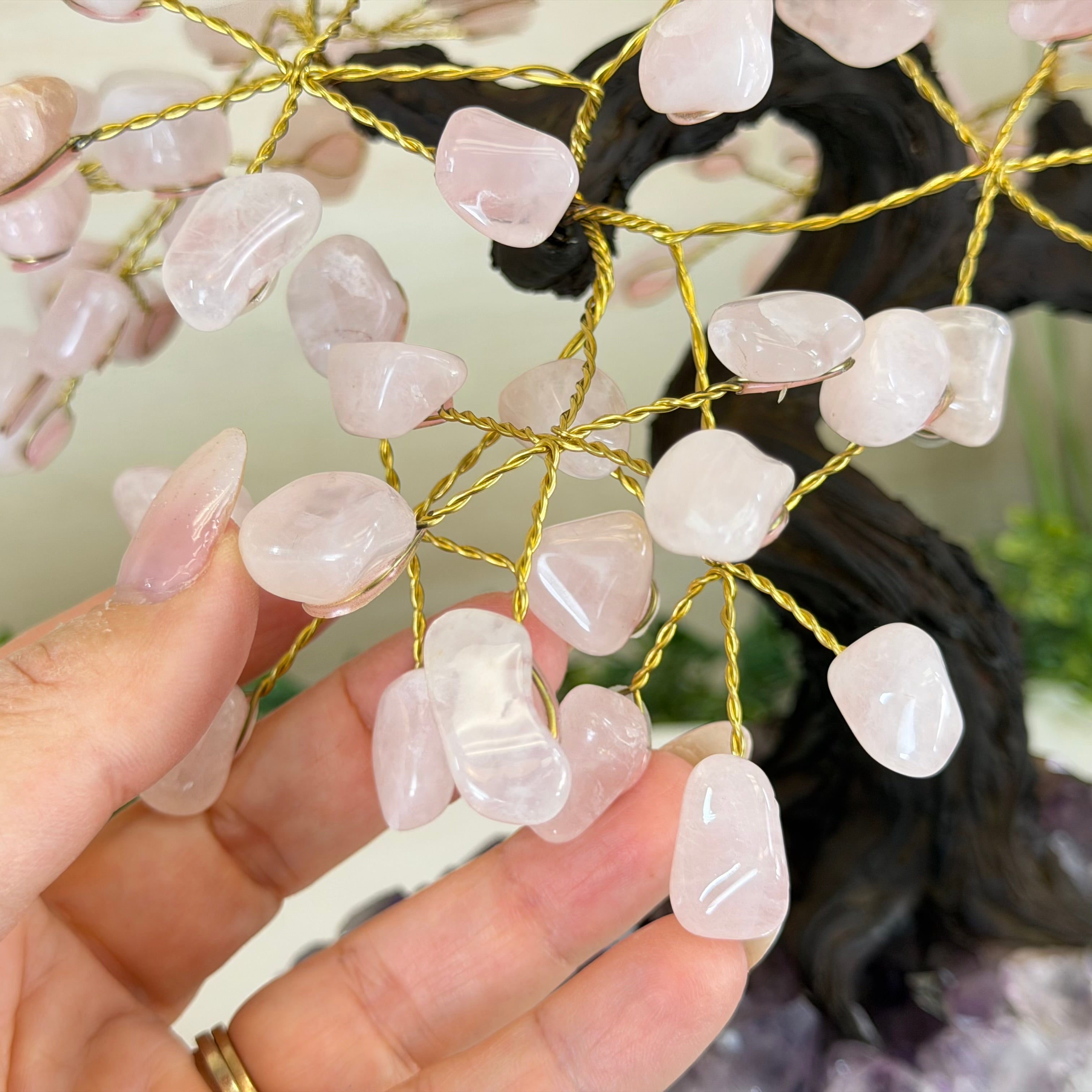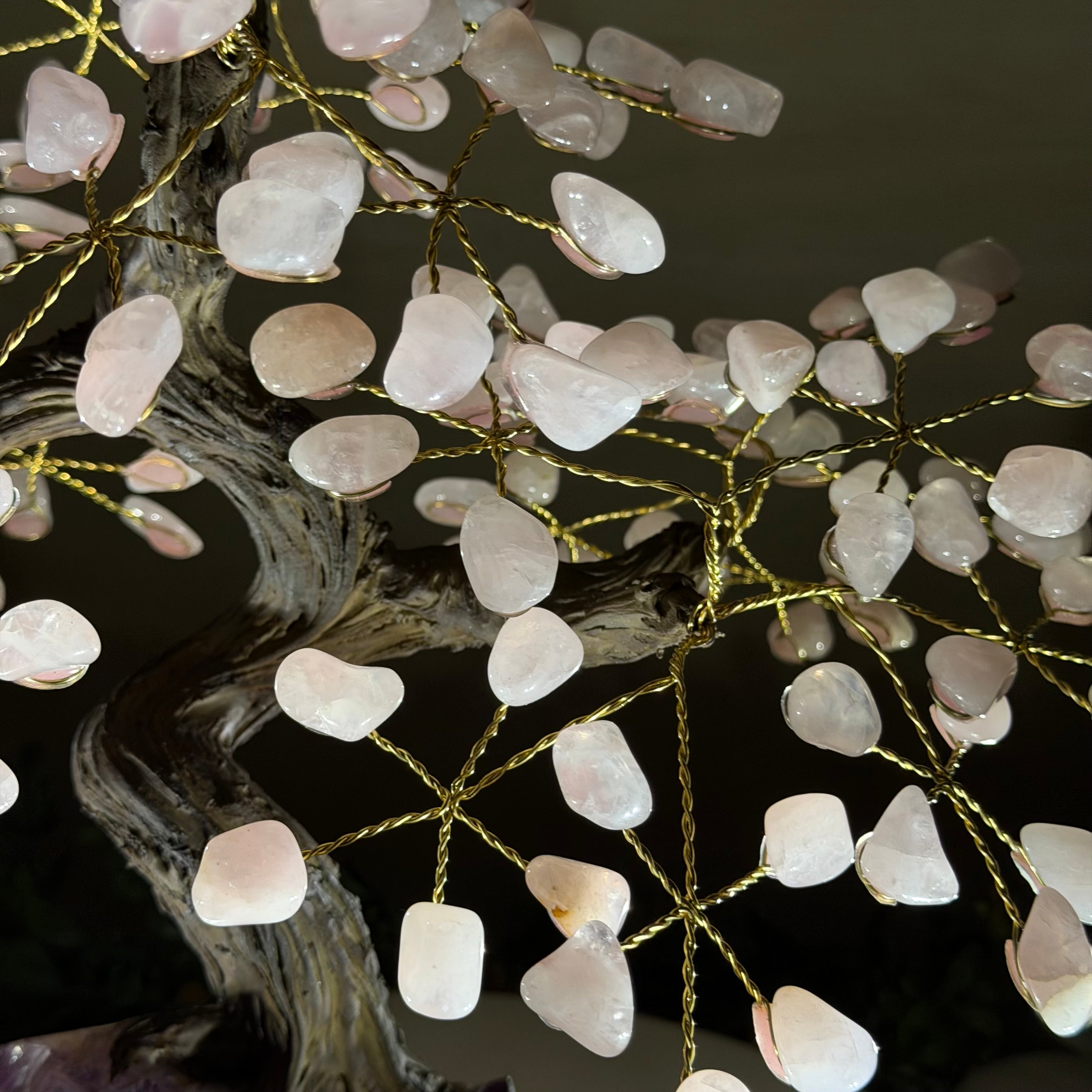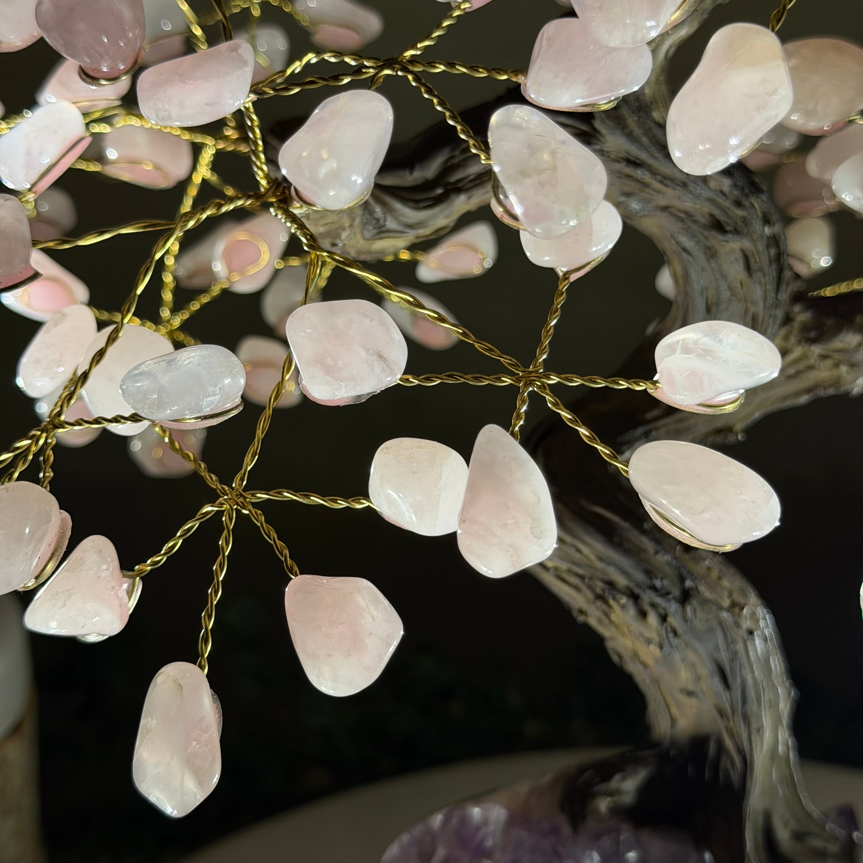 16" Tall Special Rose Quartz Gemstone Tree on an Amethyst base, 240 Gems #5405XRQ-001