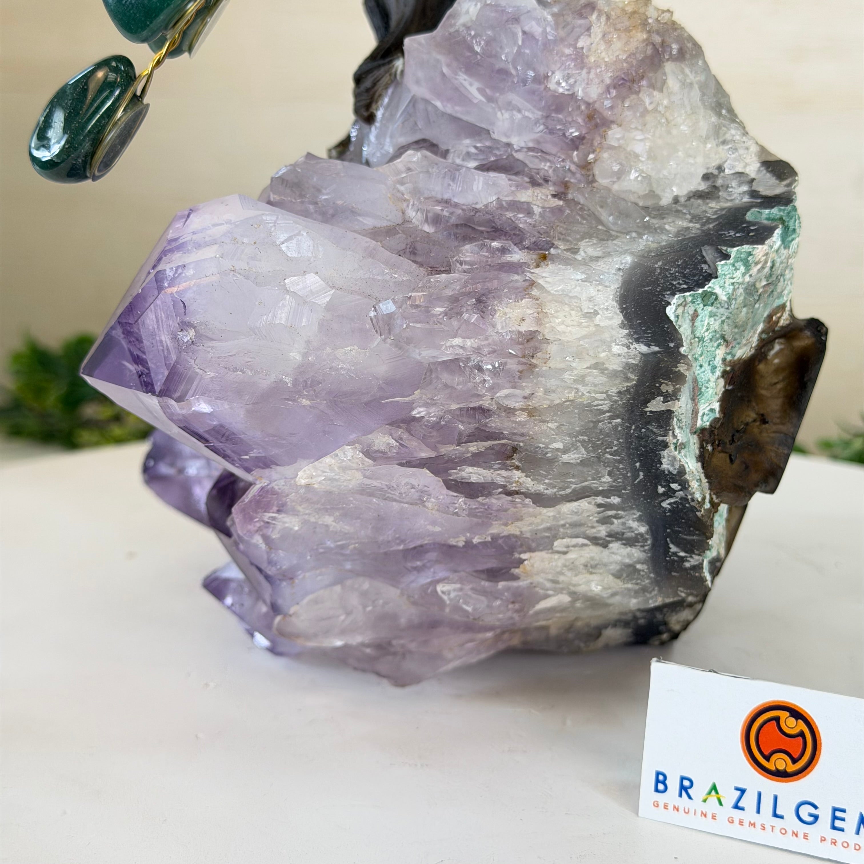 14" Tall Special Green Quartz Gemstone Tree, Amethyst base, 180 Gems #5404XGQ-002