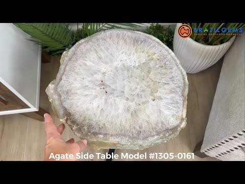 Natural Brazilian Agate Side Table on a black metal base, 22" tall #1305-0161 by Brazil Gems