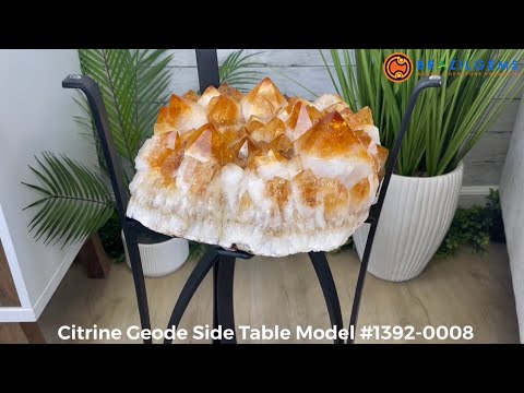 Extra Plus Quality Brazilian Citrine Geode Side Table, 46.1 lbs, 24" tall on a metal base #1392-0008 by Brazil Gems