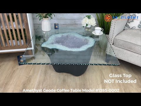 Brazil Gems® brings you this is Extra Quality Brazilian Amethyst coffee table. This beautiful gemstone has nicely shaped amethyst points with deep dark violet colors. It's bottom is concrete shaped to form its legs and painted dark grey.