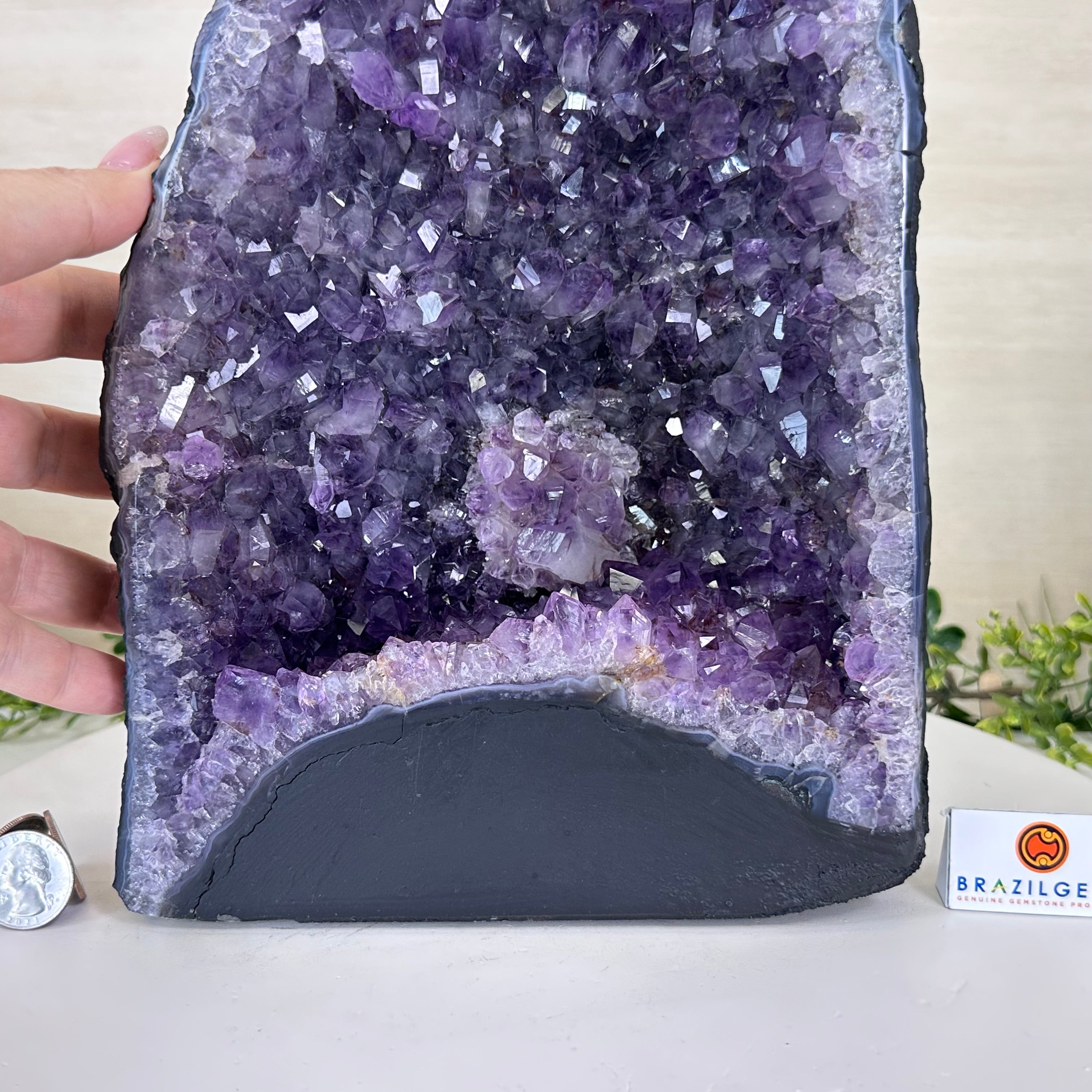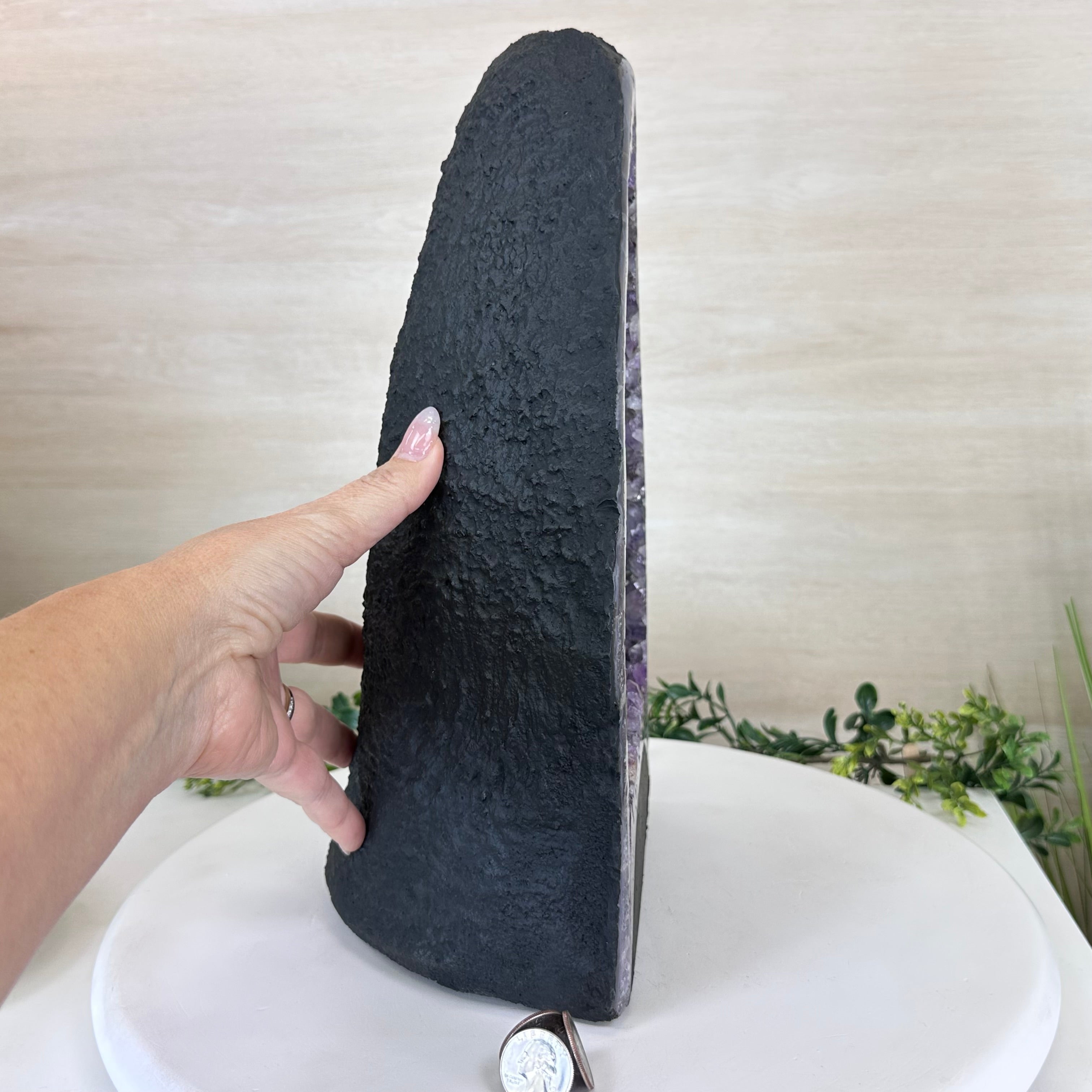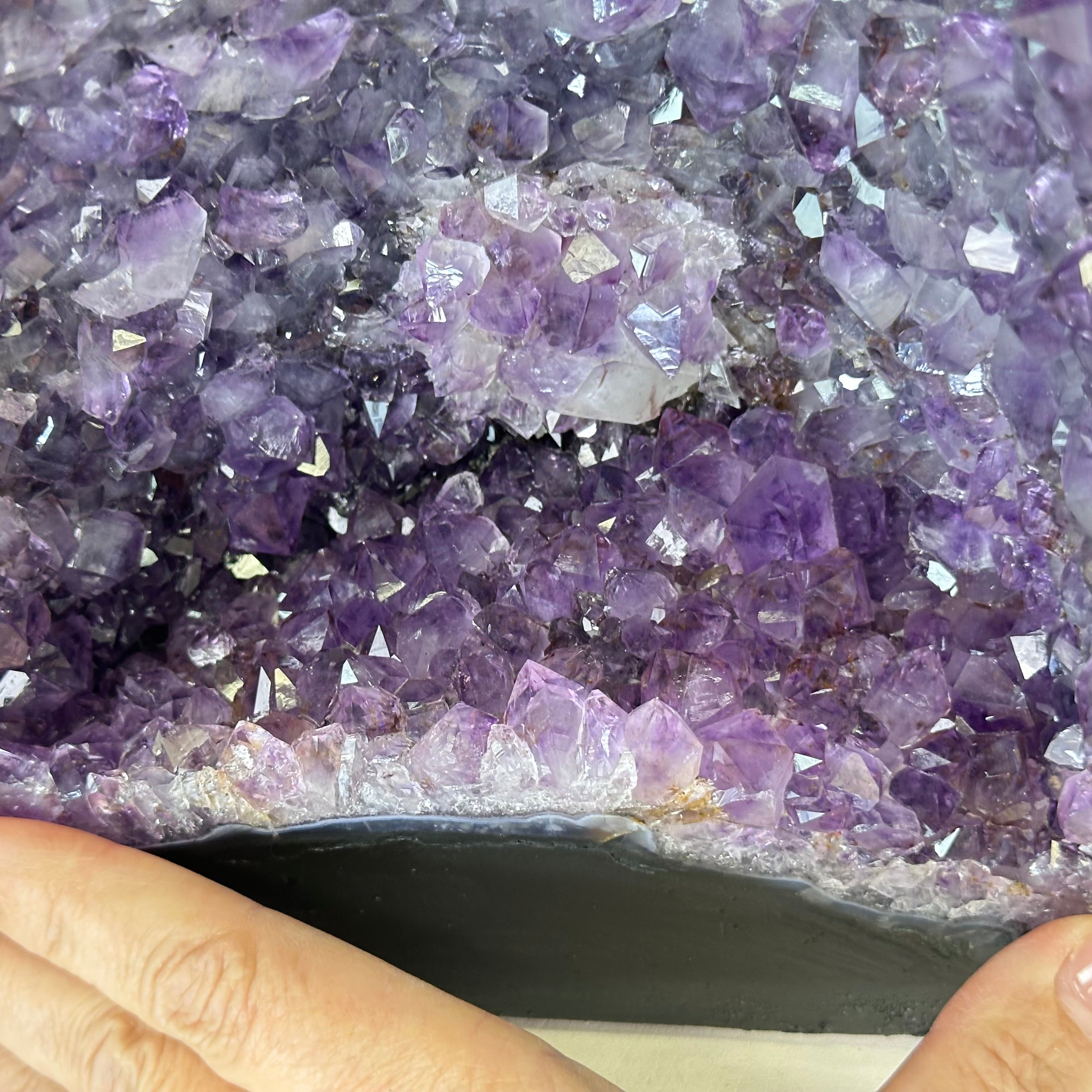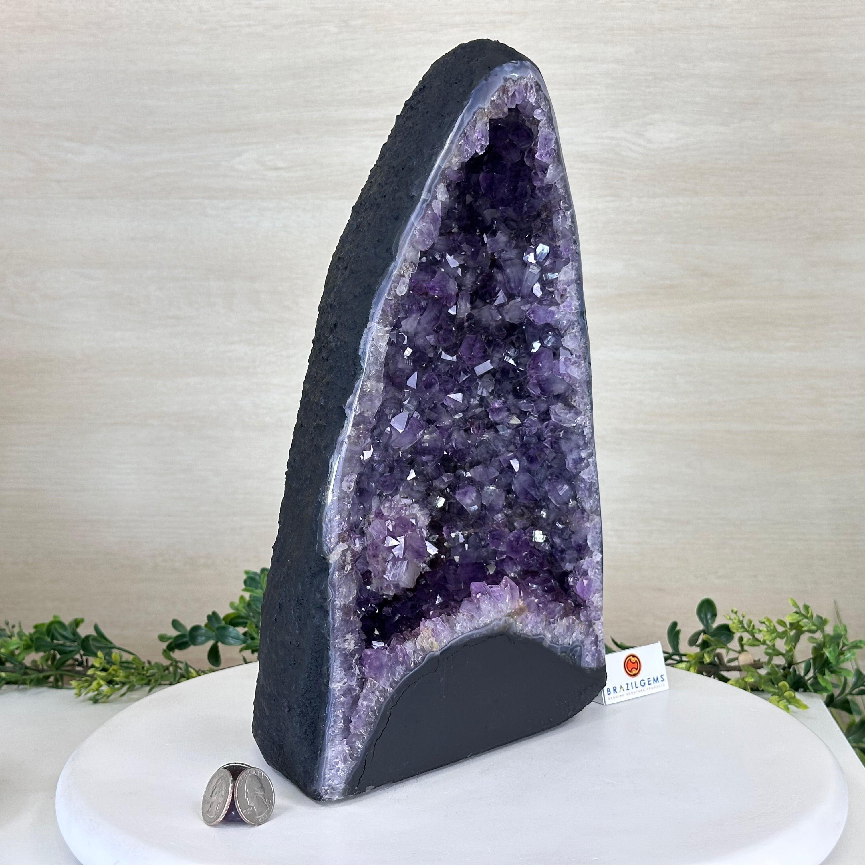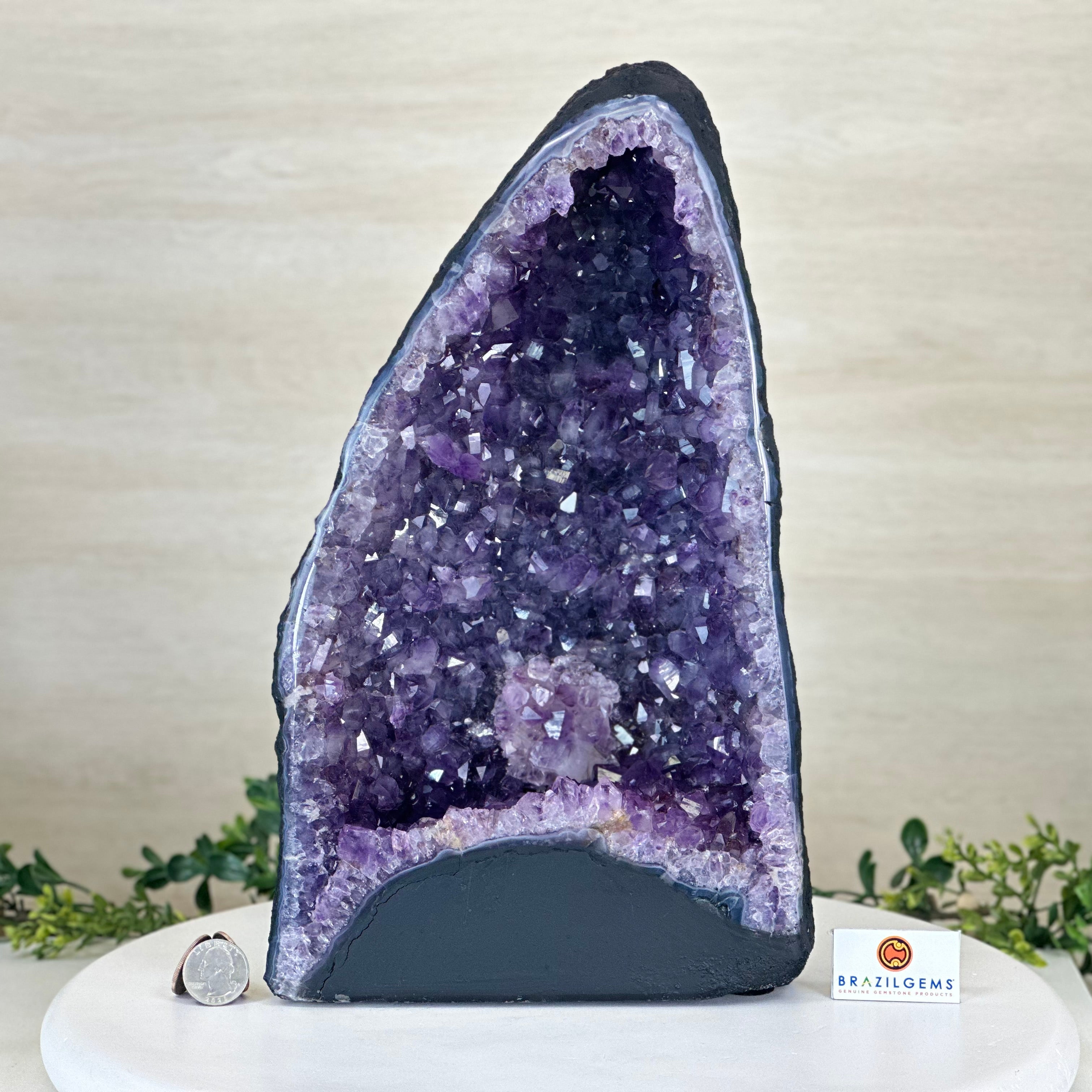 Disclaimer: This is a natural gemstone crystal sold by Brazil Gems® as is and as you see it in its images and video. It is the exact one you will receive. It may contain natural imperfections as well as imperfections, broken edges and repairs from the extraction, polishing and prepping processes. In order for it to stand on its own, the back and bottom have been reinforced with a small amount of cement then painted black. At Brazil Gems® we make every effort to get measurements as exact as possible but they are done by human hands and eyes and therefore may have minor discrepancies.