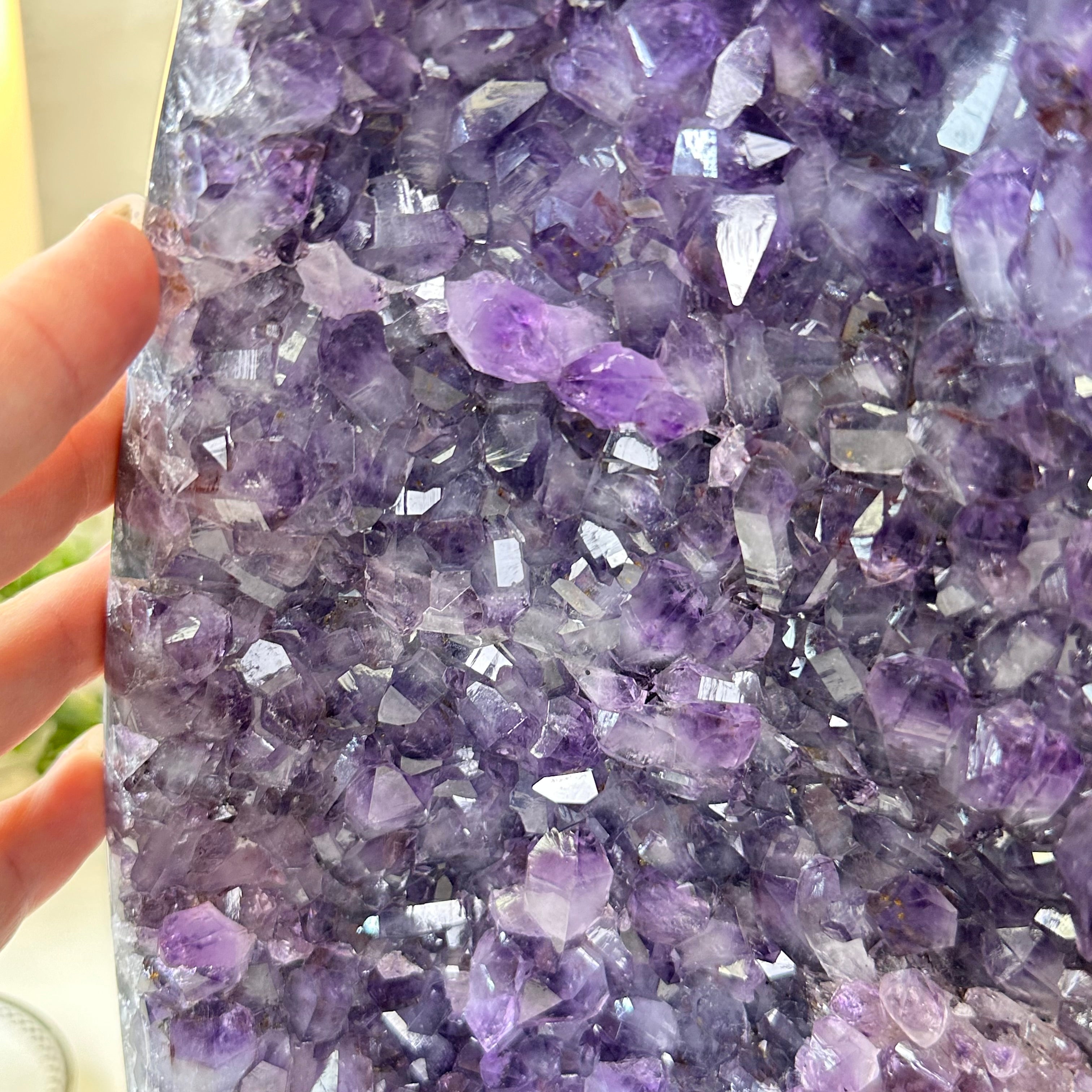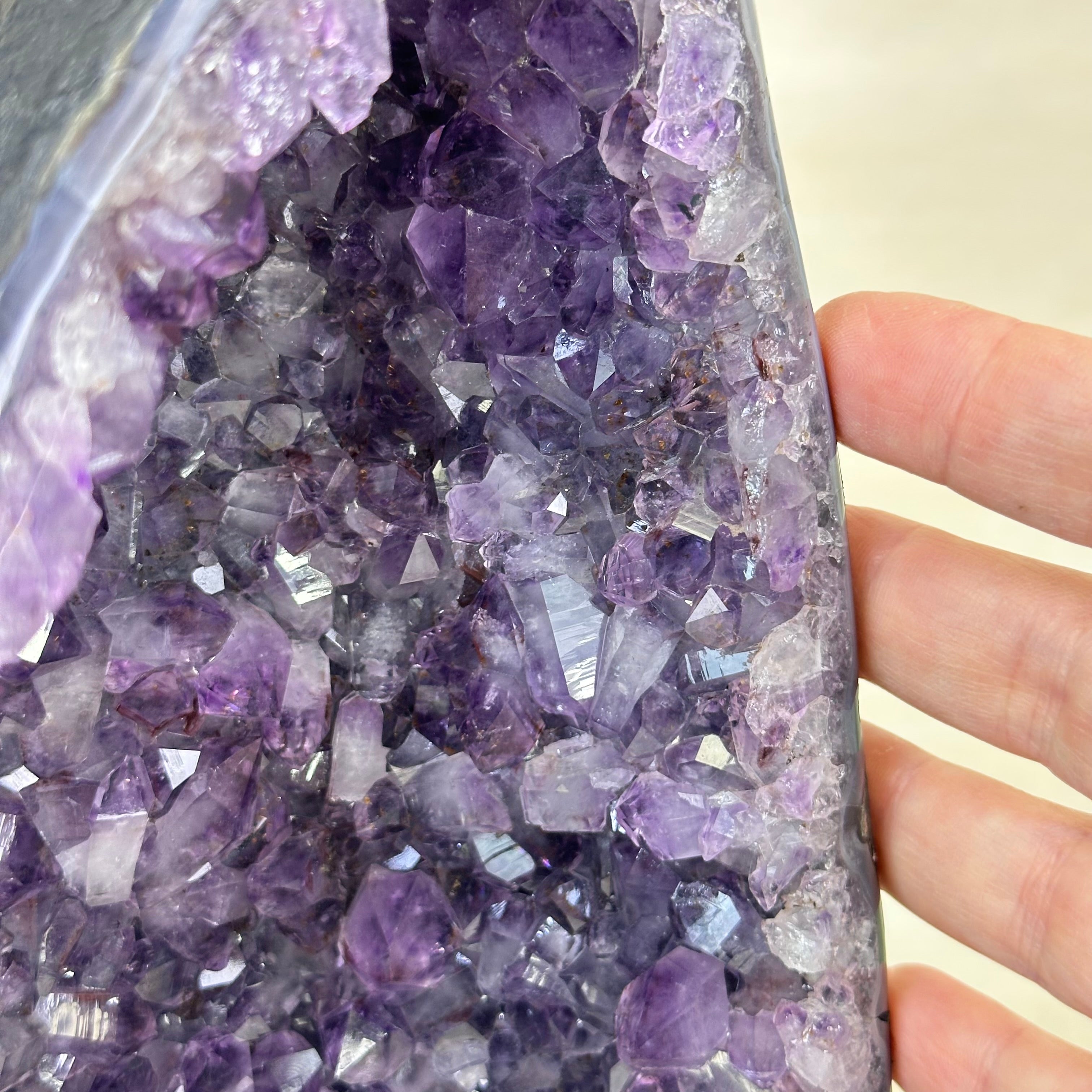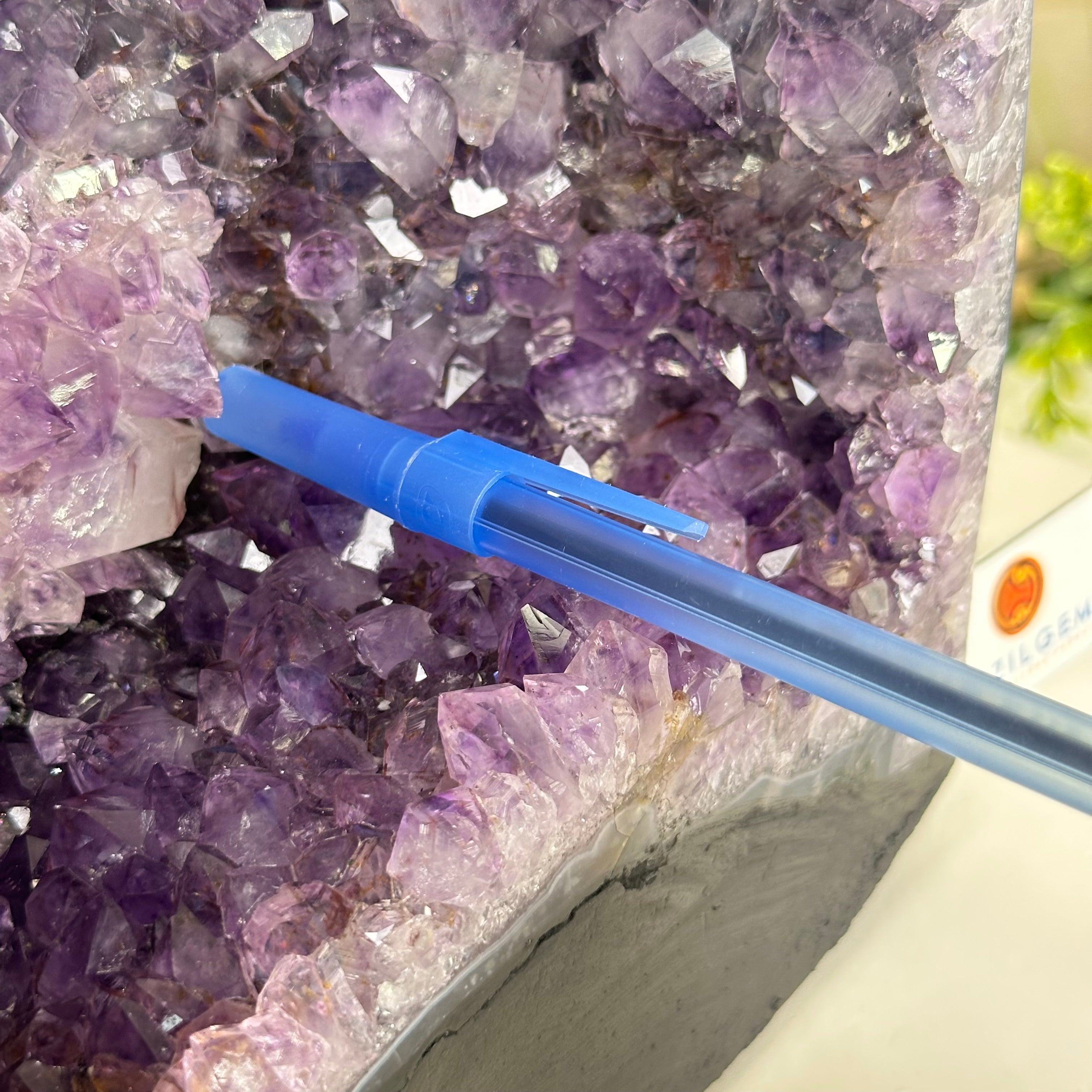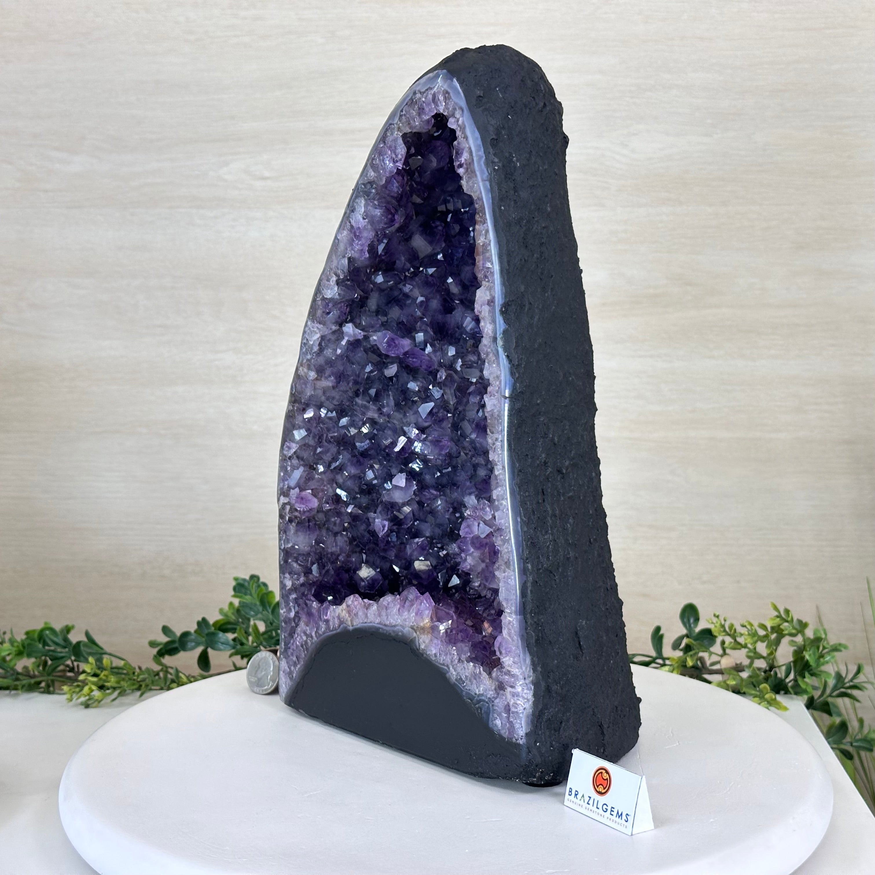 Disclaimer: This is a natural gemstone crystal sold by Brazil Gems® as is and as you see it in its images and video. It is the exact one you will receive. It may contain natural imperfections as well as imperfections, broken edges and repairs from the extraction, polishing and prepping processes. In order for it to stand on its own, the back and bottom have been reinforced with a small amount of cement then painted black. At Brazil Gems® we make every effort to get measurements as exact as possible but they are done by human hands and eyes and therefore may have minor discrepancies.