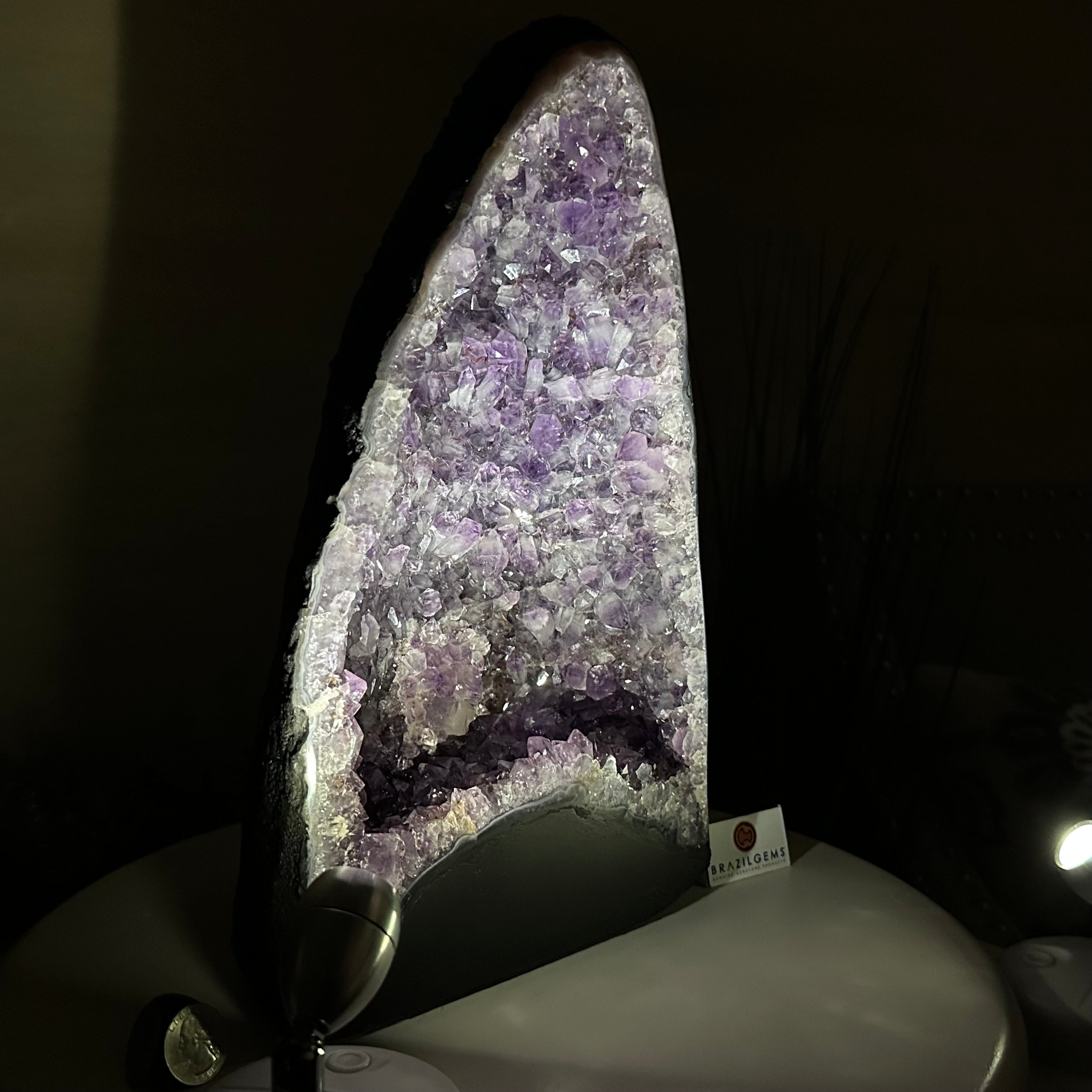 Bring timeless beauty into your home with this Extra Plus Quality Brazilian Amethyst Cathedral, featuring violet tones and beautifully defined crystal points.
