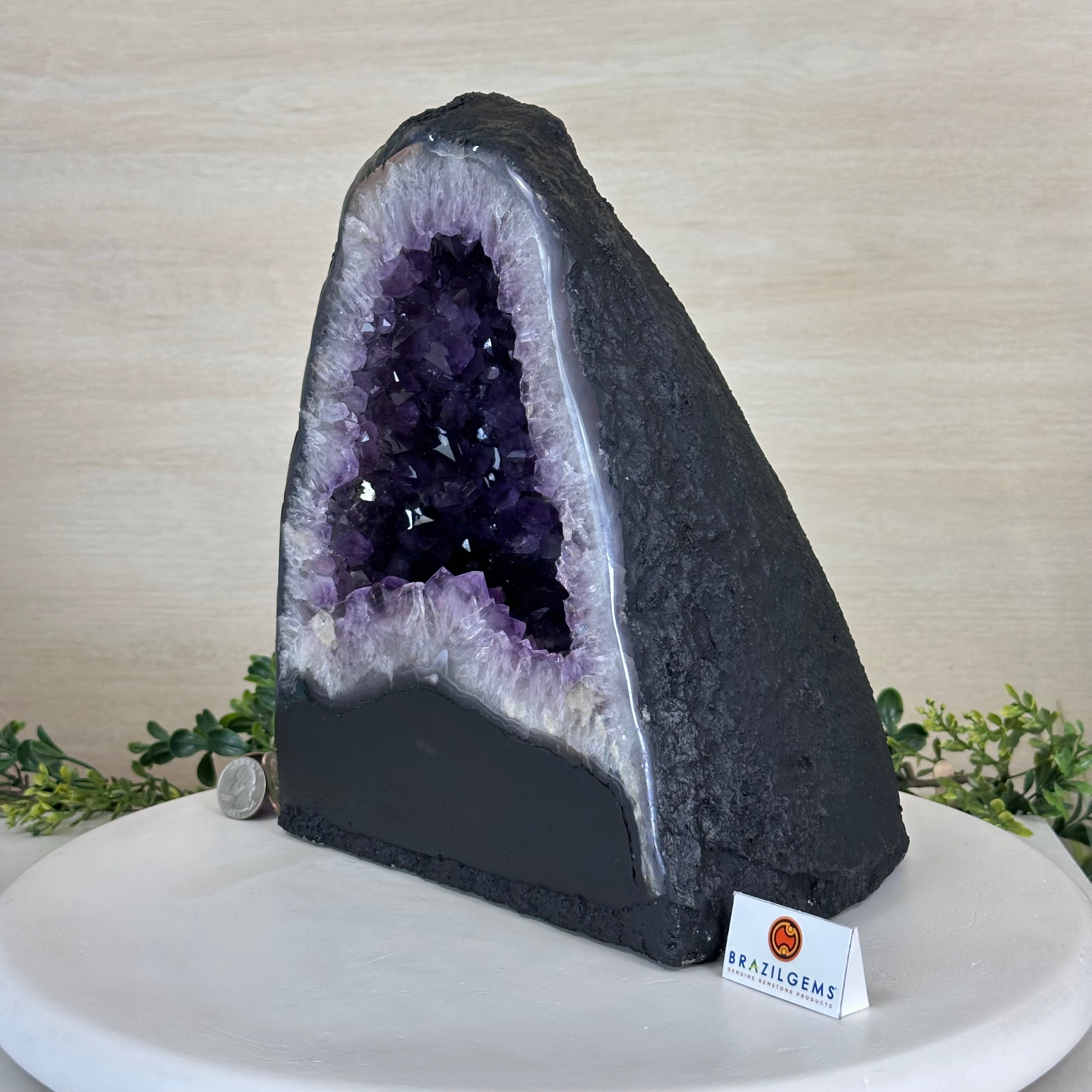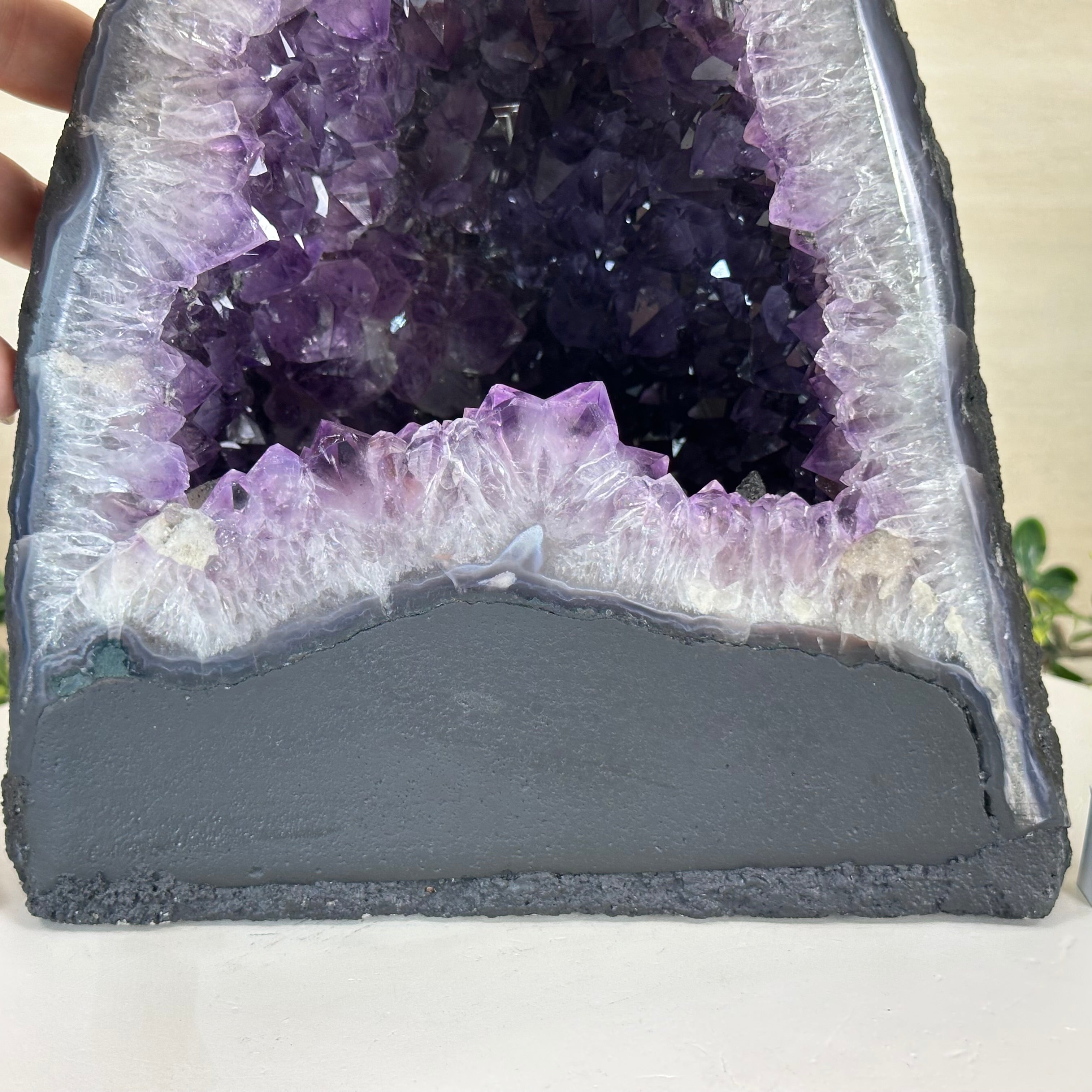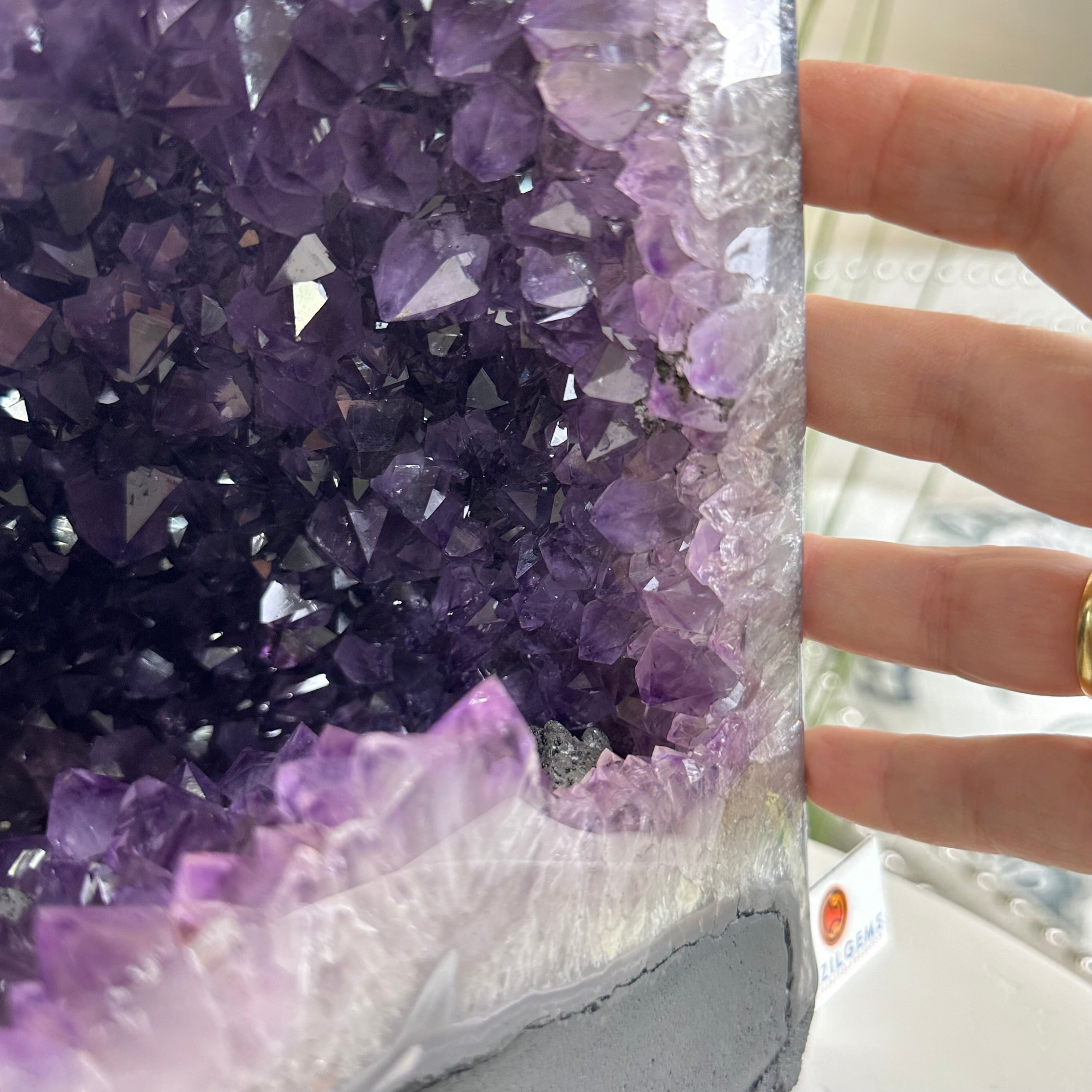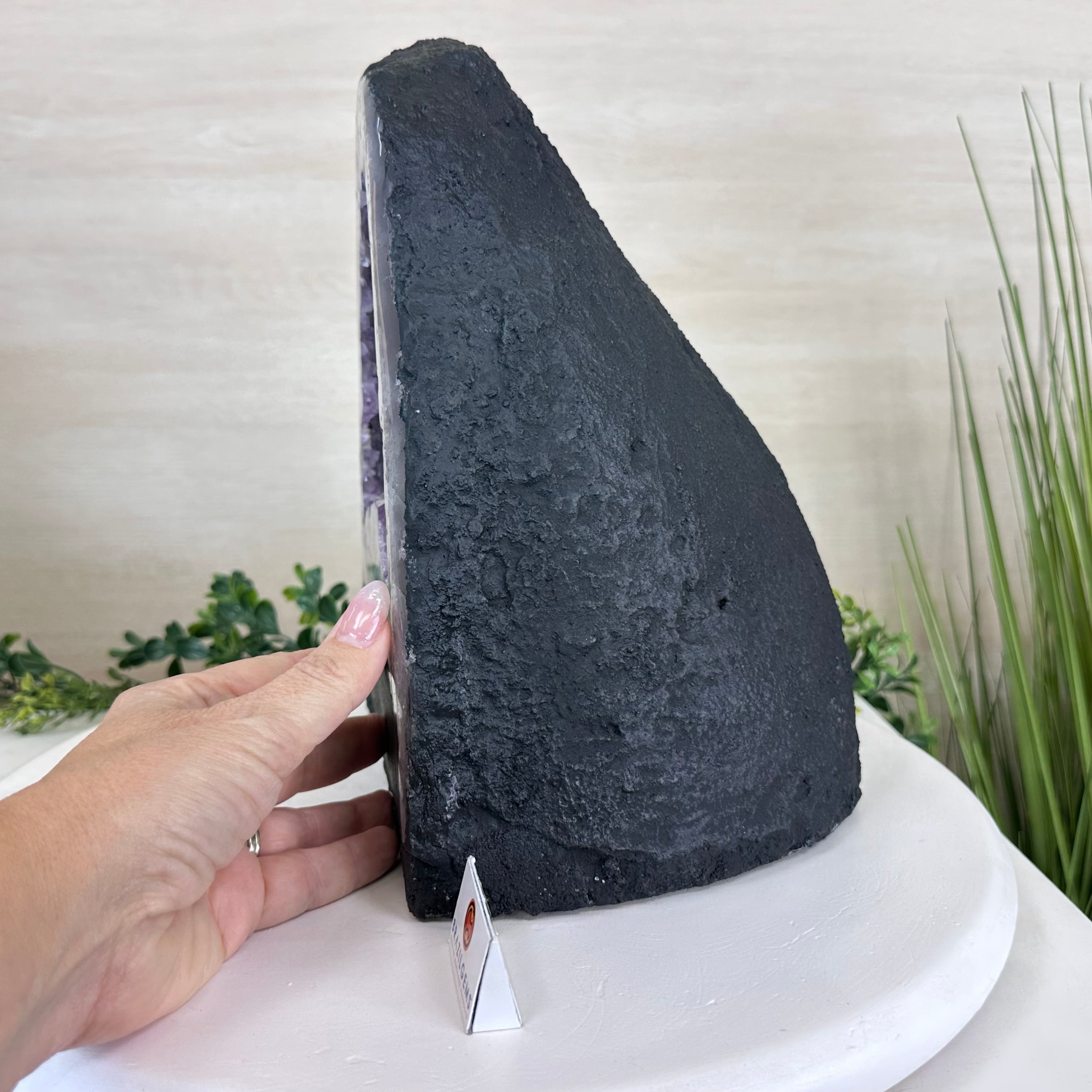 Disclaimer: This is a natural gemstone crystal sold by Brazil Gems® as is and as you see it in its images and video. It is the exact one you will receive. It may contain natural imperfections as well as imperfections, broken edges and repairs from the extraction, polishing and prepping processes. In order for it to stand on its own, the back and bottom have been reinforced with a small amount of cement then painted black. At Brazil Gems® we make every effort to get measurements as exact as possible but they are done by human hands and eyes and therefore may have minor discrepancies.
