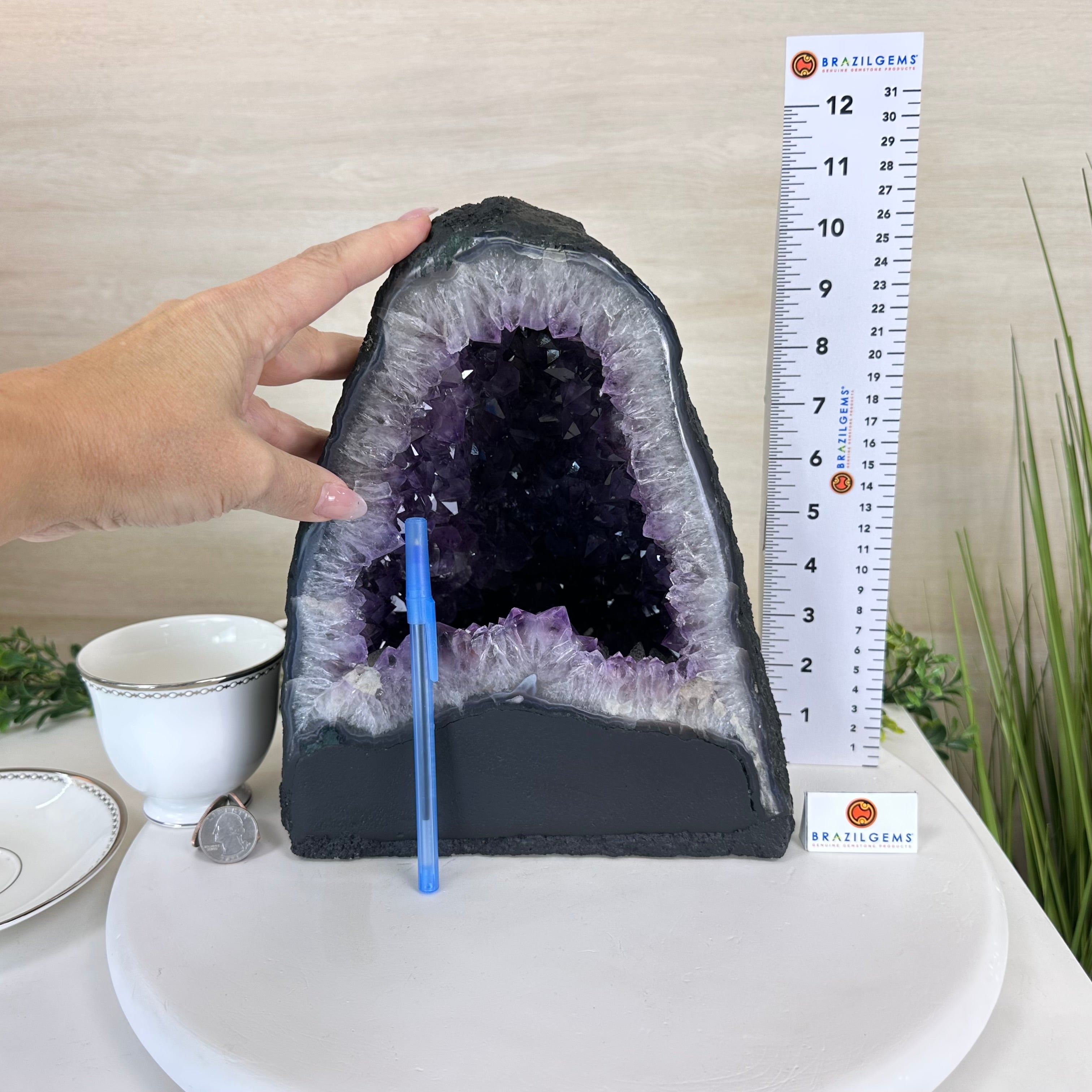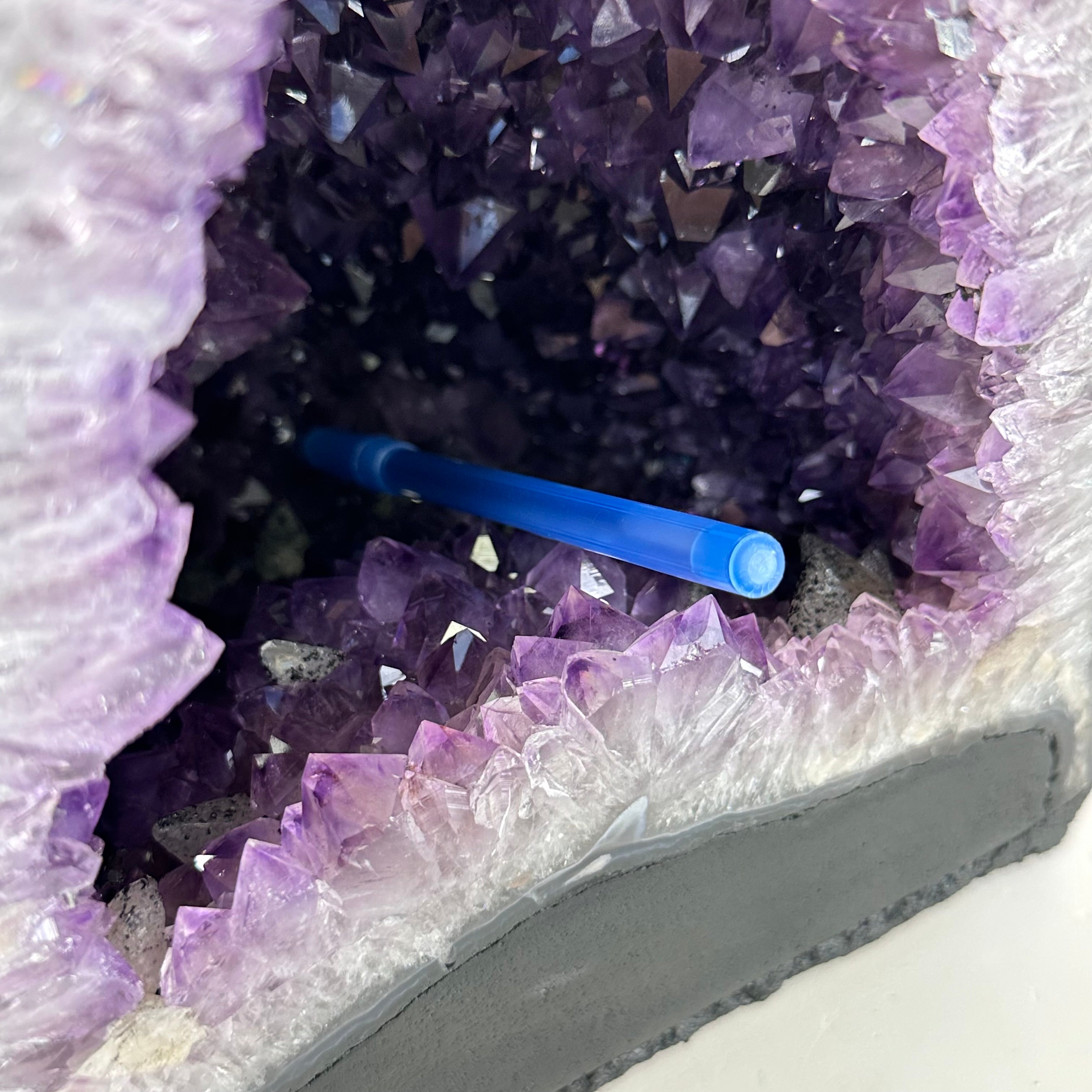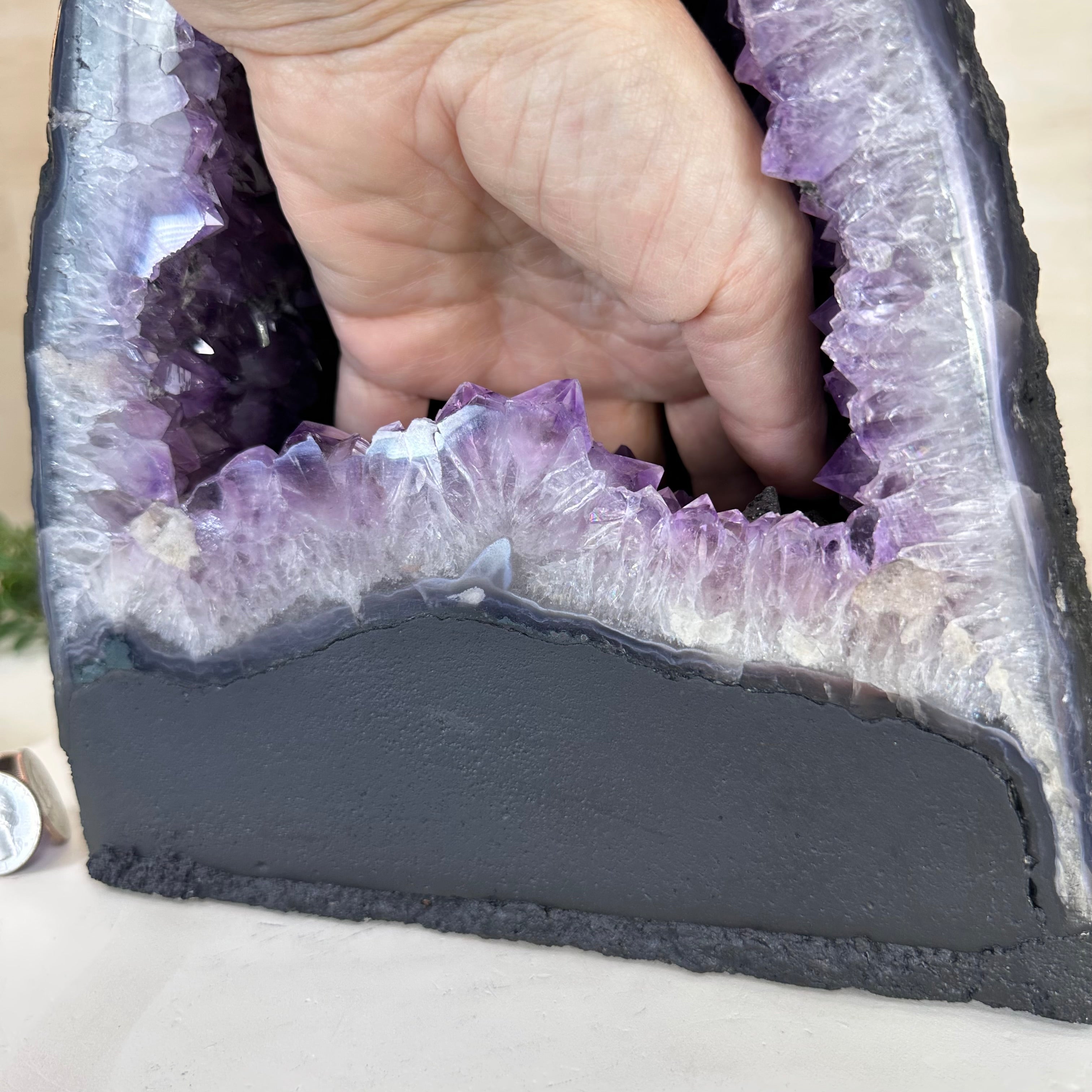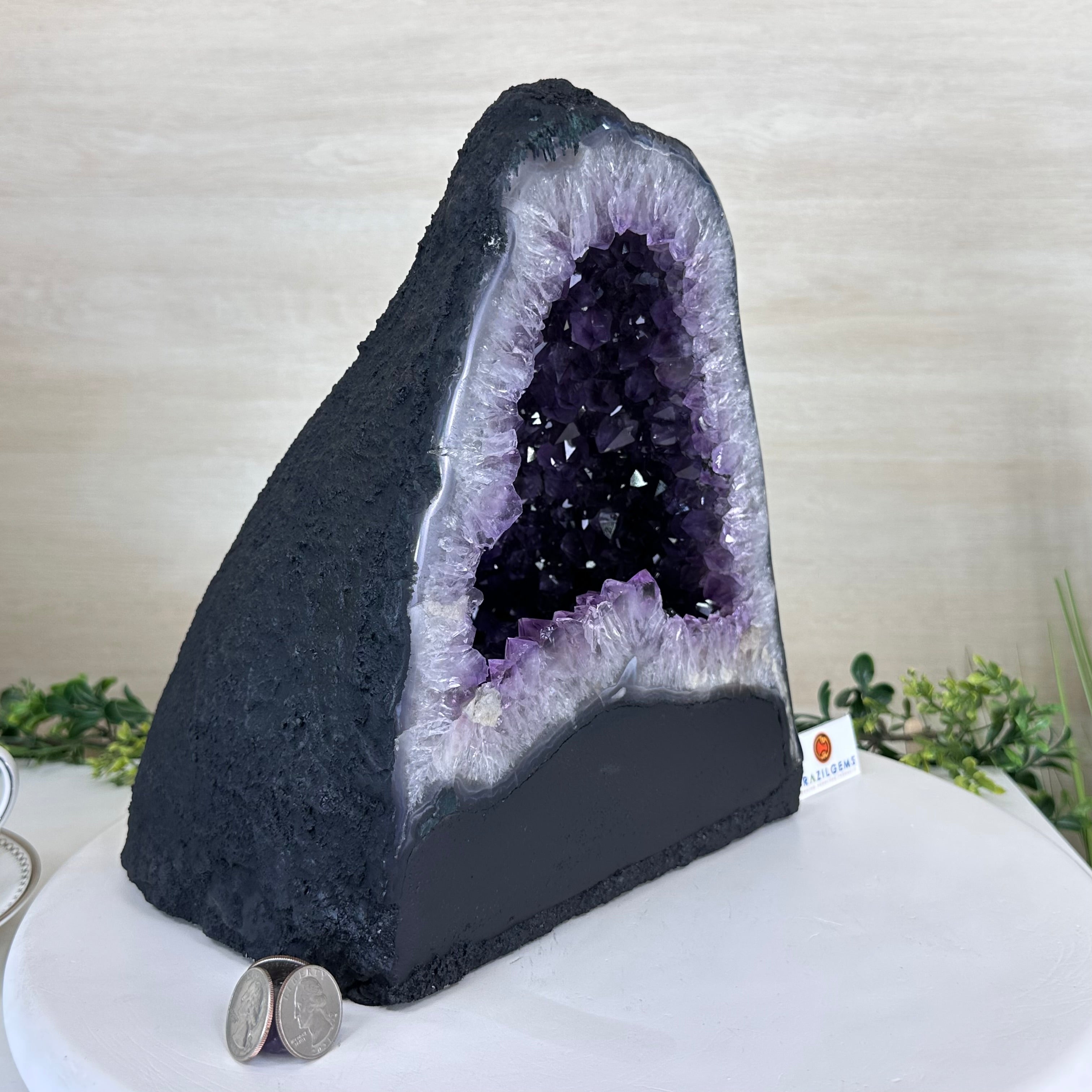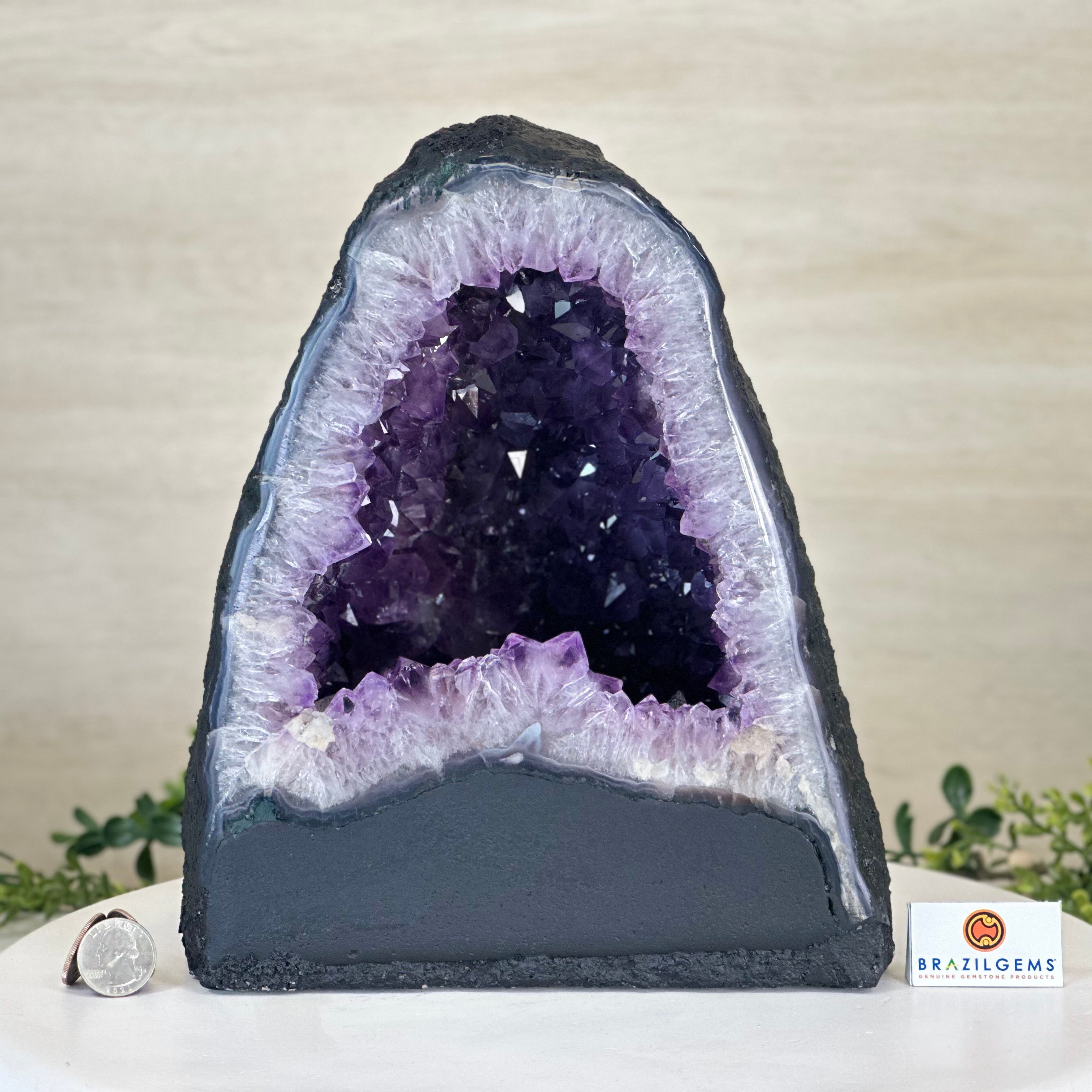 Disclaimer: This is a natural gemstone crystal sold by Brazil Gems® as is and as you see it in its images and video. It is the exact one you will receive. It may contain natural imperfections as well as imperfections, broken edges and repairs from the extraction, polishing and prepping processes. In order for it to stand on its own, the back and bottom have been reinforced with a small amount of cement then painted black. At Brazil Gems® we make every effort to get measurements as exact as possible but they are done by human hands and eyes and therefore may have minor discrepancies.