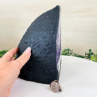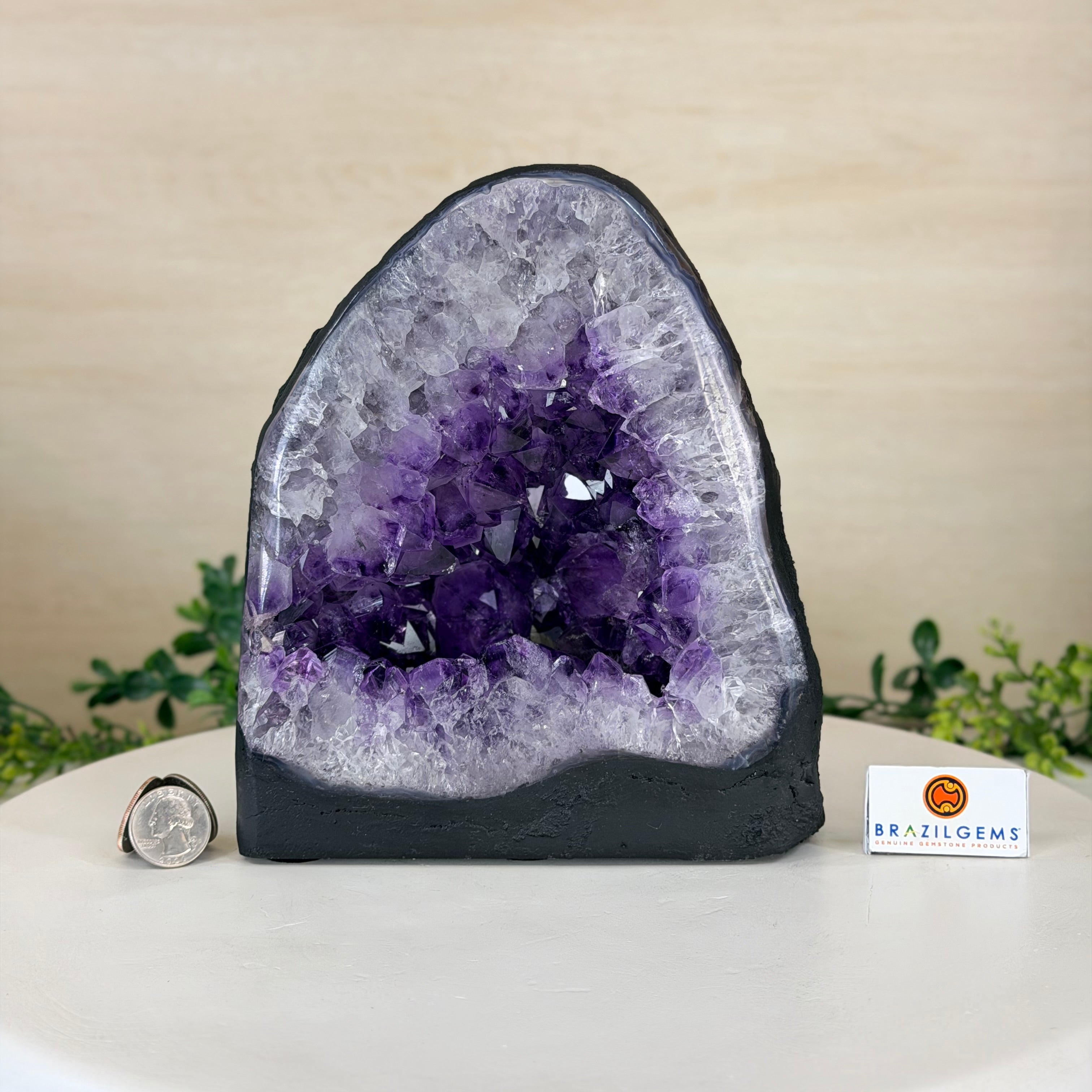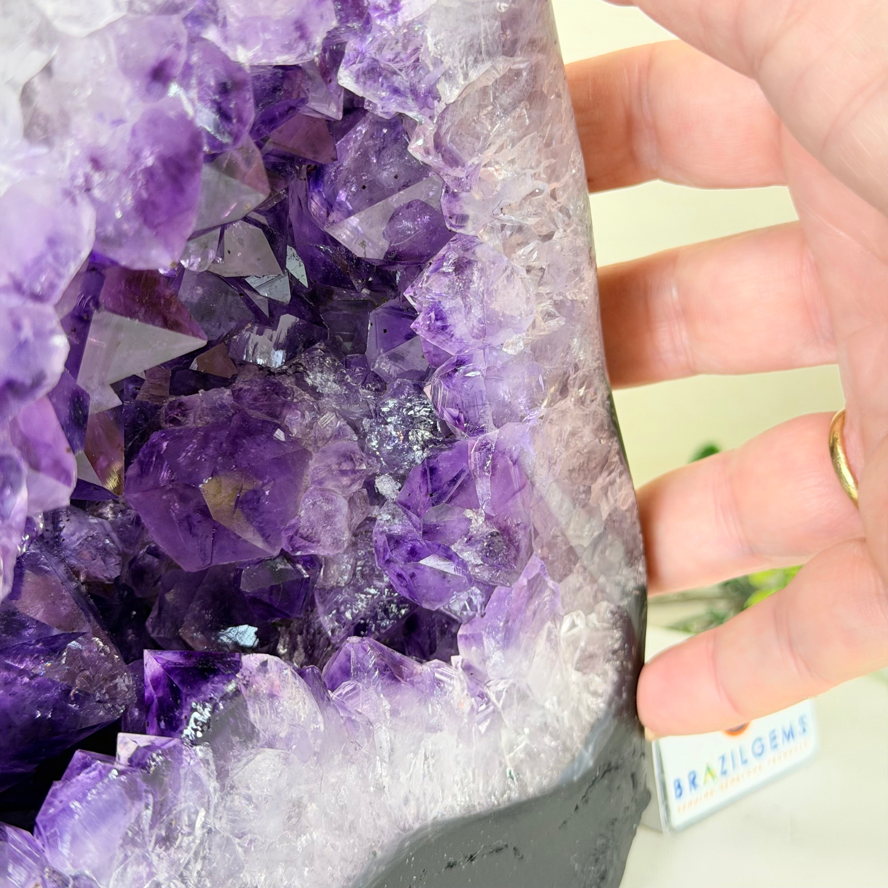 Disclaimer: This is a natural gemstone crystal sold by Brazil Gems® as is and as you see it in its images and video. It is the exact one you will receive. It may contain natural imperfections as well as imperfections, broken edges and repairs from the extraction, polishing and prepping processes. In order for it to stand on its own, the back and bottom have been reinforced with a small amount of cement then painted black. At Brazil Gems® we make every effort to get measurements as exact as possible but they are done by human hands and eyes and therefore may have minor discrepancies.