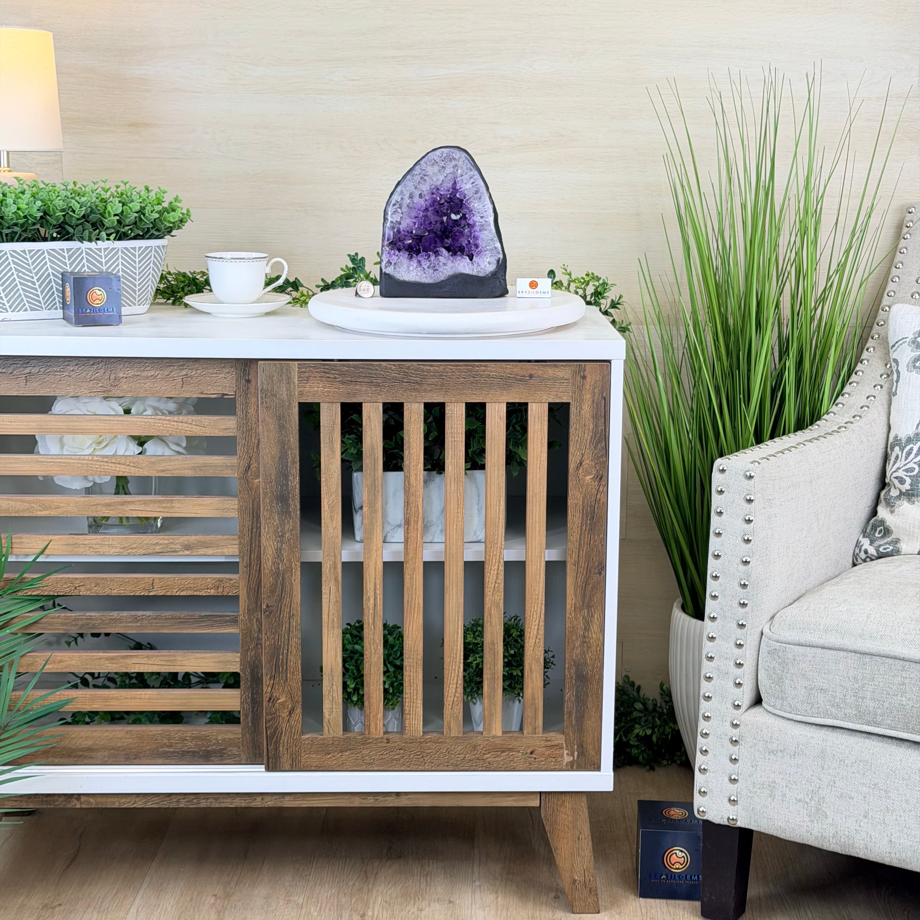 Sourced directly from Amethyst mine owners in Brazil, this magnificent piece showcases nature’s artistry at its finest, formed over millions of years in ancient volcanic cavities.