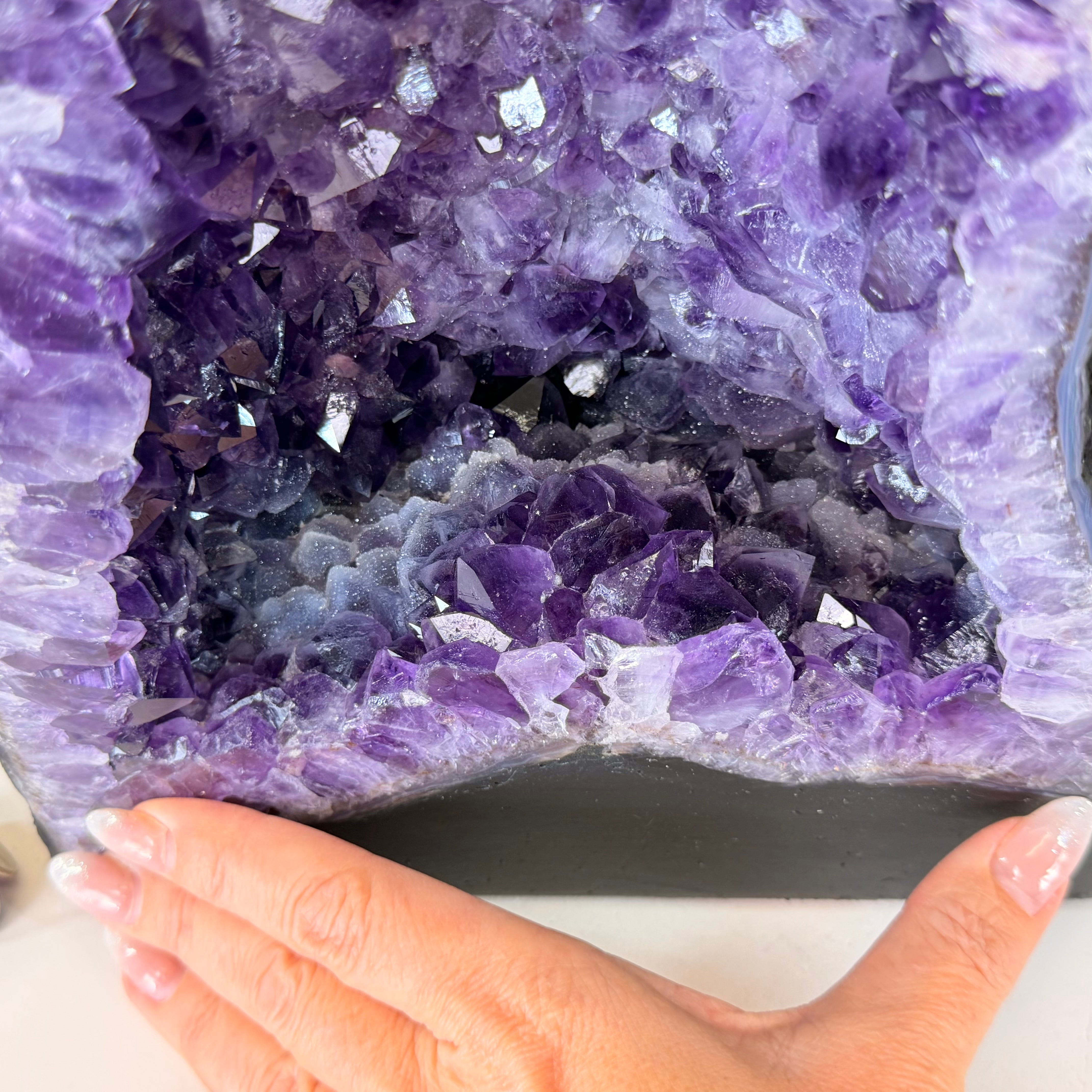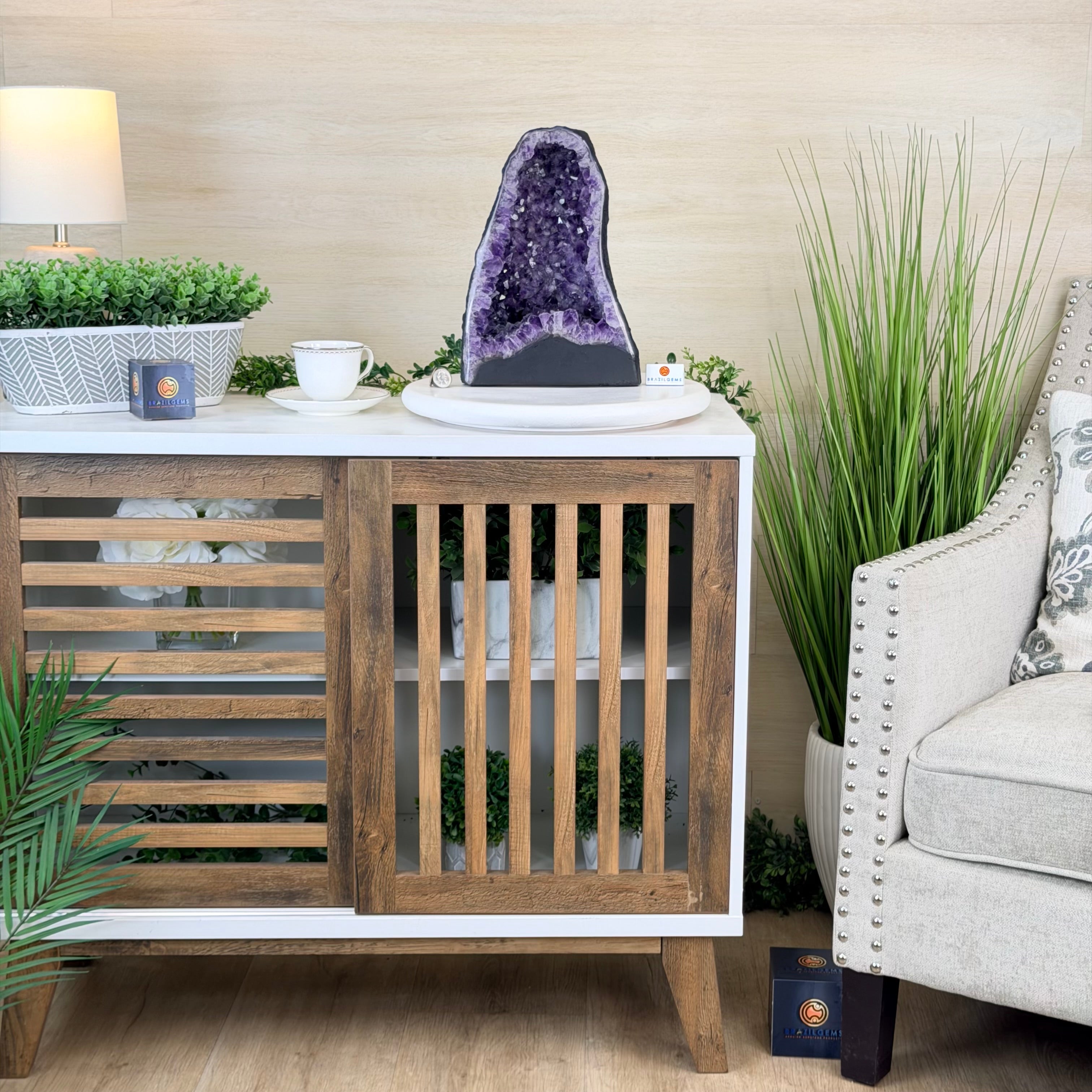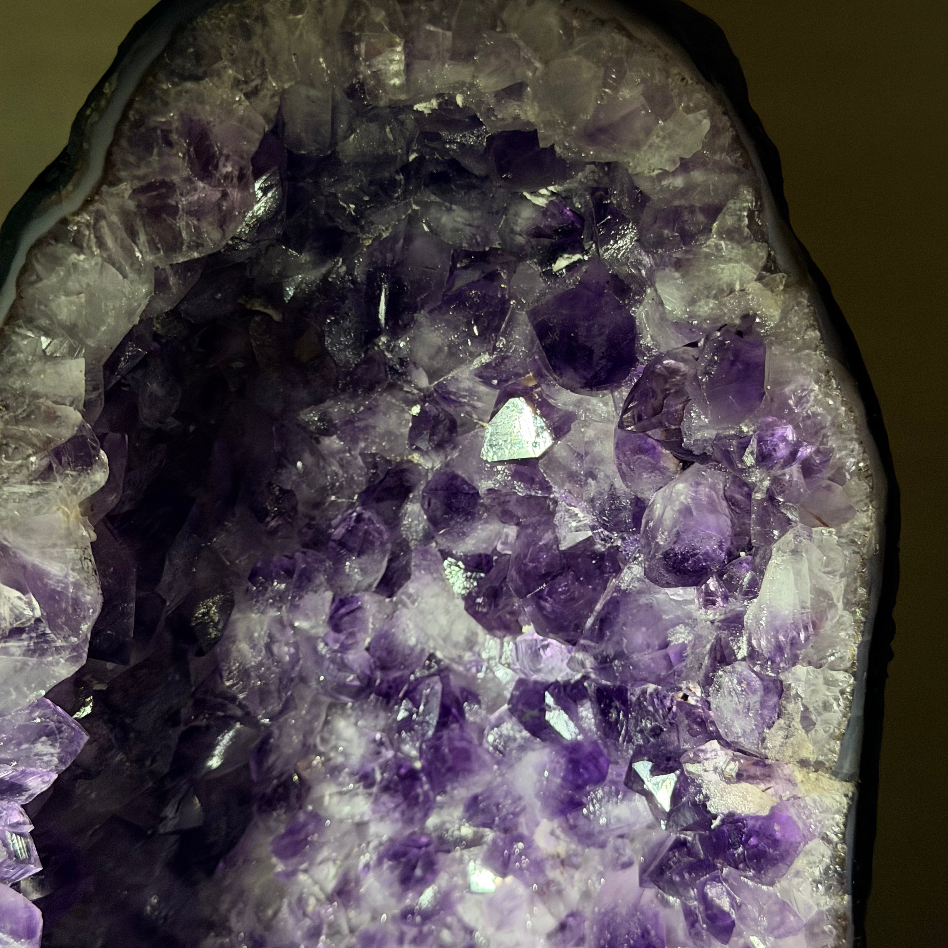 Sourced directly from Amethyst mine owners in Brazil, this magnificent piece showcases nature’s artistry at its finest, formed over millions of years in ancient volcanic cavities.