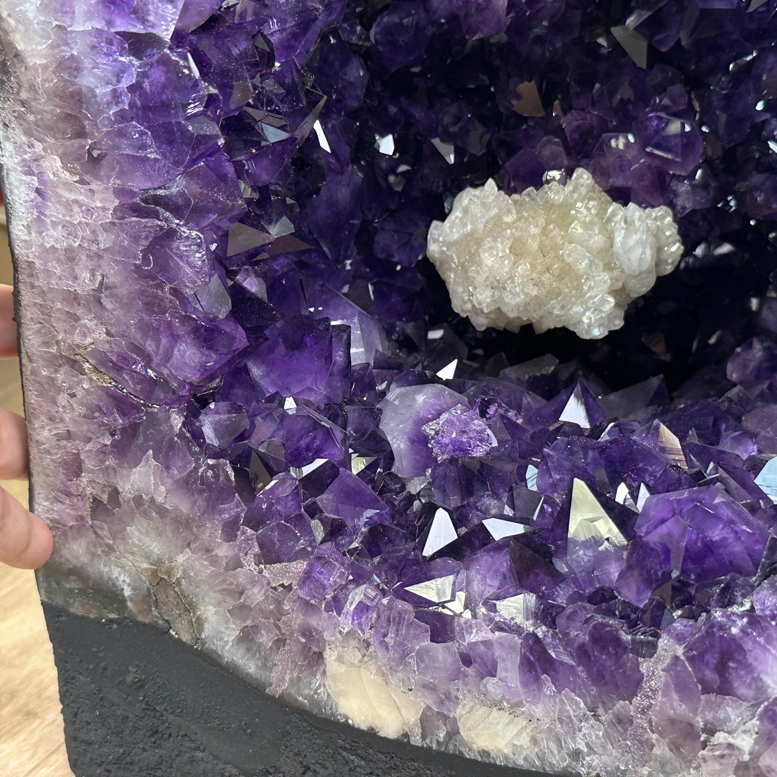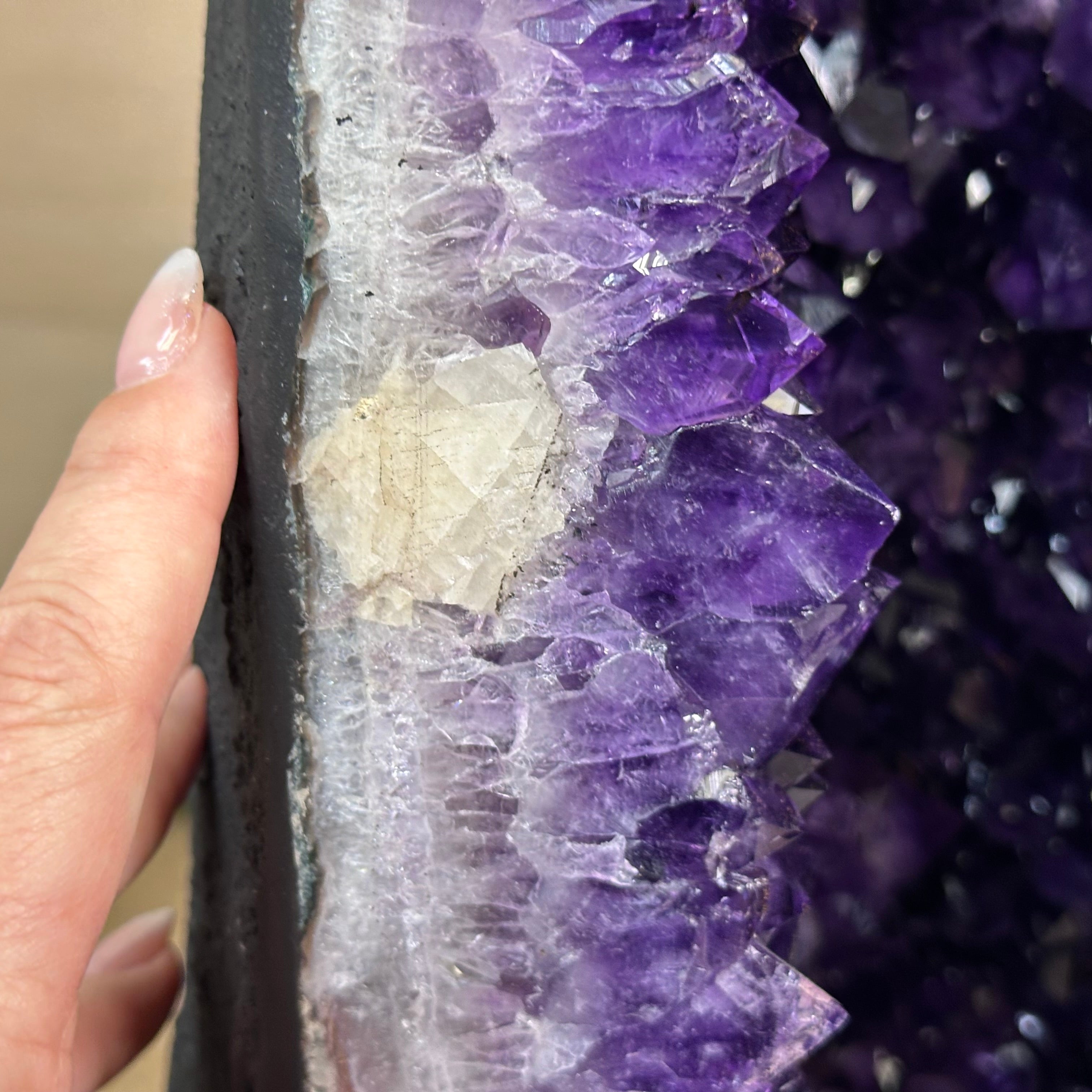 • Stunning Visual Appeal: This cathedral boasts deep, rich purple crystals with sparkling, well-formed points that catch the light beautifully. Subtle calcite inclusions add character, creating a mesmerizing interplay of violet hues and natural textures.