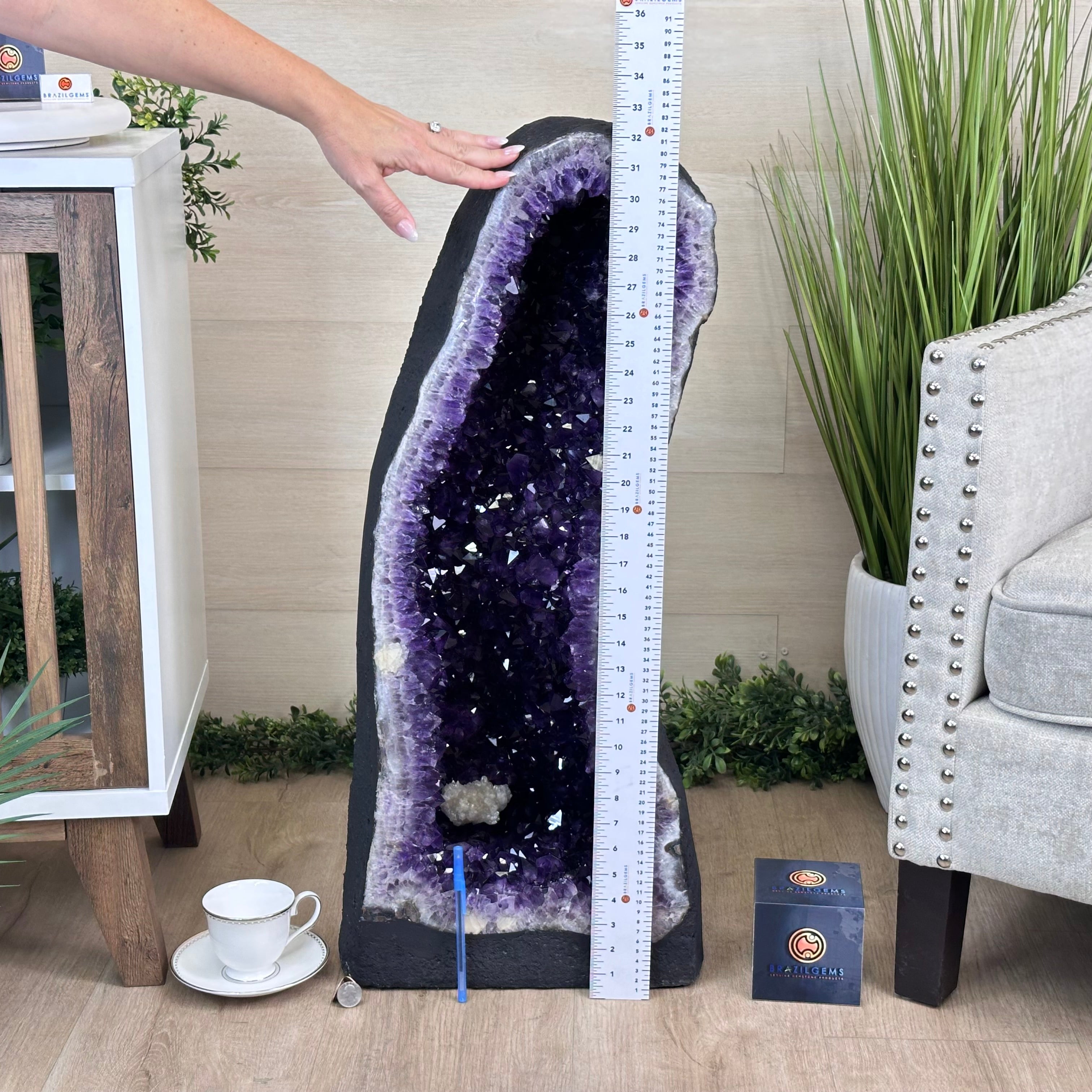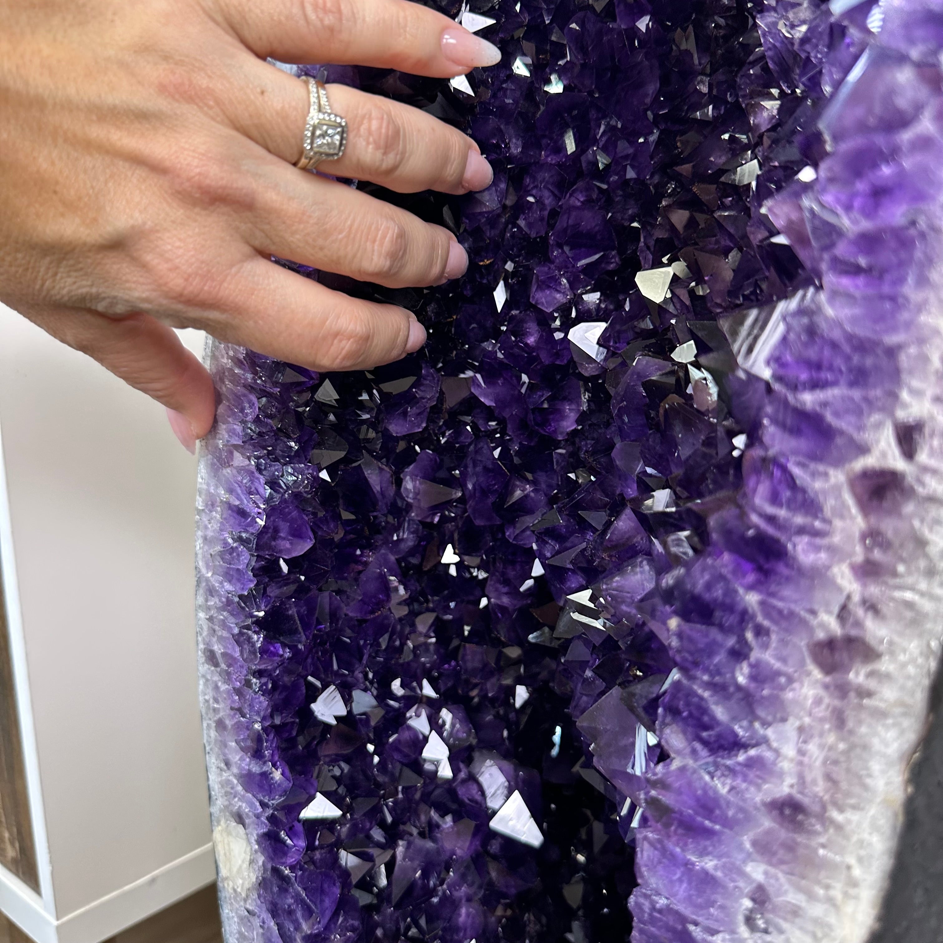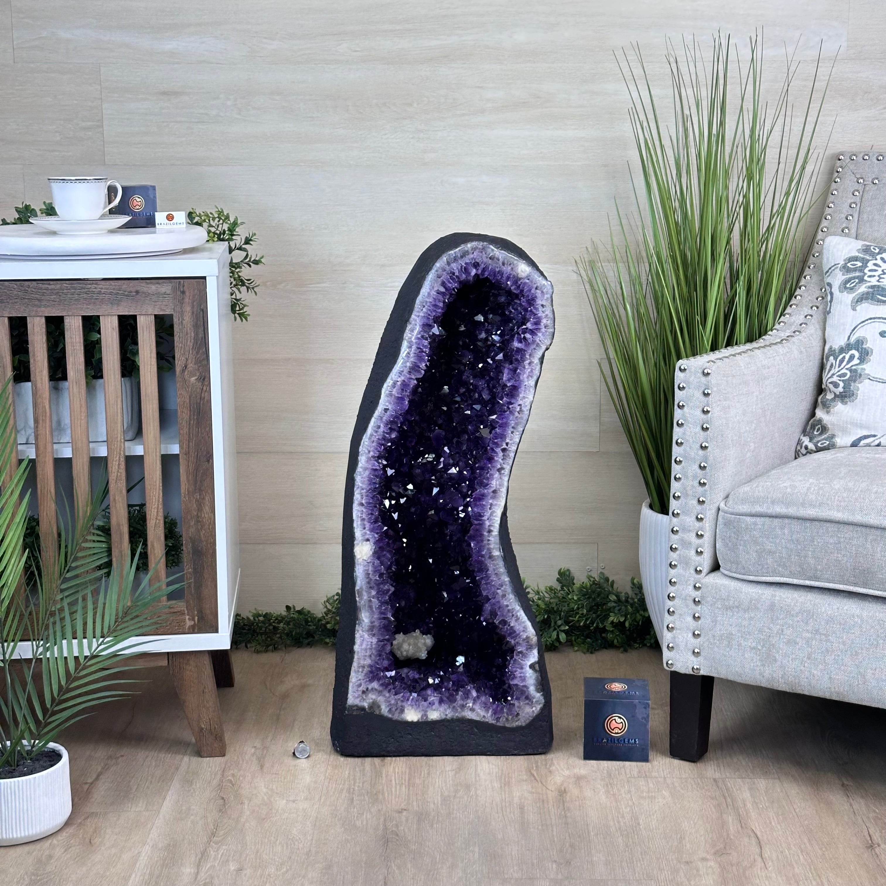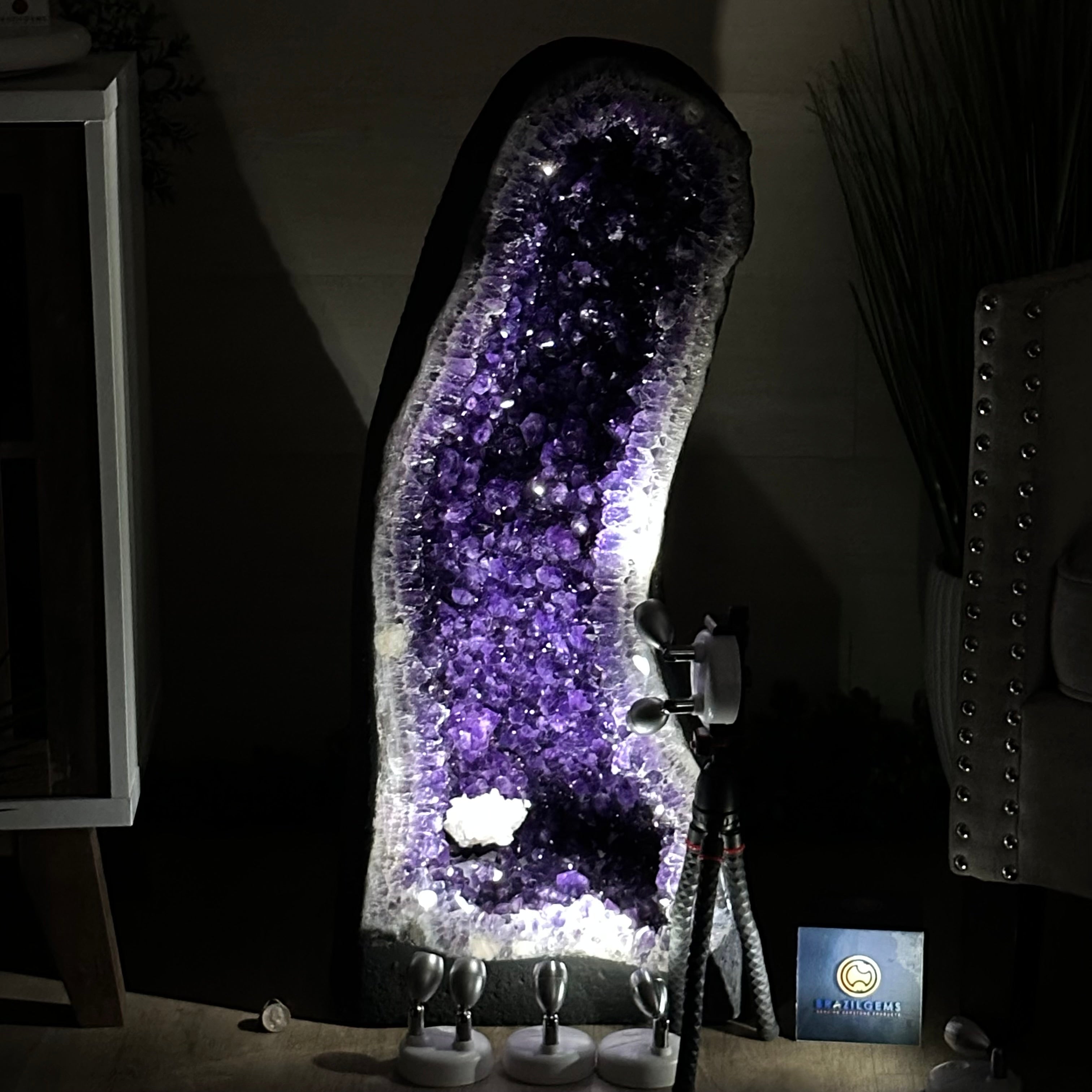 A Majestic statement piece for your space, this 3 Foot 99 Inch awe-inspiring Brazilian Amethyst Cathedral, a Super Quality geode, commands attention with its towering presence and vibrant energy by Brazil Gems®.