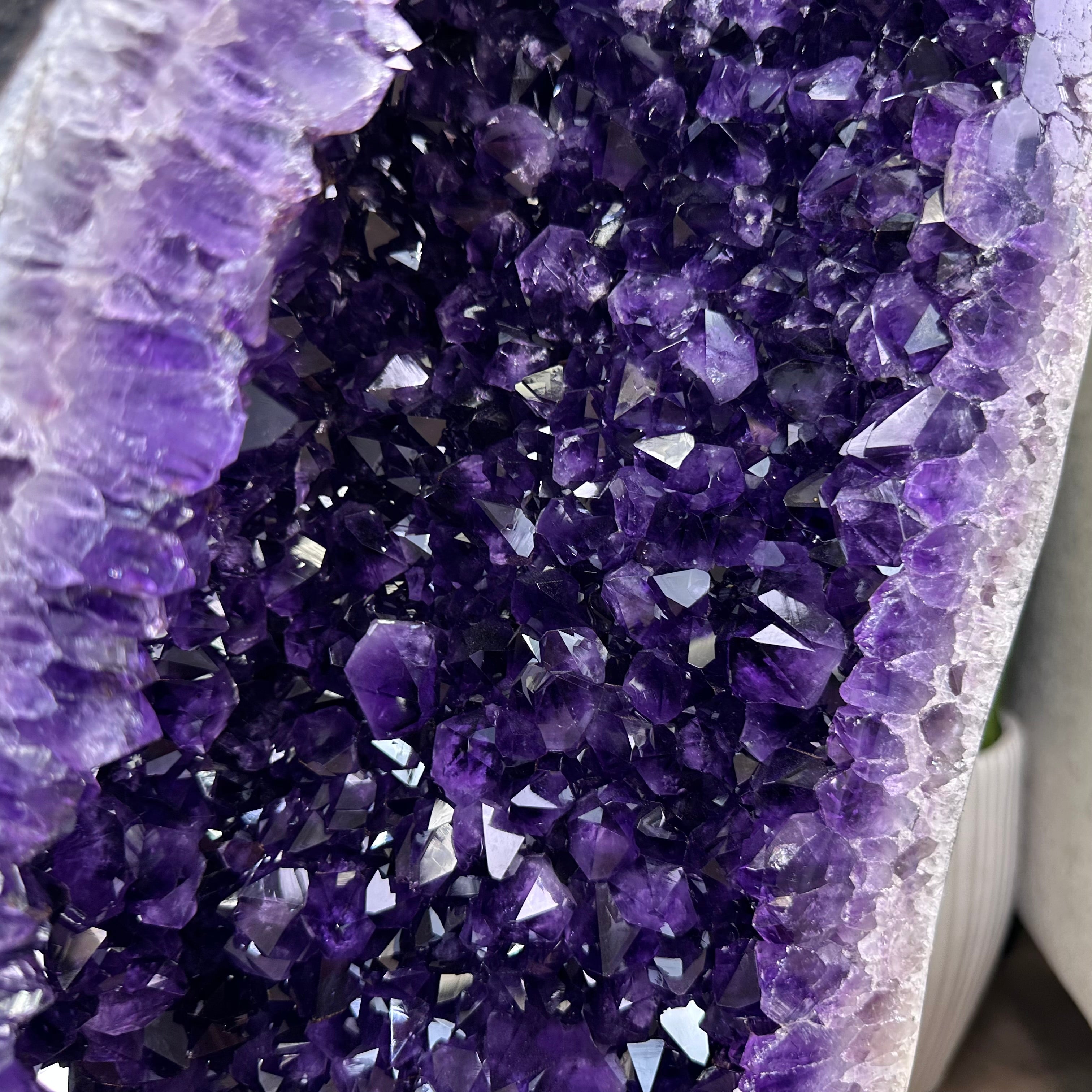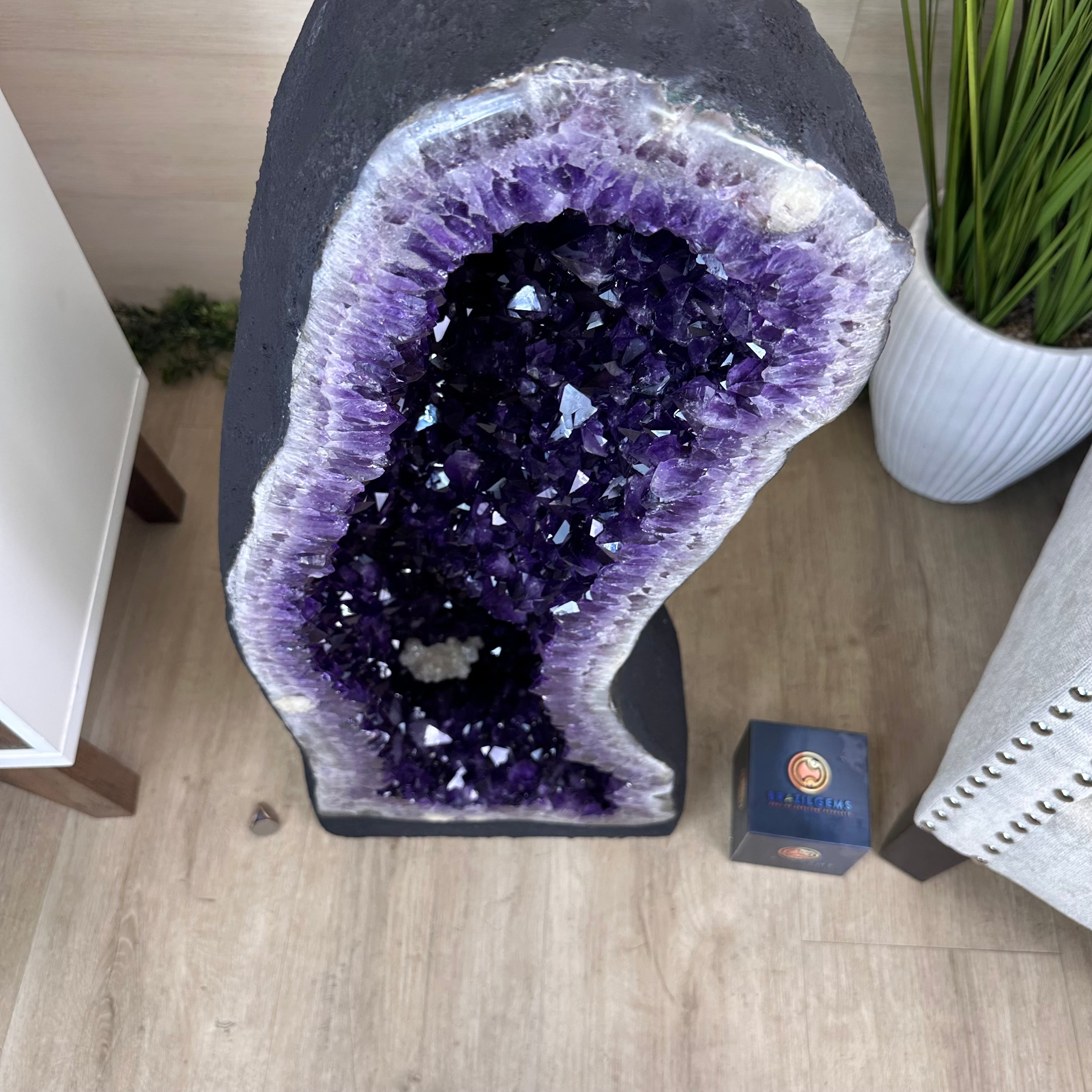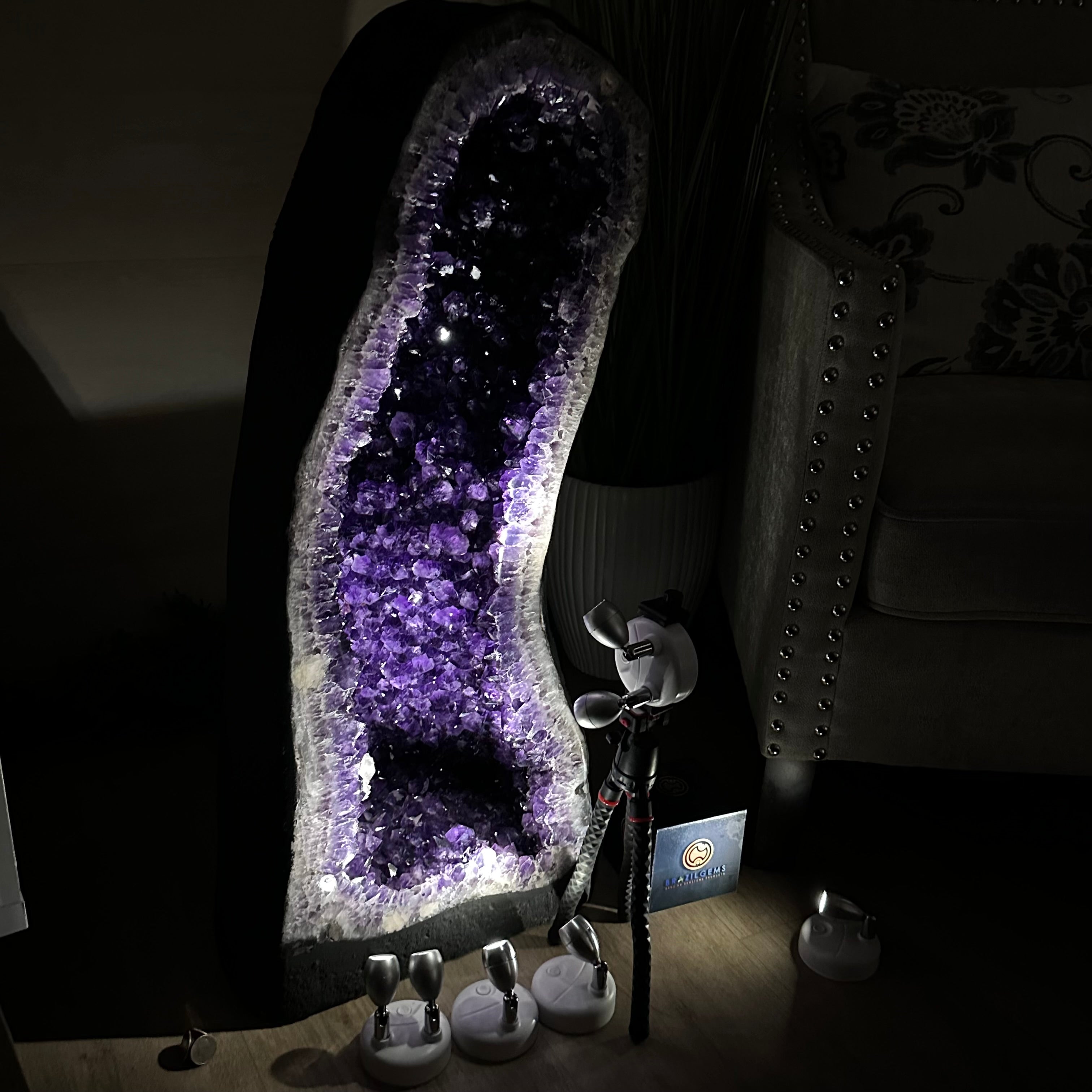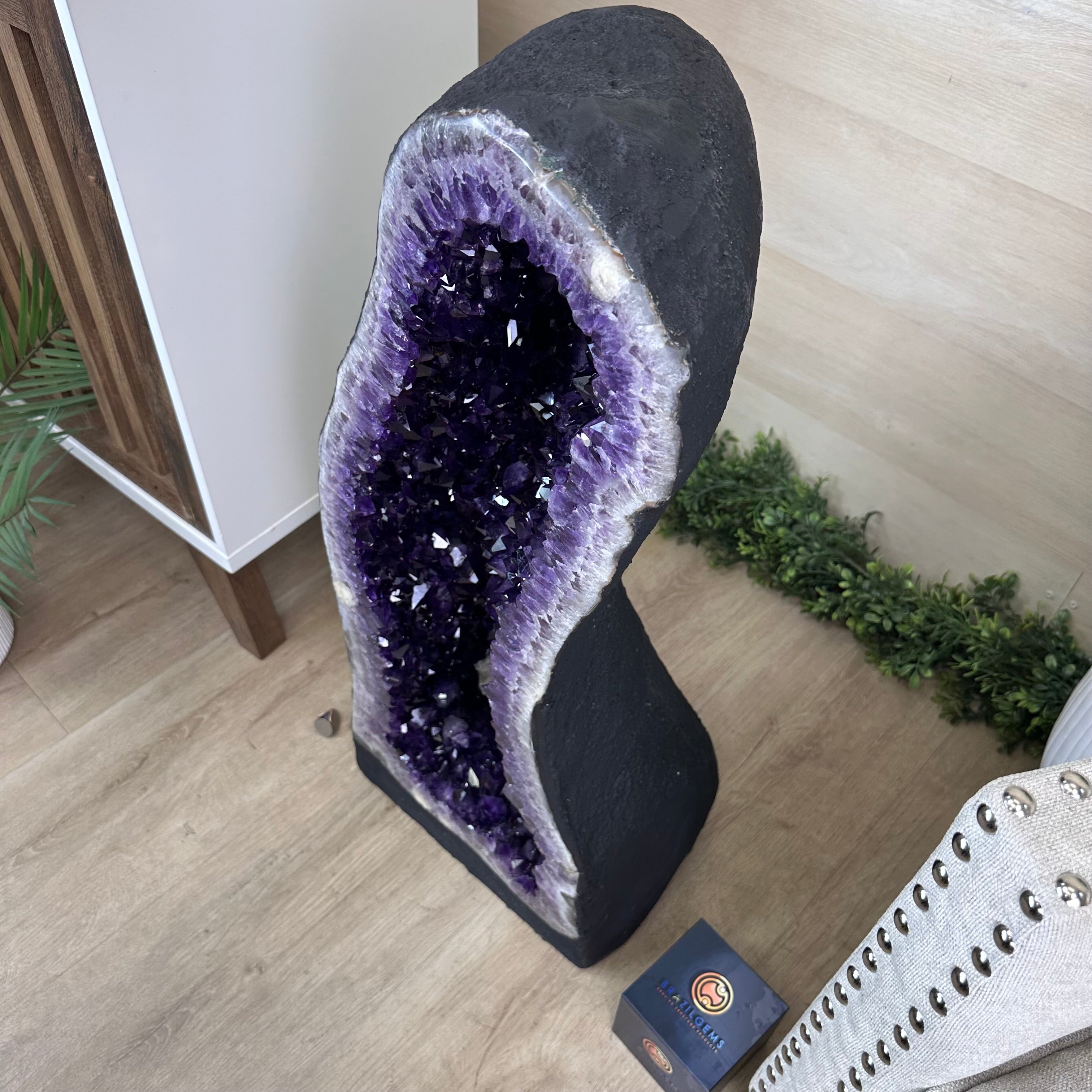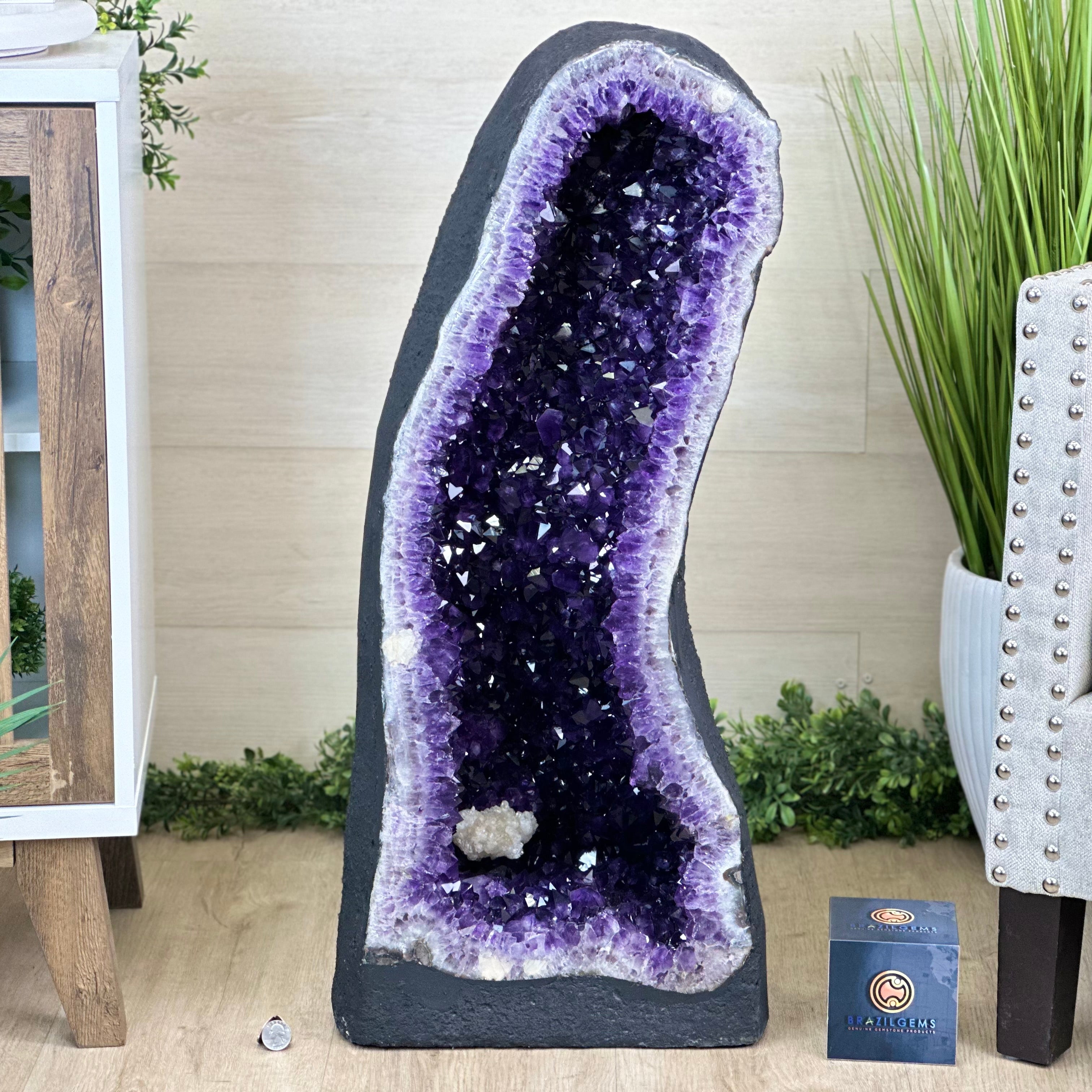 A Majestic statement piece for your space, this 3 Foot 99 Inch awe-inspiring Brazilian Amethyst Cathedral, a Super Quality geode, commands attention with its towering presence and vibrant energy by Brazil Gems®.