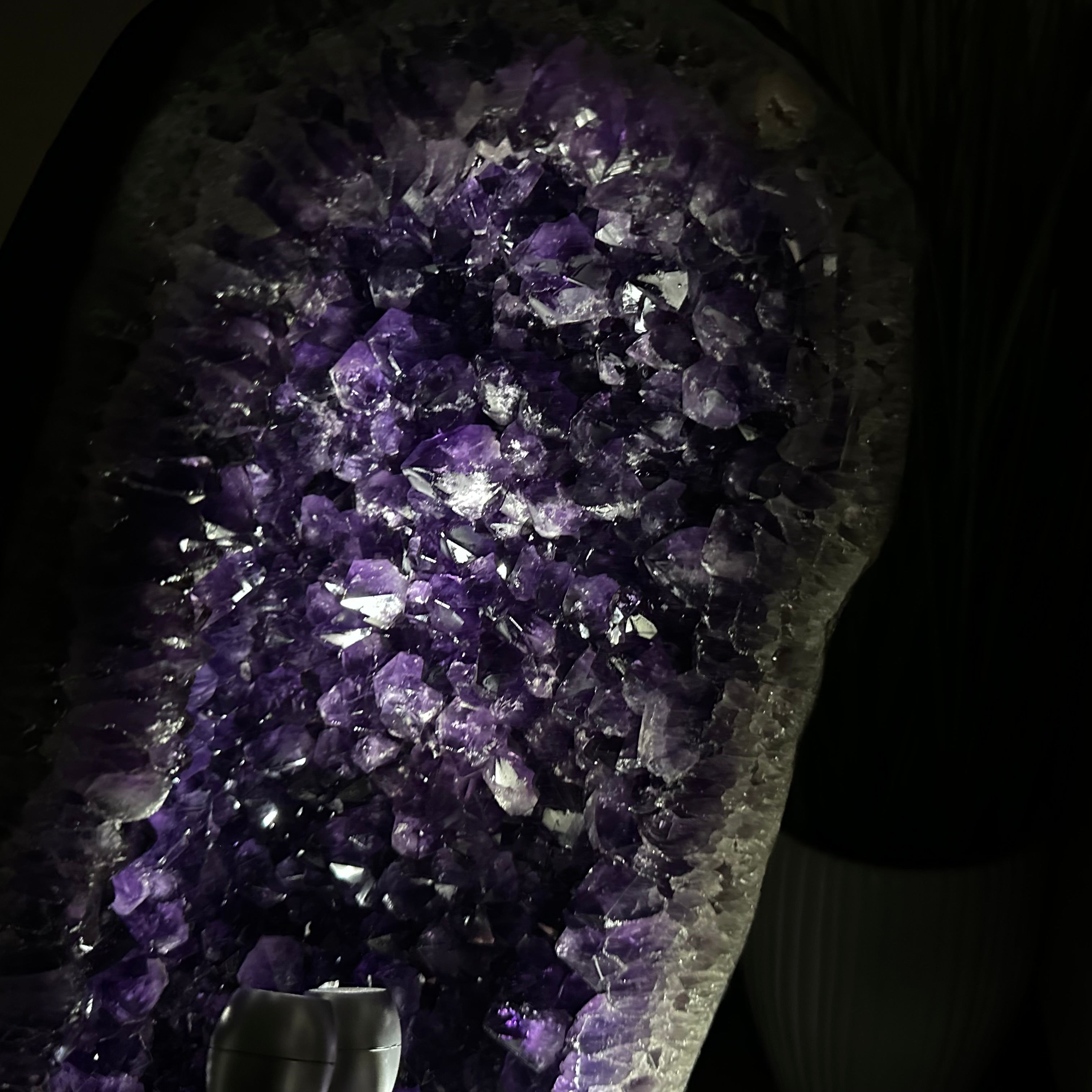 Sourced directly from Amethyst mine owners in Brazil, this magnificent piece showcases nature’s artistry at its finest, formed over millions of years in ancient volcanic cavities.