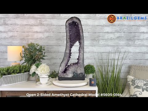 Discover the sophistication of this Extra Quality Open 2-Sided (Window) Brazilian Amethyst Cathedral by Brazil Gems®. It has nicely shaped amethyst points with violet colors and polished edges..