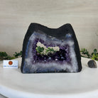 Disclaimer: This is a natural gemstone crystal sold by Brazil Gems® as is and as you see it in its images and video. It is the exact one you will receive. It may contain natural imperfections and/or imperfections, broken edges and repairs from the extraction, polishing and prepping processes. In order for it to stand on its own, the sides and bottom have been reinforced with a small amount of cement then painted black. We make every effort to get measurements as exact as possible but they are done by human hands & eyes and therefore may have minor discrepancies.