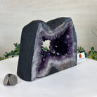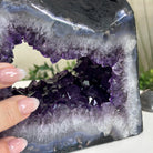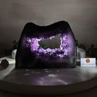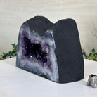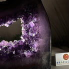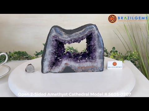 Discover the sophistication of this Extra Quality Open 2-Sided Brazilian Amethyst Cathedral by Brazil Gems®. It has nicely shaped amethyst points with violet colors and polished edges with Agate bands. Very unique piece!
