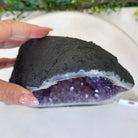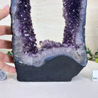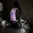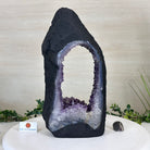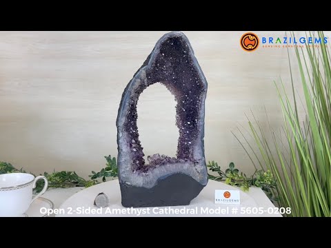 Discover the sophistication of this Extra Quality Open 2-Sided Brazilian Amethyst Cathedral by Brazil Gems®. It has nicely shaped amethyst points with violet colors and polished edges with Agate bands. Very unique piece!