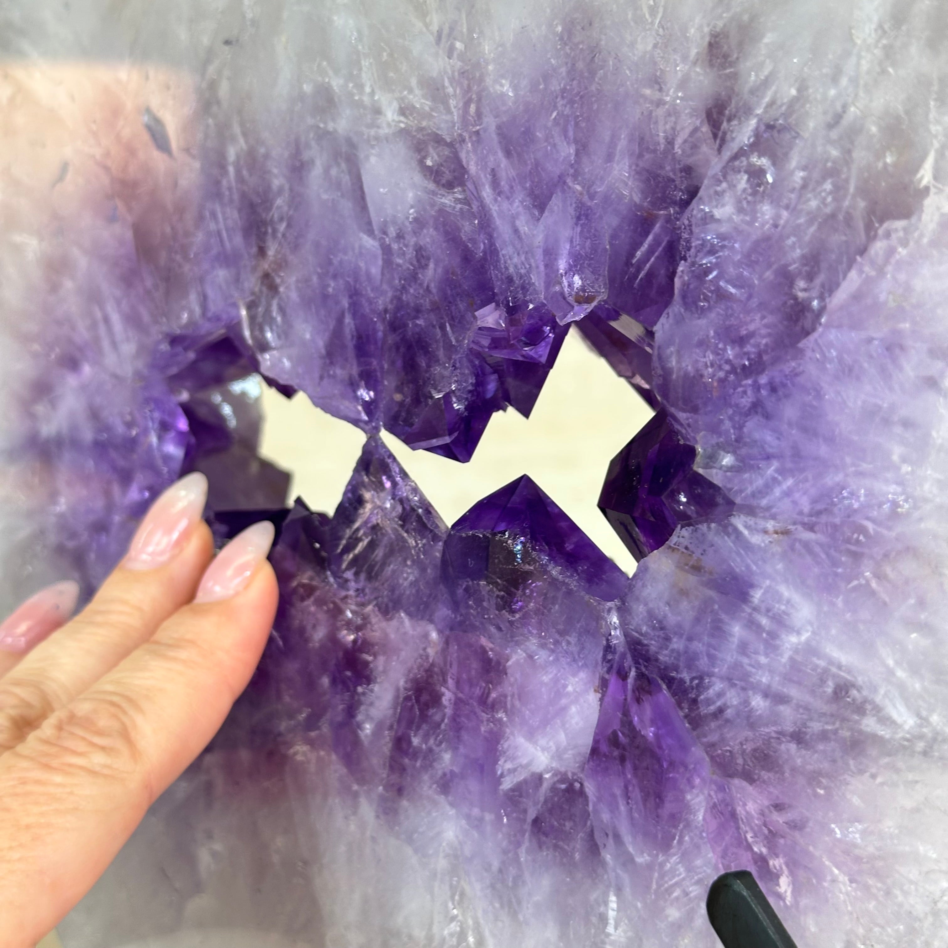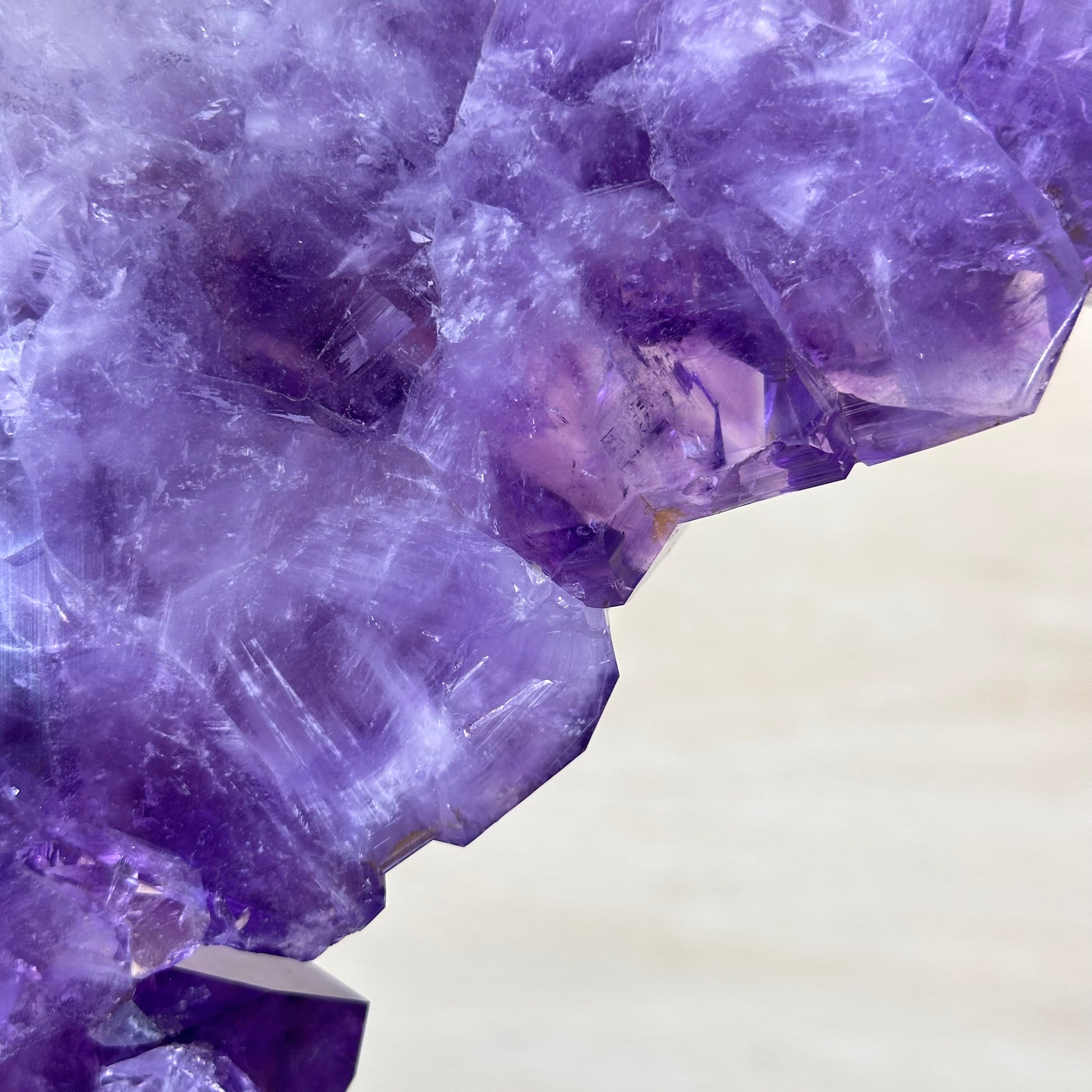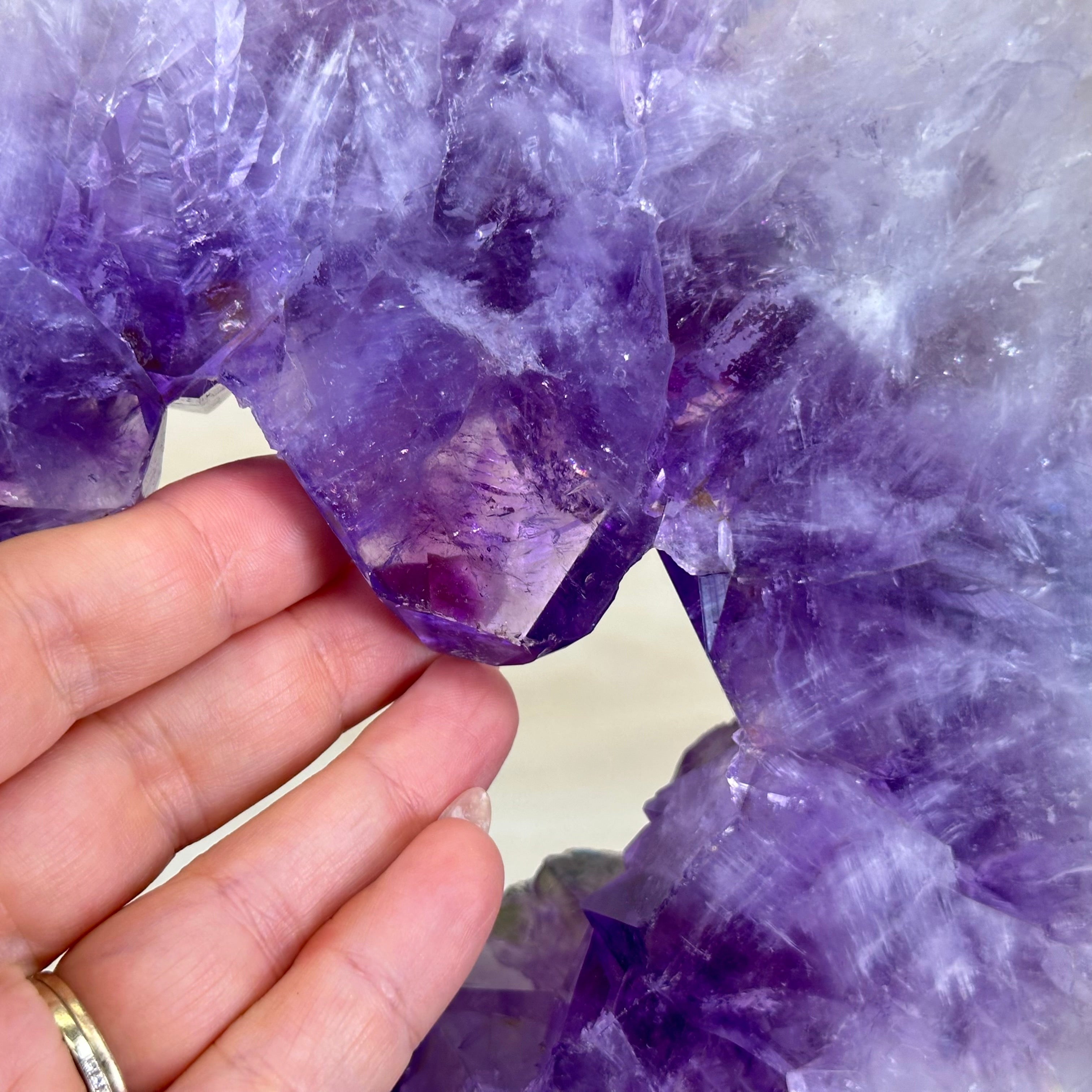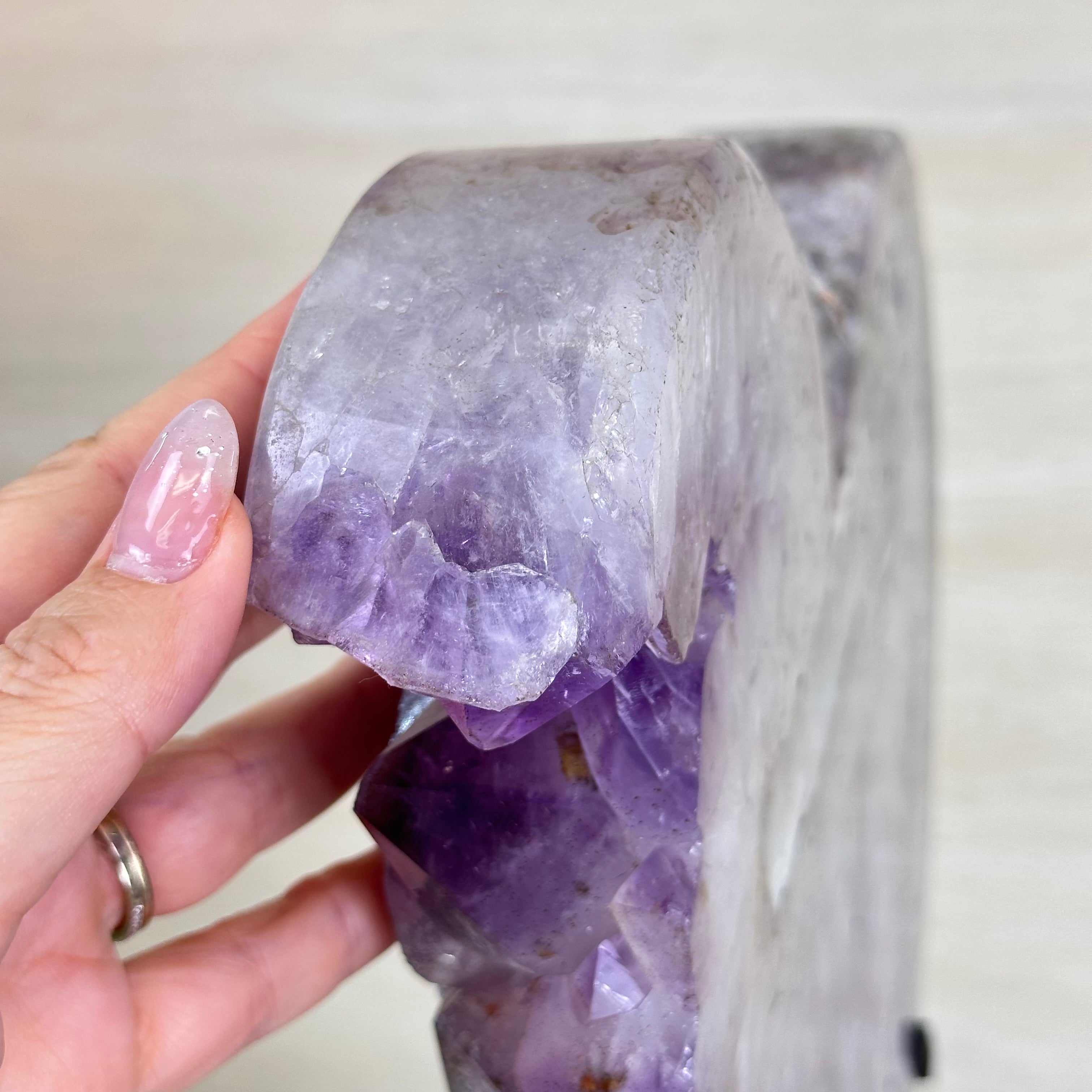 The more of these qualities an Amethyst possesses the more valuable it can be. Our Amethyst geode hearts for sale are top-quality and sure to impress. Here's the order we categorize our Amethyst geodes from higher to lower pricing: